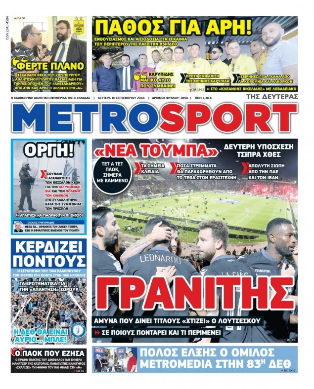 Οι αθλητικές εφημερίδες 10/9/2018 Enikos Newsroom 06:27, Δευτέρα 10 Σεπτεμβρίου 2018 Media Διαβάστε τα πρωτοσέλιδα. ΑΘΛΗΤΙΚΕΣ ΕΦΗΜΕΡΙΔΕΣ ΠΡΩΤΟΣΕΛΙΔΑ Μοιράσου το: σχολίασε κι εσύ (0 σχόλια) Ακολουθήστε το enikos.gr στο Google News και μάθετε πρώτοι όλες τις ειδήσεις Δείτε όλες τις τελευταίες ειδήσεις από την Ελλάδα και τον Κόσμο στο enikos.gr Ειδήσεις Ροή Ειδήσεων 4 ώρες πριν Από το Ορμένιο ως τα Μάλγαρα κι από τη Σιάτιστα μέχρι τη Νίκαια: Μπλόκα σε όλη την Ελλάδα – Το Σάββατο ανοίγουν τα διόδια οι αγρότες 1 ώρα πριν Εμπλοκή και αερομαχίες με οπλισμένα τουρκικά F-16 στο Αιγαίο 3 ώρες πριν Αττική: Θρίλερ με νεκρό βρέφος 5 μηνών – Κοιμόταν στο ίδιο κρεβάτι με τους γονείς του 58 λεπτά πριν Πούτιν: «Ναι, είμαι ερωτευμένος» – Βίντεο από τη σπάνια προσωπική παραδοχή του 3 ώρες πριν Μεσόγειος: Η διαδρομή του ρωσικού τάνκερ «Qendil» και η στοχευμένη επίθεση της Ουκρανίας με drone – Ο Πούτιν προειδοποίησε για αντίποινα 5 ώρες πριν Τα 5 ζώδια που ευνοούνται στην ερωτική ζωή τους την επόμενη εβδομάδα – «Η ενέργεια του Αιγόκερου φέρνει αγάπη και σταθερότητα» 6 ώρες πριν Αυτό το έξυπνο μαθηματικό κόλπο θα μπορούσε να αλλάξει τον τρόπο με τον οποίο οι επιστήμονες μελετούν τους σεισμούς 2 ώρες πριν Μήπως έχετε χάσει τον εαυτό σας στη σχέση σας; 7 «αθόρυβες» υποχωρήσεις που μάλλον κάνατε, χωρίς να το συνειδητοποιήσετε 4 ώρες πριν Κουίζ για την παλιά Αθήνα: Αναγνωρίζετε την περιοχή; Έχετε περάσει 100% από εκεί 5 λεπτά πριν Μπαράκ Ομπάμα: Τα βιβλία, οι ταινίες και τα τραγούδια που ξεχώρισε το 2025 – Πλήρης λίστα 10 λεπτά πριν Don’t Forget The Lyrics: Η Έλλη Κοκκίνου υποδέχεται 4 παίκτες που θα κάνουν τα πάντα για να μη χάσουν ούτε… μισή λέξη από τους στίχους 16 λεπτά πριν Πλεύρης στον ΑΝΤ1: Η βασική πολιτική που ψηφίστηκε από τους υπουργούς Μετανάστευσης είναι η δημιουργία κέντρων κράτησης μεταναστών στην Αφρική – ΒΙΝΤΕΟ 21 λεπτά πριν Η εξομολόγηση της Νίκης Σερέτη: «Δεν κρύβω ότι ήταν πάρα πολύ δύσκολο όλο αυτό που βίωσα» 26 λεπτά πριν Αγρότες: Κλειστό ξανά το ρεύμα εισόδου στα Μάλγαρα – Άνοιξαν τον κόμβο της Χαλκηδόνας ENIKOS NETWORK Έχετε πραγματικά μεγάλη καρδιά; 10 χαρακτηριστικά όσων έχουν καλοσύνη «Η σούπερ» γρίπη εξαπλώνεται στην Ευρώπη-Στοιχεία από το ECDC για την αποτελεσματικότητα του εμβολίου Επίδομα παιδιού: Πότε ανοίγει ξανά η πλατφόρμα για τις αιτήσεις Προκήρυξη ΑΣΕΠ για 397 μόνιμες προσλήψεις στο Δημόσιο: Βγήκαν τα προσωρινά αποτελέσματα – Πότε αρχίζει η υποβολή ενστάσεων Χαρτογραφώντας το «σημείο χωρίς επιστροφή»: Για πρώτη φορά αποκαλύπτεται με λεπτομέρεια το ακανθώδες όριο της ατμόσφαιρας τ... Η Google καταργεί τη λειτουργία «dark web report» – Πώς θα μπορούν οι χρήστες να διαγράφουν τα δεδομένα τους περισσότερα 20:37 , Παρασκευή 19 Δεκεμβρίου 2025 Don’t Forget The Lyrics: Η Έλλη Κοκκίνου υποδέχεται 4 παίκτες που θα κάνουν τα πάντα για να μη χάσουν ούτε… μισή λέξη από τους στίχους Το «Don’t Forget The Lyrics» επιστρέφει απόψε, Παρασκευή 19 Δεκεμβρίου, στις 21:00 με νέο επει... 19:31 , Παρασκευή 19 Δεκεμβρίου 2025 GNTM: Απόψε ο μεγάλος τελικός για τους 4 φιναλίστ Έπειτα από μήνες γεμάτους μόδα, δημιουργία και έντονες αναμετρήσεις, το GNTM 2025 κορυφώνεται,... 18:11 , Παρασκευή 19 Δεκεμβρίου 2025 Το σόι σου: Ο Άρης έρχεται στην Ελλάδα για τις γιορτές των Χριστουγέννων – Τι θα δούμε στο αποψινό εορταστικό επεισόδιο Ένα απολαυστικό, εορταστικό επεισόδιο της σειράς “Το σόι σου”, γεμάτο ευτράπελα αλ... 15:15 , Παρασκευή 19 Δεκεμβρίου 2025 Την Κυριακή με τη Realnews: Ό,τι και αν αγοράσ