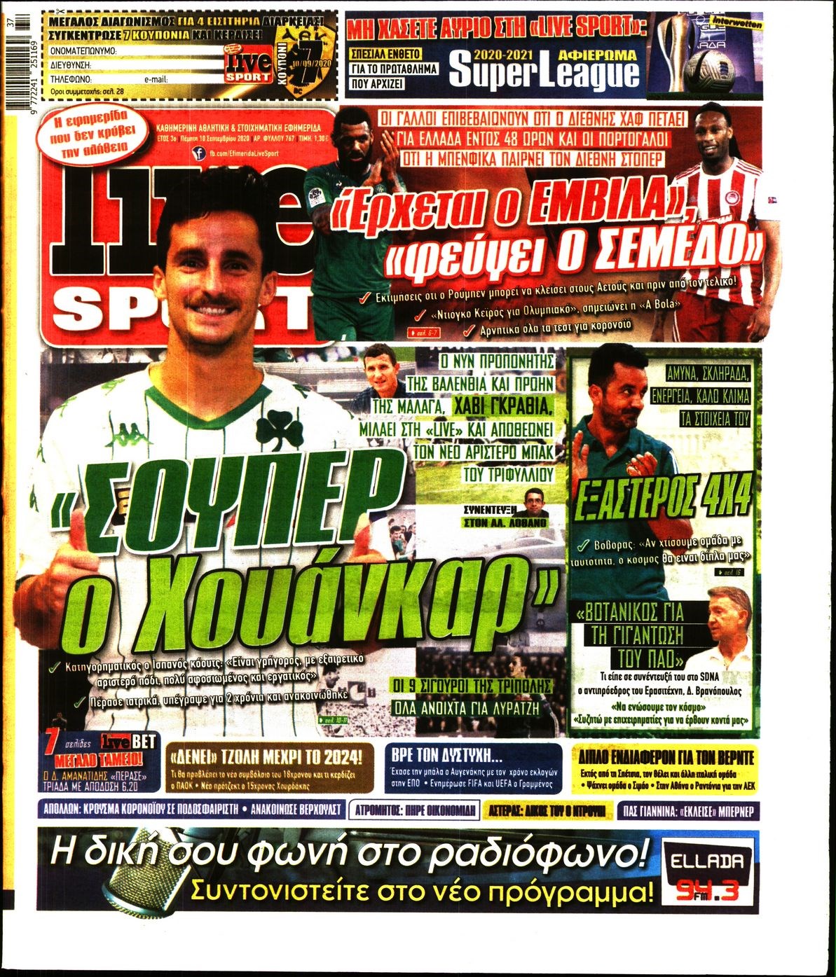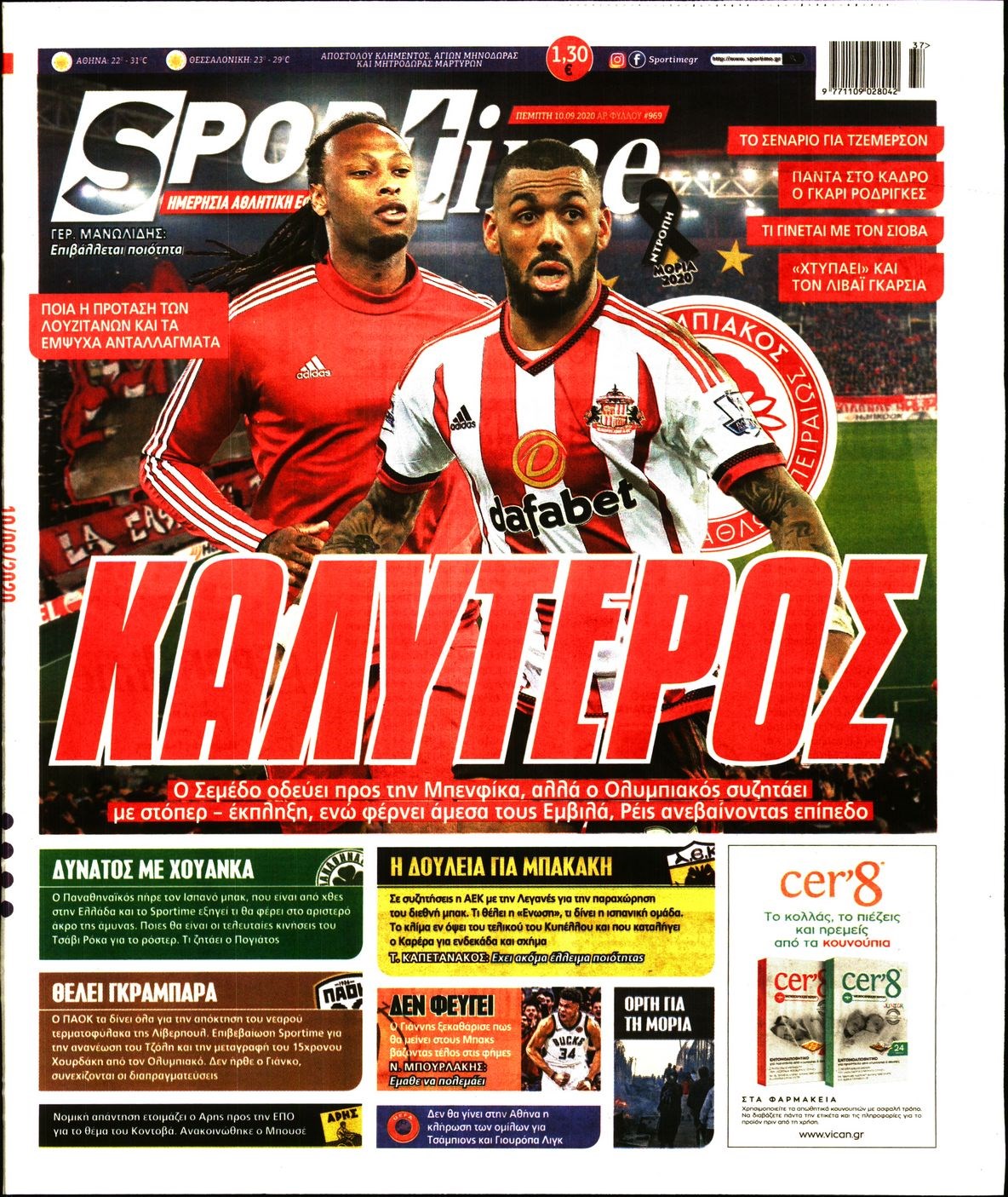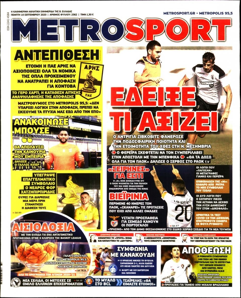 Οι αθλητικές εφημερίδες 10/9/2020 Διονύσης Νίκκας 06:53, Πέμπτη 10 Σεπτεμβρίου 2020 Media Διαβάστε τα πρωτοσέλιδα των αθλητικών εφημερίδων… ΑΘΛΗΤΙΚΕΣ ΕΦΗΜΕΡΙΔΕΣ Μοιράσου το: σχολίασε κι εσύ (0 σχόλια) Ακολουθήστε το enikos.gr στο Google News και μάθετε πρώτοι όλες τις ειδήσεις Δείτε όλες τις τελευταίες ειδήσεις από την Ελλάδα και τον Κόσμο στο enikos.gr Ειδήσεις Ροή Ειδήσεων 9 ώρες πριν Χριστούγεννα στα μπλόκα: Επιμένουν στις κινητοποιήσεις τους οι αγρότες – Ανοίγουν τα διόδια το Σαββατοκύριακο 2 ώρες πριν Σαρωτικοί οι έλεγχοι στους δρόμους ενόψει εορτών – Μπλόκα της τροχαίας σε κεντρικές αρτηρίες της Αττικής 9 ώρες πριν Πούτιν: Τα μηνύματα σε Ευρώπη και ΝΑΤΟ από το μαραθώνιο «σόου» του – Η απαίτηση για «σεβασμό» και η ειρήνη «με τους όρους» της Μόσχας 8 ώρες πριν ΗΠΑ: Η κυβέρνηση του Ντόναλντ Τραμπ άρχισε να δημοσιοποιεί τα αρχεία Έπσταϊν 8 ώρες πριν Άνω Λιόσια: Πυροβολισμοί σε επιχείρηση με χαλιά – Εντοπίστηκαν 10 κάλυκες 2 ώρες πριν Αυγά: Πόσα μπορείτε να τρώτε την ημέρα με ασφάλεια για μέγιστη πρόσληψη πρωτεΐνης 2 ώρες πριν Τα ζώδια σήμερα, Σάββατο 20 Δεκεμβρίου: Παρθένοι, το σύμπαν σας δίνει το κλειδί 9 ώρες πριν Ανακαλύφθηκαν αρχαία χρυσά νομίσματα 2.200 ετών που απεικονίζουν τον θεό Απόλλωνα – Η άγνωστη σύνδεση με τον Φίλιππο Β΄ της Μακεδονίας 1 ώρα πριν Οπτική ψευδαίσθηση: Μόνο αν είσαι ο Σέρλοκ Χολμς θα βρεις τον αριθμό «87» σε 7 δευτερόλεπτα 4 λεπτά πριν ΟΝΕΧ – MEGATUGS: Ξεκίνησε η ναυπήγηση ρυμουλκών στην Ελλάδα – Προθάλαμος πολεμικών πλοίων – Δείτε φωτογραφίες και βίντεο 12 λεπτά πριν Φοινικούντα: Σήμερα απολογείται ο 30χρονος γιος γνωστού επιχειρηματία της Πλάκας 20 λεπτά πριν Οι αθλητικές μεταδόσεις 20/12/2025 30 λεπτά πριν Εορτολόγιο: Ποιοι γιορτάζουν σήμερα 20 Δεκεμβρίου 37 λεπτά πριν Συρία: Μπαράζ αμερικανικών επιδρομών εναντίον του ISIS – «Πλήττουμε δυνατά οχυρά του ΙΚ» λέει ο Ντόναλντ Τραμπ ENIKOS NETWORK Πρέπει να αποδέχεστε ή να απορρίπτετε όλα τα cookies; Ένας ειδικός εξηγεί Η αγαπημένη λιχουδιά των πόνι που μπορεί να ενισχύσει όραση, εγκέφαλο και ανοσοποιητικό Αναστολή μέτρων αναγκαστικής εκτέλεσης για κτηνοτρόφους που πλήττονται από την ευλογιά των αιγοπροβάτων Πλήρης επάρκεια προϊόντων στις λαϊκές της Αττικής, παρά τις αγροτικές κινητοποιήσεις – Τι απαντούν οι πωλητές Χαρτογραφώντας το «σημείο χωρίς επιστροφή»: Για πρώτη φορά αποκαλύπτεται με λεπτομέρεια το ακανθώδες όριο της ατμόσφαιρας τ... Η Google καταργεί τη λειτουργία «dark web report» – Πώς θα μπορούν οι χρήστες να διαγράφουν τα δεδομένα τους περισσότερα 05:48 , Σάββατο 20 Δεκεμβρίου 2025 Οι οικονομικές εφημερίδες 20/12/2025 Διαβάστε τα πρωτοσέλιδα από τις οικονομικές εφημερίδες, σήμερα 20/12/2025. 05:43 , Σάββατο 20 Δεκεμβρίου 2025 Οι αθλητικές εφημερίδες 20/12/2025 Διαβάστε τα πρωτοσέλιδα από τις αθλητικές εφημερίδες, σήμερα 20/12/2025. 05:38 , Σάββατο 20 Δεκεμβρίου 2025 Οι πολιτικές εφημερίδες 20/12/2025 Διαβάστε τα πρωτοσέλιδα από τις πολιτικές εφημερίδες, σήμερα 20/12/2025. 04:20 , Σάββατο 20 Δεκεμβρίου 2025 Αγγελική Νικολούλη: Τα συλλυπητήρια για την απώλεια της Ειρήνης Μαρινάκη Τα συλληπητήρια στον πρόεδρο του Mega, τον Βαγγέλη Μαρινάκη, για την απώλεια της μητέρας του Ε... ΤΕΛΕΥΤΑΙΕΣ ΕΙΔΗΣΕΙΣ 4 λεπτά πριν ΟΝΕΧ – MEGATUGS: Ξεκίνησε η ναυπήγηση ρυμουλκών στην... 12 λεπτά πριν Φοινικούντα: Σήμερα απολογείται ο 30χρονος γιος... 20 λεπτά πριν Οι αθλητικές μεταδόσεις 20/12/2025 30 λεπτά πριν Εορτολόγιο: Ποιοι γιορτάζουν σήμερα 20 Δεκεμβρίου 37 λεπτά πριν Συρία: Μπαράζ αμερικαν