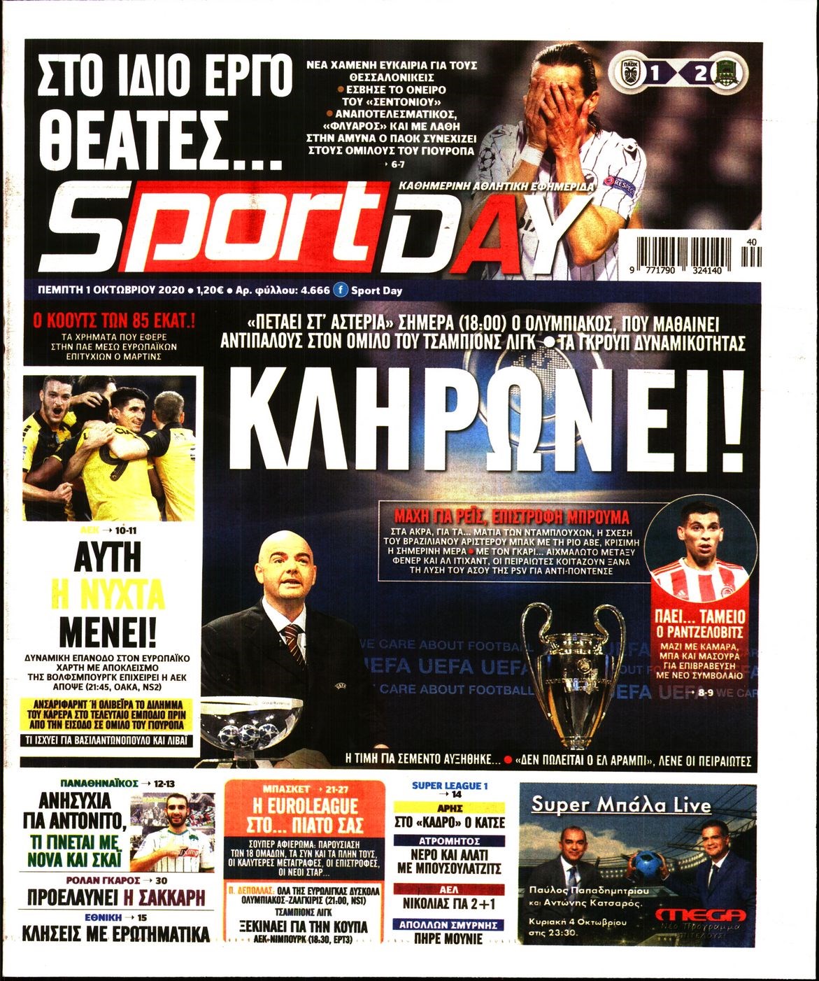 Οι αθλητικές εφημερίδες 1/10/2020 Διονύσης Νίκκας 06:52, Πέμπτη 01 Οκτωβρίου 2020 Media Διαβάστε τα πρωτοσέλιδα των αθλητικών εφημερίδων… ΑΘΛΗΤΙΚΕΣ ΕΦΗΜΕΡΙΔΕΣ Μοιράσου το: σχολίασε κι εσύ (0 σχόλια) Ακολουθήστε το enikos.gr στο Google News και μάθετε πρώτοι όλες τις ειδήσεις Δείτε όλες τις τελευταίες ειδήσεις από την Ελλάδα και τον Κόσμο στο enikos.gr Ειδήσεις Ροή Ειδήσεων 8 ώρες πριν Χριστούγεννα στα μπλόκα: Επιμένουν στις κινητοποιήσεις τους οι αγρότες – Ανοίγουν τα διόδια το Σαββατοκύριακο 8 ώρες πριν Ουκρανία: Η άνευ προηγουμένου επίθεση σε ρωσικό τάνκερ στη Μεσόγειο και το μήνυμα προς στον Πούτιν – Το «μακρύ χέρι» του Κιέβου 7 ώρες πριν Πούτιν: Τα μηνύματα σε Ευρώπη και ΝΑΤΟ από το μαραθώνιο «σόου» του – Η απαίτηση για «σεβασμό» και η ειρήνη «με τους όρους» της Μόσχας 6 ώρες πριν ΗΠΑ: Η κυβέρνηση του Ντόναλντ Τραμπ άρχισε να δημοσιοποιεί τα αρχεία Έπσταϊν 7 ώρες πριν Άνω Λιόσια: Πυροβολισμοί σε επιχείρηση με χαλιά – Εντοπίστηκαν 10 κάλυκες 19 λεπτά πριν Αυγά: Πόσα μπορείτε να τρώτε την ημέρα με ασφάλεια για μέγιστη πρόσληψη πρωτεΐνης 49 λεπτά πριν Τα ζώδια σήμερα, Σάββατο 20 Δεκεμβρίου: Παρθένοι, το σύμπαν σας δίνει το κλειδί 7 ώρες πριν Ανακαλύφθηκαν αρχαία χρυσά νομίσματα 2.200 ετών που απεικονίζουν τον θεό Απόλλωνα – Η άγνωστη σύνδεση με τον Φίλιππο Β΄ της Μακεδονίας 8 ώρες πριν Ύπνος: Μια κρυφή κατάσταση του εγκεφάλου πριν από τον ύπνο μπορεί να είναι το “κλειδί” για υψηλή ευφυΐα και δημιουργικότητα 3 λεπτά πριν Οπτική ψευδαίσθηση: Μόνο αν είσαι ο Σέρλοκ Χολμς θα βρεις τον αριθμό «87» σε 7 δευτερόλεπτα 10 λεπτά πριν Σαρωτικοί οι έλεγχοι στους δρόμους ενόψει εορτών – Μπλόκα της τροχαίας σε κεντρικές αρτηρίες της Αττικής 19 λεπτά πριν Αυγά: Πόσα μπορείτε να τρώτε την ημέρα με ασφάλεια για μέγιστη πρόσληψη πρωτεΐνης 25 λεπτά πριν Σαν σήμερα 20 Δεκεμβρίου: Τα σημαντικότερα γεγονότα της ημέρας 30 λεπτά πριν Οι οικονομικές εφημερίδες 20/12/2025 ENIKOS NETWORK Το ΕΚΑΒ τιμήθηκε από την Ακαδημία Αθηνών για τα 40 χρόνια προσφοράς του Έχετε πραγματικά μεγάλη καρδιά; 10 χαρακτηριστικά όσων έχουν καλοσύνη Αναστολή μέτρων αναγκαστικής εκτέλεσης για κτηνοτρόφους που πλήττονται από την ευλογιά των αιγοπροβάτων Πλήρης επάρκεια προϊόντων στις λαϊκές της Αττικής, παρά τις αγροτικές κινητοποιήσεις – Τι απαντούν οι πωλητές Χαρτογραφώντας το «σημείο χωρίς επιστροφή»: Για πρώτη φορά αποκαλύπτεται με λεπτομέρεια το ακανθώδες όριο της ατμόσφαιρας τ... Η Google καταργεί τη λειτουργία «dark web report» – Πώς θα μπορούν οι χρήστες να διαγράφουν τα δεδομένα τους περισσότερα 05:48 , Σάββατο 20 Δεκεμβρίου 2025 Οι οικονομικές εφημερίδες 20/12/2025 Διαβάστε τα πρωτοσέλιδα από τις οικονομικές εφημερίδες, σήμερα 20/12/2025. 05:43 , Σάββατο 20 Δεκεμβρίου 2025 Οι αθλητικές εφημερίδες 20/12/2025 Διαβάστε τα πρωτοσέλιδα από τις αθλητικές εφημερίδες, σήμερα 20/12/2025. 05:38 , Σάββατο 20 Δεκεμβρίου 2025 Οι πολιτικές εφημερίδες 20/12/2025 Διαβάστε τα πρωτοσέλιδα από τις πολιτικές εφημερίδες, σήμερα 20/12/2025. 04:20 , Σάββατο 20 Δεκεμβρίου 2025 Αγγελική Νικολούλη: Τα συλλυπητήρια για την απώλεια της Ειρήνης Μαρινάκη Τα συλληπητήρια στον πρόεδρο του Mega, τον Βαγγέλη Μαρινάκη, για την απώλεια της μητέρας του Ε... ΤΕΛΕΥΤΑΙΕΣ ΕΙΔΗΣΕΙΣ 10 λεπτά πριν Σαρωτικοί οι έλεγχοι στους δρόμους ενόψει εορτών –... 19 λεπτά πριν Αυγά: Πόσα μπορείτε να τρώτε την ημέρα με ασφάλεια για... 25 λεπτά πριν Σαν σήμερα 20 Δεκεμβρίου: Τα σημαντικότερα γεγονότα... 30 λεπτά πριν Οι οικονομικές εφημερίδες 20/1