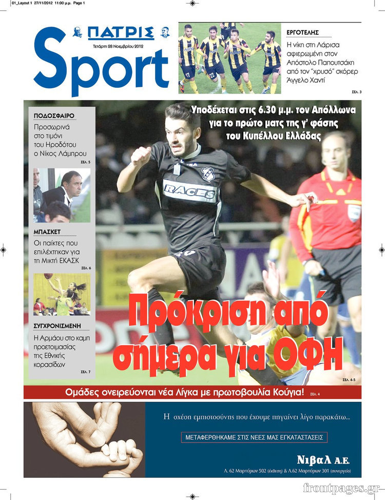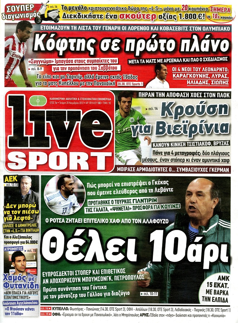 Οι αθλητικές εφημερίδες Enikos Newsroom 08:58, Τετάρτη 28 Νοεμβρίου 2012 Media Οι αθλητικές εφημερίδες Τα σημερινά πρωτοσέλιδα των αθλητικών εφημερίδων. ΑΘΛΗΤΙΚΑ ΑΘΛΗΤΙΚΕΣ ΕΦΗΜΕΡΙΔΕΣ ΕΦΗΜΕΡΙΔΕΣ ΕΦΗΜΕΡΙΔΕΣ ΠΡΩΤΟΣΕΛΙΔΑ ΠΡΩΤΟΣΕΛΙΔΑ Μοιράσου το: σχολίασε κι εσύ (0 σχόλια) Ακολουθήστε το enikos.gr στο Google News και μάθετε πρώτοι όλες τις ειδήσεις Δείτε όλες τις τελευταίες ειδήσεις από την Ελλάδα και τον Κόσμο στο enikos.gr Ειδήσεις Ροή Ειδήσεων 2 ώρες πριν Τρομοκρατική επίθεση στο Σίδνεϊ: Νεκροί 11 πολίτες και ένας δράστης – Εντοπίστηκε αυτοσχέδιος εκρηκτικός μηχανισμός 46 λεπτά πριν ΟΠΕΚΕΠΕ-Κρήτη: Προθεσμία να απολογηθούν από την Τρίτη έως την Πέμπτη έλαβαν οι 16 συλληφθέντες 4 ώρες πριν Σκληραίνουν τη στάση τους οι αγρότες: Αποφασίζουν τις δράσεις της εβδομάδας – Αύριο το συλλαλητήριο στα δικαστήρια της Λάρισας 7 ώρες πριν Κυριάκος Μητσοτάκης μετά το «όχι» των αγροτών: Διάλογος δεν γίνεται με τελεσίγραφα και οι λύσεις προκύπτουν μόνο από συζήτηση 1 ώρα πριν Πανεπιστήμιο Μπράουν: Υπό κράτηση ένα «άτομο ενδιαφέροντος» για το μακελειό με τους 2 νεκρούς και τους 9 τραυματίες 41 λεπτά πριν Τα 5 ζώδια που ευνοούνται στα ερωτικά τους έως τις 21 Δεκεμβρίου – «Η επόμενη σχέση σας θα είναι καθοριστική» 2 ώρες πριν Γεωλογική αποκάλυψη: Επιστήμονες εξηγούν πώς η Ιβηρική Χερσόνησος περιστρέφεται σαν… ρολόι 5 ώρες πριν Προπονήτρια ευεξίας που έχασε 24 κιλά αποκαλύπτει: «Αυτά είναι τα 6 ανησυχητικά σημάδια της υψηλής κορτιζόλης» 6 ώρες πριν Τα 8 πράγματα που τα ευτυχισμένα ζευγάρια δεν κάνουν ποτέ μπροστά στα παιδιά τους 45 δευτερόλεπτα πριν Χατζηδάκης για αγρότες: «Τα προβλήματα απαιτούν διάλογο, δεν αντιμετωπίζεται η κατάσταση με τελεσίγραφα» 9 λεπτά πριν Τηλεθέαση (13/12): Πώς κινήθηκαν οι εκπομπές στην πρωινή ζώνη το Σάββατο 17 λεπτά πριν Κρήτη: Χαμός σε ποδοσφαιρικό αγώνα – Προπονητής χτύπησε με κουτουλιά παίκτη της αντίπαλης ομάδας 25 λεπτά πριν Νετανιάχου για την επίθεση στο Σίδνεϊ: «Τους είχα προειδοποιήσει – Ρίχνουν λάδι στην φωτιά του αντισημιτισμού» 33 λεπτά πριν Ηλεία: Στον 62χρονο αγνοούμενο ανήκει η σορός που εντόπισε κυνηγός – Τραγικός επίλογος στις έρευνες ENIKOS NETWORK Άσκηση ή περισσότερος ύπνος: Τι είναι πιο σημαντικό για την υγεία όταν δεν έχετε χρόνο και για τα δύο; Σπλαχνικό λίπος: 3 υδατάνθρακες που μπορεί να σας βοηθήσουν να το χάσετε, σύμφωνα με ειδικό ΔΥΠΑ: Οι καταβολές που θα γίνουν την ερχόμενη Τετάρτη ΕΚΤ: Τα οφέλη για νοικοκυριά και επιχειρήσεις από τα σταθερά επιτόκια για ολόκληρο το 2026 Σύγχρονος Νοστράδαμος: Προειδοποιεί για «μεγάλο γεγονός» τους επόμενους μήνες που θα συγκλονίσει τη Βρετανία και τον κόσμο Τεστ παρατηρητικότητας: Μπορείτε να βρείτε τις 3 διαφορές στις εικόνες με έναν πιγκουίνο σε 14 δευτερόλεπτα περισσότερα 16:32 , Κυριακή 14 Δεκεμβρίου 2025 Τηλεθέαση (13/12): Πώς κινήθηκαν οι εκπομπές στην πρωινή ζώνη το Σάββατο Με αμείωτη ένταση συνεχίστηκε η μάχη για την τηλεθέαση στην πρωινή ζώνη των τηλεοπτικών καναλι... 15:07 , Κυριακή 14 Δεκεμβρίου 2025 IQ160: Η Μαρίνα στέλνει το φούτερ του Τηλέμαχου για το τεστ πατρότητας Η Πηνελόπη αποφασίζει να κάνει αμνιοπαρακέντηση, για να βεβαιωθεί για την υγεία του μωρού της ... 12:46 , Κυριακή 14 Δεκεμβρίου 2025 Η Realnews στο www.pressreader.com Διαβάστε την ψηφιακή έκδοση της εφημερίδας στην οθόνη του κινητού, του tablet και του υπολογισ... 10:07 , Κυριακή 14 Δεκεμβρίου 2025 Η γη της ελιάς: Η αρχή του τέλους του Δημοσθένη πλησιάζει Η δραματική σειρά του MEGA 