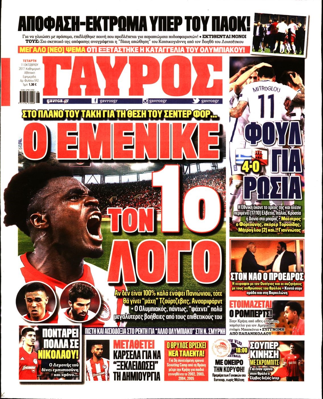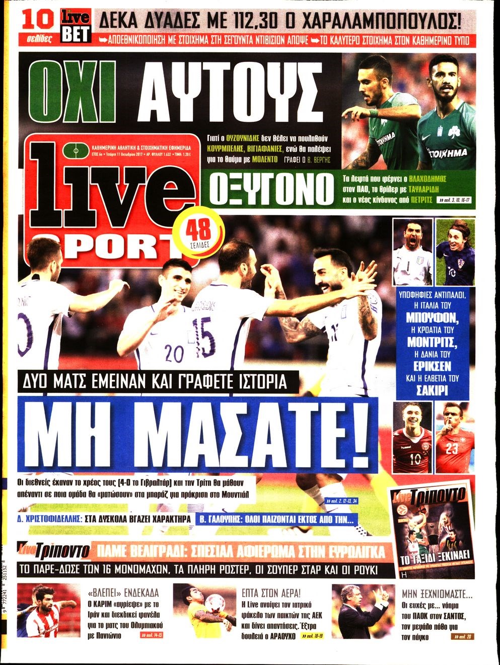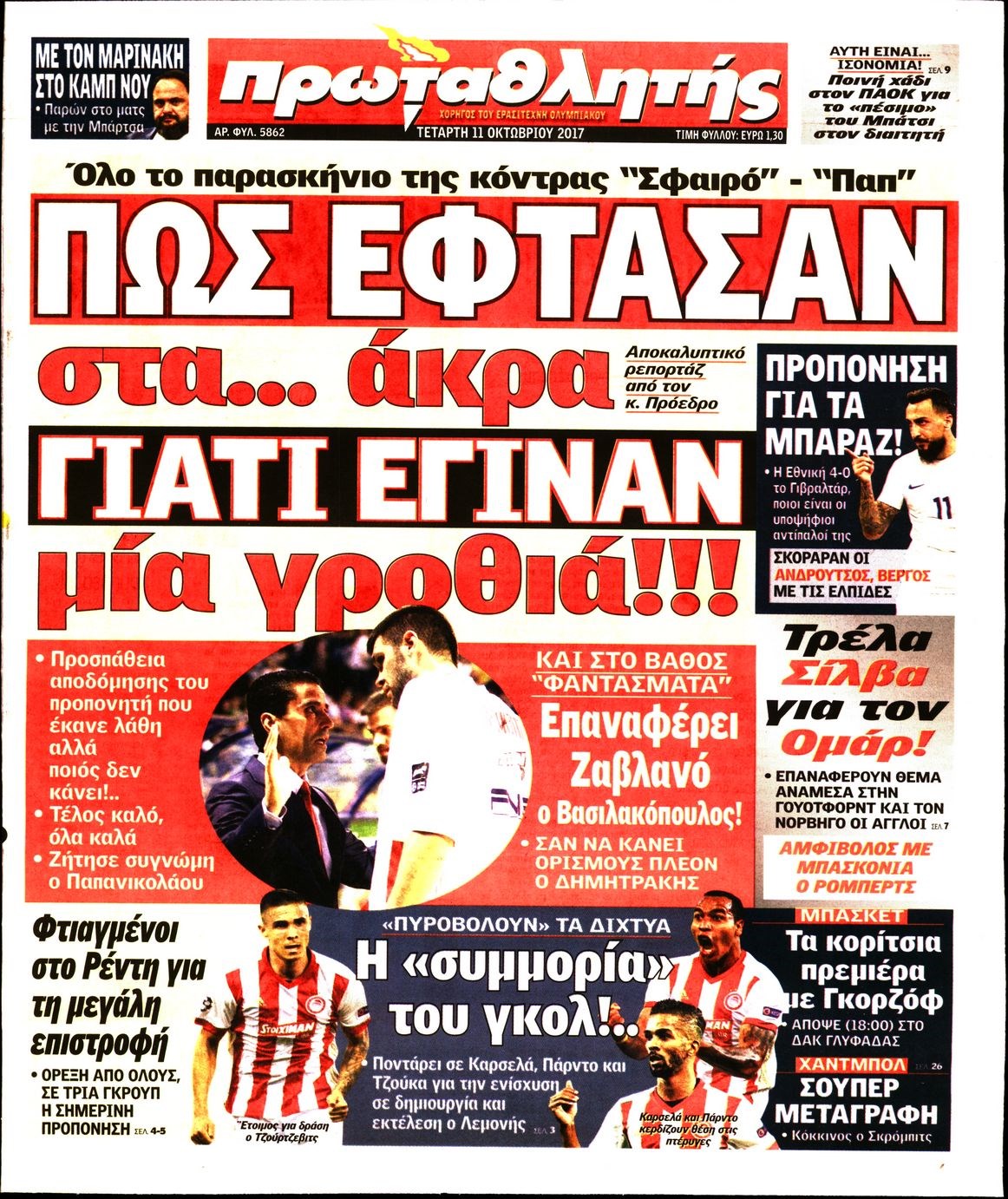Οι αθλητικές εφημερίδες 11/10/2017 Enikos Newsroom 08:02, Τετάρτη 11 Οκτωβρίου 2017 Media Διαβάστε τα σημερινά πρωτοσέλιδα των αθλητικών εφημερίδων: ΑΘΛΗΤΙΚΕΣ ΕΦΗΜΕΡΙΔΕΣ ΠΡΩΤΟΣΕΛΙΔΑ Μοιράσου το: σχολίασε κι εσύ (0 σχόλια) Ακολουθήστε το enikos.gr στο Google News και μάθετε πρώτοι όλες τις ειδήσεις Δείτε όλες τις τελευταίες ειδήσεις από την Ελλάδα και τον Κόσμο στο enikos.gr Ειδήσεις Ροή Ειδήσεων 1 ώρα πριν Η Ουκρανία χτύπησε τάνκερ του σκιώδους στόλου της Ρωσίας στη Μεσόγειο – Έπλεε νότια της Κρήτης 3 ώρες πριν Πούτιν: Η Ουκρανία δεν είναι έτοιμη για ειρηνευτικές συνομιλίες – Ο ρωσικός στρατός προελαύνει σε όλα τα μέτωπα 4 ώρες πριν Νίκος Παππάς: Ζητώ συγγνώμη για αυτό το επεισόδιο – Δεν τον γρονθοκόπησα 24 λεπτά πριν Εξώδικο επιχειρηματία στον Γιώργο Μαζωνάκη – Τι απαντά στις καταγγελίες του τραγουδιστή 1 ώρα πριν Βουλή: Υπερψηφίστηκε το νομοσχέδιο για την ένταξη του ΟΠΕΚΕΠΕ στην ΑΑΔΕ 5 ώρες πριν Αλλαγή σελίδας για 3 ζώδια – «Μία δύσκολη περίοδος φτάνει στο τέλος της» 2 ημέρες πριν 20 χρόνια τα Χριστούγεννα ξεκινούν στα Public με μεγάλη ποικιλία σε δώρα! 4 ώρες πριν Γεμάτος νεροχύτης; 5 σοβαρές ευθύνες που «φοβίζουν» όσους αφήνουν άπλυτα πιάτα 3 ώρες πριν Ειδικός μοιράζεται 6 κόλπα για να διατηρείστε σε φόρμα με πάνω από 40 ώρες εργασίας την εβδομάδα: «Προπονηθείτε πριν από τη δουλειά, όχι μετά» 57 δευτερόλεπτα πριν ΝΒΑ: Η πρώτη… πεντάδα του Γιάννη Αντετοκούνμπο 3 λεπτά πριν Η Σάντυ Χατζηϊωάννου στο Game Time: Το παιδικό όνειρο με τον Αντώνη Νικοπολίδη και το ντουέτο με την Ευγενία Σαμαρά 7 λεπτά πριν Θεσσαλονίκη: Στη φυλακή ο 44χρονος που κατηγορείται ότι προσπάθησε να πνίξει με κορδόνι την 34χρονη σύντροφό του 10 λεπτά πριν Αυτό το έξυπνο μαθηματικό κόλπο θα μπορούσε να αλλάξει τον τρόπο με τον οποίο οι επιστήμονες μελετούν τους σεισμούς 13 λεπτά πριν Αυτιάς σε Επίτροπο Ενέργειας: «Ρίξτε τις τιμές του ρεύματος για να πέσει η ακρίβεια» ENIKOS NETWORK Τάξη στις ιατρικές διαφημίσεις για την προστασία των πολιτών βάζει ο ΙΣΑ Μακροζωία: Τι παίζει πιο σημαντικό ρόλο ακόμα και από την διατροφή και την άσκηση, σύμφωνα με μελέτη ΕΥΔΑΠ: Οδηγός για τις αλλαγές στα τιμολόγια του νερού – 17 ερωτήσεις και απαντήσεις e-ΕΦΚΑ: Νέα παράταση της προθεσμίας υποβολής για τις ΑΠΔ – Ποιες επιχειρήσεις αφορά Χαρτογραφώντας το «σημείο χωρίς επιστροφή»: Για πρώτη φορά αποκαλύπτεται με λεπτομέρεια το ακανθώδες όριο της ατμόσφαιρας τ... Η Google καταργεί τη λειτουργία «dark web report» – Πώς θα μπορούν οι χρήστες να διαγράφουν τα δεδομένα τους περισσότερα 08:00 , Παρασκευή 19 Δεκεμβρίου 2025 Την Κυριακή με τη Realnews: Δωροεπιταγή 10€ Δωροεπιταγή αξίας 10€ για αγορές άνω των 60€ από τα πολυκαταστήματα FactoryOutlet H προσφορά ι... 05:48 , Παρασκευή 19 Δεκεμβρίου 2025 Οι οικονομικές εφημερίδες 19/12/2025 Διαβάστε τα πρωτοσέλιδα από τις οικονομικές εφημερίδες, σήμερα 19/12/2025. 05:43 , Παρασκευή 19 Δεκεμβρίου 2025 Οι αθλητικές εφημερίδες 19/12/2025 Διαβάστε τα πρωτοσέλιδα από τις αθλητικές εφημερίδες, σήμερα 19/12/2025. 05:38 , Παρασκευή 19 Δεκεμβρίου 2025 Οι πολιτικές εφημερίδες 19/12/2025 Διαβάστε τα πρωτοσέλιδα από τις πολιτικές εφημερίδες, σήμερα 19/12/2025. ΤΕΛΕΥΤΑΙΕΣ ΕΙΔΗΣΕΙΣ 7 λεπτά πριν Θεσσαλονίκη: Στη φυλακή ο 44χρονος που κατηγορείται... 10 λεπτά πριν Αυτό το έξυπνο μαθηματικό κόλπο θα μπορούσε να... 13 λεπτά πριν Αυτιάς σε Επίτροπο Ενέργειας: «Ρίξτε τις τιμές του... 16 λεπτά πριν Πούτιν: Προειδοποιεί το Κίεβο με αντίποινα για την... 19 λεπτά πριν Γαλλία: Άνοιξε το Μουσείο του Λούβρου – Τ