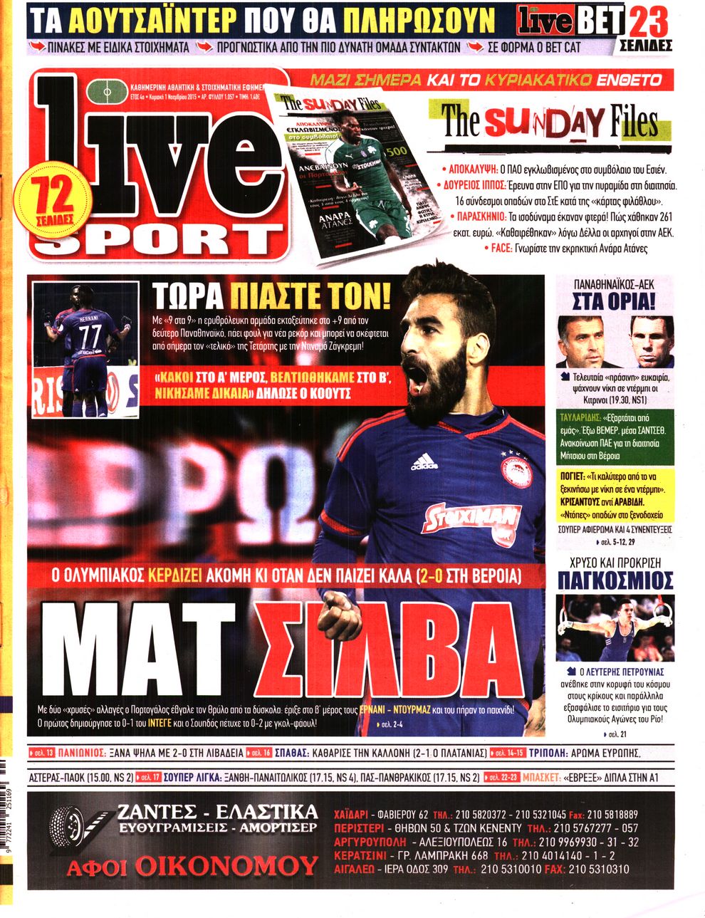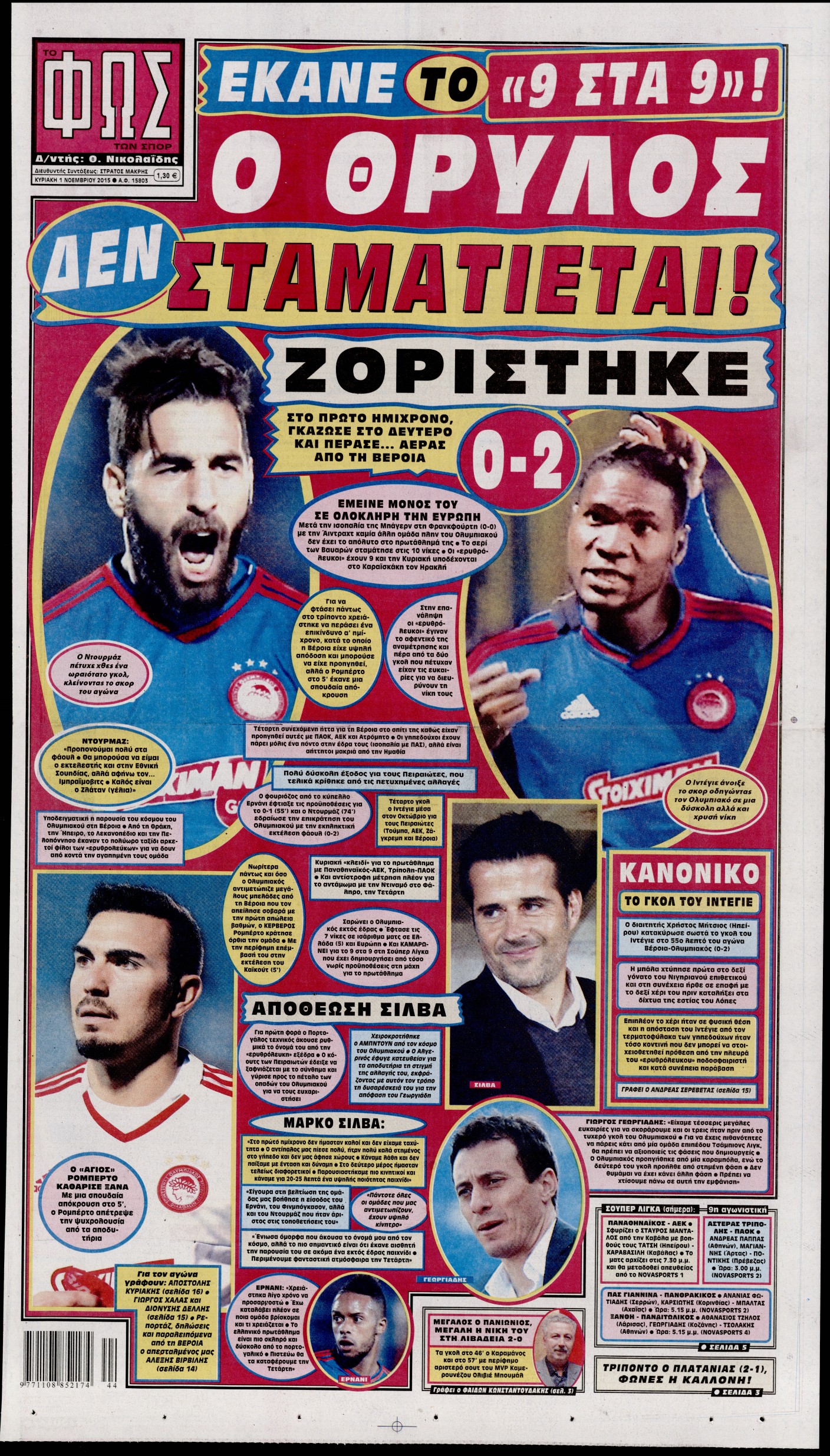 Oι αθλητικές εφημερίδες 1/11/2015 Enikos Newsroom 06:56, Κυριακή 01 Νοεμβρίου 2015 Media Διαβάστε τα σημερινά πρωτοσέλιδα των αθλητικών εφημερίδων: ΑΘΛΗΤΙΚΕΣ ΕΦΗΜΕΡΙΔΕΣ ΠΡΩΤΟΣΕΛΙΔΑ Μοιράσου το: σχολίασε κι εσύ (0 σχόλια) Ακολουθήστε το enikos.gr στο Google News και μάθετε πρώτοι όλες τις ειδήσεις Δείτε όλες τις τελευταίες ειδήσεις από την Ελλάδα και τον Κόσμο στο enikos.gr Ειδήσεις Ροή Ειδήσεων 2 ώρες πριν Χριστούγεννα στα μπλόκα: Επιμένουν στις κινητοποιήσεις τους οι αγρότες – Ανοίγουν τα διόδια το Σαββατοκύριακο 2 ώρες πριν Ουκρανία: Η άνευ προηγουμένου επίθεση σε ρωσικό τάνκερ στη Μεσόγειο και το μήνυμα προς στον Πούτιν – Το «μακρύ χέρι» του Κιέβου 2 ώρες πριν Πούτιν: Τα μηνύματα σε Ευρώπη και ΝΑΤΟ από το μαραθώνιο «σόου» του – Η απαίτηση για «σεβασμό» και η ειρήνη «με τους όρους» της Μόσχας 3 ώρες πριν Τραμπ: Δεν αποκλείει την πιθανότητα ενός πολέμου στη Βενεζουέλα – «Ο Μαδούρο ξέρει καλύτερα από τον καθένα τι ακριβώς θέλω» 3 ώρες πριν Συνεχίζει να προκαλεί ο Μίτσκοσκι: «Για μένα το όνομα Μακεδονία είναι ιερό» 2 ώρες πριν Ανακαλύφθηκαν αρχαία χρυσά νομίσματα 2.200 ετών που απεικονίζουν τον θεό Απόλλωνα – Η άγνωστη σύνδεση με τον Φίλιππο Β΄ της Μακεδονίας 3 ώρες πριν Ύπνος: Μια κρυφή κατάσταση του εγκεφάλου πριν από τον ύπνο μπορεί να είναι το “κλειδί” για υψηλή ευφυΐα και δημιουργικότητα 4 ώρες πριν Αριθμολογία: Οι άνθρωποι που έχουν γεννηθεί αυτές τις 4 ημερομηνίες, συχνά παρεξηγούνται – «Η καλοσύνη τους κρύβει τεράστια δύναμη» 5 ώρες πριν Ξεχάστε το καθάρισμα το Σαββατοκύριακο: Ο «κανόνας των 20 λεπτών» που θα σας λύσει τα χέρια 17 λεπτά πριν Φαίη Σκορδά: «Παλιότερα τα κομπλιμέντα τα προσπερνούσα, τώρα τα έχω ανάγκη» 33 λεπτά πριν Βασίλης Σπανούλης: Δεν εμφανίστηκε ούτε ένας δημοσιογράφος στην συνέντευξη Τύπου – «Καλησπέρα στον… κανέναν», δείτε βίντεο 44 λεπτά πριν Πόλεμος στην Ουκρανία: Εφτά νεκροί από ρωσική πυραυλική επίθεση στο λιμάνι της Οδησσού 48 λεπτά πριν ΗΠΑ: Η κυβέρνηση του Ντόναλντ Τραμπ άρχισε να δημοσιοποιεί τα αρχεία Έπσταϊν 60 λεπτά πριν Σάμος: Άνοιξε το μπλόκο των αγροτών στον κόμβο Κοκκαρίου – Σε νέα συνεδρίαση θα καθορίσουν την στάση τους ENIKOS NETWORK Το ΕΚΑΒ τιμήθηκε από την Ακαδημία Αθηνών για τα 40 χρόνια προσφοράς του Έχετε πραγματικά μεγάλη καρδιά; 10 χαρακτηριστικά όσων έχουν καλοσύνη Αναστολή μέτρων αναγκαστικής εκτέλεσης για κτηνοτρόφους που πλήττονται από την ευλογιά των αιγοπροβάτων Πλήρης επάρκεια προϊόντων στις λαϊκές της Αττικής, παρά τις αγροτικές κινητοποιήσεις – Τι απαντούν οι πωλητές Χαρτογραφώντας το «σημείο χωρίς επιστροφή»: Για πρώτη φορά αποκαλύπτεται με λεπτομέρεια το ακανθώδες όριο της ατμόσφαιρας τ... Η Google καταργεί τη λειτουργία «dark web report» – Πώς θα μπορούν οι χρήστες να διαγράφουν τα δεδομένα τους περισσότερα 22:42 , Παρασκευή 19 Δεκεμβρίου 2025 Γιώργος Γιαννόπουλος για “Το σόι σου”: “Είναι ευτυχία και ευλογία αυτή η σειρά” «Είναι ευτυχία και ευλογία η συγκυρία αυτής της σειράς», θα πει ο Γιώργος Γιαννόπουλος -ο αγαπ... 20:37 , Παρασκευή 19 Δεκεμβρίου 2025 Don’t Forget The Lyrics: Η Έλλη Κοκκίνου υποδέχεται 4 παίκτες που θα κάνουν τα πάντα για να μη χάσουν ούτε… μισή λέξη από τους στίχους Το «Don’t Forget The Lyrics» επιστρέφει απόψε, Παρασκευή 19 Δεκεμβρίου, στις 21:00 με νέο επει... 19:31 , Παρασκευή 19 Δεκεμβρίου 2025 GNTM: Απόψε ο μεγάλος τελικός για τους 4 φιναλίστ Έπειτα από μήνες γεμάτους μόδα, δημιουργία και έντονες αναμετρήσεις, το GNTM 2025 κορυφώνεται,... 18:11 , Πα