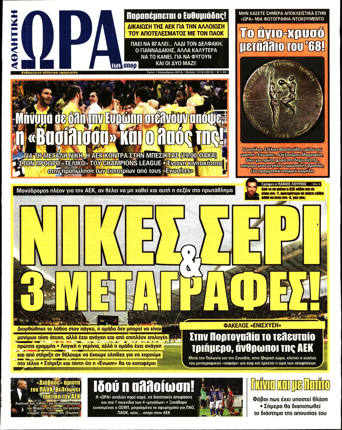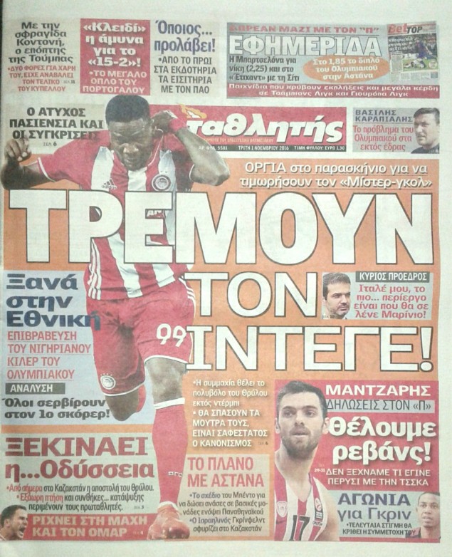 Οι αθλητικές εφημερίδες 1/11/2016 Κώστας Τεό 02:26, Τρίτη 01 Νοεμβρίου 2016 Media Διαβάστε τα σημερινά πρωτοσέλιδα των αθλητικών εφημερίδων: Μοιράσου το: σχολίασε κι εσύ (0 σχόλια) Ακολουθήστε το enikos.gr στο Google News και μάθετε πρώτοι όλες τις ειδήσεις Δείτε όλες τις τελευταίες ειδήσεις από την Ελλάδα και τον Κόσμο στο enikos.gr Ειδήσεις Ροή Ειδήσεων 55 λεπτά πριν Πούτιν: «Ανοησίες» και «υστερίες» οι ισχυρισμοί της Ευρώπης για πιθανή σύγκρουση με τη Ρωσία – «Κάνουν πλύση εγκεφάλου» 5 ώρες πριν Έρευνα MRB: Η πρόθεση ψήφου και τα σημαντικότερα προβλήματα – Οι «λέξεις» που εκφράζουν τους πολίτες 2 ώρες πριν Αμοργός: «Θα προσπαθήσω να το κάνω κάθε μέρα» – Ποιος είναι ο αγρότης που έστησε μόνος του το πρώτο μπλόκο στο νησί 4 λεπτά πριν Τραγωδία στην Αλεξανδρούπολη: Παιδάκι 3 ετών μεταφέρθηκε νεκρό από τη μητέρα του στο νοσοκομείο 45 λεπτά πριν Συνάντηση Μητσοτάκη με την Κ.Ο. της ΝΔ: Οι αφίξεις των βουλευτών, τα γλυκά και τα «πηγαδάκια» 5 ώρες πριν Τα 4 ζώδια που ξαναβρίσκουν τον εαυτό τους – «Μπαίνετε επιτέλους στην ουσία των πραγμάτων» 6 ώρες πριν 20 χρόνια τα Χριστούγεννα ξεκινούν στα Public με μεγάλη ποικιλία σε δώρα! 4 ώρες πριν «Δεν είχα κλάψει από τότε που διαγνώστηκα με καρκίνο, ώσπου ένα τηλεφώνημα με έκανε να λυγίσω» – Η συγκλονιστική εξομολόγηση ενός άνδρα 3 ώρες πριν Τα 7 σπάνια χαρακτηριστικά που κάνουν κάποιους ανθρώπους ακαταμάχητους 3 λεπτά πριν Χριστουγεννιάτικη γιορτή με τον Σάκη Ρούβα στον ξενώνα «Μαριάννα Β. Βαρδινογιάννη-ΕΛΠΙΔΑ» 4 λεπτά πριν Τραγωδία στην Αλεξανδρούπολη: Παιδάκι 3 ετών μεταφέρθηκε νεκρό από τη μητέρα του στο νοσοκομείο 5 λεπτά πριν Βουλή: Άρση της ασυλίας της Ζωής Κωνσταντοπούλου για μήνυση συκοφαντικής δυσφήμισης 10 λεπτά πριν Ο σπάνιος σεισμός που έλυσε τα χέρια των επιστημόνων – Αποκάλυψε ακριβώς όσα αναζητούσαν 14 λεπτά πριν Τζιτζικώστας από το Στρασβούργο: «Σανίδα σωτηρίας για την ευρωπαϊκή αυτοκινητοβιομηχανία η νέα δέσμη μέτρων που υιοθετήσαμε – Κινητήρες εσωτερικής καύσης και υβριδικά οχήματα και μετά το 2035» ENIKOS NETWORK 5 πράγματα που αποφεύγει γαστρεντερολόγος για να μειώσει τον κίνδυνο καρκίνου του εντέρου Ανησυχητική αύξηση της υπέρτασης στα παιδιά – Πώς θα τα προστατέψουμε; «IRIS Παντού»: Στην κορυφή της Ευρώπης η Ελλάδα με 120 εκατ. ευρώ συναλλαγές το 2025 – Η σύγκριση με τις άλλες χώρες της Ευ... Αδειοδωρόσημο Χριστουγέννων 2025: Πότε γίνεται η καταβολή του και σε ποιους Σύγχρονος Νοστράδαμος: Προειδοποιεί για «μεγάλο γεγονός» τους επόμενους μήνες που θα συγκλονίσει τη Βρετανία και τον κόσμο Τεστ παρατηρητικότητας: Μπορείτε να βρείτε τις 3 διαφορές στις εικόνες με έναν πιγκουίνο σε 14 δευτερόλεπτα περισσότερα 12:35 , Τετάρτη 17 Δεκεμβρίου 2025 Μίρκα Παπακωνσταντίνου: «Δεν ήμουν αισιόδοξη για τα νούμερα – Είμαι ρεαλίστρια» Στα γυρίσματα του εορταστικού επεισοδίου της αγαπημένης σειράς “Το Σόι Σου”, βρέθηκε η κάμερα ... 12:12 , Τετάρτη 17 Δεκεμβρίου 2025 Ακούστε την εκπομπή του Νίκου Χατζηνικολάου 17/12/2025 Ακούστε την εκπομπή του Νίκου Χατζηνικολάου στον ραδιοφωνικό σταθμό RealFm 97,8, την Τετάρτη 1... 11:35 , Τετάρτη 17 Δεκεμβρίου 2025 Home Alone: Το σπίτι της ταινίας θα ανακαινιστεί – Επιστροφή στην αισθητική της δεκαετίας του ’90 Οι νέοι ιδιοκτήτες του πραγματικού σπιτιού που παρουσιάζεται στην κλασική ταινία του 1990 «Hom... 11:25 , Τετάρτη 17 Δεκεμβρίου 2025 Grand Hotel: Απόψε το τελευταίο επεισόδιο της χρονιάς – Όλα τα μυστικά μένουν εδώ Το τελευταίο επεισόδιο της χρ