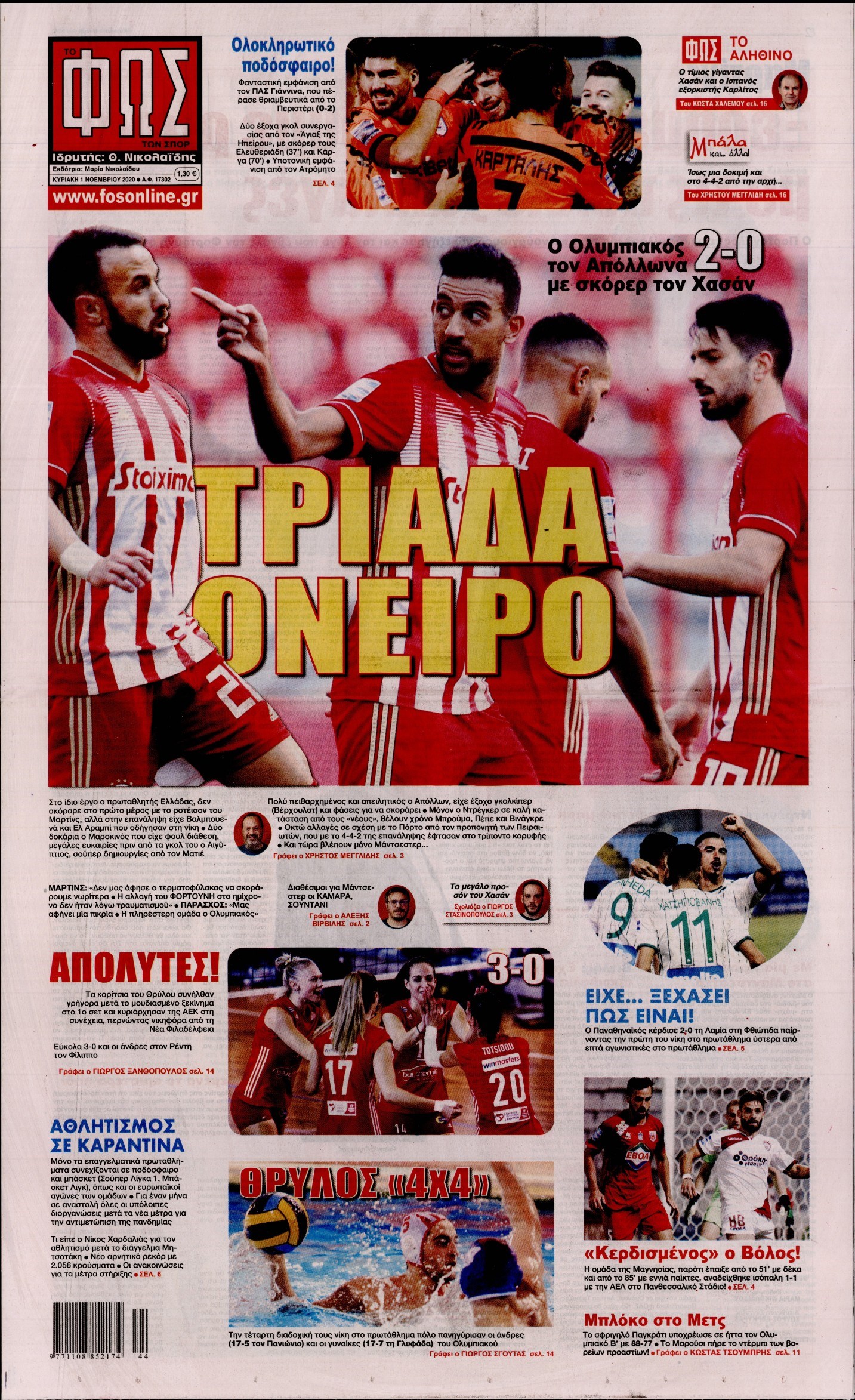 Οι αθλητικές εφημερίδες 1/11/2020 Διονύσης Νίκκας 07:40, Κυριακή 01 Νοεμβρίου 2020 Media Διαβάστε τα πρωτοσέλιδα των αθλητικών εφημερίδων… ΑΘΛΗΤΙΚΕΣ ΕΦΗΜΕΡΙΔΕΣ Μοιράσου το: σχολίασε κι εσύ (0 σχόλια) Ακολουθήστε το enikos.gr στο Google News και μάθετε πρώτοι όλες τις ειδήσεις Δείτε όλες τις τελευταίες ειδήσεις από την Ελλάδα και τον Κόσμο στο enikos.gr Ειδήσεις Ροή Ειδήσεων 4 ώρες πριν Χριστούγεννα στα μπλόκα: Επιμένουν στις κινητοποιήσεις τους οι αγρότες – Ανοίγουν τα διόδια το Σαββατοκύριακο 5 ώρες πριν Ουκρανία: Η άνευ προηγουμένου επίθεση σε ρωσικό τάνκερ στη Μεσόγειο και το μήνυμα προς στον Πούτιν – Το «μακρύ χέρι» του Κιέβου 4 ώρες πριν Πούτιν: Τα μηνύματα σε Ευρώπη και ΝΑΤΟ από το μαραθώνιο «σόου» του – Η απαίτηση για «σεβασμό» και η ειρήνη «με τους όρους» της Μόσχας 5 ώρες πριν Τραμπ: Δεν αποκλείει την πιθανότητα ενός πολέμου στη Βενεζουέλα – «Ο Μαδούρο ξέρει καλύτερα από τον καθένα τι ακριβώς θέλω» 5 ώρες πριν Συνεχίζει να προκαλεί ο Μίτσκοσκι: «Για μένα το όνομα Μακεδονία είναι ιερό» 4 ώρες πριν Ανακαλύφθηκαν αρχαία χρυσά νομίσματα 2.200 ετών που απεικονίζουν τον θεό Απόλλωνα – Η άγνωστη σύνδεση με τον Φίλιππο Β΄ της Μακεδονίας 5 ώρες πριν Ύπνος: Μια κρυφή κατάσταση του εγκεφάλου πριν από τον ύπνο μπορεί να είναι το “κλειδί” για υψηλή ευφυΐα και δημιουργικότητα 6 ώρες πριν Αριθμολογία: Οι άνθρωποι που έχουν γεννηθεί αυτές τις 4 ημερομηνίες, συχνά παρεξηγούνται – «Η καλοσύνη τους κρύβει τεράστια δύναμη» 7 ώρες πριν Ξεχάστε το καθάρισμα το Σαββατοκύριακο: Ο «κανόνας των 20 λεπτών» που θα σας λύσει τα χέρια 20 λεπτά πριν Θεσσαλονίκη: Εξαφανίστηκε 13χρονος από χώρο φιλοξενίας ασυνόδευτων ανηλίκων στο Ωραιόκαστρο 31 λεπτά πριν Ντόναλντ Τραμπ: «Πολύ βαριά αντίποινα» στη Συρία – «Πλήττουμε πολύ δυνατά οχυρά του Ισλαμικού Κράτους» 45 λεπτά πριν Εξάρχεια: Ένταση με μολότοφ, χημικά και κρότου λάμψης 1 ώρα πριν ΗΠΑ: Τραγωδία στην Αλαμπάμα – Σκότωσε την δημοσιογράφο σύζυγό του και αυτοκτόνησε μπροστά στον 3χρονο γιο τους 1 ώρα πριν Πρόταση γάμου στο ΣΕΦ κατά την διάρκεια του αγώνα Ολυμπιακός-Βιλερμπάν – Δείτε βίντεο ENIKOS NETWORK Το ΕΚΑΒ τιμήθηκε από την Ακαδημία Αθηνών για τα 40 χρόνια προσφοράς του Έχετε πραγματικά μεγάλη καρδιά; 10 χαρακτηριστικά όσων έχουν καλοσύνη Αναστολή μέτρων αναγκαστικής εκτέλεσης για κτηνοτρόφους που πλήττονται από την ευλογιά των αιγοπροβάτων Πλήρης επάρκεια προϊόντων στις λαϊκές της Αττικής, παρά τις αγροτικές κινητοποιήσεις – Τι απαντούν οι πωλητές Χαρτογραφώντας το «σημείο χωρίς επιστροφή»: Για πρώτη φορά αποκαλύπτεται με λεπτομέρεια το ακανθώδες όριο της ατμόσφαιρας τ... Η Google καταργεί τη λειτουργία «dark web report» – Πώς θα μπορούν οι χρήστες να διαγράφουν τα δεδομένα τους περισσότερα 22:42 , Παρασκευή 19 Δεκεμβρίου 2025 Γιώργος Γιαννόπουλος για “Το σόι σου”: “Είναι ευτυχία και ευλογία αυτή η σειρά” «Είναι ευτυχία και ευλογία η συγκυρία αυτής της σειράς», θα πει ο Γιώργος Γιαννόπουλος -ο αγαπ... 20:37 , Παρασκευή 19 Δεκεμβρίου 2025 Don’t Forget The Lyrics: Η Έλλη Κοκκίνου υποδέχεται 4 παίκτες που θα κάνουν τα πάντα για να μη χάσουν ούτε… μισή λέξη από τους στίχους Το «Don’t Forget The Lyrics» επιστρέφει απόψε, Παρασκευή 19 Δεκεμβρίου, στις 21:00 με νέο επει... 19:31 , Παρασκευή 19 Δεκεμβρίου 2025 GNTM: Απόψε ο μεγάλος τελικός για τους 4 φιναλίστ Έπειτα από μήνες γεμάτους μόδα, δημιουργία και έντονες αναμετρήσεις, το GNTM 2025 κορυφώνεται,... 18:11 , Παρασκευή 19 Δεκεμβρίου 2025 Το σόι σου: Ο Άρης