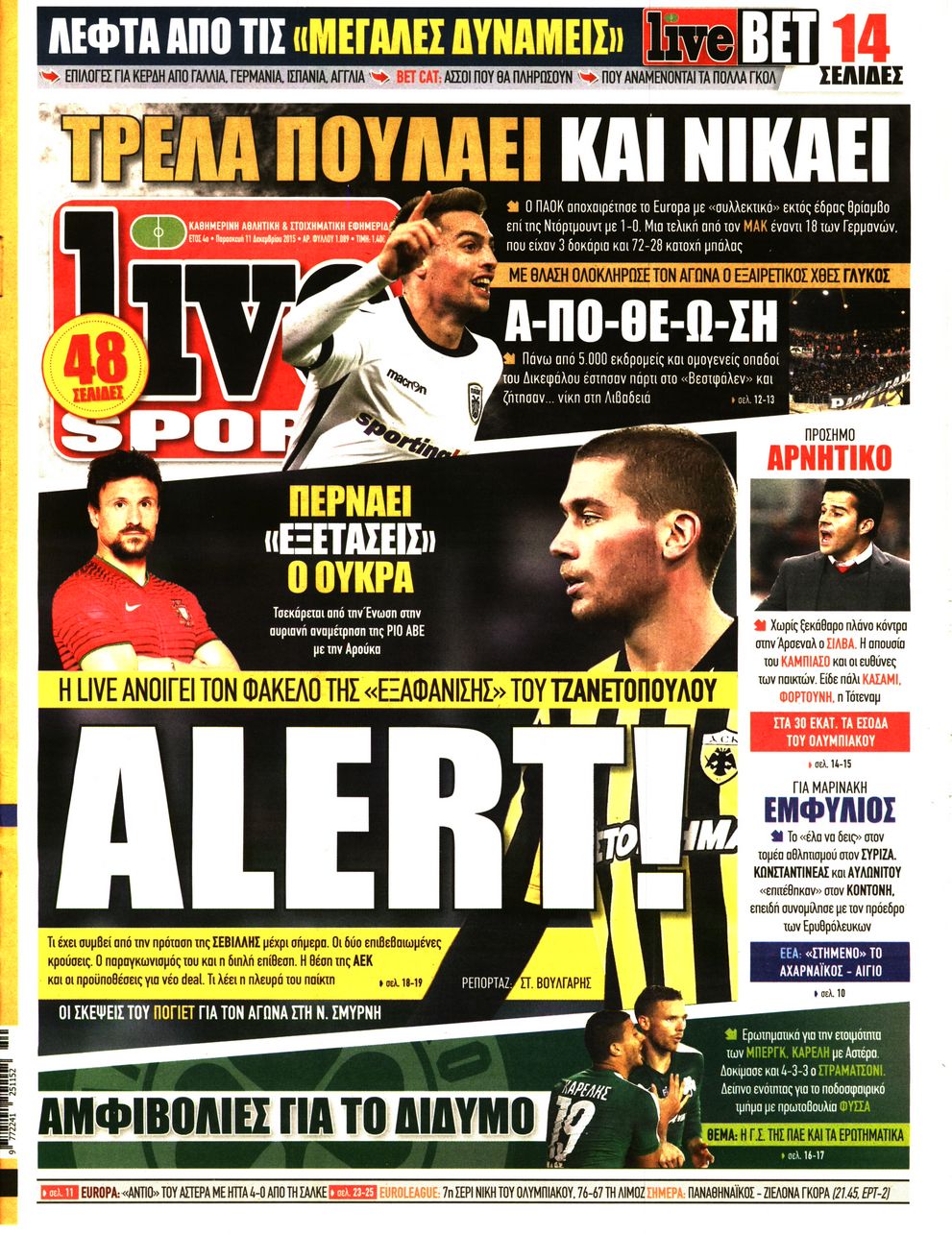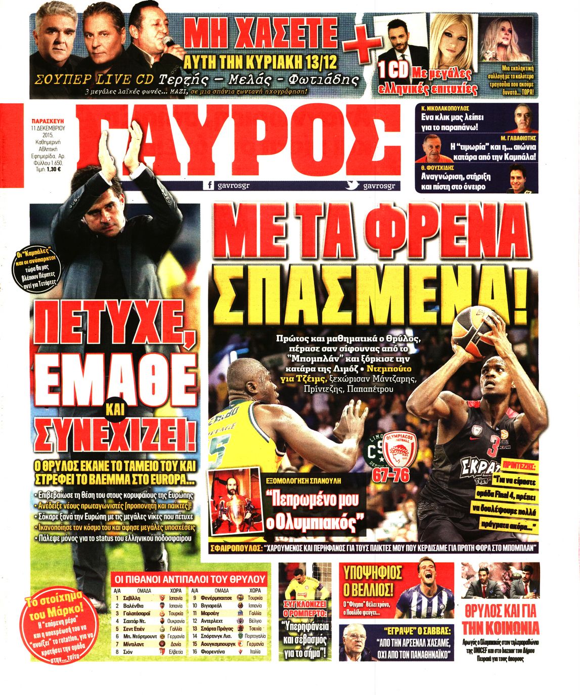 Oι αθλητικές εφημερίδες 11/12/2015 Enikos Newsroom 06:05, Παρασκευή 11 Δεκεμβρίου 2015 Media Διαβάστε τα σημερινά πρωτοσέλιδα των αθλητικών εφημερίδων: ΑΘΛΗΤΙΚΕΣ ΕΦΗΜΕΡΙΔΕΣ ΠΡΩΤΟΣΕΛΙΔΑ Μοιράσου το: σχολίασε κι εσύ (0 σχόλια) Ακολουθήστε το enikos.gr στο Google News και μάθετε πρώτοι όλες τις ειδήσεις Δείτε όλες τις τελευταίες ειδήσεις από την Ελλάδα και τον Κόσμο στο enikos.gr Ειδήσεις Ροή Ειδήσεων 1 ώρα πριν Δημοσκόπηση Metron Analysis: Στις 10 μονάδες η διαφορά ΝΔ-ΠΑΣΟΚ, στην 3η θέση η Πλεύση Ελευθερίας – 8 στους 10 στηρίζουν τον αγώνα των αγροτών 6 ώρες πριν Αγρότες: «Όχι στον διάλογο, μας εμπαίζει η κυβέρνηση» – Αποφάσισαν κλιμάκωση των κινητοποιήσεων, τι θα γίνει τα Χριστούγεννα 1 ώρα πριν Νίκος Παππάς στον ΑΝΤ1: «Δεν κρύβομαι – Μετά το συμβάν ακολούθησα κανονικά το πρόγραμμά μου» – ΒΙΝΤΕΟ 3 ώρες πριν Αθήνα: Εξαρθρώθηκε εγκληματική οργάνωση που διακινούσε ναρκωτικά σε μορφή σοκολάτας – Δύο τράπερ ανάμεσα στους 4 συλληφθέντες – ΒΙΝΤΕΟ 56 λεπτά πριν Διαμαντής Καραναστάσης: Οδηγούσε υπό την επήρεια αλκοόλ – Του αφαιρέθηκε το δίπλωμα και του επιβλήθηκε πρόστιμο 350 ευρώ 1 ώρα πριν Manifesting: Πώς να συναντήσετε τον σύντροφο της ζωής σας, ανάλογα με τον μήνα γέννησής σας 3 ώρες πριν Γάμος: 11 ψυχρές αλλά ευγενικές φράσεις, που λέει ένας άνδρας όταν σκέφτεται τον χωρισμό 2 ώρες πριν Σφουγγάρισμα: Η συνήθεια που θα σας βοηθήσει να διατηρήσετε το σπίτι σας καθαρό και τακτοποιημένο 2 ημέρες πριν 20 χρόνια τα Χριστούγεννα ξεκινούν στα Public με μεγάλη ποικιλία σε δώρα! 6 λεπτά πριν Τσιάρας: Δεν θα κινδυνέψουν οι πληρωμές των αγροτών – Χρειαζόμαστε μια νέα πολιτική, ένα restart 13 λεπτά πριν Δέσποινα Βανδή: Το βίντεο που δημοσίευσε με τον Γιώργο Νικολαΐδη – «Έχουμε καταστραφεί από τα μελομακάρονά σου» 19 λεπτά πριν Κλήρωση ΤΖΟΚΕΡ 18/12/2025: Αυτοί είναι οι τυχεροί αριθμοί 21 λεπτά πριν Τραμπ: Ζητεί από την Ουκρανία να “κινηθεί γρήγορα” στις διαπραγματεύσεις για το τέλος της σύγκρουσης 27 λεπτά πριν Ύπνος: Η απλή βραδινή ρουτίνα για να προστατεύσετε τα μαλλιά σας από το κρύο κατά τη διάρκεια του χειμώνα ENIKOS NETWORK Σε περίοδο αυξημένης δραστηριότητας η γρίπη στην Ελλάδα-Μέτρα προστασίας από τον ΕΟΔΥ Σκέφτεστε συνέχεια συζητήσεις που έχετε κάνει; Τι σημαίνει αυτό, σύμφωνα με ειδικό ΑΣΕΠ 2ΓΒ/2025: Σήμερα αρχίζει η υποβολή ενστάσεων – Πότε θα βγουν τα οριστικά αποτελέσματα ΕΛΤΑ: Αυτό είναι το νέο σχέδιο μετασχηματισμού του Οργανισμού- Τι δήλωσαν Πιερρακάκης και Παπαστεργίου Χαρτογραφώντας το «σημείο χωρίς επιστροφή»: Για πρώτη φορά αποκαλύπτεται με λεπτομέρεια το ακανθώδες όριο της ατμόσφαιρας τ... Η Google καταργεί τη λειτουργία «dark web report» – Πώς θα μπορούν οι χρήστες να διαγράφουν τα δεδομένα τους περισσότερα 17:45 , Πέμπτη 18 Δεκεμβρίου 2025 ROUK ZOUK: Εορταστικό επεισόδιο με καλεσμένους τους πρωταγωνιστές του «Γιατί ρε πατέρα» Το Σάββατο 20 Δεκεμβρίου στις 21:00, η Ζέτα Μακρυπούλια υποδέχεται εκλεκτούς ηθοποιούς που όλο... 17:20 , Πέμπτη 18 Δεκεμβρίου 2025 Άγιος έρωτας: Η Χριστίνα εξομολογείται στον πατέρα Νικόλαο, απόψε στις 21:00 στον Alpha Η Νότα αποφασίζει να εκδικηθεί τον Πέτρο και τον Στέφανο, για χάρη του Λούη, όμως τα πράγματα ... 16:50 , Πέμπτη 18 Δεκεμβρίου 2025 Να μ’ αγαπάς: Ζωή και Φωτεινή συμφιλιώνονται ως μάνα με κόρη, απόψε στις 20:00 Η ταυτότητα του Άγγελου αποκαλύπτεται στο νέο επεισόδιο της σειράς “Να μ’ αγαπάς... 15:52 , Πέμπτη 18 Δεκεμβρίου 2025 Το Σπίτι Δίπλα Στο Ποτάμι: Το καθηλωτικό τελευταίο επεισόδιο για το 2025 απόψε στις 22:30 Καθηλών