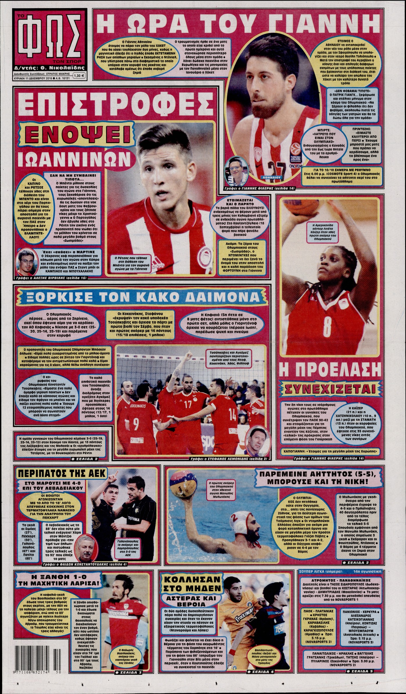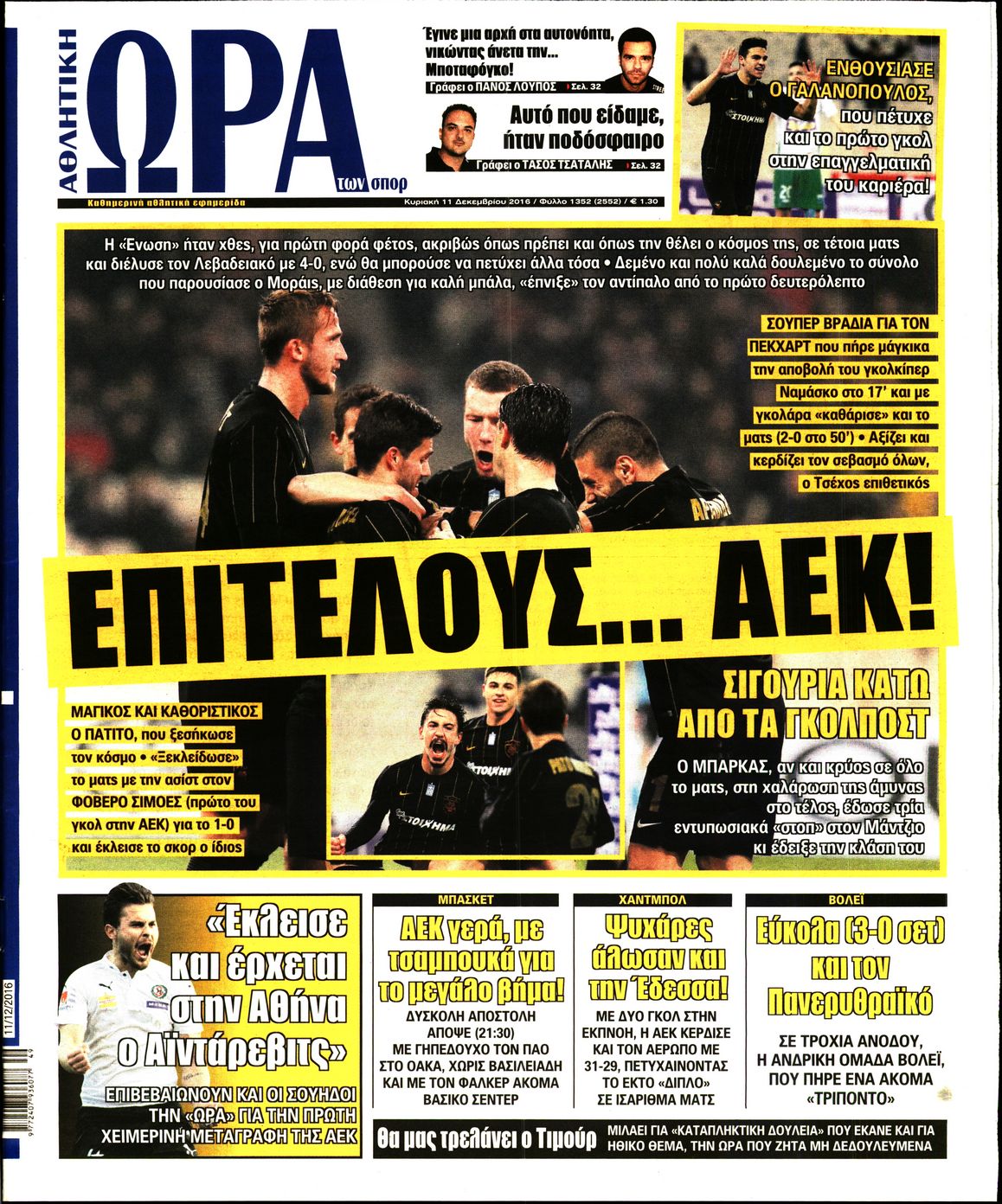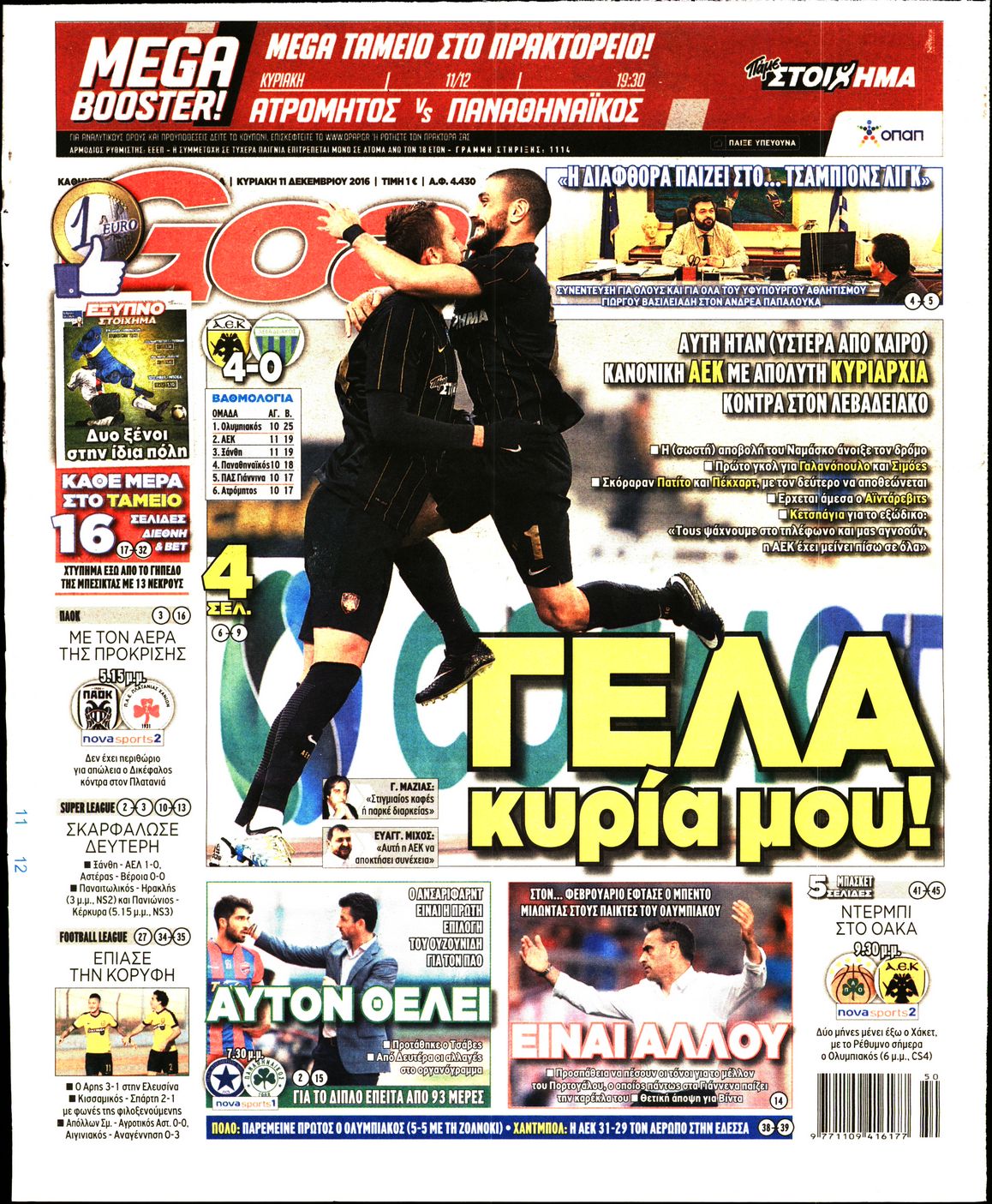 Οι αθλητικές εφημερίδες 11/12/2016 Enikos Newsroom 02:20, Κυριακή 11 Δεκεμβρίου 2016 Media Διαβάστε τα σημερινά πρωτοσέλιδα των αθλητικών εφημερίδων: ΑΘΛΗΤΙΚΕΣ ΕΦΗΜΕΡΙΔΕΣ ΠΡΩΤΟΣΕΛΙΔΑ Μοιράσου το: σχολίασε κι εσύ (0 σχόλια) Ακολουθήστε το enikos.gr στο Google News και μάθετε πρώτοι όλες τις ειδήσεις Δείτε όλες τις τελευταίες ειδήσεις από την Ελλάδα και τον Κόσμο στο enikos.gr Ειδήσεις Ροή Ειδήσεων 2 ώρες πριν Σίδνεϊ: Βίντεο με ηλικιωμένο ζευγάρι που όρμησε για να σταματήσει τον έναν δράστη – Συγκλονιστικές μαρτυρίες για τους «ήρωες μέχρι τέλους» 22 λεπτά πριν Κατρίνης: «Ο μικρός μου γιος οδηγούσε χωρίς δίπλωμα, πράξη αδικαιολόγητη και παράνομη – Ο νόμος ισχύει για όλους» 3 ώρες πριν Κυψέλη: Υπό κατάληψη το σχολείο που η 16χρονη μαχαίρωσε συμμαθήτριά της – Την είχαν διώξει από προηγούμενο 18 λεπτά πριν Τσιάρας: Καλούμε τους αγρότες να έρθουν να συζητήσουμε για την επίλυση του θέματος 2 ώρες πριν «Το θαύμα των Χριστουγέννων»: Σκύλος που εξαφανίστηκε το 2021 βρέθηκε σε καταφύγιο ζώων σε απόσταση 3.200 χιλιομέτρων – ΒΙΝΤΕΟ 1 ώρα πριν Τέλος η μοναξιά για 3 ζώδια μετά τις 16 Δεκεμβρίου – «Ξαναβρίσκετε τον εαυτό σας» 5 ώρες πριν Οπτική ψευδαίσθηση: Μόνο 1 στους 10 ανθρώπους θα βρει το κόκκινο αυγό σε 7 δευτερόλεπτα 3 ώρες πριν Ανακαλύφθηκε περίτεχνη μαρμάρινη μπανιέρα που επαναχρησιμοποιήθηκε ως κρήνη 2 ώρες πριν Η πεθερά της την κατηγορεί πως δεν την ταΐζει σωστά – «Δεν παραπονιέται όμως στον γιο της» 6 λεπτά πριν Οι άνθρωποι που φαίνονται «τυχεροί» στη ζωή τους, συνήθως έχουν αυτές τις 8 αθόρυβες συνήθειες 6 λεπτά πριν Καινούργιου: «Με την εγκυμοσύνη προς το παρόν ξεχνάω, δεν βλέπω, δεν ακούω…» 11 λεπτά πριν ΕΕ: Η Κομισιόν παρουσιάζει σήμερα σχέδιο για την αντιμετώπιση της στεγαστικής κρίσης – Προτείνει πλαφόν στα Airbnb 16 λεπτά πριν Ντόναλντ Τραμπ Τζούνιορ: Αρραβωνιάστηκε για τρίτη φορά – «Εκλεκτή» της καρδιάς του η κοσμική Μπετίνα Άντερσον 18 λεπτά πριν Τσιάρας: Καλούμε τους αγρότες να έρθουν να συζητήσουμε για την επίλυση του θέματος ENIKOS NETWORK Οι ρίζες της άνοιας ίσως βρίσκονται στην παιδική ηλικία – Τι έδειξαν πρόσφατες μελέτες Όμιλος ΠΡΟΣΥΦΑΠΕ: Επιστρέφει στην κοινωνία τμήμα της υπεραξίας που παράγει Τα μυστικά για τις μεταβιβάσεις ακινήτων – Αναλυτικός οδηγός Προϋπολογισμός 2026: Η ομιλία Μητσοτάκη στη Βουλή- Τι θα πει για το αγροτικό, το στεγαστικό και το πακέτο μέτρων του 2026 Σύγχρονος Νοστράδαμος: Προειδοποιεί για «μεγάλο γεγονός» τους επόμενους μήνες που θα συγκλονίσει τη Βρετανία και τον κόσμο Τεστ παρατηρητικότητας: Μπορείτε να βρείτε τις 3 διαφορές στις εικόνες με έναν πιγκουίνο σε 14 δευτερόλεπτα περισσότερα 09:58 , Τρίτη 16 Δεκεμβρίου 2025 LIVE – Ακούστε την εκπομπή του Νίκου Χατζηνικολάου 16/12/2025 Ακούστε την εκπομπή του Νίκου Χατζηνικολάου, στον Realfm 97,8. Ακούστε LIVE εδώ 09:26 , Τρίτη 16 Δεκεμβρίου 2025 Τηλεθέαση (15/12): Τα νούμερα για την prime time – Ποιες σειρές ξεχώρισαν Ξεκάθαρη πρωτιά στην τηλεθέαση κατέκτησε η σειρά «Μια νύχτα μόνο», η οποία βρέθηκε στην κορυφή... 08:00 , Τρίτη 16 Δεκεμβρίου 2025 Την Κυριακή με τη Realnews: Δωροεπιταγή 10€ Δωροεπιταγή αξίας 10€ για αγορές άνω των 60€ από τα πολυκαταστήματα FactoryOutlet H προσφορά ι... 05:48 , Τρίτη 16 Δεκεμβρίου 2025 Οι οικονομικές εφημερίδες 16/12/2025 Διαβάστε τα πρωτοσέλιδα από τις οικονομικές εφημερίδες, σήμερα 16/12/2025. ΤΕΛΕΥΤΑΙΕΣ ΕΙΔΗΣΕΙΣ 6 λεπτά πριν Καινούργιου: «Με την εγκυμοσύνη προς το παρόν ξεχνάω,... 11 λεπτά πριν ΕΕ: Η Κομισιόν παρουσιάζει σήμερα σχέδιο για την.