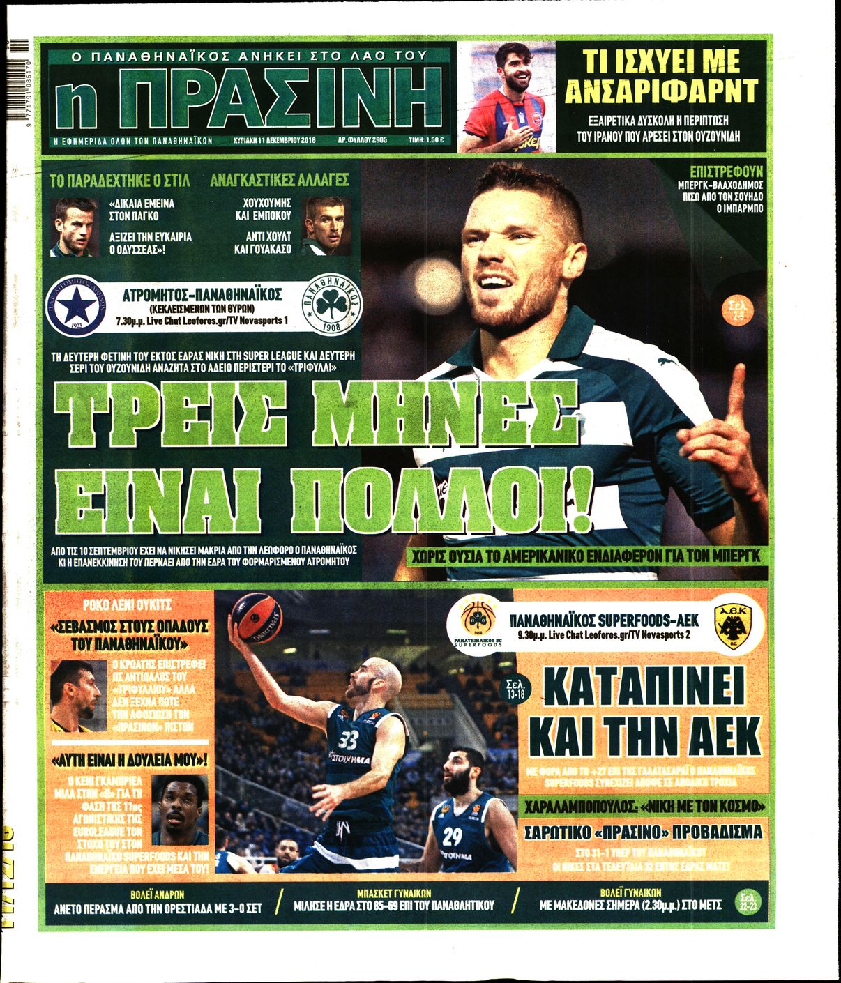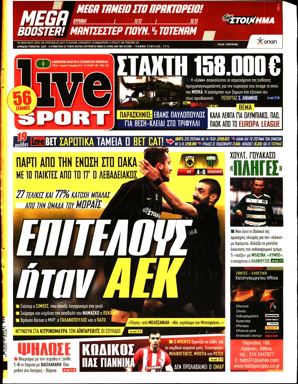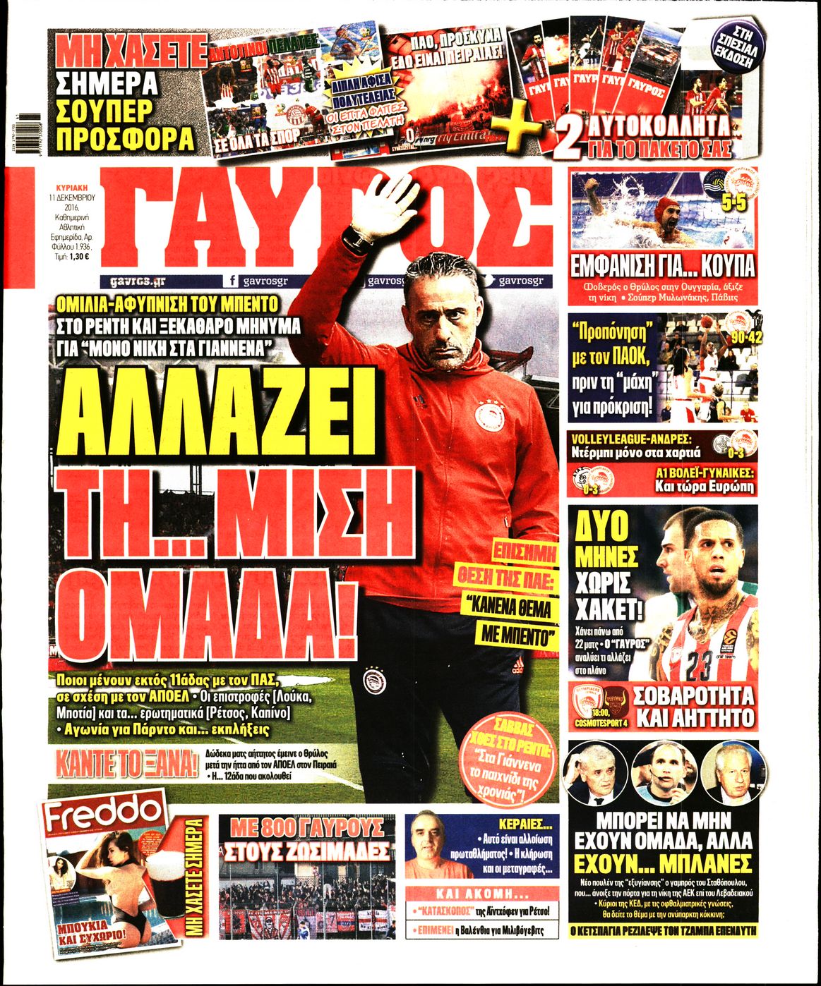 Οι αθλητικές εφημερίδες 11/12/2016 Enikos Newsroom 02:20, Κυριακή 11 Δεκεμβρίου 2016 Media Διαβάστε τα σημερινά πρωτοσέλιδα των αθλητικών εφημερίδων: ΑΘΛΗΤΙΚΕΣ ΕΦΗΜΕΡΙΔΕΣ ΠΡΩΤΟΣΕΛΙΔΑ Μοιράσου το: σχολίασε κι εσύ (0 σχόλια) Ακολουθήστε το enikos.gr στο Google News και μάθετε πρώτοι όλες τις ειδήσεις Δείτε όλες τις τελευταίες ειδήσεις από την Ελλάδα και τον Κόσμο στο enikos.gr Ειδήσεις Ροή Ειδήσεων 2 ώρες πριν Σίδνεϊ: Βίντεο με ηλικιωμένο ζευγάρι που όρμησε για να σταματήσει τον έναν δράστη – Συγκλονιστικές μαρτυρίες για τους «ήρωες μέχρι τέλους» 22 λεπτά πριν Κατρίνης: «Ο μικρός μου γιος οδηγούσε χωρίς δίπλωμα, πράξη αδικαιολόγητη και παράνομη – Ο νόμος ισχύει για όλους» 3 ώρες πριν Κυψέλη: Υπό κατάληψη το σχολείο που η 16χρονη μαχαίρωσε συμμαθήτριά της – Την είχαν διώξει από προηγούμενο 18 λεπτά πριν Τσιάρας: Καλούμε τους αγρότες να έρθουν να συζητήσουμε για την επίλυση του θέματος 2 ώρες πριν «Το θαύμα των Χριστουγέννων»: Σκύλος που εξαφανίστηκε το 2021 βρέθηκε σε καταφύγιο ζώων σε απόσταση 3.200 χιλιομέτρων – ΒΙΝΤΕΟ 1 ώρα πριν Τέλος η μοναξιά για 3 ζώδια μετά τις 16 Δεκεμβρίου – «Ξαναβρίσκετε τον εαυτό σας» 5 ώρες πριν Οπτική ψευδαίσθηση: Μόνο 1 στους 10 ανθρώπους θα βρει το κόκκινο αυγό σε 7 δευτερόλεπτα 3 ώρες πριν Ανακαλύφθηκε περίτεχνη μαρμάρινη μπανιέρα που επαναχρησιμοποιήθηκε ως κρήνη 2 ώρες πριν Η πεθερά της την κατηγορεί πως δεν την ταΐζει σωστά – «Δεν παραπονιέται όμως στον γιο της» 6 λεπτά πριν Οι άνθρωποι που φαίνονται «τυχεροί» στη ζωή τους, συνήθως έχουν αυτές τις 8 αθόρυβες συνήθειες 6 λεπτά πριν Καινούργιου: «Με την εγκυμοσύνη προς το παρόν ξεχνάω, δεν βλέπω, δεν ακούω…» 11 λεπτά πριν ΕΕ: Η Κομισιόν παρουσιάζει σήμερα σχέδιο για την αντιμετώπιση της στεγαστικής κρίσης – Προτείνει πλαφόν στα Airbnb 16 λεπτά πριν Ντόναλντ Τραμπ Τζούνιορ: Αρραβωνιάστηκε για τρίτη φορά – «Εκλεκτή» της καρδιάς του η κοσμική Μπετίνα Άντερσον 18 λεπτά πριν Τσιάρας: Καλούμε τους αγρότες να έρθουν να συζητήσουμε για την επίλυση του θέματος ENIKOS NETWORK Οι ρίζες της άνοιας ίσως βρίσκονται στην παιδική ηλικία – Τι έδειξαν πρόσφατες μελέτες Όμιλος ΠΡΟΣΥΦΑΠΕ: Επιστρέφει στην κοινωνία τμήμα της υπεραξίας που παράγει Τα μυστικά για τις μεταβιβάσεις ακινήτων – Αναλυτικός οδηγός Προϋπολογισμός 2026: Η ομιλία Μητσοτάκη στη Βουλή- Τι θα πει για το αγροτικό, το στεγαστικό και το πακέτο μέτρων του 2026 Σύγχρονος Νοστράδαμος: Προειδοποιεί για «μεγάλο γεγονός» τους επόμενους μήνες που θα συγκλονίσει τη Βρετανία και τον κόσμο Τεστ παρατηρητικότητας: Μπορείτε να βρείτε τις 3 διαφορές στις εικόνες με έναν πιγκουίνο σε 14 δευτερόλεπτα περισσότερα 09:58 , Τρίτη 16 Δεκεμβρίου 2025 LIVE – Ακούστε την εκπομπή του Νίκου Χατζηνικολάου 16/12/2025 Ακούστε την εκπομπή του Νίκου Χατζηνικολάου, στον Realfm 97,8. Ακούστε LIVE εδώ 09:26 , Τρίτη 16 Δεκεμβρίου 2025 Τηλεθέαση (15/12): Τα νούμερα για την prime time – Ποιες σειρές ξεχώρισαν Ξεκάθαρη πρωτιά στην τηλεθέαση κατέκτησε η σειρά «Μια νύχτα μόνο», η οποία βρέθηκε στην κορυφή... 08:00 , Τρίτη 16 Δεκεμβρίου 2025 Την Κυριακή με τη Realnews: Δωροεπιταγή 10€ Δωροεπιταγή αξίας 10€ για αγορές άνω των 60€ από τα πολυκαταστήματα FactoryOutlet H προσφορά ι... 05:48 , Τρίτη 16 Δεκεμβρίου 2025 Οι οικονομικές εφημερίδες 16/12/2025 Διαβάστε τα πρωτοσέλιδα από τις οικονομικές εφημερίδες, σήμερα 16/12/2025. ΤΕΛΕΥΤΑΙΕΣ ΕΙΔΗΣΕΙΣ 6 λεπτά πριν Καινούργιου: «Με την εγκυμοσύνη προς το παρόν ξεχνάω,... 11 λεπτά πριν ΕΕ: Η Κομισιόν παρουσιάζει σήμερα σχέδιο για την.