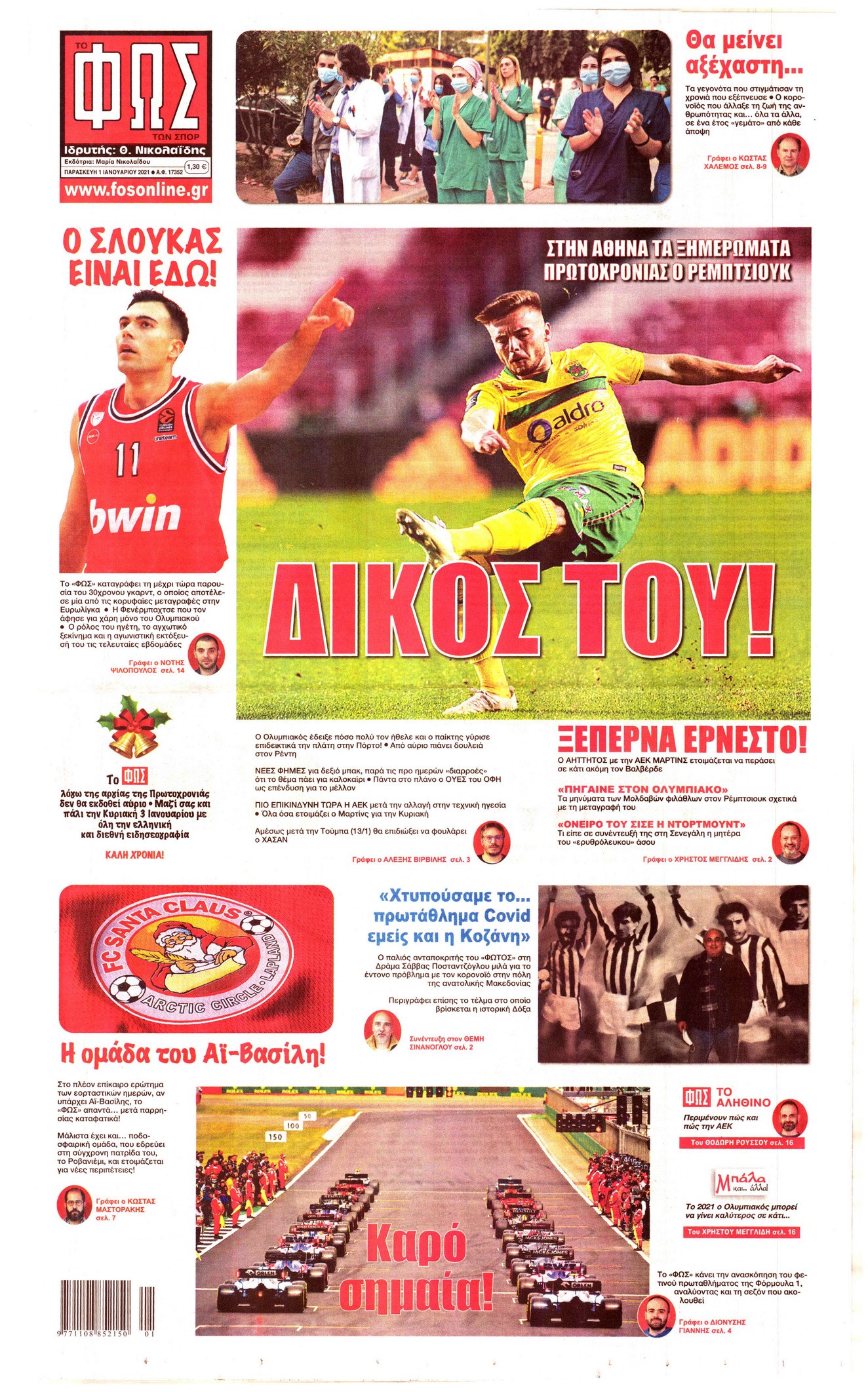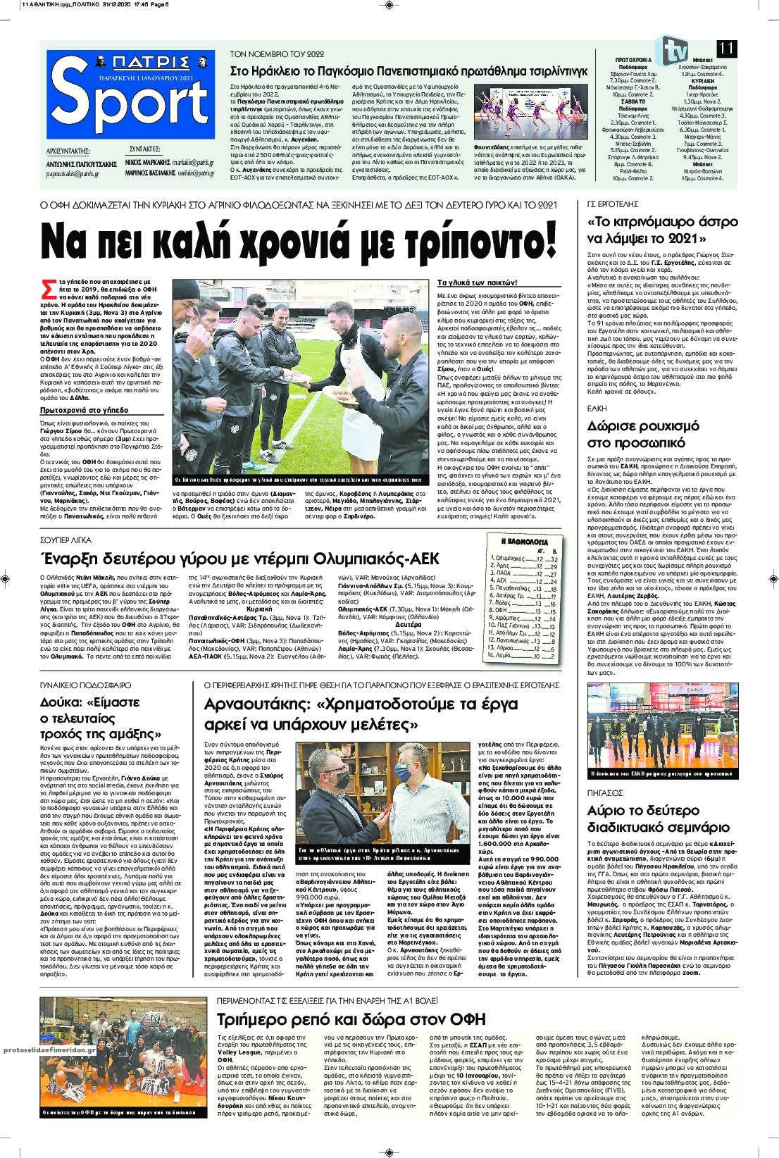 Οι αθλητικές εφημερίδες 1/1/2021 Σήφης Γαρυφαλάκης 07:34, Παρασκευή 01 Ιανουαρίου 2021 Media Διαβάστε τα πρωτοσέλιδα των αθλητικών εφημερίδων… ΑΘΛΗΤΙΚΕΣ ΕΦΗΜΕΡΙΔΕΣ ΕΦΗΜΕΡΙΔΕΣ ΠΡΩΤΟΣΕΛΙΔΑ ΠΡΩΤΟΣΕΛΙΔΑ ΕΦΗΜΕΡΙΔΩΝ Μοιράσου το: σχολίασε κι εσύ (0 σχόλια) Ακολουθήστε το enikos.gr στο Google News και μάθετε πρώτοι όλες τις ειδήσεις Δείτε όλες τις τελευταίες ειδήσεις από την Ελλάδα και τον Κόσμο στο enikos.gr Ειδήσεις Ροή Ειδήσεων 50 λεπτά πριν ΣΥΡΙΖΑ: Διαγράφεται ο ευρωβουλευτής Νίκος Παππάς μετά την μήνυση δημοσιογράφου για ξυλοδαρμό 2 ώρες πριν Πώς στήθηκε η επιχείρηση «Ίπαλλος» που οδήγησε στη σύλληψη του «Έλληνα Εσκομπάρ» – «Ο πόλεμος ενάντια στους εμπόρους ναρκωτικών θα συνεχιστεί» 2 ώρες πριν Δίκη Χρυσής Αυγής: Την ενοχή και των 42 κατηγορουμένων ζητά η εισαγγελέας 2 ώρες πριν Κυψέλη: Στη φυλακή η 16χρονη που μαχαίρωσε συμμαθήτριά της 5 ώρες πριν Αμοργός: «Θα προσπαθήσω να το κάνω κάθε μέρα» – Ποιος είναι ο αγρότης που έστησε μόνος του το πρώτο μπλόκο στο νησί 2 ώρες πριν Τα 3 ζώδια που θα δουν τη ζωή τους να αλλάζει ριζικά το 2026 – «Όλα γίνονται καλύτερα σταδιακά» 7 ώρες πριν «Δεν είχα κλάψει από τότε που διαγνώστηκα με καρκίνο, ώσπου ένα τηλεφώνημα με έκανε να λυγίσω» – Η συγκλονιστική εξομολόγηση ενός άνδρα 3 ώρες πριν Ο σπάνιος σεισμός που έλυσε τα χέρια των επιστημόνων – Αποκάλυψε ακριβώς όσα αναζητούσαν 9 ώρες πριν 20 χρόνια τα Χριστούγεννα ξεκινούν στα Public με μεγάλη ποικιλία σε δώρα! 4 λεπτά πριν ΑΣΕΠ: Οι προσωρινοί πίνακες για 4.276 θέσεις επιτυχόντων του πρώτου γραπτού διαγωνισμού – Η διαδικασία για τις ενστάσεις 10 λεπτά πριν Αίγινα: Βλάβη στον υποθαλάσσιο αγωγό του νησιού – «Προσωρινά από τις γεωτρήσεις του Δήμου η κάλυψη των αναγκών ύδρευσης» 16 λεπτά πριν Βασιλιάς Κάρολος: Η κίνηση απομόνωσης προς τον αδελφό του Άντριου, στο γεύμα των Χριστουγέννων 21 λεπτά πριν Παύλος Μαρινάκης για Νίκο Παππά: Έπρεπε να χειροδικήσει για να αναγκαστεί ο ΣΥΡΙΖΑ να τον διαγράψει 28 λεπτά πριν Ελένη Βασάρα: Ανοιχτό το ενδεχόμενο καθαίρεσης της Καρυστιανού από την προεδρία του Συλλόγου Θυμάτων Τεμπών – Η ανάρτηση του Δημήτρη Πλακιά ENIKOS NETWORK Γιατί αναζητούμε τα Χριστούγεννα όλο και νωρίτερα; Ποιοι οι ψυχολογικοί και οι συναισθηματικοί λόγοι Σοβαροί κίνδυνοι από τη λάθος χορήγηση φαρμάκου για τις αιμορραγίες-Συστάσεις προς τους γιατρούς Δάνεια σε ελβετικό φράγκο: Αύριο η κατάθεση της τροπολογίας στη Βουλή – Όλες οι λεπτομέρειες Επίδομα παιδιού: Πότε θα δοθεί η τελευταία δόση για το 2025 από τον ΟΠΕΚΑ και τι πρέπει να γνωρίζετε Χαρτογραφώντας το «σημείο χωρίς επιστροφή»: Για πρώτη φορά αποκαλύπτεται με λεπτομέρεια το ακανθώδες όριο της ατμόσφαιρας τ... Η Google καταργεί τη λειτουργία «dark web report» – Πώς θα μπορούν οι χρήστες να διαγράφουν τα δεδομένα τους περισσότερα 12:35 , Τετάρτη 17 Δεκεμβρίου 2025 Μίρκα Παπακωνσταντίνου: «Δεν ήμουν αισιόδοξη για τα νούμερα – Είμαι ρεαλίστρια» Στα γυρίσματα του εορταστικού επεισοδίου της αγαπημένης σειράς “Το Σόι Σου”, βρέθηκε η κάμερα ... 12:12 , Τετάρτη 17 Δεκεμβρίου 2025 Ακούστε την εκπομπή του Νίκου Χατζηνικολάου 17/12/2025 Ακούστε την εκπομπή του Νίκου Χατζηνικολάου στον ραδιοφωνικό σταθμό RealFm 97,8, την Τετάρτη 1... 11:35 , Τετάρτη 17 Δεκεμβρίου 2025 Home Alone: Το σπίτι της ταινίας θα ανακαινιστεί – Επιστροφή στην αισθητική της δεκαετίας του ’90 Οι νέοι ιδιοκτήτες του πραγματικού σπιτιού που παρουσιάζεται στην κλασική ταινία του 1990 «Hom... 11:25 , Τετάρτη 17 Δεκεμβρίου 2025 G