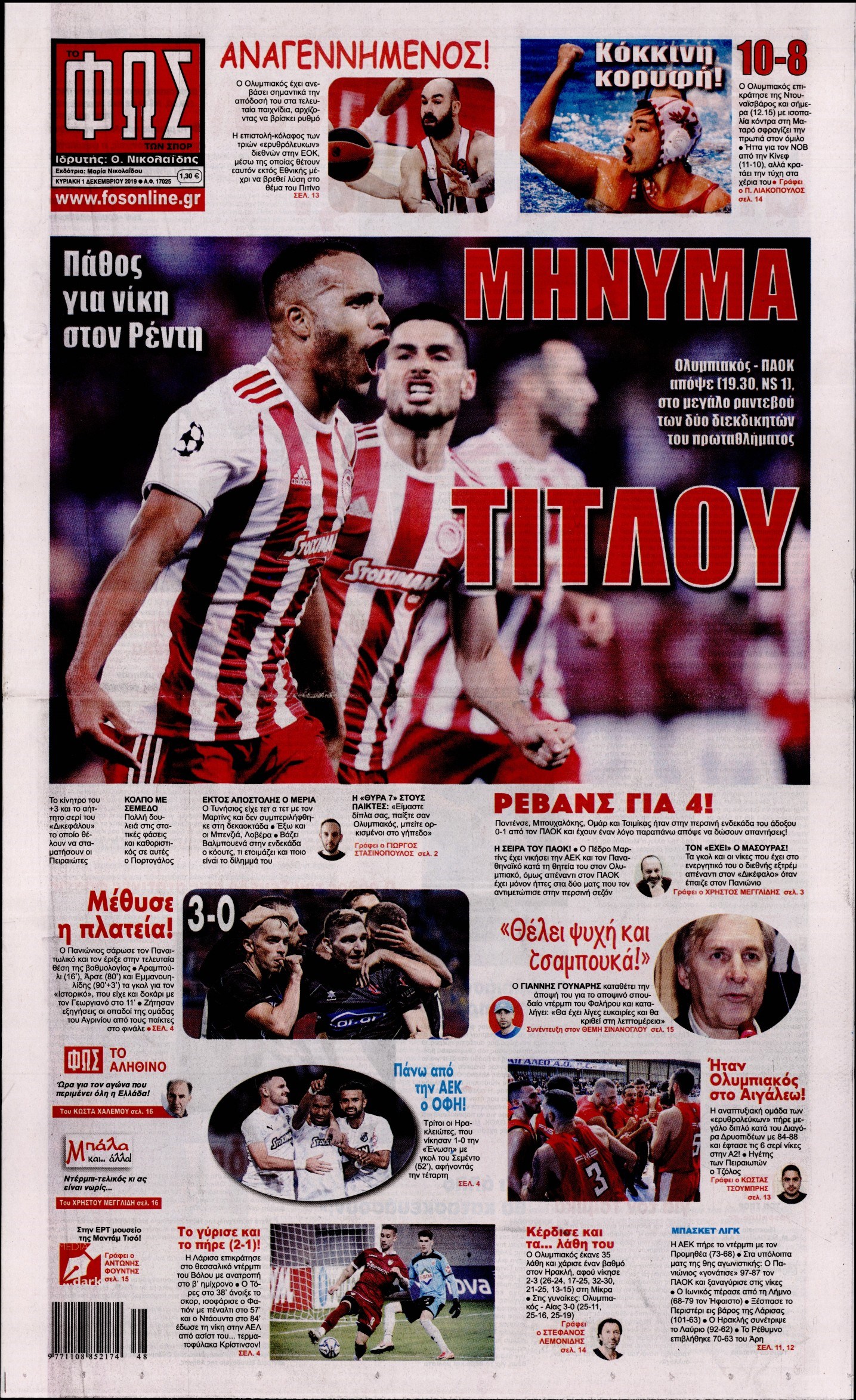Οι αθλητικές εφημερίδες 1/12/19 Διονύσης Νίκκας 07:51, Κυριακή 01 Δεκεμβρίου 2019 Media Διαβάστε τα πρωτοσέλιδα των αθλητικών εφημερίδων… ΑΘΛΗΤΙΚΕΣ ΕΦΗΜΕΡΙΔΕΣ Μοιράσου το: σχολίασε κι εσύ (0 σχόλια) Ακολουθήστε το enikos.gr στο Google News και μάθετε πρώτοι όλες τις ειδήσεις Δείτε όλες τις τελευταίες ειδήσεις από την Ελλάδα και τον Κόσμο στο enikos.gr Ειδήσεις Ροή Ειδήσεων 2 ώρες πριν Εκτός ευρωομάδας ΣΥΡΙΖΑ ο Νίκος Παππάς μετά την επίθεση στον δημοσιογράφο Νίκο Γιαννόπουλο – Η μήνυση και οι νέες δηλώσεις 2 ώρες πριν «Αγριεύουν» οι αγρότες: «Δεν συντρέχει λόγος συνάντησης με τον πρωθυπουργό» – Ώρα αποφάσεων στη σύσκεψη της Πέμπτης 2 ώρες πριν Κυψέλη: Χωρίς την οικογένειά της δίπλα της απολογήθηκε η 16χρονη – «Της είχε επιτεθεί κάποιος για να την βιάσει, φοβήθηκε και κυκλοφορούσε με μαχαίρι» 2 ώρες πριν Politico: Το πρόβλημα της Ευρώπης δεν είναι το Βέλγιο αλλά ο Ντόναλντ Τραμπ 3 ώρες πριν Αλεξανδρούπολη: Πολυοργανική ανεπάρκεια λόγω υποσιτισμού η αιτία θανάτου του 3χρονου αγοριού 2 ώρες πριν Μυστήριο με τεράστιες κυκλικές πέτρες 200 κιλών – Ανακαλύφθηκαν τυχαία κατά τη διάρκεια οδικών έργων και κανείς δεν ξέρει από πού προέρχονται 3 ώρες πριν Ύπνος: Ειδικός εξηγεί τον πραγματικό λόγο που ξυπνάτε στις 4 τα ξημερώματα – Ο ρόλος των ορμονών και του κιρκάδιου ρυθμού 4 ώρες πριν Αριθμολογία: Οι άνθρωποι που έχουν γεννηθεί αυτές τις 4 ημερομηνίες, είναι τρυφεροί και αγαπούν ανιδιοτελώς 16 ώρες πριν 20 χρόνια τα Χριστούγεννα ξεκινούν στα Public με μεγάλη ποικιλία σε δώρα! 12 λεπτά πριν Παρί Σεν Ζερμέν – Φλαμένγκο 2-1 πεν. (1-1 κ.δ.): Οι Γάλλοι σήκωσαν και το Διηπειρωτικό με ήρωα τον Σαφόνοφ που έπιασε 4 πέναλτι 27 λεπτά πριν Βέλγους πολιτικούς και επικεφαλής χρηματοπιστωτικών ιδρυμάτων στοχοποιεί η Μόσχα για τα κατασχεθέντα περιουσιακά στοιχεία 42 λεπτά πριν ΗΠΑ: Αναζητείται δεύτερος ύποπτος για την επίθεση στο πανεπιστήμιο Μπράουν 57 λεπτά πριν Λεωφόρος Αλεξάνδρας: Δεν εντοπίστηκε βόμβα έξω από το κολλέγιο – Προσήχθη άνδρας για το προειδοποιητικό σημείωμα 1 ώρα πριν Ελένη Κρίτα για το reunion του «Παρά Πέντε»: «Ήταν πραγματικά σαν να μην είχαμε χαθεί ποτέ» ENIKOS NETWORK Αϋπνία: Το κόλπο που θα σας βοηθήσει να κοιμηθείτε απόψε – Είναι απλό και έχει αποτέλεσμα 2,6 εκατομμύρια πολίτες έχουν ήδη εμβολιαστεί κατά της γρίπης ΕΛΣΤΑΤ: Τι δείχνουν τα νέα στοιχεία για τις ηλεκτρονικές παραγγελίες των επιχειρήσεων ΚΕΠΕ: Οι 3 διακριτές συμβολές των ΜμΕ και της μεταποίησης στην ελληνική οικονομία Χαρτογραφώντας το «σημείο χωρίς επιστροφή»: Για πρώτη φορά αποκαλύπτεται με λεπτομέρεια το ακανθώδες όριο της ατμόσφαιρας τ... Η Google καταργεί τη λειτουργία «dark web report» – Πώς θα μπορούν οι χρήστες να διαγράφουν τα δεδομένα τους περισσότερα 22:24 , Τετάρτη 17 Δεκεμβρίου 2025 Το Σπίτι Δίπλα Στο Ποτάμι: Σε κίνδυνο η υγεία του Απόστολου – Τι θα δούμε απόψε “Το Σπίτι Δίπλα στο Ποτάμι” ξετυλίγει το νήμα της ζωής των πέντε αδελφών με καταισ... 21:14 , Τετάρτη 17 Δεκεμβρίου 2025 Παιχνίδια Εκδίκησης: Θα καταφέρει ο Χρήστος να κλονίσει την εμπιστοσύνη της Μάγιας απέναντι στον Άγη; Τα «Παιχνίδια Εκδίκησης» έρχονται απόψε στις 22:30, στον Αντ1, με το τελευταίο επεισόδιο της χ... 20:57 , Τετάρτη 17 Δεκεμβρίου 2025 Άγιος Έρωτας: Η Χλόη καταθέτει εναντίον του πατέρα της και ο Χάρης αποκαλύπτει στον Κλεάνθη ότι δεν είναι ο βιολογικός του πατέρας. Γεμάτο αποκαλύψεις είναι το νέο επεισόδιο της σειράς “Άγιος Έρωτας” απόψε στις 21:... 20:15 , Τετάρτη 17 Δεκεμ