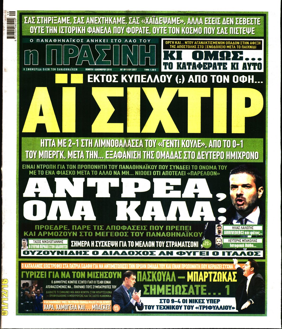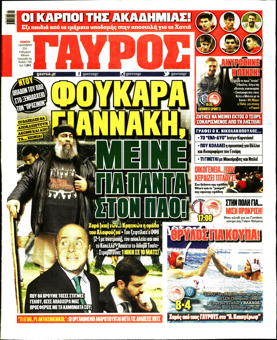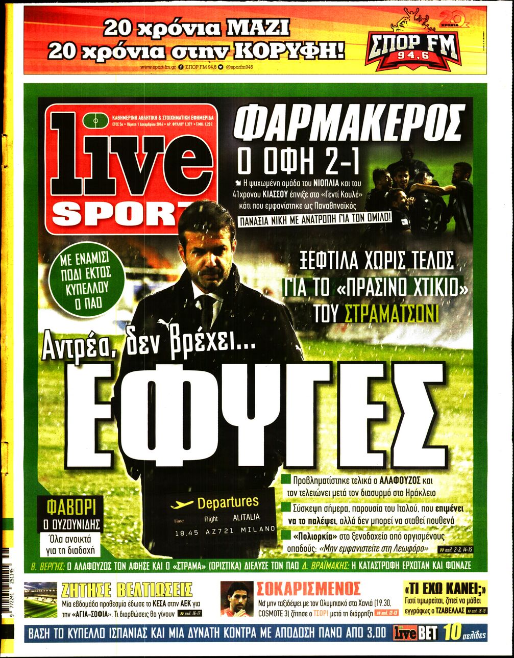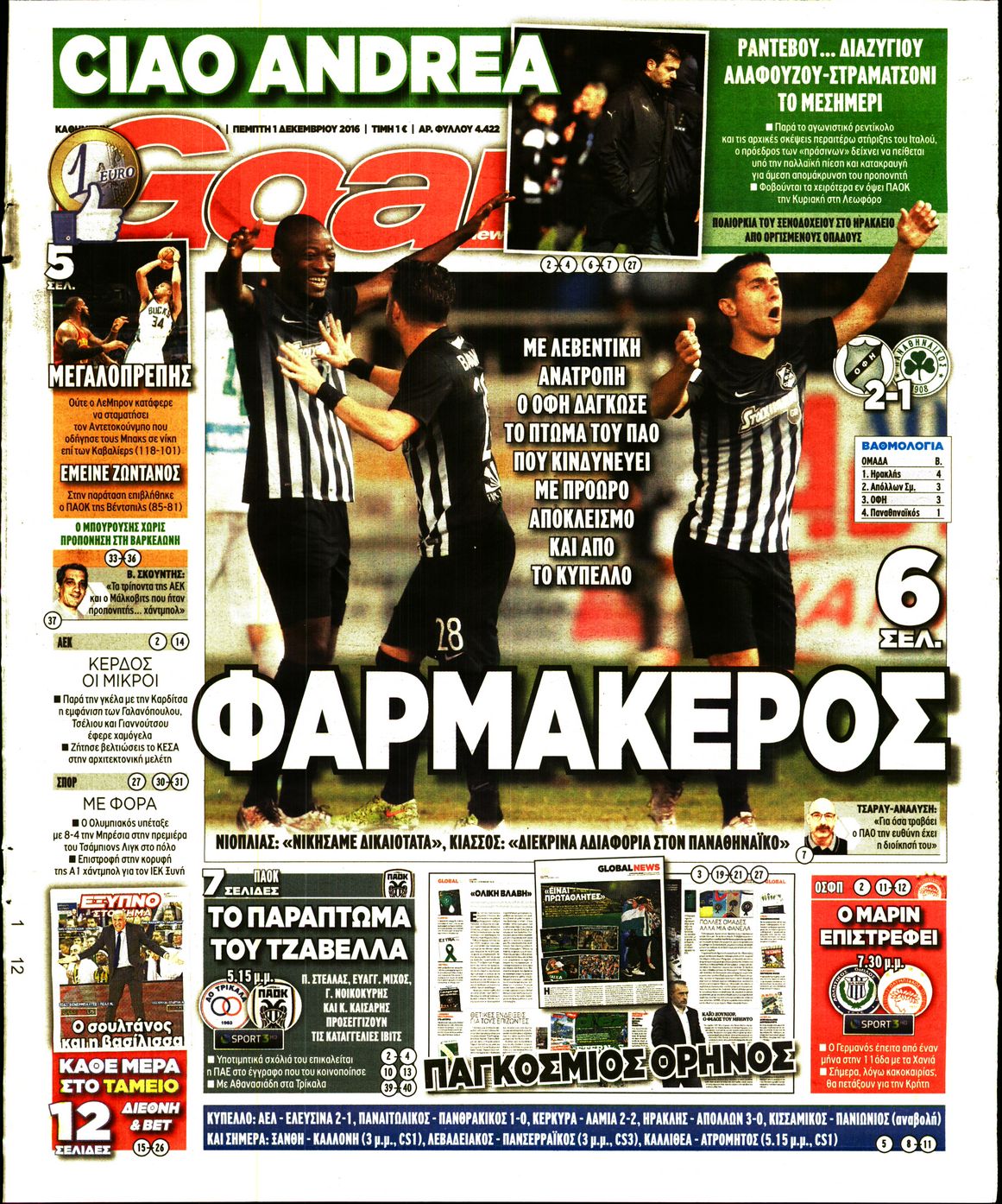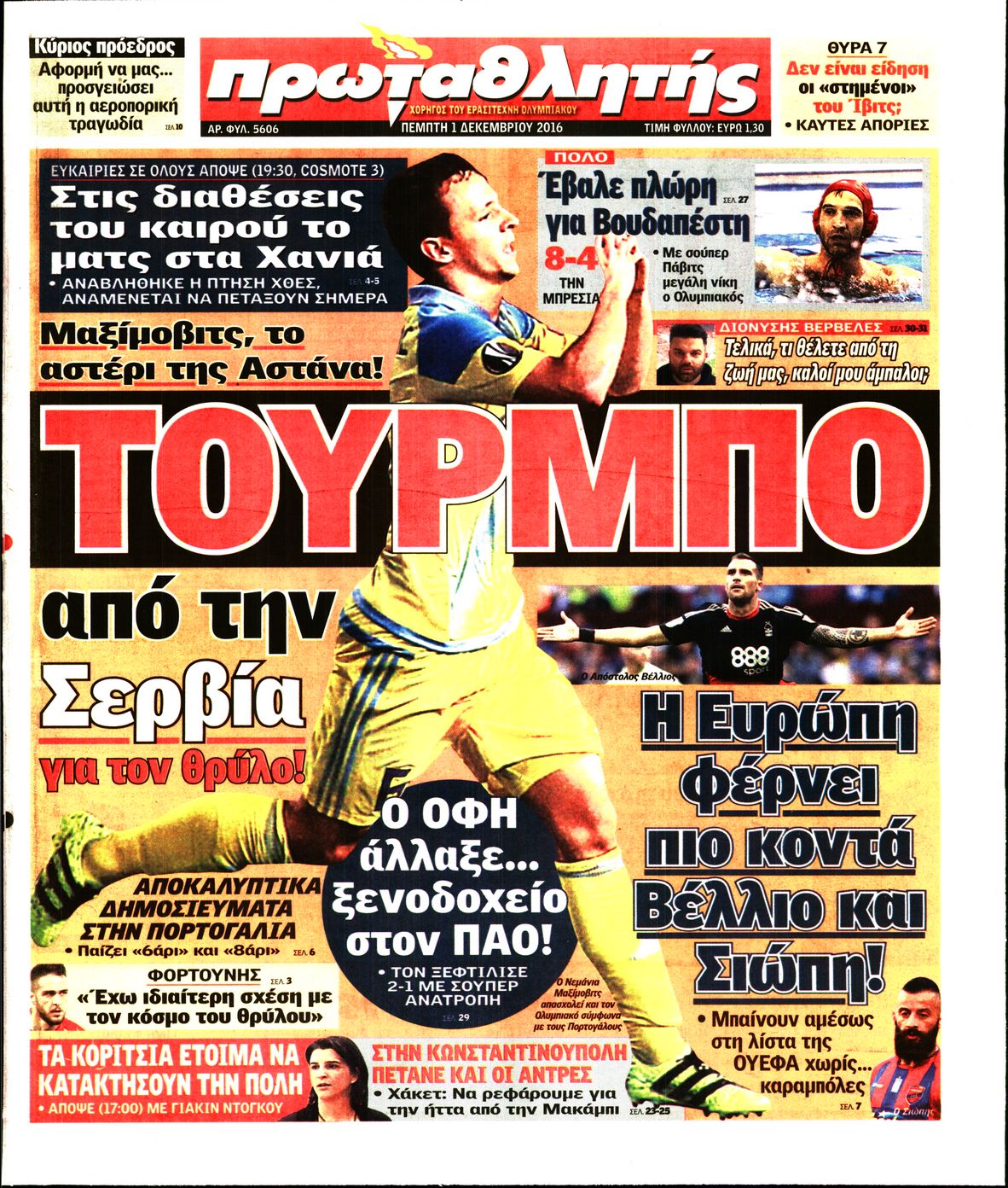 Οι αθλητικές εφημερίδες 1/12/2016 Enikos Newsroom 02:19, Πέμπτη 01 Δεκεμβρίου 2016 Media Διαβάστε τα σημερινά πρωτοσέλιδα των αθλητικών εφημερίδων: ΑΘΛΗΤΙΚΕΣ ΕΦΗΜΕΡΙΔΕΣ ΠΡΩΤΟΣΕΛΙΔΑ Μοιράσου το: σχολίασε κι εσύ (0 σχόλια) Ακολουθήστε το enikos.gr στο Google News και μάθετε πρώτοι όλες τις ειδήσεις Δείτε όλες τις τελευταίες ειδήσεις από την Ελλάδα και τον Κόσμο στο enikos.gr Ειδήσεις Ροή Ειδήσεων 2 ώρες πριν Ακίλα Σάλεχ: «Άκυρο» το τουρκολιβυκό μνημόνιο λέει ο πρόεδρος της λιβυκής Βουλής – Ανοίγει ο διάλογος με Ελλάδα, Αίγυπτο και Τουρκία 6 ώρες πριν Αγρότες: Την Τρίτη η απόφαση για διάλογο ή κλιμάκωση των κινητοποιήσεών τους – Πώς χαρακτηρίζουν τις ανακοινώσεις Τσιάρα και οι επόμενες κινήσεις 6 ώρες πριν Τραμπ για Ουκρανία: «Είμαστε πιο κοντά σε συμφωνία από ποτέ» – «Πολυεθνική δύναμη» προτείνουν οι Ευρωπαίοι 6 ώρες πριν Κυψέλη: Η 16χρονη που μαχαίρωσε την 14χρονη είχε συλληφθεί 3 φορές στο παρελθόν – Έβριζε καθηγητές, έβαζε φωτιές σε κάδους και εκβίαζε συμμαθητές της 6 ώρες πριν Τρομοκρατική επίθεση στο Σίδνεϊ: Θλίψη για τα 15 θύματα – Οργή στην εβραϊκή κοινότητα που προειδοποιούσε επί δύο χρόνια 6 ώρες πριν Επιστήμονες ίσως έλυσαν το μυστήριο γύρω από τα Χόμπιτ – Νέα έρευνα αποκαλύπτει πώς εξαφανίστηκαν 7 ώρες πριν Ύπνος: Η αρχαία μορφή άσκησης που αποδεικνύεται αποτελεσματική στην αντιμετώπιση της αϋπνίας, σύμφωνα με μελέτη 8 ώρες πριν Αριθμολογία: Ο τυχερός σας αριθμός, ανάλογα με τον μήνα γέννησής σας 9 ώρες πριν Πώς να μην μαραίνονται γρήγορα τα κομμένα λουλούδια: Το λάθος στην τοποθέτηση του βάζου που πρέπει να αποφεύγετε 8 λεπτά πριν Λίβανος: Πρόθεση του στρατού είναι να αφοπλίσει τη Χεζμπολάχ 23 λεπτά πριν Νεοκλής Αβδάλας: Συνεχίζει να εντυπωσιάζει τους Αμερικάνους – Αναδείχθηκε Rookie of the week στην περιφέρειά του στο NCAA 35 λεπτά πριν Άντονι Αλμπανέζι: Κίνητρο της φονικής επίθεσης στην παραλία Μπόνταϊ μοιάζει να ήταν η ιδεολογία του Ισλαμικού Κράτους 42 λεπτά πριν Ντόναλντ Τραμπ: Κατέθεσε αγωγή 10 δισ. δολαρίων κατά του BBC, για συκοφαντική δυσφήμιση 53 λεπτά πριν ΗΠΑ: «Όπλο μαζικής καταστροφής» xαρακτήρισε ο Ντόναλντ Τραμπ τη φαιντανύλη ENIKOS NETWORK Πότε το χρόνιο ροχαλητό να αποτελέσει ένδειξη κινδύνου για την καρδιά; Τι λένε οι ειδικοί Μάριος Θεμιστοκλέους: Το ΕΣΥ ενισχύεται, εκσυγχρονίζεται, αλλάζει ΕΒΕΠ για αγροτικές κινητοποιήσεις: Κάθε επιπλέον εβδομάδα προσθέτει περίπου 200 εκατ. ευρώ ζημιά Τι προβλέπει το νομοσχέδιο του υπουργείου Εθνικής Άμυνας – Oι αλλαγές στους μισθούς Σύγχρονος Νοστράδαμος: Προειδοποιεί για «μεγάλο γεγονός» τους επόμενους μήνες που θα συγκλονίσει τη Βρετανία και τον κόσμο Τεστ παρατηρητικότητας: Μπορείτε να βρείτε τις 3 διαφορές στις εικόνες με έναν πιγκουίνο σε 14 δευτερόλεπτα περισσότερα 21:35 , Δευτέρα 15 Δεκεμβρίου 2025 Το Σπίτι Δίπλα Στο Ποτάμι: Η Ιουλία και ο Φωκάς μετακομίζουν στη Ρόδο – Δύο νέοι χαρακτήρες μπαίνουν στη σειρά Δύο νέοι, κομβικοί χαρακτήρες κάνουν την εμφάνισή τους αυτή την εβδομάδα στην αγαπημένη σειρά ... 19:46 , Δευτέρα 15 Δεκεμβρίου 2025 Άγιος έρωτας: Η Χριστίνα λέει την αλήθεια στον Αντρέα Ο Βασίλης δέχεται επίθεση από τους συμμαθητές του, η Αναστασία είναι συντετριμμένη με την απώλ... 18:45 , Δευτέρα 15 Δεκεμβρίου 2025 Συνέδριο «Ελληνικός Τουρισμός 2025, Μια εθνική υπόθεση!» – «Ο Θαλάσσιος Πυλώνας ως Ενιαία Στρατηγική: Συνέργειες σε Λιμάνια, Μαρίνες, Ακτοπλοΐα, Κρουαζιέρα και Yachting» Στο πλαίσιο της τέταρτης και τελευταίας ενότητας του 