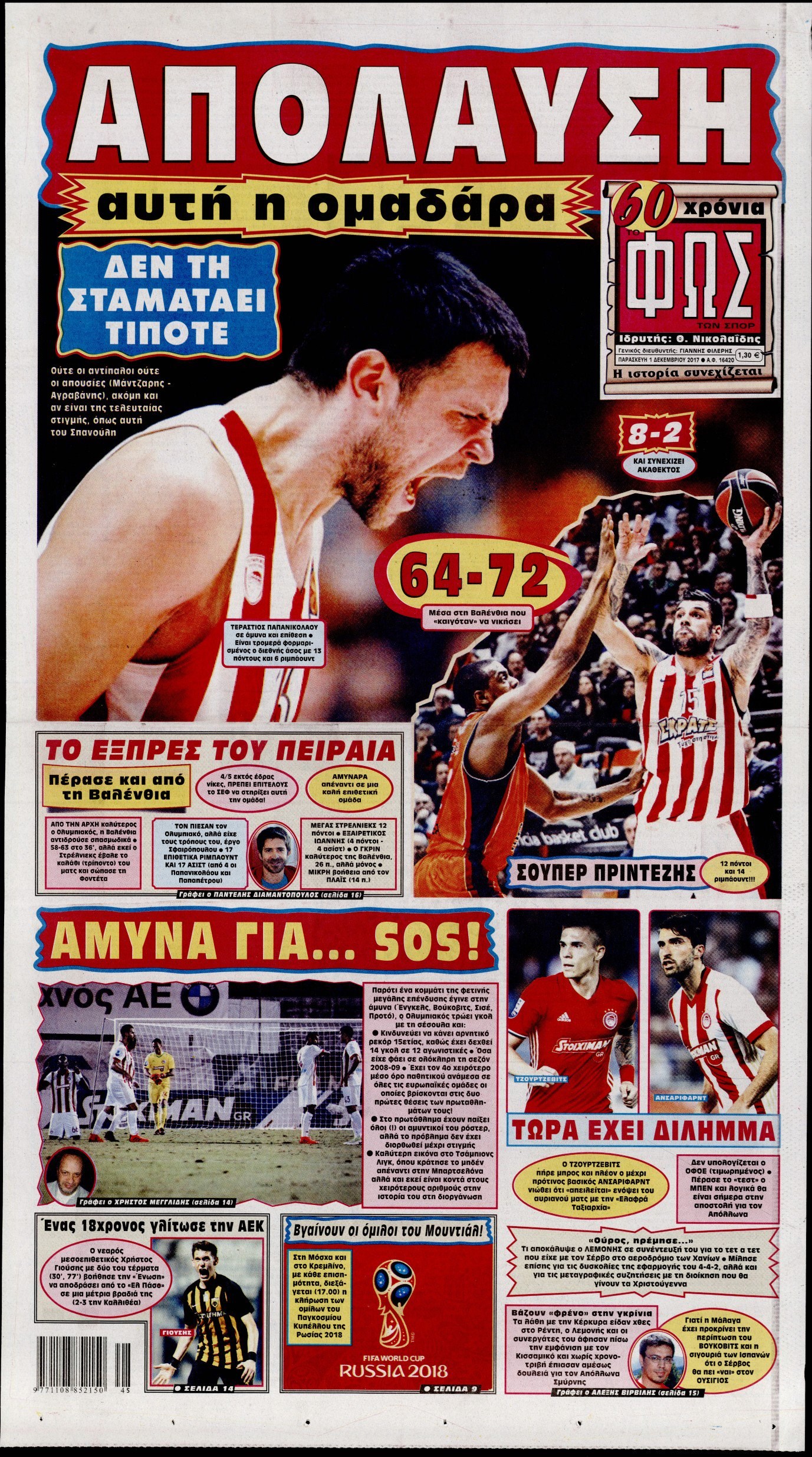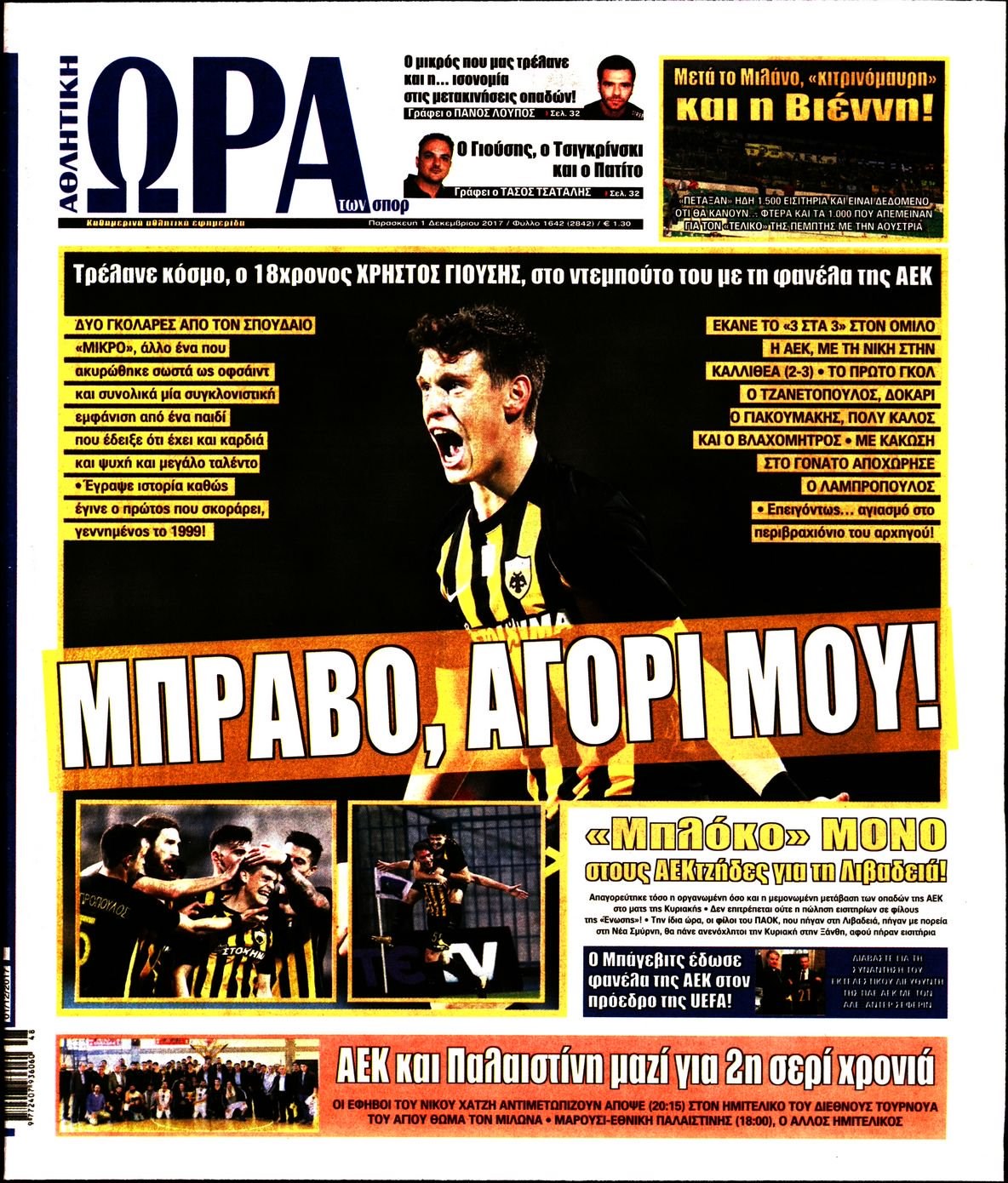 Οι αθλητικές εφημερίδες 1/12/2017 Enikos Newsroom 06:52, Παρασκευή 01 Δεκεμβρίου 2017 Media Διαβάστε τα σημερινά πρωτοσέλιδα των αθλητικών εφημερίδων: ΑΘΛΗΤΙΚΕΣ ΕΦΗΜΕΡΙΔΕΣ ΠΡΩΤΟΣΕΛΙΔΑ Μοιράσου το: σχολίασε κι εσύ (0 σχόλια) Ακολουθήστε το enikos.gr στο Google News και μάθετε πρώτοι όλες τις ειδήσεις Δείτε όλες τις τελευταίες ειδήσεις από την Ελλάδα και τον Κόσμο στο enikos.gr Ειδήσεις Ροή Ειδήσεων 3 ώρες πριν Από το Ορμένιο ως τα Μάλγαρα κι από τη Σιάτιστα μέχρι τη Νίκαια: Μπλόκα σε όλη την Ελλάδα – Το Σάββατο ανοίγουν τα διόδια οι αγρότες 1 ώρα πριν Εμπλοκή και αερομαχίες με οπλισμένα τουρκικά F-16 στο Αιγαίο 3 ώρες πριν Αττική: Θρίλερ με νεκρό βρέφος 5 μηνών – Κοιμόταν στο ίδιο κρεβάτι με τους γονείς του 54 λεπτά πριν Πούτιν: «Ναι, είμαι ερωτευμένος» – Βίντεο από τη σπάνια προσωπική παραδοχή του 3 ώρες πριν Μεσόγειος: Η διαδρομή του ρωσικού τάνκερ «Qendil» και η στοχευμένη επίθεση της Ουκρανίας με drone – Ο Πούτιν προειδοποίησε για αντίποινα 5 ώρες πριν Τα 5 ζώδια που ευνοούνται στην ερωτική ζωή τους την επόμενη εβδομάδα – «Η ενέργεια του Αιγόκερου φέρνει αγάπη και σταθερότητα» 6 ώρες πριν Αυτό το έξυπνο μαθηματικό κόλπο θα μπορούσε να αλλάξει τον τρόπο με τον οποίο οι επιστήμονες μελετούν τους σεισμούς 2 ώρες πριν Μήπως έχετε χάσει τον εαυτό σας στη σχέση σας; 7 «αθόρυβες» υποχωρήσεις που μάλλον κάνατε, χωρίς να το συνειδητοποιήσετε 4 ώρες πριν Κουίζ για την παλιά Αθήνα: Αναγνωρίζετε την περιοχή; Έχετε περάσει 100% από εκεί 6 λεπτά πριν Don’t Forget The Lyrics: Η Έλλη Κοκκίνου υποδέχεται 4 παίκτες που θα κάνουν τα πάντα για να μη χάσουν ούτε… μισή λέξη από τους στίχους 12 λεπτά πριν Πλεύρης στον ΑΝΤ1: Η βασική πολιτική που ψηφίστηκε από τους υπουργούς Μετανάστευσης είναι η δημιουργία κέντρων κράτησης μεταναστών στην Αφρική – ΒΙΝΤΕΟ 17 λεπτά πριν Η εξομολόγηση της Νίκης Σερέτη: «Δεν κρύβω ότι ήταν πάρα πολύ δύσκολο όλο αυτό που βίωσα» 22 λεπτά πριν Αγρότες: Κλειστό ξανά το ρεύμα εισόδου στα Μάλγαρα – Άνοιξαν τον κόμβο της Χαλκηδόνας 27 λεπτά πριν Νίκος Γιαννόπουλος: «Μου επιτέθηκε ο Παππάς – Ήμουν νηφάλιος, δεν τον προκάλεσα» – ΒΙΝΤΕΟ ENIKOS NETWORK Έχετε πραγματικά μεγάλη καρδιά; 10 χαρακτηριστικά όσων έχουν καλοσύνη «Η σούπερ» γρίπη εξαπλώνεται στην Ευρώπη-Στοιχεία από το ECDC για την αποτελεσματικότητα του εμβολίου Επίδομα παιδιού: Πότε ανοίγει ξανά η πλατφόρμα για τις αιτήσεις Προκήρυξη ΑΣΕΠ για 397 μόνιμες προσλήψεις στο Δημόσιο: Βγήκαν τα προσωρινά αποτελέσματα – Πότε αρχίζει η υποβολή ενστάσεων Χαρτογραφώντας το «σημείο χωρίς επιστροφή»: Για πρώτη φορά αποκαλύπτεται με λεπτομέρεια το ακανθώδες όριο της ατμόσφαιρας τ... Η Google καταργεί τη λειτουργία «dark web report» – Πώς θα μπορούν οι χρήστες να διαγράφουν τα δεδομένα τους περισσότερα 20:37 , Παρασκευή 19 Δεκεμβρίου 2025 Don’t Forget The Lyrics: Η Έλλη Κοκκίνου υποδέχεται 4 παίκτες που θα κάνουν τα πάντα για να μη χάσουν ούτε… μισή λέξη από τους στίχους Το «Don’t Forget The Lyrics» επιστρέφει απόψε, Παρασκευή 19 Δεκεμβρίου, στις 21:00 με νέο επει... 19:31 , Παρασκευή 19 Δεκεμβρίου 2025 GNTM: Απόψε ο μεγάλος τελικός για τους 4 φιναλίστ Έπειτα από μήνες γεμάτους μόδα, δημιουργία και έντονες αναμετρήσεις, το GNTM 2025 κορυφώνεται,... 18:11 , Παρασκευή 19 Δεκεμβρίου 2025 Το σόι σου: Ο Άρης έρχεται στην Ελλάδα για τις γιορτές των Χριστουγέννων – Τι θα δούμε στο αποψινό εορταστικό επεισόδιο Ένα απολαυστικό, εορταστικό επεισόδιο της σειράς “Το σόι σου”, γεμάτο ευτράπελα αλ... 15:15 , Παρασκευή 19 Δεκεμβρίου 2025 