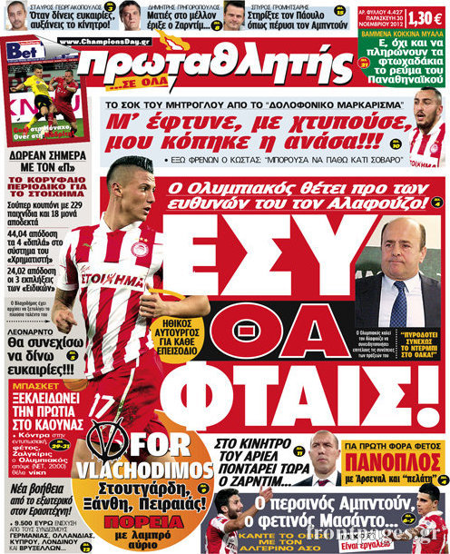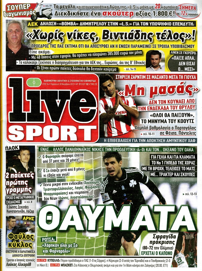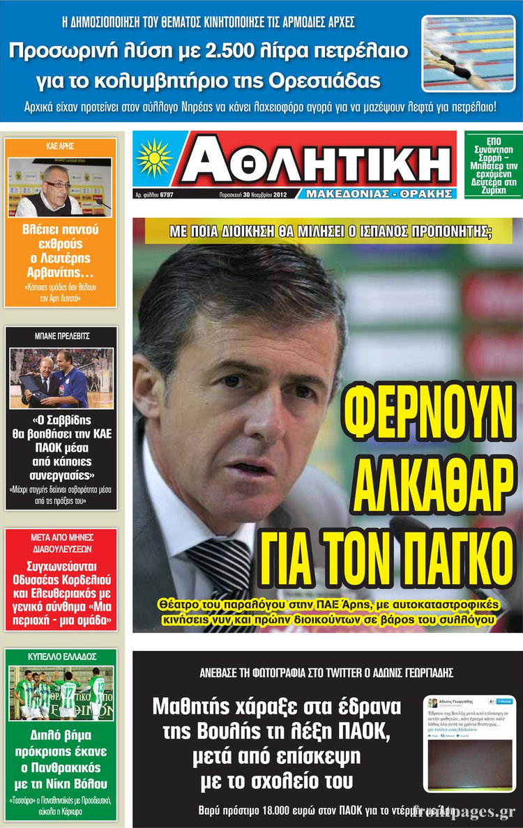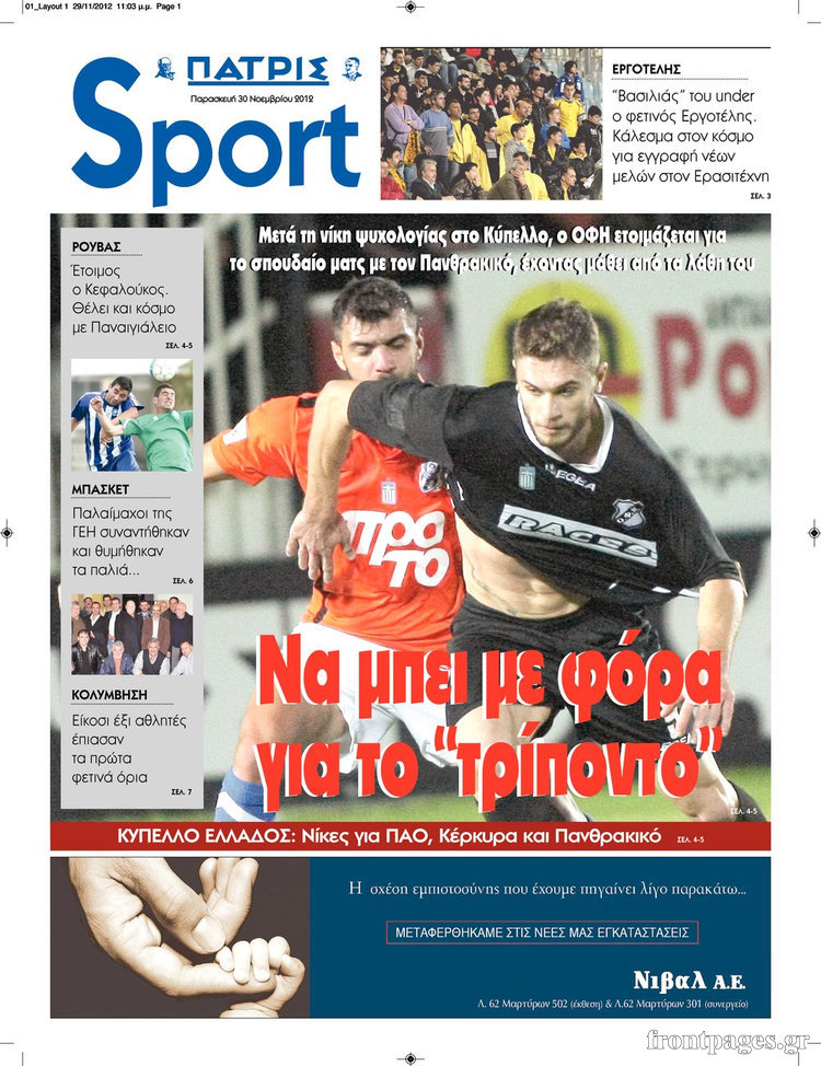 Οι αθλητικές εφημερίδες Enikos Newsroom 08:53, Παρασκευή 30 Νοεμβρίου 2012 Media Οι αθλητικές εφημερίδες Τα πρωτοσέλιδα των αθλητικών εφημερίδων. ΑΘΛΗΤΙΚΑ ΑΘΛΗΤΙΚΕΣ ΕΦΗΜΕΡΙΔΕΣ ΕΦΗΜΕΡΙΔΕΣ ΠΡΩΤΟΣΕΛΙΔΑ Μοιράσου το: σχολίασε κι εσύ (0 σχόλια) Ακολουθήστε το enikos.gr στο Google News και μάθετε πρώτοι όλες τις ειδήσεις Δείτε όλες τις τελευταίες ειδήσεις από την Ελλάδα και τον Κόσμο στο enikos.gr Ειδήσεις Ροή Ειδήσεων 2 ώρες πριν «Βιολάντα:» Οι ανατριχιαστικοί διάλογοι λίγες ώρες πριν από την φονική έκρηξη για «μυρωδιά σαν υγραέριο» – «Μου έλεγαν ότι δεν ήταν κάτι ανησυχητικό» κατέθεσε ο υπεύθυνος βάρδιας 3 ώρες πριν Ο Κυριάκος Μητσοτάκης ανοίγει τα χαρτιά του για τη Συνταγματική Αναθεώρηση – Στο τραπέζι και η μονιμότητα των δημοσίων υπαλλήλων 1 ώρα πριν Νέα Πέραμος: Προσπάθησαν να κάψουν το πτώμα του 27χρονου – Οι έρευνες στο εργασιακό του περιβάλλον και η εκτέλεση «καρμπόν» πριν από 2 χρόνια στη Μάνδρα 2 ώρες πριν Κακοκαιρία: Νέο έκτακτο δελτίο της ΕΜΥ – Σε ποιες περιοχές θα συνεχιστούν τα έντονα φαινόμενα 1 ώρα πριν Γκίλφοϊλ: Προανήγγειλε επίσκεψη Τραμπ στην Ελλάδα – «Ελπίζω να έρθει και η Μελάνια» 3 ώρες πριν Αριθμολογία: Οι 3 «καταραμένες» διευθύνσεις σπιτιού – «Τα νούμερα αυτά συνδέονται με αναταραχές και αρνητική ενέργεια» 4 ώρες πριν Τα 11 ψέματα που λένε πάντα οι άνδρες για να σας πείσουν ότι έχετε εσείς το πρόβλημα 2 ώρες πριν Ύπνος: Γιατί πρέπει να κοιμάστε με την πόρτα του υπνοδωματίου σας κλειστή 1 ώρα πριν Στο φως η θρυλική πόλη που ίδρυσε ο Μέγας Αλέξανδρος στο Ιράκ – Το «φάντασμα» του Τίγρη αποκαλύπτεται 15 λεπτά πριν Ο πρόεδρος Τραμπ βλέπει μια συμφωνία με την Κούβα μετά τις απειλές 36 λεπτά πριν ΑΕΚ – Ολυμπιακός 1-1: Ισοπαλία στο ντέρμπι με πέναλτυ στο 90+16′ για τους Πειραιώτες – Έντονες διαμαρτυρίες των γηπεδούχων 49 λεπτά πριν Επίδομα παιδιού 2026: Πότε ανοίγει η πλατφόρμα για τις νέες αιτήσεις – Τι πρέπει να γνωρίζετε 1 ώρα πριν Στο φως η θρυλική πόλη που ίδρυσε ο Μέγας Αλέξανδρος στο Ιράκ – Το «φάντασμα» του Τίγρη αποκαλύπτεται 1 ώρα πριν Νέα Πέραμος: Προσπάθησαν να κάψουν το πτώμα του 27χρονου – Οι έρευνες στο εργασιακό του περιβάλλον και η εκτέλεση «καρμπόν» πριν από 2 χρόνια στη Μάνδρα ENIKOS NETWORK Γελάτε, κλαίτε ή ανοίγει η μύτη σας μετά τον οργασμό – Πού οφείλεται, σύμφωνα με μελέτη; Πώς να ξεφορτωθείτε τις σακούλες κάτω από τα μάτια – Tips που δουλεύουν Τη Δευτέρα οι ανακοινώσεις του Κυριάκου Μητσοτάκη για τη συνταγματική αναθεώρηση – Ποια άρθρα θα προτείνει να αλλάξουν Ο καιρός της Δευτέρας: Ισχυρές καταιγίδες και χιονοπτώσεις – Σε ποιες περιοχές χρειάζεται προσοχή Σπαζοκεφαλιά: Βρες πόσα 9 υπάρχουν στην εικόνα σε 8 δευτερόλεπτα Τεστ IQ: Μπορείς να εντοπίσεις τον αριθμό 999 ανάμεσα στα 99Q σε 15 δευτερόλεπτα; περισσότερα 17:13 , Κυριακή 01 Φεβρουαρίου 2026 Σία Κοσιώνη: Το πρώτο μήνυμα μετά την περιπέτεια με την υγεία της – «Τα καταφέραμε» Για έναν δύσκολο Ιανουάριο που της φάνηκε σαν ένας ολόκληρος χρόνος κάνει λόγο η Σία Κοσιώνη σ... 15:05 , Κυριακή 01 Φεβρουαρίου 2026 Από Ήλιο σε Ήλιο: Πότε κάνει τελικά πρεμιέρα η νέα σειρά της ΕΡΤ1; Το αρχικό πλάνο και η μετακίνηση της προβολής. Της Νάντιας Ρηγάτου Μπορεί η Μεγάλη Χίμαιρα να ... 15:04 , Κυριακή 01 Φεβρουαρίου 2026 Στο real taste & style που κυκλοφορεί με τη Realnews Στο real taste & style που κυκλοφορεί με τη Realnews. Τον Φεβρουάριο, η πατάτα βγαίνει μπρ... 13:47 , Κυριακή 01 Φεβρουαρίου 2026 Άγιος Έρωτας: Ο πατέρας Νικόλαος και η Χλόη παραδίνονται στον έρωτα – 