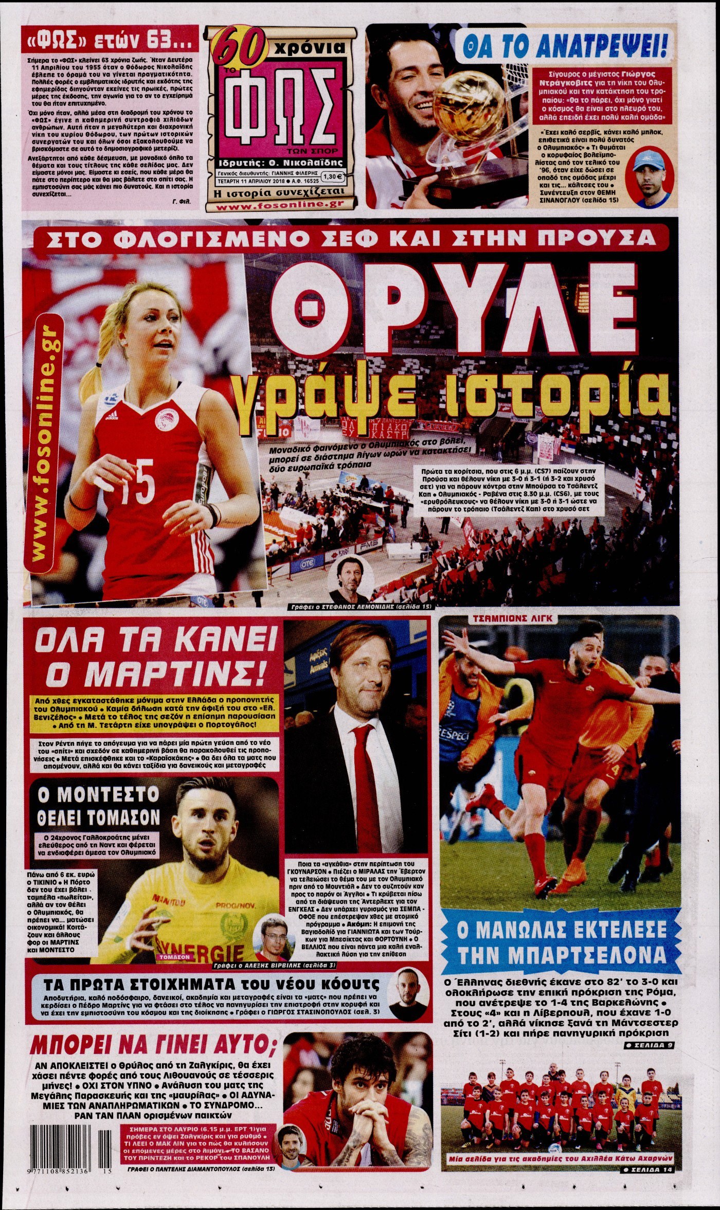 Οι αθλητικές εφημερίδες 11/4/2018 Enikos Newsroom 07:36, Τετάρτη 11 Απριλίου 2018 Media Διαβάστε τα σημερινά πρωτοσέλιδα των αθλητικών εφημερίδων: ΑΘΛΗΤΙΚΕΣ ΕΦΗΜΕΡΙΔΕΣ ΠΡΩΤΟΣΕΛΙΔΑ Μοιράσου το: σχολίασε κι εσύ (0 σχόλια) Ακολουθήστε το enikos.gr στο Google News και μάθετε πρώτοι όλες τις ειδήσεις Δείτε όλες τις τελευταίες ειδήσεις από την Ελλάδα και τον Κόσμο στο enikos.gr Ειδήσεις Ροή Ειδήσεων 1 ώρα πριν Η Ουκρανία χτύπησε τάνκερ του σκιώδους στόλου της Ρωσίας στη Μεσόγειο – Έπλεε νότια της Κρήτης 4 ώρες πριν Πούτιν: Η Ουκρανία δεν είναι έτοιμη για ειρηνευτικές συνομιλίες – Ο ρωσικός στρατός προελαύνει σε όλα τα μέτωπα 23 λεπτά πριν Θεσσαλονίκη: Στη φυλακή ο 44χρονος που κατηγορείται ότι προσπάθησε να πνίξει με κορδόνι την 34χρονη σύντροφό του 41 λεπτά πριν Εξώδικο επιχειρηματία στον Γιώργο Μαζωνάκη – Τι απαντά στις καταγγελίες του τραγουδιστή 1 ώρα πριν Βουλή: Υπερψηφίστηκε το νομοσχέδιο για την ένταξη του ΟΠΕΚΕΠΕ στην ΑΑΔΕ 5 ώρες πριν Αλλαγή σελίδας για 3 ζώδια – «Μία δύσκολη περίοδος φτάνει στο τέλος της» 2 ημέρες πριν 20 χρόνια τα Χριστούγεννα ξεκινούν στα Public με μεγάλη ποικιλία σε δώρα! 4 ώρες πριν Γεμάτος νεροχύτης; 5 σοβαρές ευθύνες που «φοβίζουν» όσους αφήνουν άπλυτα πιάτα 3 ώρες πριν Ειδικός μοιράζεται 6 κόλπα για να διατηρείστε σε φόρμα με πάνω από 40 ώρες εργασίας την εβδομάδα: «Προπονηθείτε πριν από τη δουλειά, όχι μετά» 5 λεπτά πριν Η απάντηση της κυβέρνησης στα αιτήματα των αγροτών: 16+4 υλοποιούνται ή βρίσκονται υπό επεξεργασία για να βρεθεί λύση – 7 δεν μπορούν να επιλυθούν 11 λεπτά πριν Την Κυριακή με τη Realnews: Ό,τι και αν αγοράσεις, σκανάρεις και κερδίζεις! 17 λεπτά πριν ΝΒΑ: Η πρώτη… πεντάδα του Γιάννη Αντετοκούνμπο 20 λεπτά πριν Η Σάντυ Χατζηϊωάννου στο Game Time: Το παιδικό όνειρο με τον Αντώνη Νικοπολίδη και το ντουέτο με την Ευγενία Σαμαρά 23 λεπτά πριν Θεσσαλονίκη: Στη φυλακή ο 44χρονος που κατηγορείται ότι προσπάθησε να πνίξει με κορδόνι την 34χρονη σύντροφό του ENIKOS NETWORK Τάξη στις ιατρικές διαφημίσεις για την προστασία των πολιτών βάζει ο ΙΣΑ Μακροζωία: Τι παίζει πιο σημαντικό ρόλο ακόμα και από την διατροφή και την άσκηση, σύμφωνα με μελέτη Βουλή: Υπερψηφίστηκε το νομοσχέδιο για τη μετάβαση του ΟΠΕΚΕΠΕ στην ΑΑΔΕ ΕΥΔΑΠ: Οδηγός για τις αλλαγές στα τιμολόγια του νερού – 17 ερωτήσεις και απαντήσεις Χαρτογραφώντας το «σημείο χωρίς επιστροφή»: Για πρώτη φορά αποκαλύπτεται με λεπτομέρεια το ακανθώδες όριο της ατμόσφαιρας τ... Η Google καταργεί τη λειτουργία «dark web report» – Πώς θα μπορούν οι χρήστες να διαγράφουν τα δεδομένα τους περισσότερα 15:15 , Παρασκευή 19 Δεκεμβρίου 2025 Την Κυριακή με τη Realnews: Ό,τι και αν αγοράσεις, σκανάρεις και κερδίζεις! Την Κυριακή με τη Realnews: Ό,τι και αν αγοράσεις, σκανάρεις και κερδίζεις! Με το PADU app, το... 08:00 , Παρασκευή 19 Δεκεμβρίου 2025 Την Κυριακή με τη Realnews: Δωροεπιταγή 10€ Δωροεπιταγή αξίας 10€ για αγορές άνω των 60€ από τα πολυκαταστήματα FactoryOutlet H προσφορά ι... 05:48 , Παρασκευή 19 Δεκεμβρίου 2025 Οι οικονομικές εφημερίδες 19/12/2025 Διαβάστε τα πρωτοσέλιδα από τις οικονομικές εφημερίδες, σήμερα 19/12/2025. 05:43 , Παρασκευή 19 Δεκεμβρίου 2025 Οι αθλητικές εφημερίδες 19/12/2025 Διαβάστε τα πρωτοσέλιδα από τις αθλητικές εφημερίδες, σήμερα 19/12/2025. ΤΕΛΕΥΤΑΙΕΣ ΕΙΔΗΣΕΙΣ 5 λεπτά πριν Η απάντηση της κυβέρνησης στα αιτήματα των αγροτών: 16+4... 11 λεπτά πριν Την Κυριακή με τη Realnews: Ό,τι και αν αγοράσεις,... 17 λεπτά πριν ΝΒΑ: Η πρώτη… πεντάδα του Γιάννη Αντετοκούνμπο 20 λεπτά πριν Η Σάντυ Χατζηϊωάνν