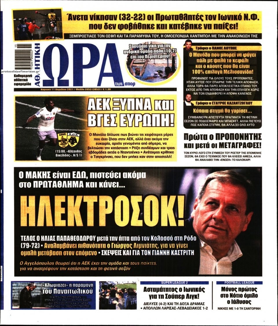 Οι αθλητικές εφημερίδες 11/4/2021 Σήφης Γαρυφαλάκης 06:23, Κυριακή 11 Απριλίου 2021 Media Διαβάστε τα πρωτοσέλιδα των αθλητικών εφημερίδων… ΑΘΛΗΤΙΚΕΣ ΕΦΗΜΕΡΙΔΕΣ ΕΦΗΜΕΡΙΔΕΣ ΠΡΩΤΟΣΕΛΙΔΑ ΠΡΩΤΟΣΕΛΙΔΑ ΕΦΗΜΕΡΙΔΩΝ Μοιράσου το: σχολίασε κι εσύ (0 σχόλια) Ακολουθήστε το enikos.gr στο Google News και μάθετε πρώτοι όλες τις ειδήσεις Δείτε όλες τις τελευταίες ειδήσεις από την Ελλάδα και τον Κόσμο στο enikos.gr Ειδήσεις Ροή Ειδήσεων 1 ώρα πριν Σύνοδος Κορυφής: Συνεχίζεται το θρίλερ στις Βρυξέλλες για την χρηματοδότηση της Ουκρανίας 4 ώρες πριν ΟΠΕΚΕΠΕ: Προφυλακιστέος ο φερόμενος αρχηγός και ο λογιστής της εγκληματικής οργάνωσης 6 ώρες πριν Αυξάνουν την πίεση προς την κυβέρνηση οι αγρότες: Κλείνουν παρακαμπτήριους και ανοίγουν διόδια – Τι θα γίνει τις γιορτές 5 ώρες πριν Φοινικούντα: Το Σάββατο απολογείται ο 30χρονος γιος γνωστού επιχειρηματία της Πλάκας που παραδόθηκε – Όσα είπε στους αστυνομικούς και ο ρόλος του στο έγκλημα 4 ώρες πριν ΑΕΚ – Κραϊόβα 3-2: Επική ανατροπή και πρόκριση στους «16» του Conference League η Ένωση 5 ώρες πριν Αρχαιολόγοι ανακάλυψαν ρωμαϊκά τεχνουργήματα από μια πόλη που δεν υπήρξε ποτέ – Τα τρία εντυπωσιακά κτίρια και ο αμφορέας με τις… σαρδέλες 6 ώρες πριν Ύπνος: Η απλή βραδινή ρουτίνα για να προστατεύσετε τα μαλλιά σας από το κρύο κατά τη διάρκεια του χειμώνα 7 ώρες πριν Manifesting: Πώς να συναντήσετε τον σύντροφο της ζωής σας, ανάλογα με τον μήνα γέννησής σας 2 ημέρες πριν 20 χρόνια τα Χριστούγεννα ξεκινούν στα Public με μεγάλη ποικιλία σε δώρα! 21 λεπτά πριν Αιματηρή βομβιστική επίθεση στην Υεμένη: Τουλάχιστον τρεις νεκροί και 13 τραυματίες 25 λεπτά πριν Στη Φλόριντα σήμερα οι διαβουλεύσεις σχετικά με τα επόμενα στάδια για τη Λωρίδα της Γάζας 29 λεπτά πριν Σίσσυ Τουμάση: «Είμαι ασθενοφοβική πάρα πολύ και με πιάνει μια παράνοια μ’ αυτό» 53 λεπτά πριν Ντόναλντ Τραμπ: Δεν χρειάζομαι την έγκριση του Κογκρέσου για να διατάξω στρατιωτικά πλήγματα στη Βενεζουέλα 1 ώρα πριν Σύνοδος Κορυφής: Συνεχίζεται το θρίλερ στις Βρυξέλλες για την χρηματοδότηση της Ουκρανίας ENIKOS NETWORK Σε περίοδο αυξημένης δραστηριότητας η γρίπη στην Ελλάδα-Μέτρα προστασίας από τον ΕΟΔΥ Σκέφτεστε συνέχεια συζητήσεις που έχετε κάνει; Τι σημαίνει αυτό, σύμφωνα με ειδικό Στεγαστικό: Τι λέει η ΠΟΜΙΔΑ για τα νέα μέτρα που ανακοίνωσε ο Κυριάκος Μητσοτάκης Λαγκάρντ: Αισιόδοξη για την ανάπτυξη της Ευρωζώνης, αβέβαιη για τον πληθωρισμό Χαρτογραφώντας το «σημείο χωρίς επιστροφή»: Για πρώτη φορά αποκαλύπτεται με λεπτομέρεια το ακανθώδες όριο της ατμόσφαιρας τ... Η Google καταργεί τη λειτουργία «dark web report» – Πώς θα μπορούν οι χρήστες να διαγράφουν τα δεδομένα τους περισσότερα 02:50 , Παρασκευή 19 Δεκεμβρίου 2025 GNTM: «Κλείδωσαν» οι τέσσερις φιναλίστ – Μεγάλη ανατροπή στις τελευταίες αποχωρήσεις Για προτελευταία φορά εμφανίστηκαν στο πλατό του GNTM οι φιναλίστ του φετινού κύκλου, το βράδυ... 17:45 , Πέμπτη 18 Δεκεμβρίου 2025 ROUK ZOUK: Εορταστικό επεισόδιο με καλεσμένους τους πρωταγωνιστές του «Γιατί ρε πατέρα» Το Σάββατο 20 Δεκεμβρίου στις 21:00, η Ζέτα Μακρυπούλια υποδέχεται εκλεκτούς ηθοποιούς που όλο... 17:20 , Πέμπτη 18 Δεκεμβρίου 2025 Άγιος έρωτας: Η Χριστίνα εξομολογείται στον πατέρα Νικόλαο, απόψε στις 21:00 στον Alpha Η Νότα αποφασίζει να εκδικηθεί τον Πέτρο και τον Στέφανο, για χάρη του Λούη, όμως τα πράγματα ... 16:50 , Πέμπτη 18 Δεκεμβρίου 2025 Να μ’ αγαπάς: Ζωή και Φωτεινή συμφιλιώνονται ως μάνα με κόρη, απόψε στις 20:00 Η ταυτότητα του Άγγελου α
