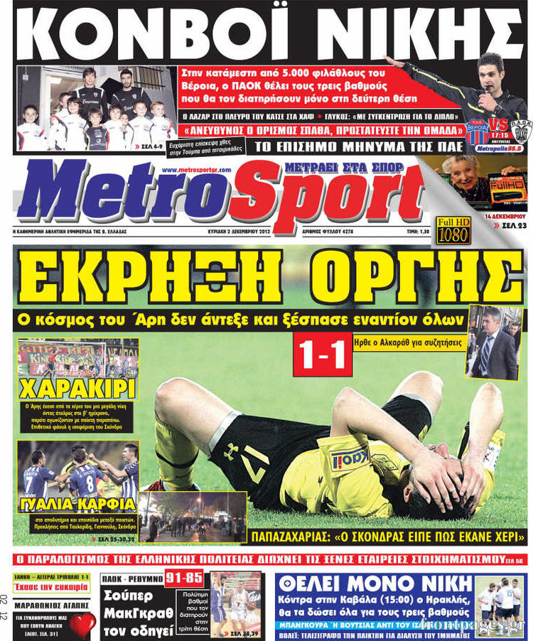 Οι αθλητικές εφημερίδες Enikos Newsroom 08:48, Κυριακή 02 Δεκεμβρίου 2012 Media Οι αθλητικές εφημερίδες Τα σημερινά πρωτοσέλιδα των αθλητικών εφημερίδων. ΑΘΛΗΤΙΚΕΣ ΕΦΗΜΕΡΙΔΕΣ ΠΡΩΤΟΣΕΛΙΔΑ Μοιράσου το: σχολίασε κι εσύ (0 σχόλια) Ακολουθήστε το enikos.gr στο Google News και μάθετε πρώτοι όλες τις ειδήσεις Δείτε όλες τις τελευταίες ειδήσεις από την Ελλάδα και τον Κόσμο στο enikos.gr Ειδήσεις Ροή Ειδήσεων 5 ώρες πριν Εκτός ευρωομάδας ΣΥΡΙΖΑ ο Νίκος Παππάς μετά την επίθεση στον δημοσιογράφο Νίκο Γιαννόπουλο – Η μήνυση και οι νέες δηλώσεις 6 ώρες πριν «Αγριεύουν» οι αγρότες: «Δεν συντρέχει λόγος συνάντησης με τον πρωθυπουργό» – Ώρα αποφάσεων στη σύσκεψη της Πέμπτης 6 ώρες πριν Κυψέλη: Χωρίς την οικογένειά της δίπλα της απολογήθηκε η 16χρονη – «Της είχε επιτεθεί κάποιος για να την βιάσει, φοβήθηκε και κυκλοφορούσε με μαχαίρι» 5 ώρες πριν Politico: Το πρόβλημα της Ευρώπης δεν είναι το Βέλγιο αλλά ο Ντόναλντ Τραμπ 7 ώρες πριν Αλεξανδρούπολη: Πολυοργανική ανεπάρκεια λόγω υποσιτισμού η αιτία θανάτου του 3χρονου αγοριού 6 ώρες πριν Μυστήριο με τεράστιες κυκλικές πέτρες 200 κιλών – Ανακαλύφθηκαν τυχαία κατά τη διάρκεια οδικών έργων και κανείς δεν ξέρει από πού προέρχονται 7 ώρες πριν Ύπνος: Ειδικός εξηγεί τον πραγματικό λόγο που ξυπνάτε στις 4 τα ξημερώματα – Ο ρόλος των ορμονών και του κιρκάδιου ρυθμού 8 ώρες πριν Αριθμολογία: Οι άνθρωποι που έχουν γεννηθεί αυτές τις 4 ημερομηνίες, είναι τρυφεροί και αγαπούν ανιδιοτελώς 19 ώρες πριν 20 χρόνια τα Χριστούγεννα ξεκινούν στα Public με μεγάλη ποικιλία σε δώρα! 10 λεπτά πριν Κτηνοτρόφοι: Με δάκρυα στα μάτια ζουν τον εφιάλτη των άδειων στάβλων – «Καταστράφηκαν οι ζωές μας» 25 λεπτά πριν Νέο αμερικανικό πλήγμα σε σκάφος που φέρεται να μετέφερε ναρκωτικά στον Ειρηνικό – Τέσσερις νεκροί 40 λεπτά πριν Αλ Τσαντίρι Νιουζ: «Λύγισε» ο Δημήτρης Λάλος για τον Δημήτρη Ήμελλο – «Τον μνημονεύω, να ‘ναι καλά εκεί που είναι» 55 λεπτά πριν GNTM: Με δάκρυα τον αποχαιρέτησε η Ηλιάνα Παπαγεωργίου πριν από τον ημιτελικό – «Αισθάνομαι πολύ παράξενα» 1 ώρα πριν Αμερικανικά στρατεύματα στον Ισημερινό για «προσωρινή» επιχείρηση κατά των ναρκωτικών ENIKOS NETWORK Αϋπνία: Το κόλπο που θα σας βοηθήσει να κοιμηθείτε απόψε – Είναι απλό και έχει αποτέλεσμα 2,6 εκατομμύρια πολίτες έχουν ήδη εμβολιαστεί κατά της γρίπης ΕΛΣΤΑΤ: Τι δείχνουν τα νέα στοιχεία για τις ηλεκτρονικές παραγγελίες των επιχειρήσεων ΚΕΠΕ: Οι 3 διακριτές συμβολές των ΜμΕ και της μεταποίησης στην ελληνική οικονομία Χαρτογραφώντας το «σημείο χωρίς επιστροφή»: Για πρώτη φορά αποκαλύπτεται με λεπτομέρεια το ακανθώδες όριο της ατμόσφαιρας τ... Η Google καταργεί τη λειτουργία «dark web report» – Πώς θα μπορούν οι χρήστες να διαγράφουν τα δεδομένα τους περισσότερα 02:30 , Πέμπτη 18 Δεκεμβρίου 2025 Αλ Τσαντίρι Νιουζ: Η κόρη της Πάολα στο κοινό – Η ατάκα Λαζόπουλου που την έκανε να «κοκκινήσει» Γιορτινή διάθεση και ευχάριστες στιγμές γέμισε η αποψινή, τελευταία για το 2025, εκπομπή του «... 22:24 , Τετάρτη 17 Δεκεμβρίου 2025 Το Σπίτι Δίπλα Στο Ποτάμι: Σε κίνδυνο η υγεία του Απόστολου – Τι θα δούμε απόψε “Το Σπίτι Δίπλα στο Ποτάμι” ξετυλίγει το νήμα της ζωής των πέντε αδελφών με καταισ... 21:14 , Τετάρτη 17 Δεκεμβρίου 2025 Παιχνίδια Εκδίκησης: Θα καταφέρει ο Χρήστος να κλονίσει την εμπιστοσύνη της Μάγιας απέναντι στον Άγη; Τα «Παιχνίδια Εκδίκησης» έρχονται απόψε στις 22:30, στον Αντ1, με το τελευταίο επεισόδιο της χ... 20:57 , Τετάρτη 17 Δεκεμβρίου 2025 Άγιος Έρω