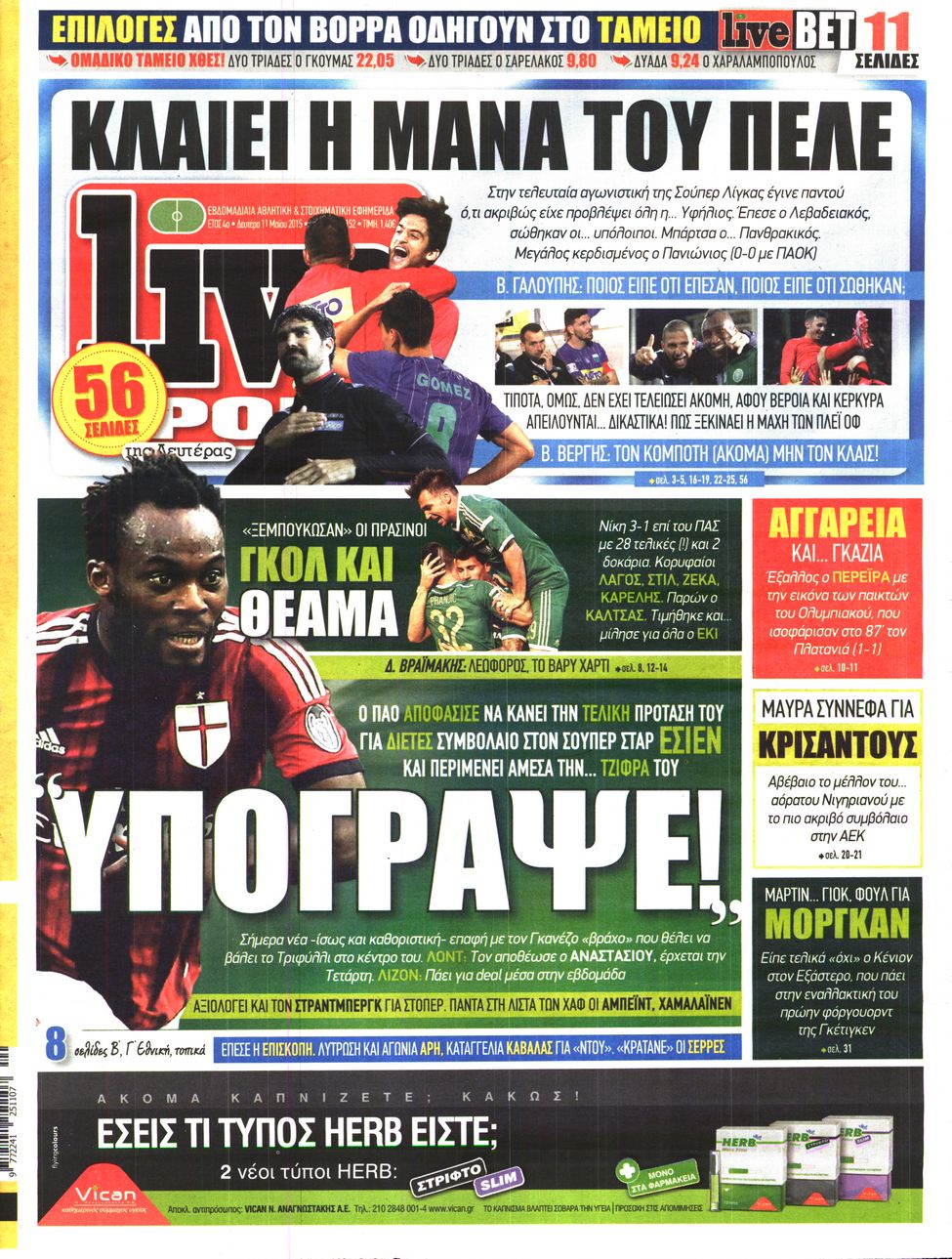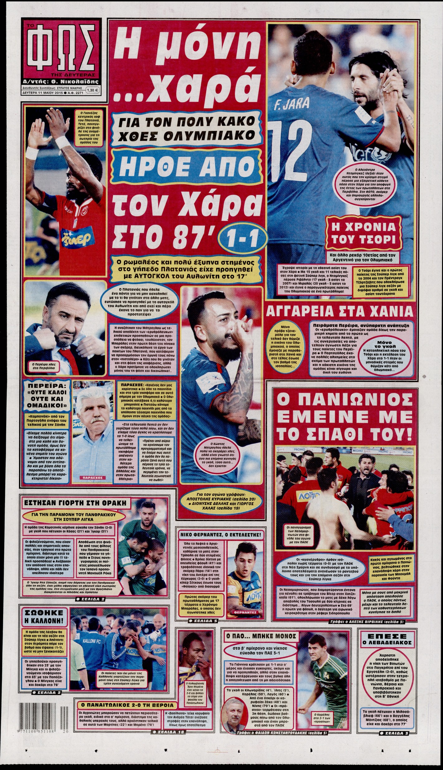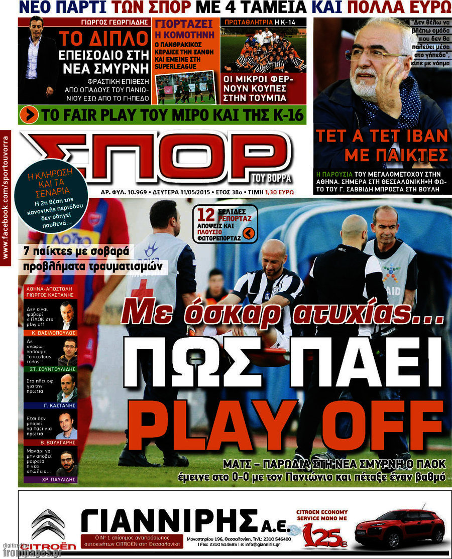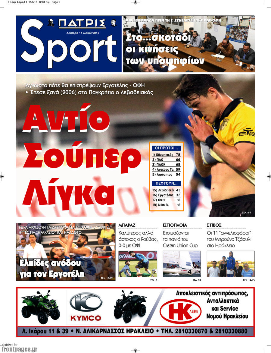 Οι αθλητικές εφημερίδες 11/5/2015 Enikos Newsroom 06:51, Δευτέρα 11 Μαΐου 2015 Media Διαβάστε τα σημερινά πρωτοσέλιδα των αθλητικών εφημερίδων: ΑΘΛΗΤΙΚΕΣ ΕΦΗΜΕΡΙΔΕΣ ΠΡΩΤΟΣΕΛΙΔΑ Μοιράσου το: σχολίασε κι εσύ (0 σχόλια) Ακολουθήστε το enikos.gr στο Google News και μάθετε πρώτοι όλες τις ειδήσεις Δείτε όλες τις τελευταίες ειδήσεις από την Ελλάδα και τον Κόσμο στο enikos.gr Ειδήσεις Ροή Ειδήσεων 1 ώρα πριν Μεσόγειος: Η διαδρομή του ρωσικού τάνκερ «Qendil» και η στοχευμένη επίθεση της Ουκρανίας με drone – Ο Πούτιν προειδοποίησε για αντίποινα 1 ώρα πριν Αττική: Θρίλερ με νεκρό βρέφος 5 μηνών – Κοιμόταν στο ίδιο κρεβάτι με τους γονείς του 2 ώρες πριν Από το Ορμένιο ως τα Μάλγαρα κι από τη Σιάτιστα μέχρι τη Νίκαια: Μπλόκα σε όλη την Ελλάδα – Το Σάββατο ανοίγουν τα διόδια οι αγρότες 2 ώρες πριν «Έλληνας Εσκομπάρ»: Φωτογραφίες με τους 4 τόνους κοκαΐνης που κατασχέθηκαν από το σκάφος «Ουρανία» 4 ώρες πριν Πούτιν: Σαρκαστικά μηνύματα, παράπονα και απρόοπτα στη συνέντευξη Τύπου – Η πρόταση γάμου on air και οι ερωτήσεις για τα αγγούρια και τους… εξωγήινους 3 ώρες πριν Τα 5 ζώδια που ευνοούνται στην ερωτική ζωή τους την επόμενη εβδομάδα – «Η ενέργεια του Αιγόκερου φέρνει αγάπη και σταθερότητα» 7 ώρες πριν Ειδικός μοιράζεται 6 κόλπα για να διατηρείστε σε φόρμα με πάνω από 40 ώρες εργασίας την εβδομάδα: «Προπονηθείτε πριν από τη δουλειά, όχι μετά» 4 ώρες πριν Αυτό το έξυπνο μαθηματικό κόλπο θα μπορούσε να αλλάξει τον τρόπο με τον οποίο οι επιστήμονες μελετούν τους σεισμούς 2 ώρες πριν Κουίζ για την παλιά Αθήνα: Αναγνωρίζετε την περιοχή; Έχετε περάσει 100% από εκεί 7 λεπτά πριν ΗΠΑ: Νέος γύρος συνομιλιών στο Μαϊάμι – Σήμερα συνάντηση Γουίτκοφ με Ουκρανούς και Ευρωπαίους διαπραγματευτές, το Σαββατοκύριακο με Ρώσους αξιωματούχους 11 λεπτά πριν Νέα σειρά γραμματοσήμων «ΕΛΠΙΔΑ-Μαριάννα Β. Βαρδινογιάννη» 15 λεπτά πριν Ιταλία: Με εισιτήριο από την 1η Φεβρουαρίου 2026 η πρόσβαση στη Φοντάνα ντι Τρέβι – Πόσο θα κοστίζει 23 λεπτά πριν Μήπως έχετε χάσει τον εαυτό σας στη σχέση σας; 7 «αθόρυβες» υποχωρήσεις που μάλλον κάνατε, χωρίς να το συνειδητοποιήσετε 29 λεπτά πριν Λάρισα: Ασθενοφόρο έπεσε πάνω σε κλούβα της ΕΛ.ΑΣ στον Πλατύκαμπο – Τραυματίστηκε ο συνοδηγός – ΒΙΝΤΕΟ ENIKOS NETWORK «Η σούπερ» γρίπη εξαπλώνεται στην Ευρώπη-Στοιχεία από το ECDC για την αποτελεσματικότητα του εμβολίου ΕΛΣΤΑΤ: Αύξηση κατά 1,7% των επαγγελματιών υγείας το 2024 Προκήρυξη ΑΣΕΠ για 397 μόνιμες προσλήψεις στο Δημόσιο: Βγήκαν τα προσωρινά αποτελέσματα – Πότε αρχίζει η υποβολή ενστάσεων Η απάντηση της κυβέρνησης στα αιτήματα των αγροτών: 16 έχουν ικανοποιηθεί, 4 βρίσκονται υπό επεξεργασία και 7 δεν είναι εφι... Χαρτογραφώντας το «σημείο χωρίς επιστροφή»: Για πρώτη φορά αποκαλύπτεται με λεπτομέρεια το ακανθώδες όριο της ατμόσφαιρας τ... Η Google καταργεί τη λειτουργία «dark web report» – Πώς θα μπορούν οι χρήστες να διαγράφουν τα δεδομένα τους περισσότερα 18:11 , Παρασκευή 19 Δεκεμβρίου 2025 Το σόι σου: Ο Άρης έρχεται στην Ελλάδα για τις γιορτές των Χριστουγέννων – Τι θα δούμε στο αποψινό εορταστικό επεισόδιο Ένα απολαυστικό, εορταστικό επεισόδιο της σειράς “Το σόι σου”, γεμάτο ευτράπελα αλ... 15:15 , Παρασκευή 19 Δεκεμβρίου 2025 Την Κυριακή με τη Realnews: Ό,τι και αν αγοράσεις, σκανάρεις και κερδίζεις! Την Κυριακή με τη Realnews: Ό,τι και αν αγοράσεις, σκανάρεις και κερδίζεις! Με το PADU app, το... 08:00 , Παρασκευή 19 Δεκεμβρίου 2025 Την Κυριακή με τη Realnews: Δωροεπιταγή 10€ Δωροεπιταγή αξίας 10€ για