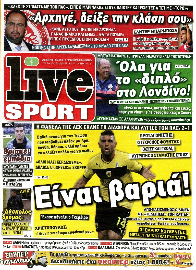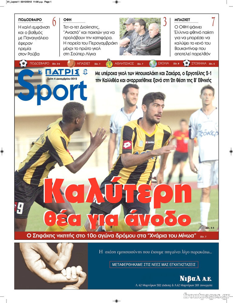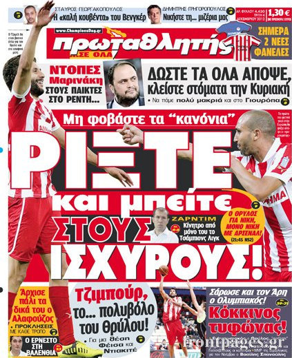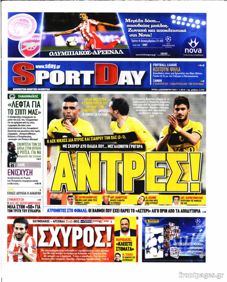 Οι αθλητικές εφημερίδες Enikos Newsroom 08:46, Τρίτη 04 Δεκεμβρίου 2012 Media Οι αθλητικές εφημερίδες Τα σημερινά πρωτοσέλιδα των αθλητικών εφημερίδων. ΑΘΛΗΤΙΚΑ ΑΘΛΗΤΙΚΕΣ ΕΦΗΜΕΡΙΔΕΣ ΠΡΩΤΟΣΕΛΙΔΑ Μοιράσου το: σχολίασε κι εσύ (0 σχόλια) Ακολουθήστε το enikos.gr στο Google News και μάθετε πρώτοι όλες τις ειδήσεις Δείτε όλες τις τελευταίες ειδήσεις από την Ελλάδα και τον Κόσμο στο enikos.gr Ειδήσεις Ροή Ειδήσεων 3 ώρες πριν Ακίλα Σάλεχ: «Άκυρο» το τουρκολιβυκό μνημόνιο λέει ο πρόεδρος της λιβυκής Βουλής – Ανοίγει ο διάλογος με Ελλάδα, Αίγυπτο και Τουρκία 8 ώρες πριν Αγρότες: Την Τρίτη η απόφαση για διάλογο ή κλιμάκωση των κινητοποιήσεών τους – Πώς χαρακτηρίζουν τις ανακοινώσεις Τσιάρα και οι επόμενες κινήσεις 7 ώρες πριν Τραμπ για Ουκρανία: «Είμαστε πιο κοντά σε συμφωνία από ποτέ» – «Πολυεθνική δύναμη» προτείνουν οι Ευρωπαίοι 7 ώρες πριν Κυψέλη: Η 16χρονη που μαχαίρωσε την 14χρονη είχε συλληφθεί 3 φορές στο παρελθόν – Έβριζε καθηγητές, έβαζε φωτιές σε κάδους και εκβίαζε συμμαθητές της 7 ώρες πριν Τρομοκρατική επίθεση στο Σίδνεϊ: Θλίψη για τα 15 θύματα – Οργή στην εβραϊκή κοινότητα που προειδοποιούσε επί δύο χρόνια 7 ώρες πριν Επιστήμονες ίσως έλυσαν το μυστήριο γύρω από τα Χόμπιτ – Νέα έρευνα αποκαλύπτει πώς εξαφανίστηκαν 8 ώρες πριν Ύπνος: Η αρχαία μορφή άσκησης που αποδεικνύεται αποτελεσματική στην αντιμετώπιση της αϋπνίας, σύμφωνα με μελέτη 9 ώρες πριν Αριθμολογία: Ο τυχερός σας αριθμός, ανάλογα με τον μήνα γέννησής σας 10 ώρες πριν Πώς να μην μαραίνονται γρήγορα τα κομμένα λουλούδια: Το λάθος στην τοποθέτηση του βάζου που πρέπει να αποφεύγετε 1 λεπτό πριν Δώρο Χριστουγέννων 2025: Ποιοι εργαζόμενοι το δικαιούνται – Η online εφαρμογή της ΓΣΕΕ για να το υπολογίσετε 9 λεπτά πριν Υψηλή χοληστερίνη: Γιατρός αποκαλύπτει δύο τρόπους για να την μειώσετε χωρίς φαρμακευτική αγωγή 17 λεπτά πριν Σαν σήμερα 16 Δεκεμβρίου: Τα σημαντικότερα γεγονότα της ημέρας 21 λεπτά πριν Οι οικονομικές εφημερίδες 16/12/2025 27 λεπτά πριν Οι αθλητικές εφημερίδες 16/12/2025 ENIKOS NETWORK Πότε το χρόνιο ροχαλητό να αποτελέσει ένδειξη κινδύνου για την καρδιά; Τι λένε οι ειδικοί Μάριος Θεμιστοκλέους: Το ΕΣΥ ενισχύεται, εκσυγχρονίζεται, αλλάζει ΕΒΕΠ για αγροτικές κινητοποιήσεις: Κάθε επιπλέον εβδομάδα προσθέτει περίπου 200 εκατ. ευρώ ζημιά Τι προβλέπει το νομοσχέδιο του υπουργείου Εθνικής Άμυνας – Oι αλλαγές στους μισθούς Σύγχρονος Νοστράδαμος: Προειδοποιεί για «μεγάλο γεγονός» τους επόμενους μήνες που θα συγκλονίσει τη Βρετανία και τον κόσμο Τεστ παρατηρητικότητας: Μπορείτε να βρείτε τις 3 διαφορές στις εικόνες με έναν πιγκουίνο σε 14 δευτερόλεπτα περισσότερα 05:48 , Τρίτη 16 Δεκεμβρίου 2025 Οι οικονομικές εφημερίδες 16/12/2025 Διαβάστε τα πρωτοσέλιδα από τις οικονομικές εφημερίδες, σήμερα 16/12/2025. 05:43 , Τρίτη 16 Δεκεμβρίου 2025 Οι αθλητικές εφημερίδες 16/12/2025 Διαβάστε τα πρωτοσέλιδα από τις αθλητικές εφημερίδες, σήμερα 16/12/2025. 05:38 , Τρίτη 16 Δεκεμβρίου 2025 Οι πολιτικές εφημερίδες 16/12/2025 Διαβάστε τα πρωτοσέλιδα από τις πολιτικές εφημερίδες, σήμερα 16/12/2025. 21:35 , Δευτέρα 15 Δεκεμβρίου 2025 Το Σπίτι Δίπλα Στο Ποτάμι: Η Ιουλία και ο Φωκάς μετακομίζουν στη Ρόδο – Δύο νέοι χαρακτήρες μπαίνουν στη σειρά Δύο νέοι, κομβικοί χαρακτήρες κάνουν την εμφάνισή τους αυτή την εβδομάδα στην αγαπημένη σειρά ... ΤΕΛΕΥΤΑΙΕΣ ΕΙΔΗΣΕΙΣ 9 λεπτά πριν Υψηλή χοληστερίνη: Γιατρός αποκαλύπτει δύο τρόπους... 17 λεπτά πριν Σαν σήμερα 16 Δεκεμβρίου: Τα σημαντικότερα γεγονότα... 21 