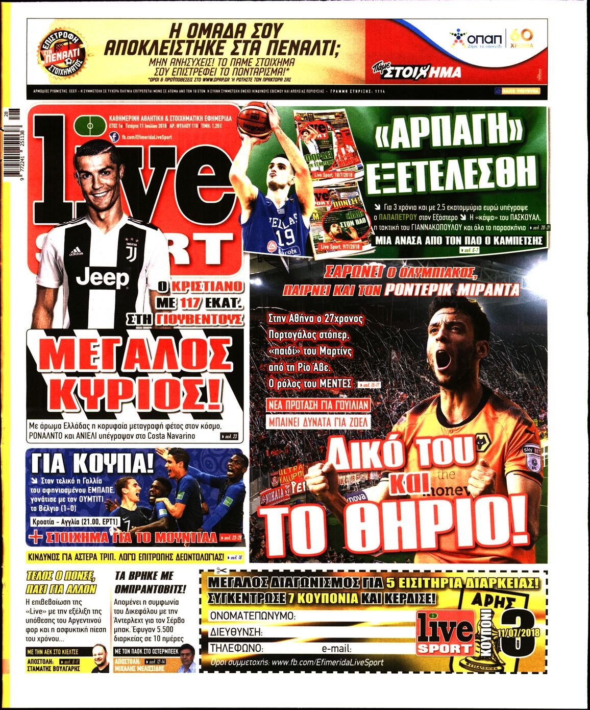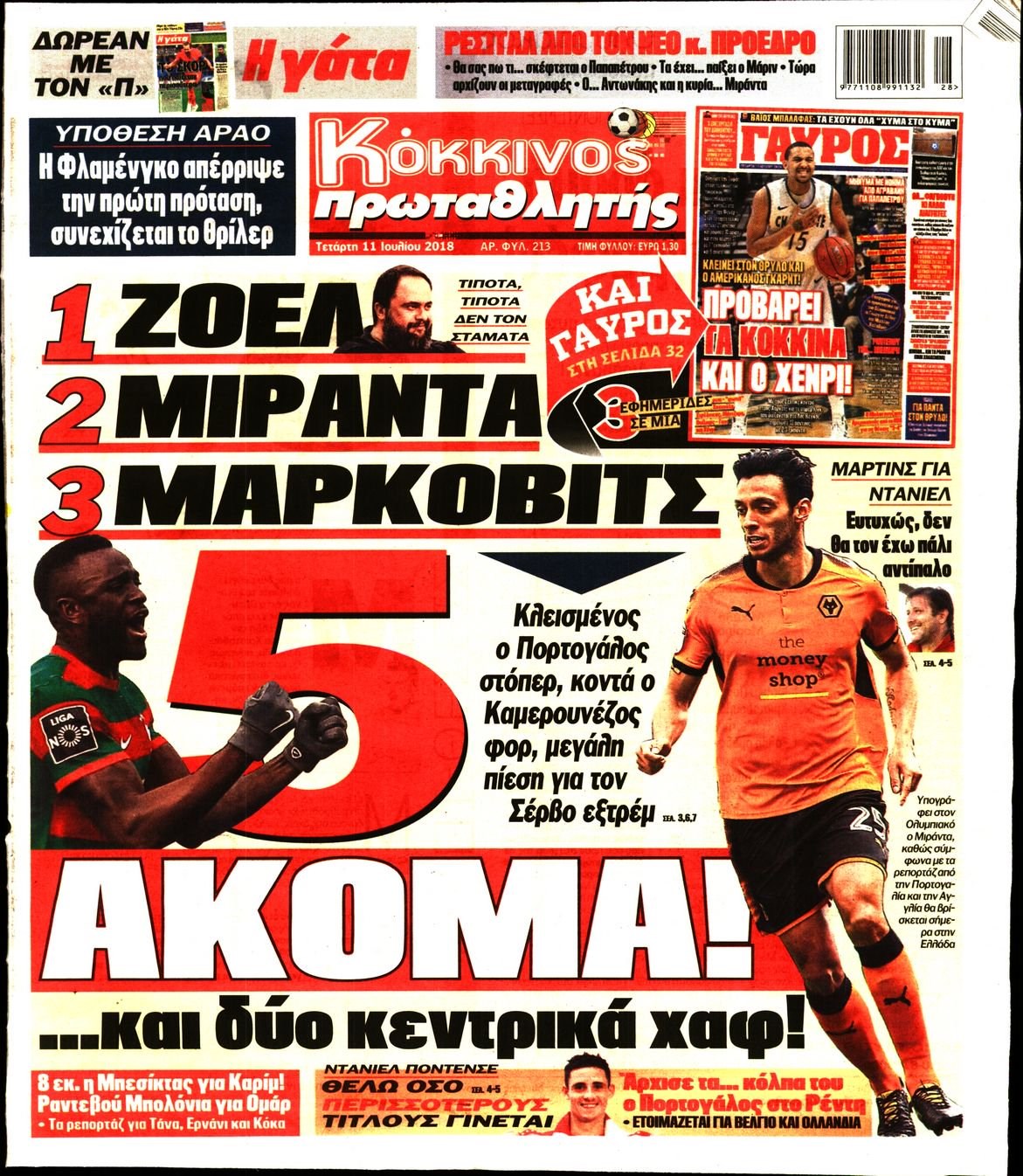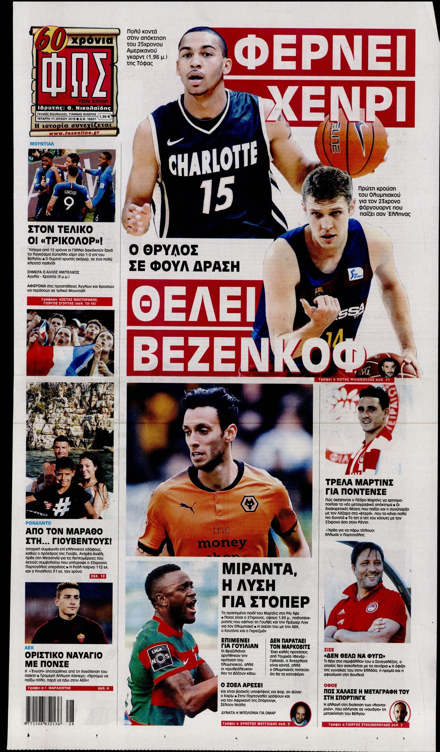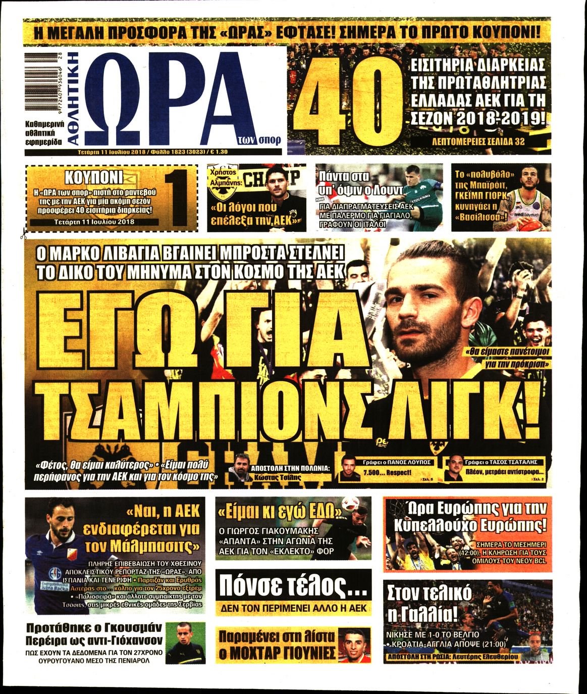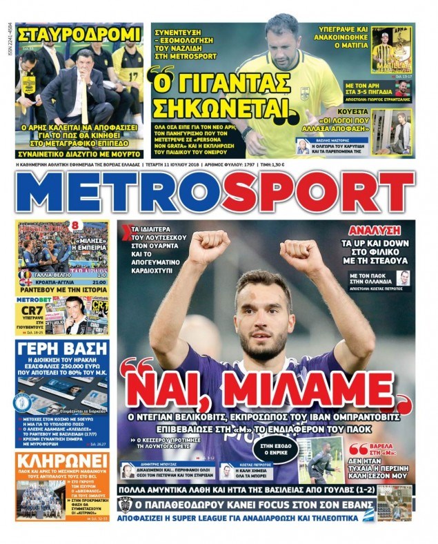 Οι αθλητικές εφημερίδες 11/7/2018 Enikos Newsroom 06:32, Τετάρτη 11 Ιουλίου 2018 Media Διαβάστε τα σημερινά πρωτοσέλιδα των αθλητικών εφημερίδων. ΑΘΛΗΤΙΚΕΣ ΕΦΗΜΕΡΙΔΕΣ ΠΡΩΤΟΣΕΛΙΔΑ Μοιράσου το: σχολίασε κι εσύ (0 σχόλια) Ακολουθήστε το enikos.gr στο Google News και μάθετε πρώτοι όλες τις ειδήσεις Δείτε όλες τις τελευταίες ειδήσεις από την Ελλάδα και τον Κόσμο στο enikos.gr Ειδήσεις Ροή Ειδήσεων 4 ώρες πριν Χριστούγεννα στα μπλόκα: Επιμένουν στις κινητοποιήσεις τους οι αγρότες – Ανοίγουν τα διόδια το Σαββατοκύριακο 5 ώρες πριν Ουκρανία: Η άνευ προηγουμένου επίθεση σε ρωσικό τάνκερ στη Μεσόγειο και το μήνυμα προς στον Πούτιν – Το «μακρύ χέρι» του Κιέβου 4 ώρες πριν Πούτιν: Τα μηνύματα σε Ευρώπη και ΝΑΤΟ από το μαραθώνιο «σόου» του – Η απαίτηση για «σεβασμό» και η ειρήνη «με τους όρους» της Μόσχας 5 ώρες πριν Τραμπ: Δεν αποκλείει την πιθανότητα ενός πολέμου στη Βενεζουέλα – «Ο Μαδούρο ξέρει καλύτερα από τον καθένα τι ακριβώς θέλω» 5 ώρες πριν Συνεχίζει να προκαλεί ο Μίτσκοσκι: «Για μένα το όνομα Μακεδονία είναι ιερό» 4 ώρες πριν Ανακαλύφθηκαν αρχαία χρυσά νομίσματα 2.200 ετών που απεικονίζουν τον θεό Απόλλωνα – Η άγνωστη σύνδεση με τον Φίλιππο Β΄ της Μακεδονίας 5 ώρες πριν Ύπνος: Μια κρυφή κατάσταση του εγκεφάλου πριν από τον ύπνο μπορεί να είναι το “κλειδί” για υψηλή ευφυΐα και δημιουργικότητα 6 ώρες πριν Αριθμολογία: Οι άνθρωποι που έχουν γεννηθεί αυτές τις 4 ημερομηνίες, συχνά παρεξηγούνται – «Η καλοσύνη τους κρύβει τεράστια δύναμη» 7 ώρες πριν Ξεχάστε το καθάρισμα το Σαββατοκύριακο: Ο «κανόνας των 20 λεπτών» που θα σας λύσει τα χέρια 16 λεπτά πριν Θεσσαλονίκη: Εξαφανίστηκε 13χρονος από χώρο φιλοξενίας ασυνόδευτων ανηλίκων στο Ωραιόκαστρο 26 λεπτά πριν Ντόναλντ Τραμπ: «Πολύ βαριά αντίποινα» στη Συρία – «Πλήττουμε πολύ δυνατά οχυρά του Ισλαμικού Κράτους» 41 λεπτά πριν Εξάρχεια: Ένταση με μολότοφ, χημικά και κρότου λάμψης 56 λεπτά πριν ΗΠΑ: Τραγωδία στην Αλαμπάμα – Σκότωσε την δημοσιογράφο σύζυγό του και αυτοκτόνησε μπροστά στον 3χρονο γιο τους 1 ώρα πριν Πρόταση γάμου στο ΣΕΦ κατά την διάρκεια του αγώνα Ολυμπιακός-Βιλερμπάν – Δείτε βίντεο ENIKOS NETWORK Το ΕΚΑΒ τιμήθηκε από την Ακαδημία Αθηνών για τα 40 χρόνια προσφοράς του Έχετε πραγματικά μεγάλη καρδιά; 10 χαρακτηριστικά όσων έχουν καλοσύνη Αναστολή μέτρων αναγκαστικής εκτέλεσης για κτηνοτρόφους που πλήττονται από την ευλογιά των αιγοπροβάτων Πλήρης επάρκεια προϊόντων στις λαϊκές της Αττικής, παρά τις αγροτικές κινητοποιήσεις – Τι απαντούν οι πωλητές Χαρτογραφώντας το «σημείο χωρίς επιστροφή»: Για πρώτη φορά αποκαλύπτεται με λεπτομέρεια το ακανθώδες όριο της ατμόσφαιρας τ... Η Google καταργεί τη λειτουργία «dark web report» – Πώς θα μπορούν οι χρήστες να διαγράφουν τα δεδομένα τους περισσότερα 22:42 , Παρασκευή 19 Δεκεμβρίου 2025 Γιώργος Γιαννόπουλος για “Το σόι σου”: “Είναι ευτυχία και ευλογία αυτή η σειρά” «Είναι ευτυχία και ευλογία η συγκυρία αυτής της σειράς», θα πει ο Γιώργος Γιαννόπουλος -ο αγαπ... 20:37 , Παρασκευή 19 Δεκεμβρίου 2025 Don’t Forget The Lyrics: Η Έλλη Κοκκίνου υποδέχεται 4 παίκτες που θα κάνουν τα πάντα για να μη χάσουν ούτε… μισή λέξη από τους στίχους Το «Don’t Forget The Lyrics» επιστρέφει απόψε, Παρασκευή 19 Δεκεμβρίου, στις 21:00 με νέο επει... 19:31 , Παρασκευή 19 Δεκεμβρίου 2025 GNTM: Απόψε ο μεγάλος τελικός για τους 4 φιναλίστ Έπειτα από μήνες γεμάτους μόδα, δημιουργία και έντονες αναμετρήσεις, το GNTM 2025 κορυφώνεται,... 18:11 , Παρασκευή 19 Δεκεμβρίου 2025 Το 