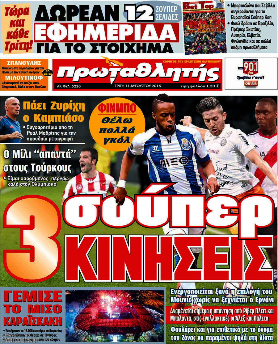 Οι αθλητικές εφημερίδες 11/8/2015 Enikos Newsroom 08:29, Τρίτη 11 Αυγούστου 2015 Media Διαβάστε τα σημερινά πρωτοσέλιδα των αθλητικών εφημερίδων: ΑΘΛΗΤΙΚΕΣ ΕΦΗΜΕΡΙΔΕΣ ΠΡΩΤΟΣΕΛΙΔΑ Μοιράσου το: σχολίασε κι εσύ (0 σχόλια) Ακολουθήστε το enikos.gr στο Google News και μάθετε πρώτοι όλες τις ειδήσεις Δείτε όλες τις τελευταίες ειδήσεις από την Ελλάδα και τον Κόσμο στο enikos.gr Ειδήσεις Ροή Ειδήσεων 3 ώρες πριν Από το Ορμένιο ως τα Μάλγαρα κι από τη Σιάτιστα μέχρι τη Νίκαια: Μπλόκα σε όλη την Ελλάδα – Το Σάββατο ανοίγουν τα διόδια οι αγρότες 43 λεπτά πριν Εμπλοκή και αερομαχίες με οπλισμένα τουρκικά F-16 στο Αιγαίο 2 ώρες πριν Αττική: Θρίλερ με νεκρό βρέφος 5 μηνών – Κοιμόταν στο ίδιο κρεβάτι με τους γονείς του 33 λεπτά πριν Πούτιν: «Ναι, είμαι ερωτευμένος» – Βίντεο από τη σπάνια προσωπική παραδοχή του 2 ώρες πριν Μεσόγειος: Η διαδρομή του ρωσικού τάνκερ «Qendil» και η στοχευμένη επίθεση της Ουκρανίας με drone – Ο Πούτιν προειδοποίησε για αντίποινα 4 ώρες πριν Τα 5 ζώδια που ευνοούνται στην ερωτική ζωή τους την επόμενη εβδομάδα – «Η ενέργεια του Αιγόκερου φέρνει αγάπη και σταθερότητα» 5 ώρες πριν Αυτό το έξυπνο μαθηματικό κόλπο θα μπορούσε να αλλάξει τον τρόπο με τον οποίο οι επιστήμονες μελετούν τους σεισμούς 1 ώρα πριν Μήπως έχετε χάσει τον εαυτό σας στη σχέση σας; 7 «αθόρυβες» υποχωρήσεις που μάλλον κάνατε, χωρίς να το συνειδητοποιήσετε 3 ώρες πριν Κουίζ για την παλιά Αθήνα: Αναγνωρίζετε την περιοχή; Έχετε περάσει 100% από εκεί 5 λεπτά πριν Νίκος Γιαννόπουλος: «Μου επιτέθηκε ο Παππάς – Ήμουν νηφάλιος, δεν τον προκάλεσα» – ΒΙΝΤΕΟ 13 λεπτά πριν Γιώργος Τράγκας: Ανατροπή από το Πριγκιπάτο του Μονακό για την υπόθεση της κληρονομιάς – Η ανακοίνωση της δικηγόρου της Μαρίας Καρρά 21 λεπτά πριν Ξεχάστε το καθάρισμα το Σαββατοκύριακο: Ο «κανόνας των 20 λεπτών» που θα σας λύσει τα χέρια 22 λεπτά πριν Αγρότες: Έκλεισαν την υψηλή γέφυρα της Χαλκίδας – ΒΙΝΤΕΟ 26 λεπτά πριν Ρούμπιο: Έχει υπάρξει πρόοδος στις συνομιλίες για την Ουκρανία – Τα τελευταία ζητήματα είναι τα πιο δύσκολα ENIKOS NETWORK Έχετε πραγματικά μεγάλη καρδιά; 10 χαρακτηριστικά όσων έχουν καλοσύνη «Η σούπερ» γρίπη εξαπλώνεται στην Ευρώπη-Στοιχεία από το ECDC για την αποτελεσματικότητα του εμβολίου Επίδομα παιδιού: Πότε ανοίγει ξανά η πλατφόρμα για τις αιτήσεις Προκήρυξη ΑΣΕΠ για 397 μόνιμες προσλήψεις στο Δημόσιο: Βγήκαν τα προσωρινά αποτελέσματα – Πότε αρχίζει η υποβολή ενστάσεων Χαρτογραφώντας το «σημείο χωρίς επιστροφή»: Για πρώτη φορά αποκαλύπτεται με λεπτομέρεια το ακανθώδες όριο της ατμόσφαιρας τ... Η Google καταργεί τη λειτουργία «dark web report» – Πώς θα μπορούν οι χρήστες να διαγράφουν τα δεδομένα τους περισσότερα 19:31 , Παρασκευή 19 Δεκεμβρίου 2025 GNTM: Απόψε ο μεγάλος τελικός για τους 4 φιναλίστ Έπειτα από μήνες γεμάτους μόδα, δημιουργία και έντονες αναμετρήσεις, το GNTM 2025 κορυφώνεται,... 18:11 , Παρασκευή 19 Δεκεμβρίου 2025 Το σόι σου: Ο Άρης έρχεται στην Ελλάδα για τις γιορτές των Χριστουγέννων – Τι θα δούμε στο αποψινό εορταστικό επεισόδιο Ένα απολαυστικό, εορταστικό επεισόδιο της σειράς “Το σόι σου”, γεμάτο ευτράπελα αλ... 15:15 , Παρασκευή 19 Δεκεμβρίου 2025 Την Κυριακή με τη Realnews: Ό,τι και αν αγοράσεις, σκανάρεις και κερδίζεις! Την Κυριακή με τη Realnews: Ό,τι και αν αγοράσεις, σκανάρεις και κερδίζεις! Με το PADU app, το... 08:00 , Παρασκευή 19 Δεκεμβρίου 2025 Την Κυριακή με τη Realnews: Δωροεπιταγή 10€ Δωροεπιταγή αξίας 10€ για αγορές άνω των 60€ από τα πολυκαταστήματα FactoryOutlet H πρ