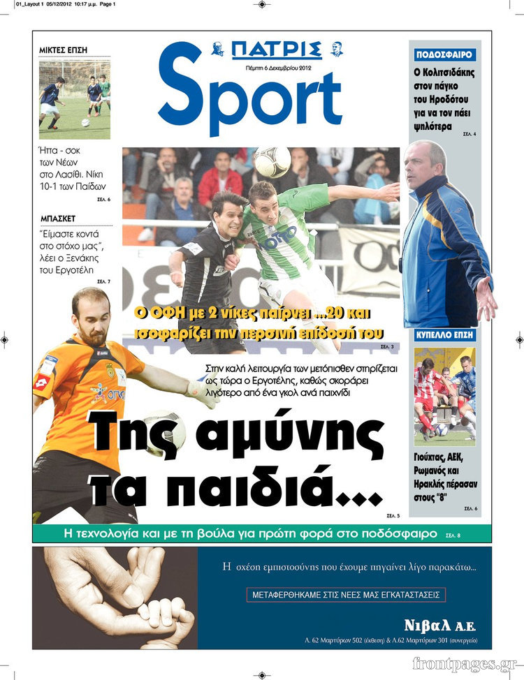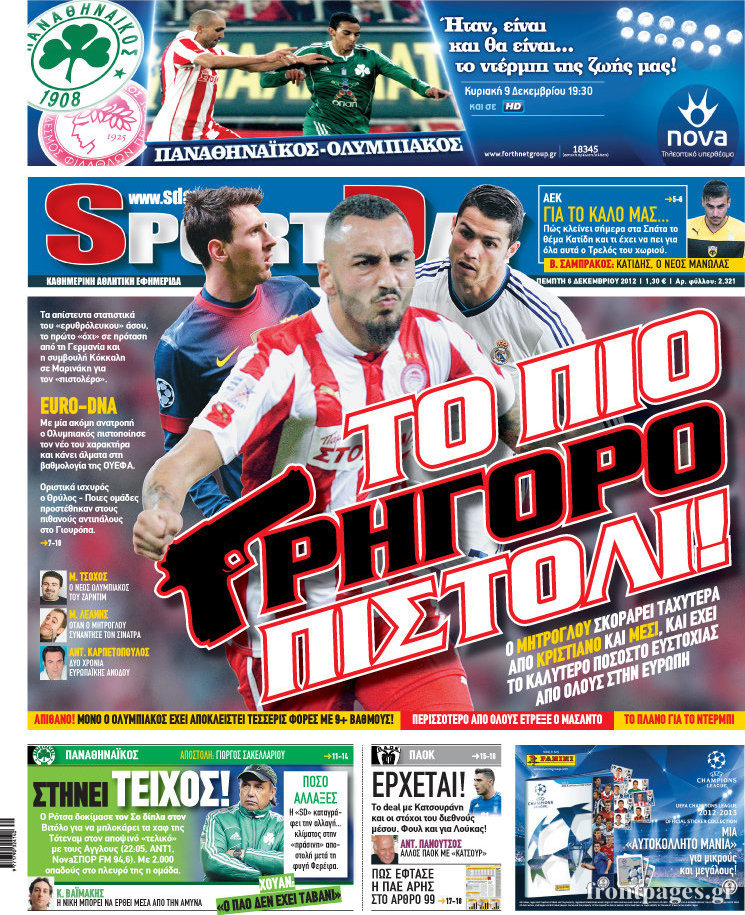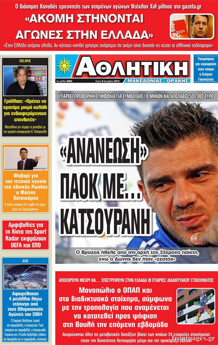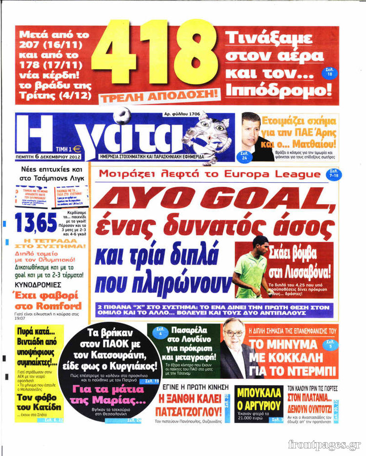 Oι αθλητικές εφημερίδες Enikos Newsroom 10:35, Πέμπτη 06 Δεκεμβρίου 2012 Media Oι αθλητικές εφημερίδες ΑΘΛΗΤΙΚΕΣ ΕΦΗΜΕΡΙΔΕΣ ΕΦΗΜΕΡΙΔΕΣ Μοιράσου το: σχολίασε κι εσύ (0 σχόλια) Ακολουθήστε το enikos.gr στο Google News και μάθετε πρώτοι όλες τις ειδήσεις Δείτε όλες τις τελευταίες ειδήσεις από την Ελλάδα και τον Κόσμο στο enikos.gr Ειδήσεις Ροή Ειδήσεων 2 ώρες πριν Εκτός ευρωομάδας ΣΥΡΙΖΑ ο Νίκος Παππάς μετά την επίθεση στον δημοσιογράφο Νίκο Γιαννόπουλο – Η μήνυση και οι νέες δηλώσεις 2 ώρες πριν «Αγριεύουν» οι αγρότες: «Δεν συντρέχει λόγος συνάντησης με τον πρωθυπουργό» – Ώρα αποφάσεων στη σύσκεψη της Πέμπτης 2 ώρες πριν Κυψέλη: Χωρίς την οικογένειά της δίπλα της απολογήθηκε η 16χρονη – «Της είχε επιτεθεί κάποιος για να την βιάσει, φοβήθηκε και κυκλοφορούσε με μαχαίρι» 1 ώρα πριν Politico: Το πρόβλημα της Ευρώπης δεν είναι το Βέλγιο αλλά ο Ντόναλντ Τραμπ 3 ώρες πριν Αλεξανδρούπολη: Πολυοργανική ανεπάρκεια λόγω υποσιτισμού η αιτία θανάτου του 3χρονου αγοριού 2 ώρες πριν Μυστήριο με τεράστιες κυκλικές πέτρες 200 κιλών – Ανακαλύφθηκαν τυχαία κατά τη διάρκεια οδικών έργων και κανείς δεν ξέρει από πού προέρχονται 3 ώρες πριν Ύπνος: Ειδικός εξηγεί τον πραγματικό λόγο που ξυπνάτε στις 4 τα ξημερώματα – Ο ρόλος των ορμονών και του κιρκάδιου ρυθμού 4 ώρες πριν Αριθμολογία: Οι άνθρωποι που έχουν γεννηθεί αυτές τις 4 ημερομηνίες, είναι τρυφεροί και αγαπούν ανιδιοτελώς 15 ώρες πριν 20 χρόνια τα Χριστούγεννα ξεκινούν στα Public με μεγάλη ποικιλία σε δώρα! 14 λεπτά πριν Βέλγους πολιτικούς και επικεφαλής χρηματοπιστωτικών ιδρυμάτων στοχοποιεί η Μόσχα για τα κατασχεθέντα περιουσιακά στοιχεία 28 λεπτά πριν ΗΠΑ: Αναζητείται δεύτερος ύποπτος για την επίθεση στο πανεπιστήμιο Μπράουν 43 λεπτά πριν Λεωφόρος Αλεξάνδρας: Δεν εντοπίστηκε βόμβα έξω από το κολλέγιο – Προσήχθη άνδρας για το προειδοποιητικό σημείωμα 60 λεπτά πριν Ελένη Κρίτα για το reunion του «Παρά Πέντε»: «Ήταν πραγματικά σαν να μην είχαμε χαθεί ποτέ» 1 ώρα πριν Κύπελλο Ελλάδας: Αυτά είναι τα ζευγάρια στα νοκ-άουτ, οι διασταυρώσεις στους «8» κι ο δρόμος προς τον τελικό ENIKOS NETWORK Αϋπνία: Το κόλπο που θα σας βοηθήσει να κοιμηθείτε απόψε – Είναι απλό και έχει αποτέλεσμα 2,6 εκατομμύρια πολίτες έχουν ήδη εμβολιαστεί κατά της γρίπης ΕΛΣΤΑΤ: Τι δείχνουν τα νέα στοιχεία για τις ηλεκτρονικές παραγγελίες των επιχειρήσεων ΚΕΠΕ: Οι 3 διακριτές συμβολές των ΜμΕ και της μεταποίησης στην ελληνική οικονομία Χαρτογραφώντας το «σημείο χωρίς επιστροφή»: Για πρώτη φορά αποκαλύπτεται με λεπτομέρεια το ακανθώδες όριο της ατμόσφαιρας τ... Η Google καταργεί τη λειτουργία «dark web report» – Πώς θα μπορούν οι χρήστες να διαγράφουν τα δεδομένα τους περισσότερα 22:24 , Τετάρτη 17 Δεκεμβρίου 2025 Το Σπίτι Δίπλα Στο Ποτάμι: Σε κίνδυνο η υγεία του Απόστολου – Τι θα δούμε απόψε “Το Σπίτι Δίπλα στο Ποτάμι” ξετυλίγει το νήμα της ζωής των πέντε αδελφών με καταισ... 21:14 , Τετάρτη 17 Δεκεμβρίου 2025 Παιχνίδια Εκδίκησης: Θα καταφέρει ο Χρήστος να κλονίσει την εμπιστοσύνη της Μάγιας απέναντι στον Άγη; Τα «Παιχνίδια Εκδίκησης» έρχονται απόψε στις 22:30, στον Αντ1, με το τελευταίο επεισόδιο της χ... 20:57 , Τετάρτη 17 Δεκεμβρίου 2025 Άγιος Έρωτας: Η Χλόη καταθέτει εναντίον του πατέρα της και ο Χάρης αποκαλύπτει στον Κλεάνθη ότι δεν είναι ο βιολογικός του πατέρας. Γεμάτο αποκαλύψεις είναι το νέο επεισόδιο της σειράς “Άγιος Έρωτας” απόψε στις 21:... 20:15 , Τετάρτη 17 Δεκεμβρίου 2025 Η ανακοίνωση της ΕΣΗΕΑ για την επίθε