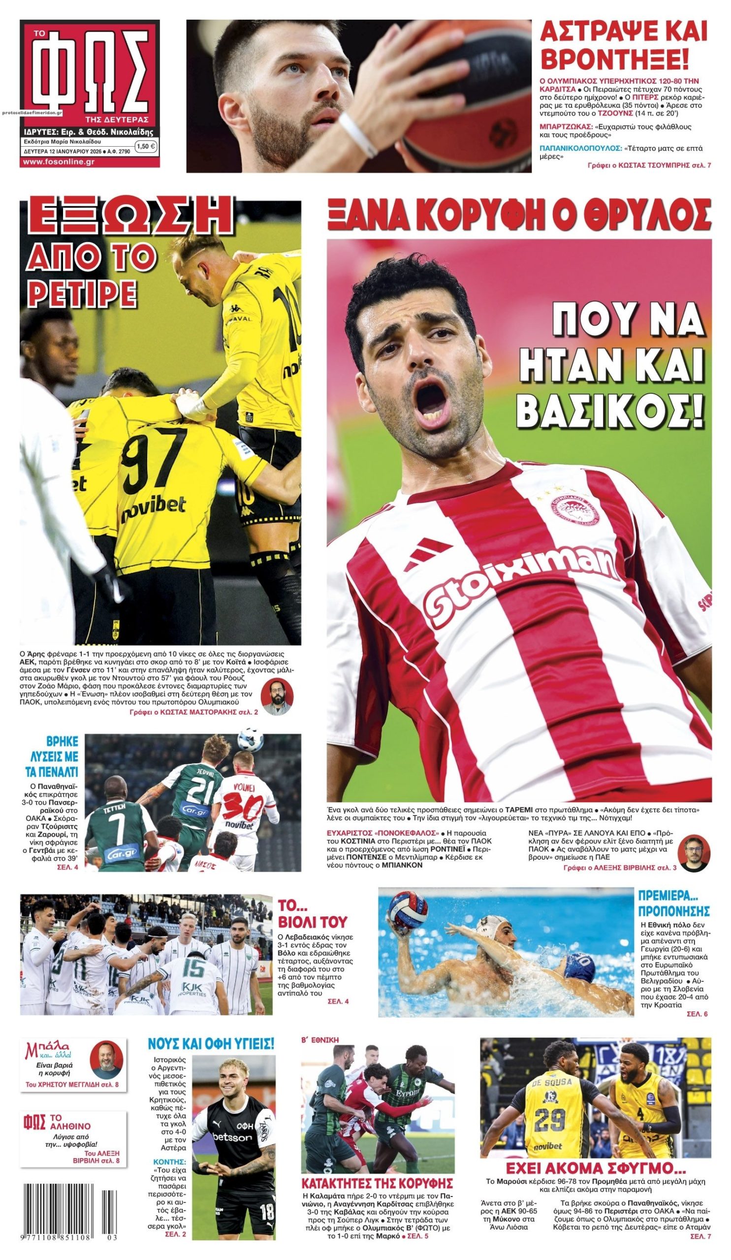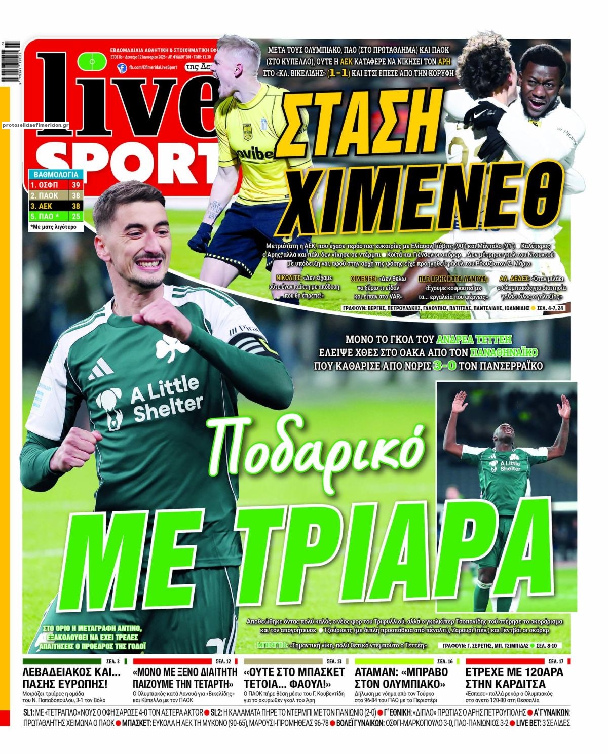Οι αθλητικές εφημερίδες 12/1/2026 Σήφης Γαρυφαλάκης 05:42, Δευτέρα 12 Ιανουαρίου 2026 Media Διαβάστε τα πρωτοσέλιδα από τις αθλητικές εφημερίδες, σήμερα 12/1/2026. ΑΘΛΗΤΙΚΕΣ ΕΦΗΜΕΡΙΔΕΣ ΕΦΗΜΕΡΙΔΕΣ ΠΡΩΤΟΣΕΛΙΔΑ Μοιράσου το: σχολίασε κι εσύ (0 σχόλια) Ακολουθήστε το enikos.gr στο Google News και μάθετε πρώτοι όλες τις ειδήσεις Δείτε όλες τις τελευταίες ειδήσεις από την Ελλάδα και τον Κόσμο στο enikos.gr Ειδήσεις Ροή Ειδήσεων 1 ώρα πριν Το Ιράν πλησιάζει σε μια επανάσταση που θα αναδιαμορφώσει τον κόσμο – «Η πιο σημαντική στιγμή για τη χώρα από το 1979» 3 ώρες πριν Γροιλανδία: Γιατί οι απειλές του Ντόναλντ Τραμπ ξυπνούν μνήμες από τις σκοτεινές στιγμές των συμμαχιών του «Ψυχρού Πολέμου» – Ανάλυση Guardian 1 ώρα πριν ΔΥΠΑ: Επιδοτήσεις 17.500 ευρώ σε ανέργους για να ανοίξουν τη δική τους επιχείρηση – Όλες οι λεπτομέρειες 1 ώρα πριν Αποστολή στην Κύπρο: Στο Λονδίνο ψάχνουν τα ίχνη των «Ολλανδών επιχειρηματιών» για το σκάνδαλο με το βίντεο 35 λεπτά πριν Χρυσές Σφαίρες 2026: Θρίαμβος για το «One Battle After Another» με 4 βραβεία και δικαίωση για τον Σαλαμέ – Η λίστα των μεγάλων νικητών 6 ώρες πριν Τα ζώδια σήμερα, Δευτέρα 12 Ιανουαρίου 2026: Ζυγοί, είστε έτοιμοι για μια ανανέωση στη ζωή σας 2 ώρες πριν Οπτική ψευδαίσθηση: Μόνο αν είσαι ο Σέρλοκ Χολμς θα βρεις τον μοναχικό παπαγάλο σε 8 δευτερόλεπτα 3 ώρες πριν Κολλαγόνο: Ποια είναι η καλύτερη ώρα για τη λήψη του, σύμφωνα με διαιτολόγους 36 λεπτά πριν Ανακαλύφθηκε πρωτόγνωρο οστέινο κουτί μέσα σε τάφο γυναίκας – Τα μοναδικά μοτίβα με τους ομόκεντρους κύκλους 2 λεπτά πριν Τζολάκης – Σπανού: Μαζί στο επόμενο βήμα 6 λεπτά πριν Θεσσαλονίκη: Νεκρή εντοπίστηκε η ηλικιωμένη που έψαχναν σε σπίτι που πήρε φωτιά στον Σοχό 6 λεπτά πριν Παύλος Μαρινάκης: «Αναζητούμε τη χρυσή τομή με τους αγρότες» 12 λεπτά πριν Συνταγή για μοσχαράκι στιφάδο που λιώνει στο στόμα 17 λεπτά πριν Η Άγκυρα στήνει «βραχυκύκλωμα» στο Αιγαίο ENIKOS NETWORK Αυτή την Κυριακή με τη Realnews: Στοιχειωμένα μυστικά της Emmeline Duncan, μαζί αστυνομικά best sellers Covid: Πότε ο κορωνοϊός μπορεί να προκαλέσει θρομβώσεις στο αίμα – Πώς να προστατευτούμε; ΔΥΠΑ: Επιδοτήσεις 17.500 ευρώ σε ανέργους για να ανοίξουν την δική τους επιχείρηση Συντάξεις: Ολοταχώς προς νέο ρεκόρ συνταξιοδοτήσεων το 2025 – Οι βασικοί λόγοι Ο Google Assistant θα παραμείνει λίγο περισσότερο για ορισμένους χρήστες Android Τεστ προσωπικότητας: Το βάζο που θα επιλέξετε αποκαλύπτει πώς λύνετε προβλήματα στη ζωή σας περισσότερα 08:07 , Δευτέρα 12 Ιανουαρίου 2026 Χρυσές Σφαίρες 2026: Θρίαμβος για το «One Battle After Another» με 4 βραβεία και δικαίωση για τον Σαλαμέ – Η λίστα των μεγάλων νικητών Με ανατροπές και σαρκασμό η 83η τελετή για τις Χρυσές Σφαίρες ολοκληρώθηκε το βράδυ της Κυριακ... 08:00 , Δευτέρα 12 Ιανουαρίου 2026 Αυτή την Κυριακή με τη Realnews: Στοιχειωμένα μυστικά – Ένα συναρπαστικό μυθιστόρημα της Emmeline Duncan Αυτή την Κυριακή με τη Realnews: Στοιχειωμένα μυστικά – Ένα συναρπαστικό μυθιστόρημα της... 07:21 , Δευτέρα 12 Ιανουαρίου 2026 Αυτή την Κυριακή με τη Realnews: Στοιχειωμένα μυστικά της Emmeline Duncan – Μαζί αστυνομικά best sellers Αυτή την Κυριακή με τη Realnews: Στοιχειωμένα μυστικά της Emmeline Duncan – Μαζί αστυνομ... 13:34 , Κυριακή 11 Ιανουαρίου 2026 Σήμερα με τη Realnews: Μυστηριώδης εξαφάνιση – Ένα καθηλωτικό θρίλερ γεμάτο αγωνία από τον διεθνώς αναγνωρισμένο συγγραφέα Rick Mofina Σήμερα με τη Realnews: Μυστηριώδης εξαφάνιση –Ένα καθηλωτικό θρίλερ γεμάτο αγωνία από το... ΤΕΛΕΥΤΑΙΕΣ ΕΙΔΗΣΕΙΣ 2 λεπτά πριν Τζολάκης – Σπανού: Μαζί στο επόμεν