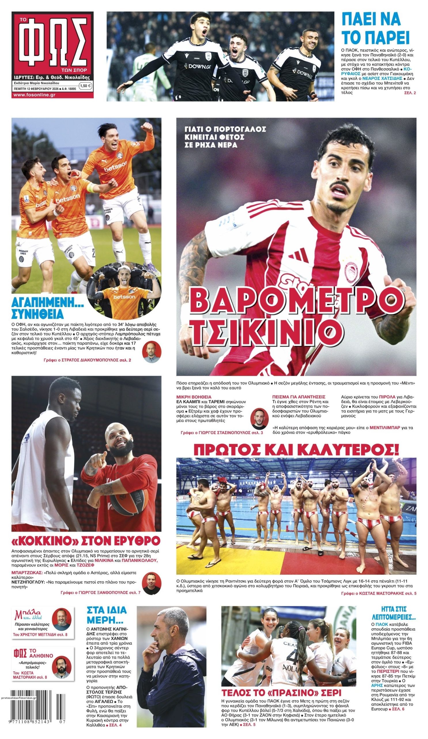 Οι αθλητικές εφημερίδες 12/2/2026 Enikos Newsroom 05:43, Πέμπτη 12 Φεβρουαρίου 2026 Media Διαβάστε τα πρωτοσέλιδα από τις αθλητικές εφημερίδες, σήμερα 12/2/2026. ΑΘΛΗΤΙΚΕΣ ΕΦΗΜΕΡΙΔΕΣ ΕΦΗΜΕΡΙΔΕΣ ΠΡΩΤΟΣΕΛΙΔΑ Μοιράσου το: Μεταγραφική «βόμβα» στον Παναθηναϊκό: Υπέγραψε για 2,5 χρόνια με τον Αμερικάνο σταρ Χέιζ-Ντέιβις – Δείτε την ανακοίνωση του Δημήτρη Γιαννακόπουλου ΠΑΟΚ – Παναθηναϊκός 2-0: Δίκαια στον τελικό του Κυπέλλου ο Δικέφαλος του Βορρά Premier League: «Γκέλαρε» η Νότιγχαμ Φόρεστ, 0-0 με Γουλβς – Όλα τα αποτελέσματα και η βαθμολογία σχολίασε κι εσύ (0 σχόλια) Ακολουθήστε το enikos.gr στο Google News και μάθετε πρώτοι όλες τις ειδήσεις Δείτε όλες τις τελευταίες ειδήσεις από την Ελλάδα και τον Κόσμο στο enikos.gr Ειδήσεις Ροή Ειδήσεων 8 ώρες πριν Η αποτίμηση της συνάντησης Μητσοτάκη-Ερντογάν: Το casus belli, τα μηνύματα φιλίας και οι συμφωνίες Ελλάδας-Τουρκίας 8 ώρες πριν Υπόθεση Επστάιν: Οι αποκαλύψεις προκαλούν χάος από τη Σκανδιναβία έως τη Νότια Ασία – Το τίμημα του πάθους για γυναίκες, σεξ και χρήμα 8 ώρες πριν Σμήναρχος: Πού επικεντρώνονται οι έρευνες μετά την προφυλάκιση του – Ο φάκελος του αεροδικείου και τα κενά στην απολογία του 9 ώρες πριν Ηράκλειο: Ερωτική αντιζηλία πίσω από την δολοφονία του 40χρονου που εντοπίστηκε νεκρός – Τον εγκατέλειψαν αιμόφυρτο να ψυχορραγεί 3 ώρες πριν Μεταγραφική «βόμβα» στον Παναθηναϊκό: Υπέγραψε για 2,5 χρόνια με τον Αμερικάνο σταρ Χέιζ-Ντέιβις – Δείτε την ανακοίνωση του Δημήτρη Γιαννακόπουλου 15 ώρες πριν ΕΛΤΑ: Το «φρακαρισμένο» παλιό κέντρο διαλογής στην Αττική και οι καθυστερήσεις στις παραδόσεις που αγγίζουν τους 2 μήνες – «Είμαστε επιφυλακτικοί ως προς τον σχεδιασμό» 14 ώρες πριν Τουρκία: Σε ρινγκ μετατράπηκε πάλι η Βουλή – Έπεσαν γροθιές για την ορκωμοσία του νέου υπουργού Δικαιοσύνης 10 ώρες πριν Καλλιθέα: Συγκλονίζει ο πατέρας του κοριτσιού που έπεσε στο συντριβάνι – «Ο Θεός να βάλει το χέρι του» 11 ώρες πριν Μια απλή χημική μετατροπή ξεκλειδώνει ένα από τα «Άγια Δισκοπότηρα» της κβαντικής υπολογιστικής 10 λεπτά πριν Το Ισραήλ εντάσσεται στο «Συμβούλιο Ειρήνης» του Τραμπ για τη Γάζα 25 λεπτά πριν ΔΕΔΔΗΕ: Διακοπές ρεύματος σήμερα (12/2) στην Αθήνα και σε άλλες 13 περιοχές της Αττικής 40 λεπτά πριν Οπτική ψευδαίσθηση: Μόνο όσοι έχουν τέλεια όραση μπορούν να εντοπίσουν την καρδιά μέσα σε 11 δευτερόλεπτα 55 λεπτά πριν Ψυχική υγεία: Η τροφή που πρέπει να αποφεύγετε το πρωί, σύμφωνα με ειδικό 1 ώρα πριν Σαν σήμερα 12 Φεβρουαρίου: Τα σημαντικότερα γεγονότα της ημέρας ENIKOS NETWORK Σε μια θάλασσα από σαλιγκάρια υπάρχει μια καρδιά – Μόνο αν είστε τόσο παρατηρητικοί όσο ένα γεράκι θα την εντοπίσετε σε 45 ... Το απαγορευμένο φρούτο από τα Μπαρμπάντος που μπορεί να ρυθμίσει τη χοληστερίνη και να ενισχύσει τον εγκέφαλο Νίκος Παπαθανάσης: Δεν υπάρχει περίπτωση να δοθεί ούτε ένα ευρώ χωρίς να είναι σύννομο ΕΕΑ: Ετοιμάζει στατιστική έρευνα για την απορρόφηση επιδοτήσεων σε μικρομεσαίες επιχειρήσεις Ευπάθεια στο moltbook ai αποκαλύπτει email, tokens σύνδεσης και api keys Αυτός είναι ο ρόλος της μικρής τρύπας στους νυχοκόπτες – «Είμαι ο μόνος που δεν το ήξερε;»» περισσότερα 05:38 , Πέμπτη 12 Φεβρουαρίου 2026 Οι πολιτικές εφημερίδες 12/2/2026 Διαβάστε τα πρωτοσέλιδα από τις πολιτικές εφημερίδες, σήμερα 12/2/2026. 23:35 , Τετάρτη 11 Φεβρουαρίου 2026 Eurovision – Sing for Greece 2026: Αυτοί είναι οι 7 φιναλίστ που προκρίθηκαν στον Εθνικό τελικό Με εντυπωσιακές εμφανίσεις και έντονη συμμετοχή του κοινού, ολοκληρώθηκε 
