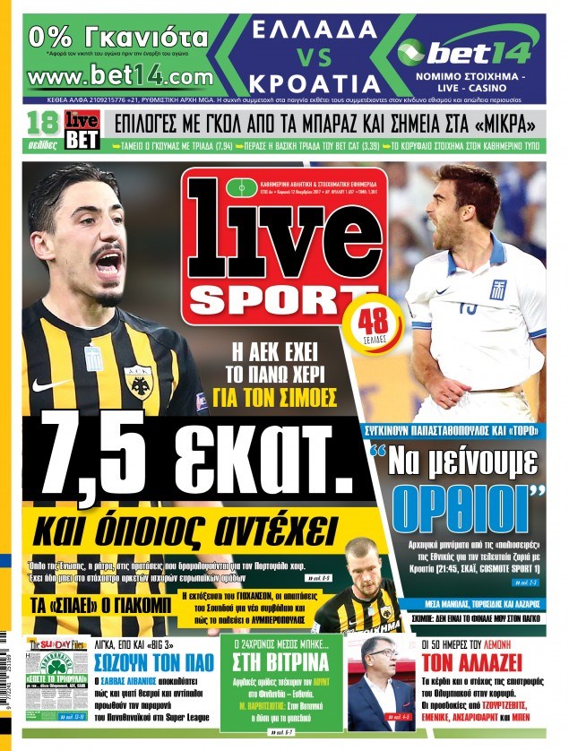 Οι αθλητικές εφημερίδες 12/11/2017 Κώστας Τεό 07:15, Κυριακή 12 Νοεμβρίου 2017 Media Διαβάστε τα σημερινά πρωτοσέλιδα των αθλητικών εφημερίδων: ΑΘΛΗΤΙΚΕΣ ΕΦΗΜΕΡΙΔΕΣ ΠΡΩΤΟΣΕΛΙΔΑ Μοιράσου το: σχολίασε κι εσύ (0 σχόλια) Ακολουθήστε το enikos.gr στο Google News και μάθετε πρώτοι όλες τις ειδήσεις Δείτε όλες τις τελευταίες ειδήσεις από την Ελλάδα και τον Κόσμο στο enikos.gr Ειδήσεις Ροή Ειδήσεων 34 λεπτά πριν Μεσόγειος: Η διαδρομή του ρωσικού τάνκερ «Qendil» και η στοχευμένη επίθεση της Ουκρανίας με drone – Ο Πούτιν προειδοποίησε για αντίποινα 29 λεπτά πριν Αττική: Θρίλερ με νεκρό βρέφος 5 μηνών – Κοιμόταν στο ίδιο κρεβάτι με τους γονείς του 1 ώρα πριν Από το Ορμένιο ως τα Μάλγαρα κι από τη Σιάτιστα μέχρι τη Νίκαια: Μπλόκα σε όλη την Ελλάδα – Το Σάββατο ανοίγουν τα διόδια οι αγρότες 1 ώρα πριν «Έλληνας Εσκομπάρ»: Φωτογραφίες με τους 4 τόνους κοκαΐνης που κατασχέθηκαν από το σκάφος «Ουρανία» 3 ώρες πριν Πούτιν: Σαρκαστικά μηνύματα, παράπονα και απρόοπτα στη συνέντευξη Τύπου – Η πρόταση γάμου on air και οι ερωτήσεις για τα αγγούρια και τους… εξωγήινους 2 ώρες πριν Τα 5 ζώδια που ευνοούνται στην ερωτική ζωή τους την επόμενη εβδομάδα – «Η ενέργεια του Αιγόκερου φέρνει αγάπη και σταθερότητα» 6 ώρες πριν Ειδικός μοιράζεται 6 κόλπα για να διατηρείστε σε φόρμα με πάνω από 40 ώρες εργασίας την εβδομάδα: «Προπονηθείτε πριν από τη δουλειά, όχι μετά» 3 ώρες πριν Αυτό το έξυπνο μαθηματικό κόλπο θα μπορούσε να αλλάξει τον τρόπο με τον οποίο οι επιστήμονες μελετούν τους σεισμούς 1 ώρα πριν Κουίζ για την παλιά Αθήνα: Αναγνωρίζετε την περιοχή; Έχετε περάσει 100% από εκεί 3 λεπτά πριν Επίσημη η «βόμβα»: Ο ΠΑΟΚ ανακοίνωσε την απόκτηση του Πάτρικ Μπέβερλι 8 λεπτά πριν Θεσσαλονίκη: Πατέρας εγκαλεί τον Ιατρικό Σύλλογο για ποινές «χάδι» σε γιατρό που κατηγορείται για τον θάνατο του παιδιού του 14 λεπτά πριν Κερατσίνι: Αστυνομικός εκτός υπηρεσίας απέτρεψε κλοπή μηχανών – Συνελήφθησαν τρεις ανήλικοι 18 λεπτά πριν Το σόι σου: Ο Άρης έρχεται στην Ελλάδα για τις γιορτές των Χριστουγέννων – Τι θα δούμε στο αποψινό εορταστικό επεισόδιο 25 λεπτά πριν ΠΑΣΟΚ σε Μαρινάκη: Δεν νομιμοποιούμε πολιτικές επιλογές που μεταφέρουν το πρόβλημα από υπηρεσία σε υπηρεσία ENIKOS NETWORK «Η σούπερ» γρίπη εξαπλώνεται στην Ευρώπη-Στοιχεία για την αποτελεσματικότητα του εμβολίου από το ECDC ΕΛΣΤΑΤ: Αύξηση κατά 1,7% των επαγγελματιών υγείας το 2024 Η απάντηση της κυβέρνησης στα αιτήματα των αγροτών: 16 έχουν ικανοποιηθεί, 4 βρίσκονται υπό επεξεργασία και 7 δεν είναι εφι... Μισθολογική διαφάνεια: Το 68% των εργαζομένων αγνοεί τη νέα οδηγία – Αναλυτικά τα στοιχεία έρευνας Χαρτογραφώντας το «σημείο χωρίς επιστροφή»: Για πρώτη φορά αποκαλύπτεται με λεπτομέρεια το ακανθώδες όριο της ατμόσφαιρας τ... Η Google καταργεί τη λειτουργία «dark web report» – Πώς θα μπορούν οι χρήστες να διαγράφουν τα δεδομένα τους περισσότερα 18:11 , Παρασκευή 19 Δεκεμβρίου 2025 Το σόι σου: Ο Άρης έρχεται στην Ελλάδα για τις γιορτές των Χριστουγέννων – Τι θα δούμε στο αποψινό εορταστικό επεισόδιο Ένα απολαυστικό, εορταστικό επεισόδιο της σειράς “Το σόι σου”, γεμάτο ευτράπελα αλ... 15:15 , Παρασκευή 19 Δεκεμβρίου 2025 Την Κυριακή με τη Realnews: Ό,τι και αν αγοράσεις, σκανάρεις και κερδίζεις! Την Κυριακή με τη Realnews: Ό,τι και αν αγοράσεις, σκανάρεις και κερδίζεις! Με το PADU app, το... 08:00 , Παρασκευή 19 Δεκεμβρίου 2025 Την Κυριακή με τη Realnews: Δωροεπιταγή 10€ Δωροεπιταγή αξίας 10€ για αγορές άνω των 60€ από τα πολυκατα