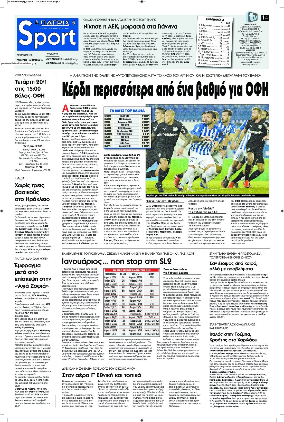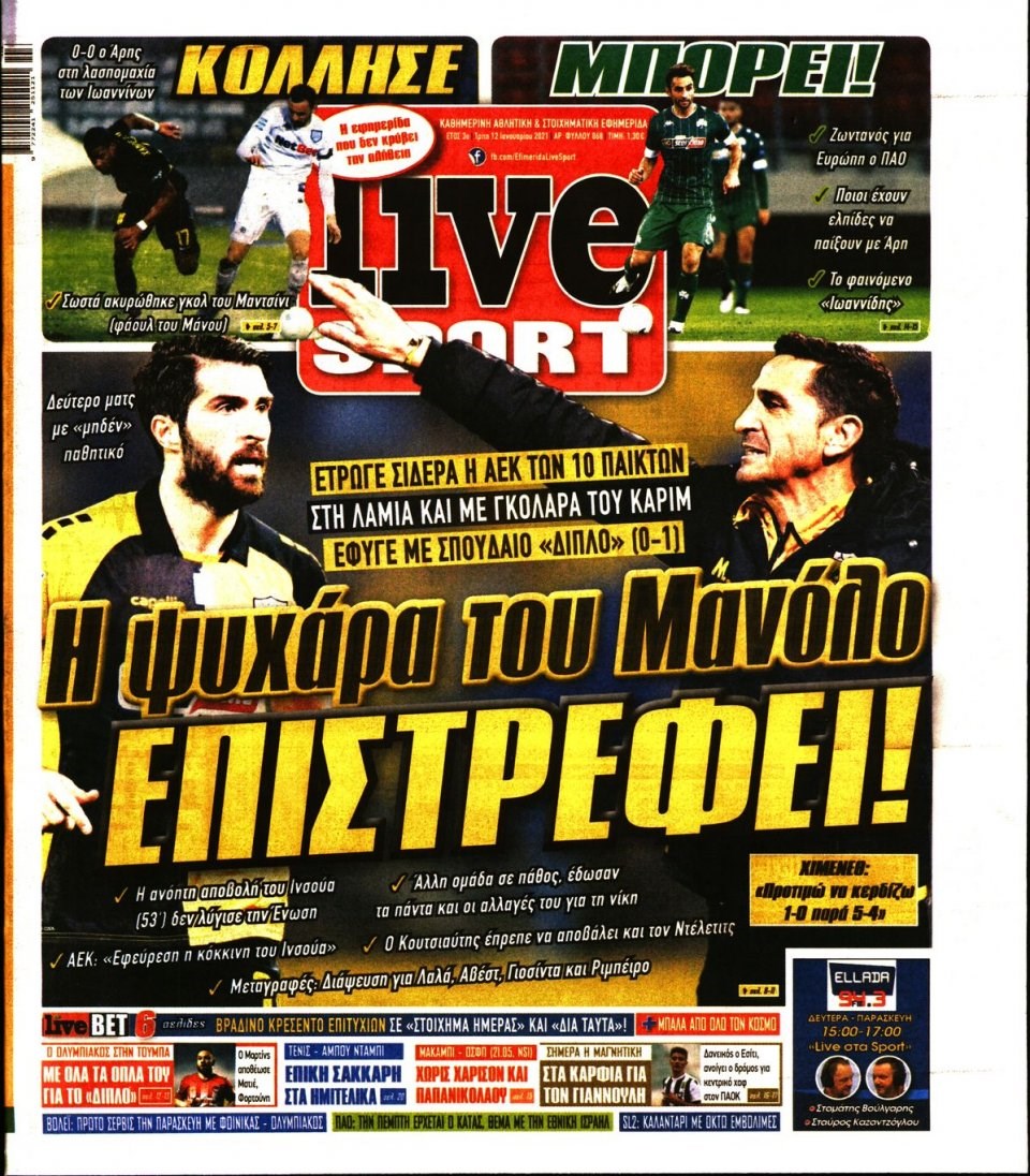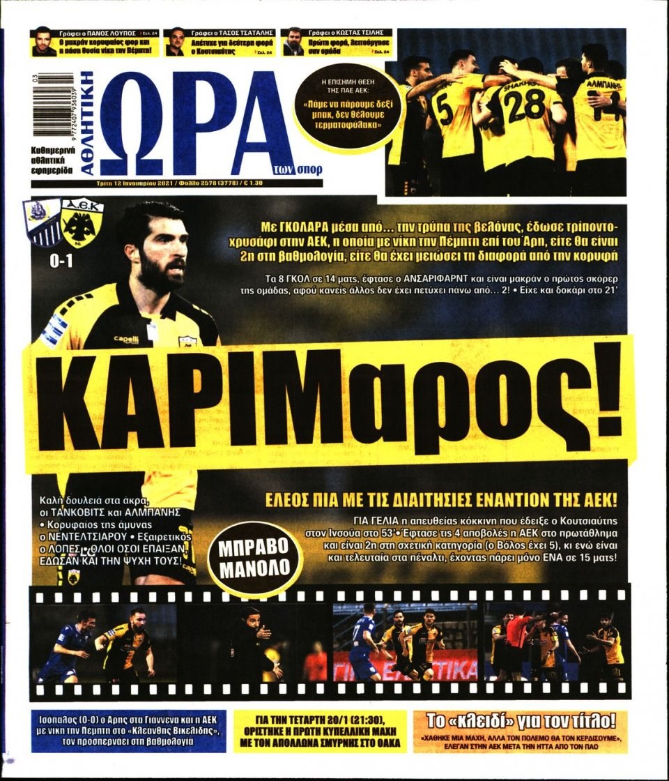 Οι αθλητικές εφημερίδες 12/1/2021 Σήφης Γαρυφαλάκης 06:19, Τρίτη 12 Ιανουαρίου 2021 Media Διαβάστε τα πρωτοσέλιδα των αθλητικών εφημερίδων… ΑΘΛΗΤΙΚΕΣ ΕΦΗΜΕΡΙΔΕΣ ΕΦΗΜΕΡΙΔΕΣ ΠΡΩΤΟΣΕΛΙΔΑ ΠΡΩΤΟΣΕΛΙΔΑ ΕΦΗΜΕΡΙΔΩΝ Μοιράσου το: σχολίασε κι εσύ (0 σχόλια) Ακολουθήστε το enikos.gr στο Google News και μάθετε πρώτοι όλες τις ειδήσεις Δείτε όλες τις τελευταίες ειδήσεις από την Ελλάδα και τον Κόσμο στο enikos.gr Ειδήσεις Ροή Ειδήσεων 5 ώρες πριν Εκτός ευρωομάδας ΣΥΡΙΖΑ ο Νίκος Παππάς μετά την επίθεση στον δημοσιογράφο Νίκο Γιαννόπουλο – Η μήνυση και οι νέες δηλώσεις 5 ώρες πριν «Αγριεύουν» οι αγρότες: «Δεν συντρέχει λόγος συνάντησης με τον πρωθυπουργό» – Ώρα αποφάσεων στη σύσκεψη της Πέμπτης 5 ώρες πριν Κυψέλη: Χωρίς την οικογένειά της δίπλα της απολογήθηκε η 16χρονη – «Της είχε επιτεθεί κάποιος για να την βιάσει, φοβήθηκε και κυκλοφορούσε με μαχαίρι» 5 ώρες πριν Politico: Το πρόβλημα της Ευρώπης δεν είναι το Βέλγιο αλλά ο Ντόναλντ Τραμπ 6 ώρες πριν Αλεξανδρούπολη: Πολυοργανική ανεπάρκεια λόγω υποσιτισμού η αιτία θανάτου του 3χρονου αγοριού 5 ώρες πριν Μυστήριο με τεράστιες κυκλικές πέτρες 200 κιλών – Ανακαλύφθηκαν τυχαία κατά τη διάρκεια οδικών έργων και κανείς δεν ξέρει από πού προέρχονται 6 ώρες πριν Ύπνος: Ειδικός εξηγεί τον πραγματικό λόγο που ξυπνάτε στις 4 τα ξημερώματα – Ο ρόλος των ορμονών και του κιρκάδιου ρυθμού 7 ώρες πριν Αριθμολογία: Οι άνθρωποι που έχουν γεννηθεί αυτές τις 4 ημερομηνίες, είναι τρυφεροί και αγαπούν ανιδιοτελώς 19 ώρες πριν 20 χρόνια τα Χριστούγεννα ξεκινούν στα Public με μεγάλη ποικιλία σε δώρα! 9 λεπτά πριν GNTM: Με δάκρυα τον αποχαιρέτησε η Ηλιάνα Παπαγεωργίου πριν από τον ημιτελικό – «Αισθάνομαι πολύ παράξενα» 24 λεπτά πριν Αμερικανικά στρατεύματα στον Ισημερινό για «προσωρινή» επιχείρηση κατά των ναρκωτικών 40 λεπτά πριν Βραζιλία: Το Κογκρέσο ενέκρινε σχέδιο νόμου για τη μείωση της ποινής του πρώην προέδρου Μπολσονάρου 54 λεπτά πριν Ένταση στο περιφερειακό συμβούλιο Δυτικής Μακεδονίας: Φωνές, σπρωξιές και διακοπή – Δείτε βίντεο 1 ώρα πριν Σουδάν: Επιδρομή drone σε χωριό του Νότιου Κορντοφάν – Οκτώ νεκροί ENIKOS NETWORK Αϋπνία: Το κόλπο που θα σας βοηθήσει να κοιμηθείτε απόψε – Είναι απλό και έχει αποτέλεσμα 2,6 εκατομμύρια πολίτες έχουν ήδη εμβολιαστεί κατά της γρίπης ΕΛΣΤΑΤ: Τι δείχνουν τα νέα στοιχεία για τις ηλεκτρονικές παραγγελίες των επιχειρήσεων ΚΕΠΕ: Οι 3 διακριτές συμβολές των ΜμΕ και της μεταποίησης στην ελληνική οικονομία Χαρτογραφώντας το «σημείο χωρίς επιστροφή»: Για πρώτη φορά αποκαλύπτεται με λεπτομέρεια το ακανθώδες όριο της ατμόσφαιρας τ... Η Google καταργεί τη λειτουργία «dark web report» – Πώς θα μπορούν οι χρήστες να διαγράφουν τα δεδομένα τους περισσότερα 02:30 , Πέμπτη 18 Δεκεμβρίου 2025 Αλ Τσαντίρι Νιουζ: Η κόρη της Πάολα στο κοινό – Η ατάκα Λαζόπουλου που την έκανε να «κοκκινήσει» Γιορτινή διάθεση και ευχάριστες στιγμές γέμισε η αποψινή, τελευταία για το 2025, εκπομπή του «... 22:24 , Τετάρτη 17 Δεκεμβρίου 2025 Το Σπίτι Δίπλα Στο Ποτάμι: Σε κίνδυνο η υγεία του Απόστολου – Τι θα δούμε απόψε “Το Σπίτι Δίπλα στο Ποτάμι” ξετυλίγει το νήμα της ζωής των πέντε αδελφών με καταισ... 21:14 , Τετάρτη 17 Δεκεμβρίου 2025 Παιχνίδια Εκδίκησης: Θα καταφέρει ο Χρήστος να κλονίσει την εμπιστοσύνη της Μάγιας απέναντι στον Άγη; Τα «Παιχνίδια Εκδίκησης» έρχονται απόψε στις 22:30, στον Αντ1, με το τελευταίο επεισόδιο της χ... 20:57 , Τετάρτη 17 Δεκεμβρίου 2025 Άγιος Έρωτας: Η Χλόη καταθέτει εναντ