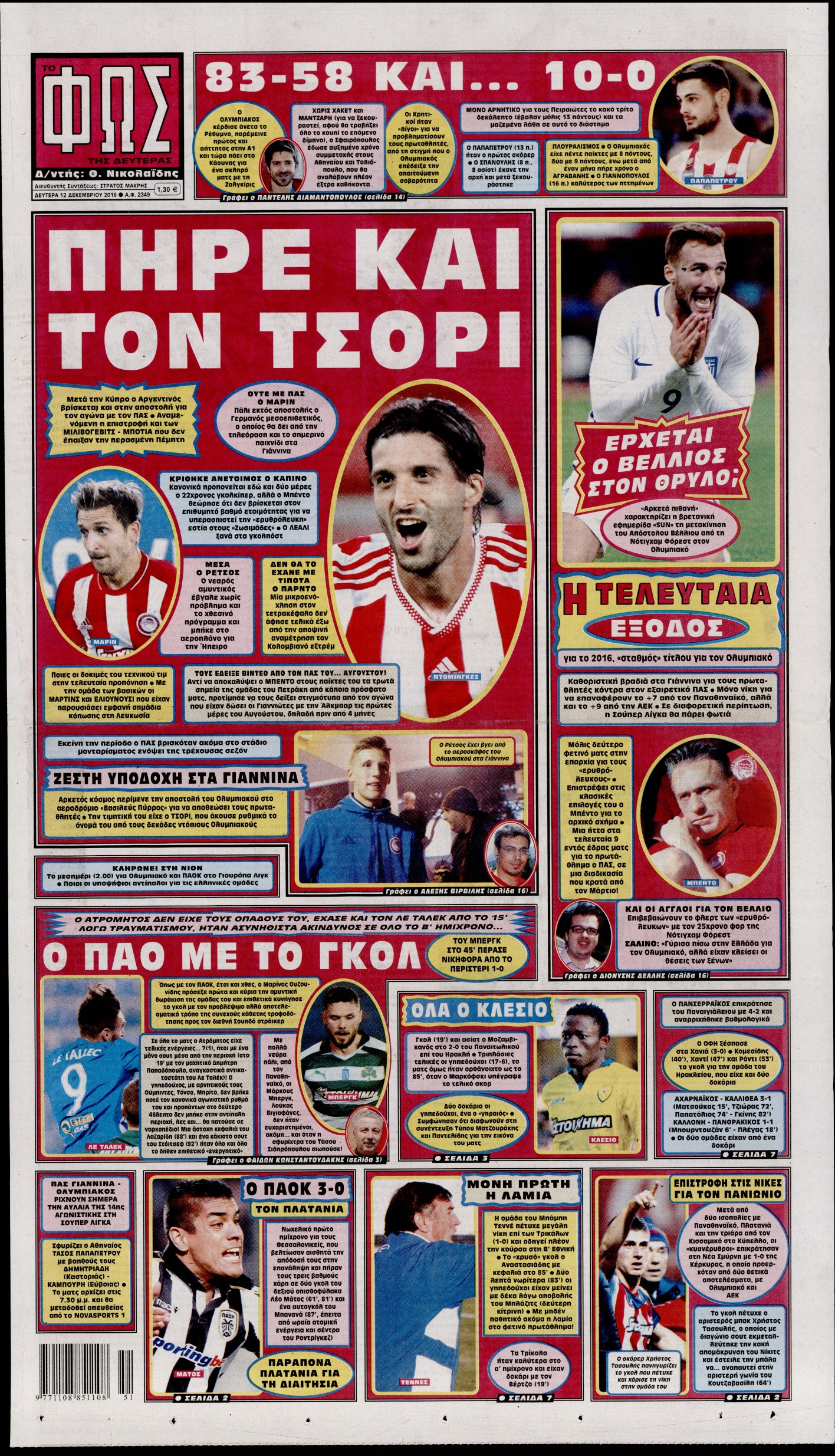Οι αθλητικές εφημερίδες 12/12/2016 Enikos Newsroom 00:12, Δευτέρα 12 Δεκεμβρίου 2016 Media Διαβάστε τα σημερινά πρωτοσέλιδα των αθλητικών εφημερίδων: ΑΘΛΗΤΙΚΕΣ ΕΦΗΜΕΡΙΔΕΣ ΠΡΩΤΟΣΕΛΙΔΑ Μοιράσου το: σχολίασε κι εσύ (0 σχόλια) Ακολουθήστε το enikos.gr στο Google News και μάθετε πρώτοι όλες τις ειδήσεις Δείτε όλες τις τελευταίες ειδήσεις από την Ελλάδα και τον Κόσμο στο enikos.gr Ειδήσεις Ροή Ειδήσεων 5 ώρες πριν Εκτός ευρωομάδας ΣΥΡΙΖΑ ο Νίκος Παππάς μετά την επίθεση στον δημοσιογράφο Νίκο Γιαννόπουλο – Η μήνυση και οι νέες δηλώσεις 5 ώρες πριν «Αγριεύουν» οι αγρότες: «Δεν συντρέχει λόγος συνάντησης με τον πρωθυπουργό» – Ώρα αποφάσεων στη σύσκεψη της Πέμπτης 5 ώρες πριν Κυψέλη: Χωρίς την οικογένειά της δίπλα της απολογήθηκε η 16χρονη – «Της είχε επιτεθεί κάποιος για να την βιάσει, φοβήθηκε και κυκλοφορούσε με μαχαίρι» 5 ώρες πριν Politico: Το πρόβλημα της Ευρώπης δεν είναι το Βέλγιο αλλά ο Ντόναλντ Τραμπ 7 ώρες πριν Αλεξανδρούπολη: Πολυοργανική ανεπάρκεια λόγω υποσιτισμού η αιτία θανάτου του 3χρονου αγοριού 5 ώρες πριν Μυστήριο με τεράστιες κυκλικές πέτρες 200 κιλών – Ανακαλύφθηκαν τυχαία κατά τη διάρκεια οδικών έργων και κανείς δεν ξέρει από πού προέρχονται 6 ώρες πριν Ύπνος: Ειδικός εξηγεί τον πραγματικό λόγο που ξυπνάτε στις 4 τα ξημερώματα – Ο ρόλος των ορμονών και του κιρκάδιου ρυθμού 7 ώρες πριν Αριθμολογία: Οι άνθρωποι που έχουν γεννηθεί αυτές τις 4 ημερομηνίες, είναι τρυφεροί και αγαπούν ανιδιοτελώς 19 ώρες πριν 20 χρόνια τα Χριστούγεννα ξεκινούν στα Public με μεγάλη ποικιλία σε δώρα! 12 λεπτά πριν Αλ Τσαντίρι Νιουζ: «Λύγισε» ο Δημήτρης Λάλος για τον Δημήτρη Ήμελλο – «Τον μνημονεύω, να ‘ναι καλά εκεί που είναι» 27 λεπτά πριν GNTM: Με δάκρυα τον αποχαιρέτησε η Ηλιάνα Παπαγεωργίου πριν από τον ημιτελικό – «Αισθάνομαι πολύ παράξενα» 42 λεπτά πριν Αμερικανικά στρατεύματα στον Ισημερινό για «προσωρινή» επιχείρηση κατά των ναρκωτικών 57 λεπτά πριν Βραζιλία: Το Κογκρέσο ενέκρινε σχέδιο νόμου για τη μείωση της ποινής του πρώην προέδρου Μπολσονάρου 1 ώρα πριν Ένταση στο περιφερειακό συμβούλιο Δυτικής Μακεδονίας: Φωνές, σπρωξιές και διακοπή – Δείτε βίντεο ENIKOS NETWORK Αϋπνία: Το κόλπο που θα σας βοηθήσει να κοιμηθείτε απόψε – Είναι απλό και έχει αποτέλεσμα 2,6 εκατομμύρια πολίτες έχουν ήδη εμβολιαστεί κατά της γρίπης ΕΛΣΤΑΤ: Τι δείχνουν τα νέα στοιχεία για τις ηλεκτρονικές παραγγελίες των επιχειρήσεων ΚΕΠΕ: Οι 3 διακριτές συμβολές των ΜμΕ και της μεταποίησης στην ελληνική οικονομία Χαρτογραφώντας το «σημείο χωρίς επιστροφή»: Για πρώτη φορά αποκαλύπτεται με λεπτομέρεια το ακανθώδες όριο της ατμόσφαιρας τ... Η Google καταργεί τη λειτουργία «dark web report» – Πώς θα μπορούν οι χρήστες να διαγράφουν τα δεδομένα τους περισσότερα 02:30 , Πέμπτη 18 Δεκεμβρίου 2025 Αλ Τσαντίρι Νιουζ: Η κόρη της Πάολα στο κοινό – Η ατάκα Λαζόπουλου που την έκανε να «κοκκινήσει» Γιορτινή διάθεση και ευχάριστες στιγμές γέμισε η αποψινή, τελευταία για το 2025, εκπομπή του «... 22:24 , Τετάρτη 17 Δεκεμβρίου 2025 Το Σπίτι Δίπλα Στο Ποτάμι: Σε κίνδυνο η υγεία του Απόστολου – Τι θα δούμε απόψε “Το Σπίτι Δίπλα στο Ποτάμι” ξετυλίγει το νήμα της ζωής των πέντε αδελφών με καταισ... 21:14 , Τετάρτη 17 Δεκεμβρίου 2025 Παιχνίδια Εκδίκησης: Θα καταφέρει ο Χρήστος να κλονίσει την εμπιστοσύνη της Μάγιας απέναντι στον Άγη; Τα «Παιχνίδια Εκδίκησης» έρχονται απόψε στις 22:30, στον Αντ1, με το τελευταίο επεισόδιο της χ... 20:57 , Τετάρτη 17 Δεκεμβρίου 2025 Άγιος Έρωτας: Η Χλόη