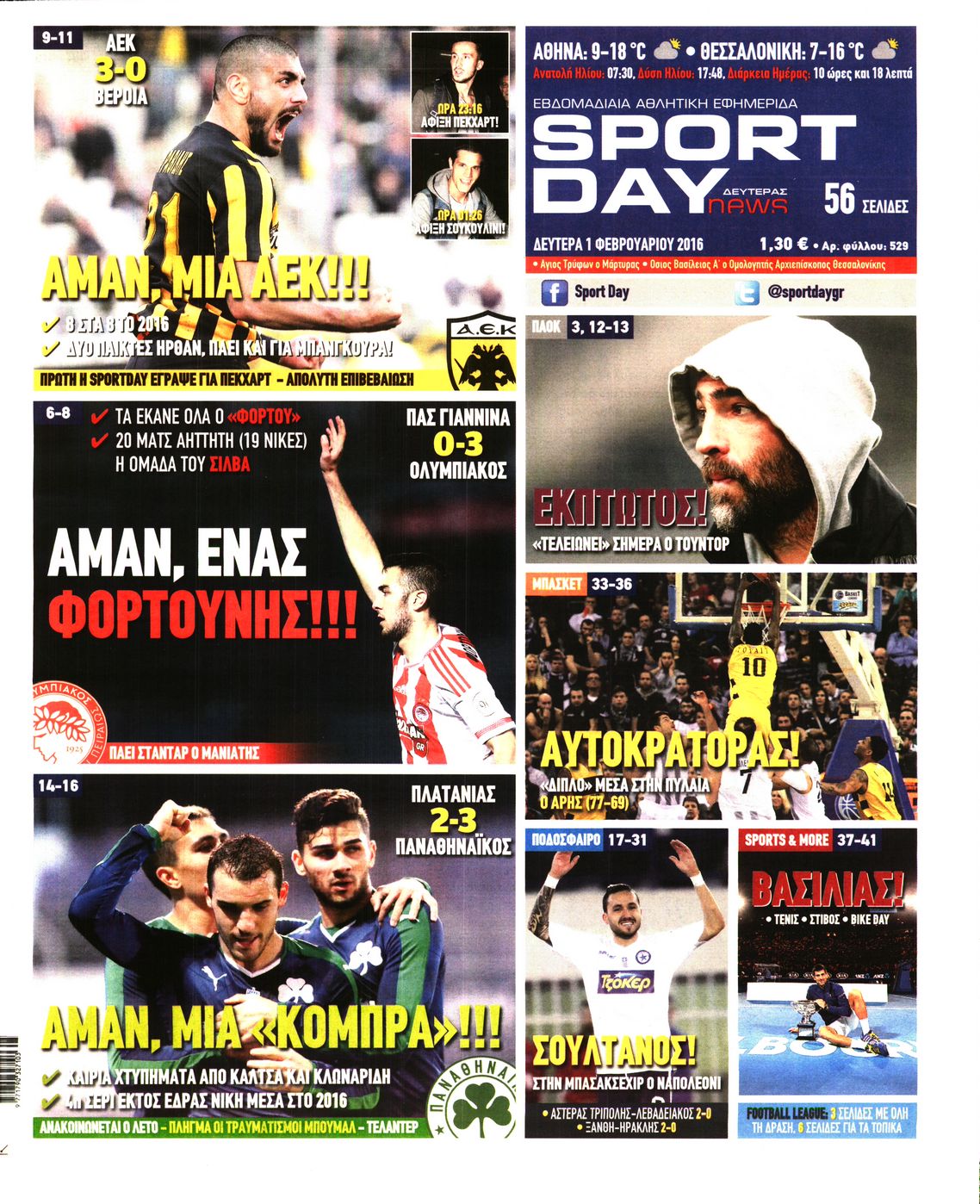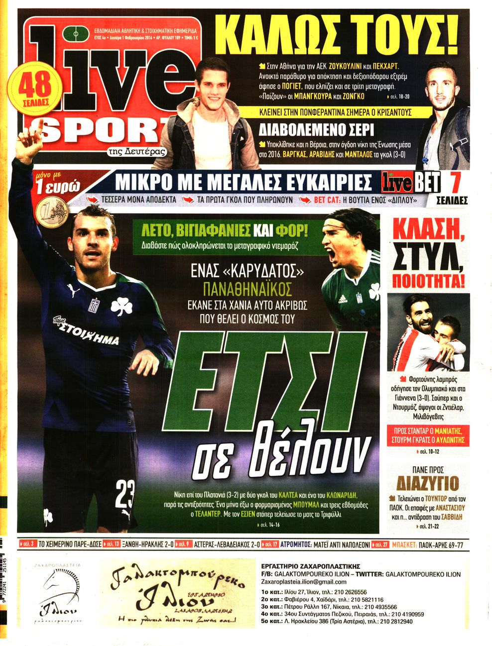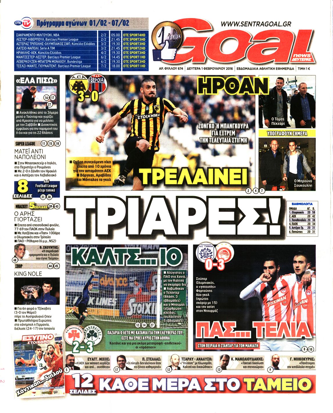 Οι αθλητικές εφημερίδες 1/2/2016 Enikos Newsroom 06:48, Δευτέρα 01 Φεβρουαρίου 2016 Media Δείτε τα πρωτοσέλιδα των αθλητικών εφημερίδων Μοιράσου το: σχολίασε κι εσύ (0 σχόλια) Ακολουθήστε το enikos.gr στο Google News και μάθετε πρώτοι όλες τις ειδήσεις Δείτε όλες τις τελευταίες ειδήσεις από την Ελλάδα και τον Κόσμο στο enikos.gr Ειδήσεις Ροή Ειδήσεων 3 ώρες πριν Υπόθεση Έπσταϊν: Το Υπουργείο Δικαιοσύνης δημοσιοποίησε μια σειρά από εξαιρετικά επεξεργασμένα αρχεία – «Λείπουν τα πιο σημαντικά έγγραφα», λένε οι Δημοκρατικοί 15 λεπτά πριν Γιορτές με μπλόκα για τους αγρότες: Ανοίγουν διόδια και μοιράζουν προϊόντα στους ταξιδιώτες 48 λεπτά πριν Εξαφάνιση 33χρονου γιατρού στην Κρήτη: «Άναψα τα φώτα, τρόμαξε και άρχισε να τρέχει στα χωράφια» – Η τελευταία διαδρομή και η μαρτυρία «κλειδί» 2 ώρες πριν Ο «χάρτης» με τις αυξήσεις και τις φοροελαφρύνσεις του 2026 – Ποιοι και πόσα κερδίζουν 31 λεπτά πριν Τα αρχεία του Έπσταϊν αποκαλύπτουν φωτογραφία του έκπτωτου πρίγκιπα Άντριου – Είναι ξαπλωμένος στην αγκαλιά 5 γυναικών 38 λεπτά πριν Μία νέα «χρυσή» περίοδος αρχίζει για 3 ζώδια από σήμερα – «Μία αναπάντεχη ευκαιρία οδηγεί στην επιτυχία» 5 ώρες πριν Αυγά: Πόσα μπορείτε να τρώτε την ημέρα με ασφάλεια για μέγιστη πρόσληψη πρωτεΐνης 3 ώρες πριν Αρχαιολόγοι ανακάλυψαν σε χωράφι απεικόνιση 600 ετών ενός Αγίου – Τα στοιχεία που δείχνουν ότι μαρτύρησε 2 ώρες πριν Αγχώνεται για το χριστουγεννιάτικο δώρο που πήρε στην πλούσια σύντροφό του – «Φοβάμαι πως θα το βρει φθηνιάρικο, φοράει βραχιόλια Cartier» 7 λεπτά πριν e-ΕΦΚΑ και ΔΥΠΑ: Οι πληρωμές από 22 έως 24 Δεκεμβρίου – Ποιοι θα δουν χρήματα στους λογαριασμούς τους 15 λεπτά πριν Συνελήφθη οδηγός μηχανής που έτρεχε με 161 χλμ στη Συγγρού – Τον έπιασε το ραντάρ της Τροχαίας 15 λεπτά πριν Γιορτές με μπλόκα για τους αγρότες: Ανοίγουν διόδια και μοιράζουν προϊόντα στους ταξιδιώτες 24 λεπτά πριν Τηλεθέαση (19/12): Κυριάρχησε η σειρά «Το σόι σου» – Τι νούμερα έκανε ο τελικός του GNTM 31 λεπτά πριν Τα αρχεία του Έπσταϊν αποκαλύπτουν φωτογραφία του έκπτωτου πρίγκιπα Άντριου – Είναι ξαπλωμένος στην αγκαλιά 5 γυναικών ENIKOS NETWORK Είστε μόνιμα απρόσεκτοι; 3 σημάδια που δείχνουν ότι μπορεί να είναι σύμπτωμα πάθησης Πόσα κιλά παίρνουμε πραγματικά τα Χριστούγεννα, σύμφωνα με την επιστήμη – Πώς να το αποτρέψουμε; Επίδομα παιδιού: Τι αλλάζει από το 2026 – Το όφελος από τις φορολογικές ελαφρύνσεις Mega χριστουγεννιάτικη φορολοταρία: «Κλείδωσε» η ημερομηνία για την κλήρωση – Ερωτήσεις και απαντήσεις Χαρτογραφώντας το «σημείο χωρίς επιστροφή»: Για πρώτη φορά αποκαλύπτεται με λεπτομέρεια το ακανθώδες όριο της ατμόσφαιρας τ... Η Google καταργεί τη λειτουργία «dark web report» – Πώς θα μπορούν οι χρήστες να διαγράφουν τα δεδομένα τους περισσότερα 09:30 , Σάββατο 20 Δεκεμβρίου 2025 «Porto Leone: Στη γειτονιά με τα κόκκινα φανάρια» – Ο Χρόνης αποκαλύπτει στην Αλεξάνδρα το μυστικό για το παιδί της Λένας Η μεγάλη δραματική σειρά του Apha «Porto Leone: Στη γειτονιά με τα κόκκινα φανάρια» μας μεταφέ... 08:14 , Σάββατο 20 Δεκεμβρίου 2025 Τρομεροί γονείς: Η Μαρία Καβογιάννη εισβάλλει στο σπίτι της οικογένειας Στεφανίδη Όσα θα δούμε στο νέο διπλό επεισόδιο της σειράς «Τρομεροί γονείς», σήμερα Σάββατο 20 Δεκεμβρίο... 05:48 , Σάββατο 20 Δεκεμβρίου 2025 Οι οικονομικές εφημερίδες 20/12/2025 Διαβάστε τα πρωτοσέλιδα από τις οικονομικές εφημερίδες, σήμερα 20/12/2025. 05:43 , Σάββατο 20 Δεκεμβρίου 2025 Οι αθλητικές εφημερίδες 20/12/2025 Διαβάστε τα πρωτοσέλιδα 