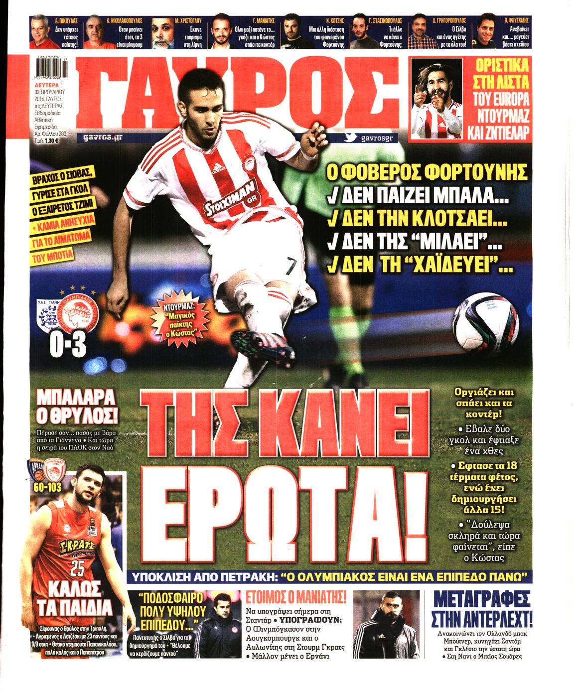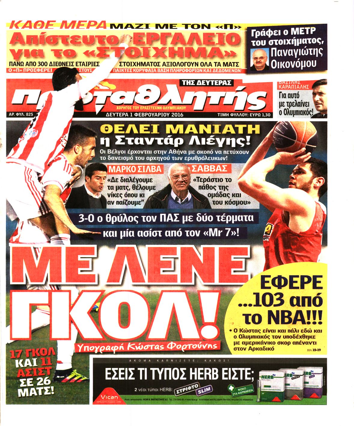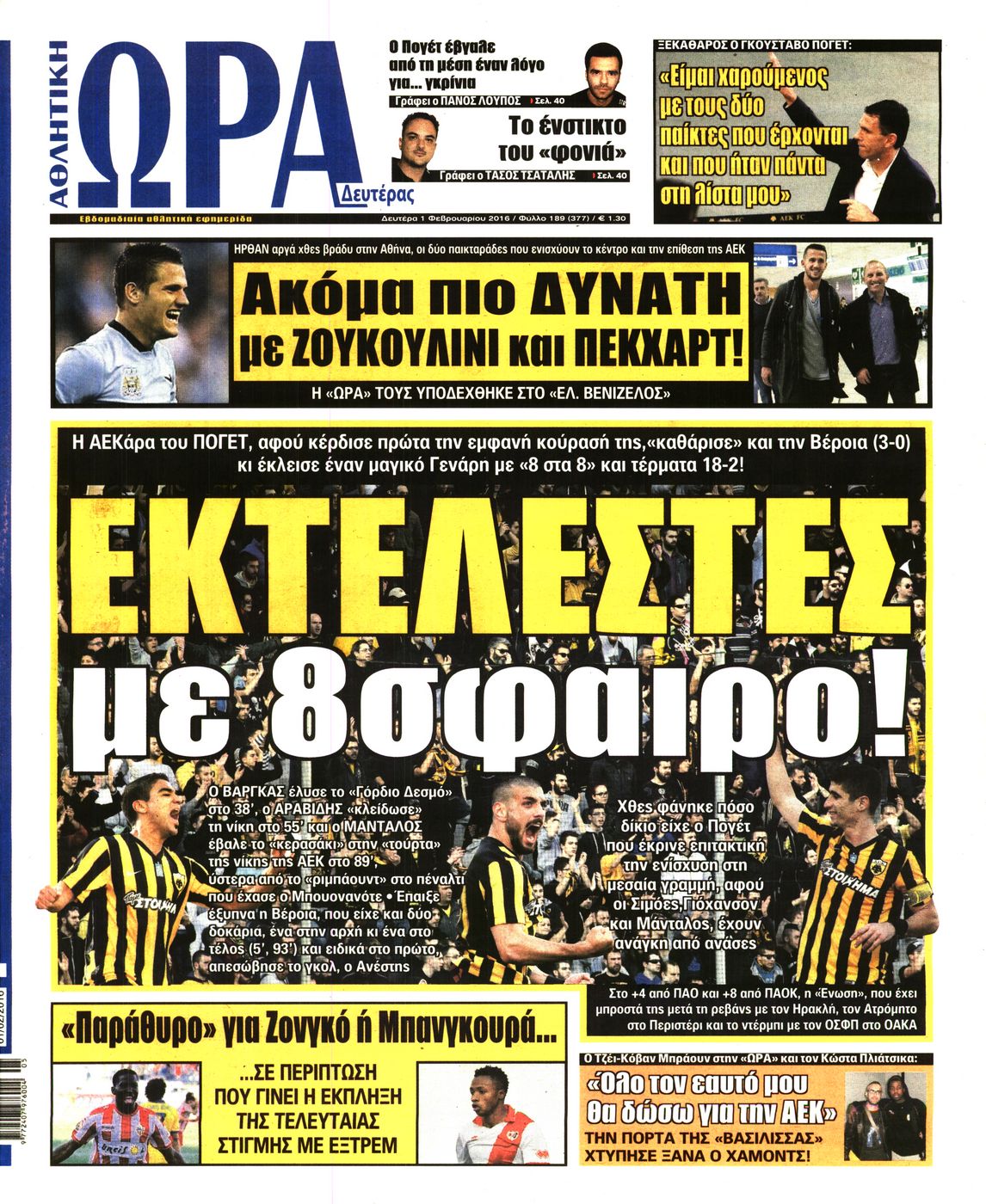 Οι αθλητικές εφημερίδες 1/2/2016 Enikos Newsroom 06:48, Δευτέρα 01 Φεβρουαρίου 2016 Media Δείτε τα πρωτοσέλιδα των αθλητικών εφημερίδων Μοιράσου το: σχολίασε κι εσύ (0 σχόλια) Ακολουθήστε το enikos.gr στο Google News και μάθετε πρώτοι όλες τις ειδήσεις Δείτε όλες τις τελευταίες ειδήσεις από την Ελλάδα και τον Κόσμο στο enikos.gr Ειδήσεις Ροή Ειδήσεων 3 ώρες πριν Υπόθεση Έπσταϊν: Το Υπουργείο Δικαιοσύνης δημοσιοποίησε μια σειρά από εξαιρετικά επεξεργασμένα αρχεία – «Λείπουν τα πιο σημαντικά έγγραφα», λένε οι Δημοκρατικοί 15 λεπτά πριν Γιορτές με μπλόκα για τους αγρότες: Ανοίγουν διόδια και μοιράζουν προϊόντα στους ταξιδιώτες 48 λεπτά πριν Εξαφάνιση 33χρονου γιατρού στην Κρήτη: «Άναψα τα φώτα, τρόμαξε και άρχισε να τρέχει στα χωράφια» – Η τελευταία διαδρομή και η μαρτυρία «κλειδί» 2 ώρες πριν Ο «χάρτης» με τις αυξήσεις και τις φοροελαφρύνσεις του 2026 – Ποιοι και πόσα κερδίζουν 31 λεπτά πριν Τα αρχεία του Έπσταϊν αποκαλύπτουν φωτογραφία του έκπτωτου πρίγκιπα Άντριου – Είναι ξαπλωμένος στην αγκαλιά 5 γυναικών 38 λεπτά πριν Μία νέα «χρυσή» περίοδος αρχίζει για 3 ζώδια από σήμερα – «Μία αναπάντεχη ευκαιρία οδηγεί στην επιτυχία» 5 ώρες πριν Αυγά: Πόσα μπορείτε να τρώτε την ημέρα με ασφάλεια για μέγιστη πρόσληψη πρωτεΐνης 3 ώρες πριν Αρχαιολόγοι ανακάλυψαν σε χωράφι απεικόνιση 600 ετών ενός Αγίου – Τα στοιχεία που δείχνουν ότι μαρτύρησε 2 ώρες πριν Αγχώνεται για το χριστουγεννιάτικο δώρο που πήρε στην πλούσια σύντροφό του – «Φοβάμαι πως θα το βρει φθηνιάρικο, φοράει βραχιόλια Cartier» 7 λεπτά πριν e-ΕΦΚΑ και ΔΥΠΑ: Οι πληρωμές από 22 έως 24 Δεκεμβρίου – Ποιοι θα δουν χρήματα στους λογαριασμούς τους 15 λεπτά πριν Συνελήφθη οδηγός μηχανής που έτρεχε με 161 χλμ στη Συγγρού – Τον έπιασε το ραντάρ της Τροχαίας 15 λεπτά πριν Γιορτές με μπλόκα για τους αγρότες: Ανοίγουν διόδια και μοιράζουν προϊόντα στους ταξιδιώτες 24 λεπτά πριν Τηλεθέαση (19/12): Κυριάρχησε η σειρά «Το σόι σου» – Τι νούμερα έκανε ο τελικός του GNTM 31 λεπτά πριν Τα αρχεία του Έπσταϊν αποκαλύπτουν φωτογραφία του έκπτωτου πρίγκιπα Άντριου – Είναι ξαπλωμένος στην αγκαλιά 5 γυναικών ENIKOS NETWORK Είστε μόνιμα απρόσεκτοι; 3 σημάδια που δείχνουν ότι μπορεί να είναι σύμπτωμα πάθησης Πόσα κιλά παίρνουμε πραγματικά τα Χριστούγεννα, σύμφωνα με την επιστήμη – Πώς να το αποτρέψουμε; Επίδομα παιδιού: Τι αλλάζει από το 2026 – Το όφελος από τις φορολογικές ελαφρύνσεις Mega χριστουγεννιάτικη φορολοταρία: «Κλείδωσε» η ημερομηνία για την κλήρωση – Ερωτήσεις και απαντήσεις Χαρτογραφώντας το «σημείο χωρίς επιστροφή»: Για πρώτη φορά αποκαλύπτεται με λεπτομέρεια το ακανθώδες όριο της ατμόσφαιρας τ... Η Google καταργεί τη λειτουργία «dark web report» – Πώς θα μπορούν οι χρήστες να διαγράφουν τα δεδομένα τους περισσότερα 09:30 , Σάββατο 20 Δεκεμβρίου 2025 «Porto Leone: Στη γειτονιά με τα κόκκινα φανάρια» – Ο Χρόνης αποκαλύπτει στην Αλεξάνδρα το μυστικό για το παιδί της Λένας Η μεγάλη δραματική σειρά του Apha «Porto Leone: Στη γειτονιά με τα κόκκινα φανάρια» μας μεταφέ... 08:14 , Σάββατο 20 Δεκεμβρίου 2025 Τρομεροί γονείς: Η Μαρία Καβογιάννη εισβάλλει στο σπίτι της οικογένειας Στεφανίδη Όσα θα δούμε στο νέο διπλό επεισόδιο της σειράς «Τρομεροί γονείς», σήμερα Σάββατο 20 Δεκεμβρίο... 05:48 , Σάββατο 20 Δεκεμβρίου 2025 Οι οικονομικές εφημερίδες 20/12/2025 Διαβάστε τα πρωτοσέλιδα από τις οικονομικές εφημερίδες, σήμερα 20/12/2025. 05:43 , Σάββατο 20 Δεκεμβρίου 2025 Οι αθλητικές εφημερίδες 20/12/2025 Διαβάστε τα πρωτοσέλιδα 