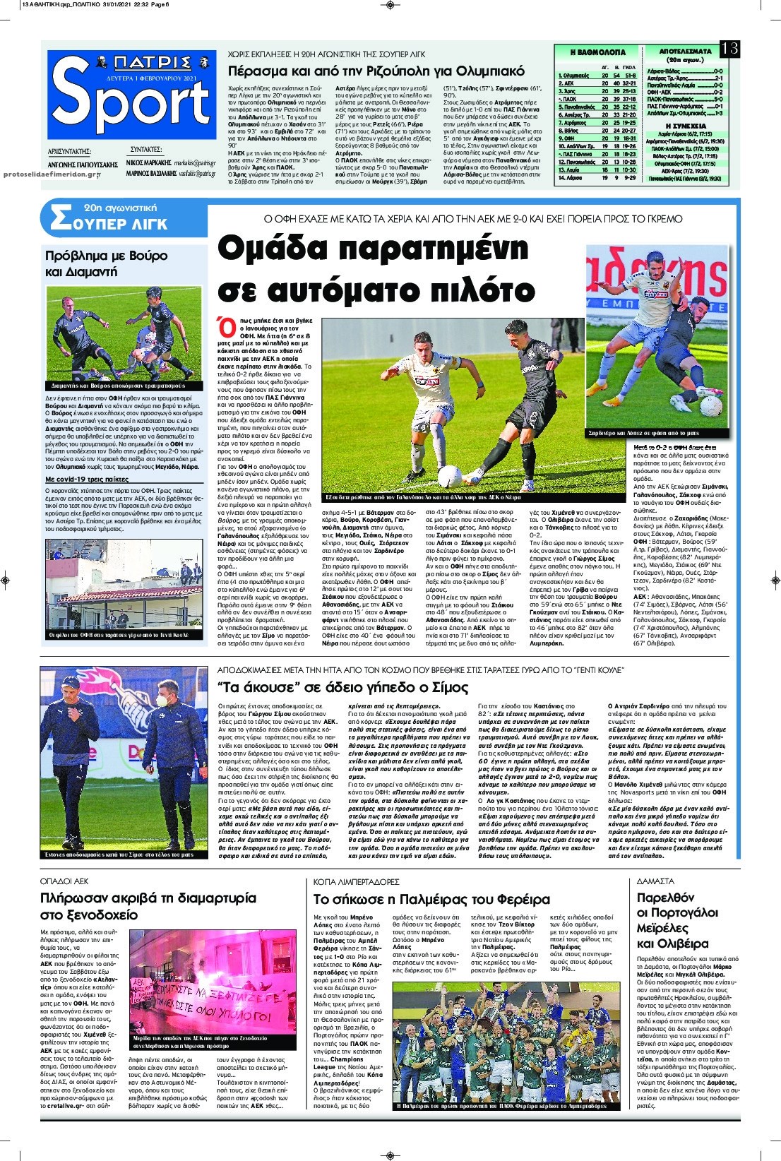 Οι αθλητικές εφημερίδες 1/2/2021 Σήφης Γαρυφαλάκης 06:21, Δευτέρα 01 Φεβρουαρίου 2021 Media Διαβάστε τα πρωτοσέλιδα των αθλητικών εφημερίδων… ΑΘΛΗΤΙΚΕΣ ΕΦΗΜΕΡΙΔΕΣ ΕΦΗΜΕΡΙΔΕΣ ΠΡΩΤΟΣΕΛΙΔΑ ΠΡΩΤΟΣΕΛΙΔΑ ΕΦΗΜΕΡΙΔΩΝ Μοιράσου το: σχολίασε κι εσύ (0 σχόλια) Ακολουθήστε το enikos.gr στο Google News και μάθετε πρώτοι όλες τις ειδήσεις Δείτε όλες τις τελευταίες ειδήσεις από την Ελλάδα και τον Κόσμο στο enikos.gr Ειδήσεις Ροή Ειδήσεων 19 λεπτά πριν Έρευνα MRB: Η πρόθεση ψήφου και τα σημαντικότερα προβλήματα – Οι «λέξεις» που εκφράζουν τους πολίτες 12 λεπτά πριν Αλαλούμ με τις πληρωμές στους αγρότες: Δεν καταβλήθηκε η Βασική Ενίσχυση, αλλά έγινε παρακράτηση της εισφοράς στον ΕΛΓΑ – Τι απαντά η κυβέρνηση 58 λεπτά πριν Αγρότες: Πολύωροι αποκλεισμοί και σήμερα στα τελωνεία Ευζώνων, Νίκης, Προμαχώνα και Εξοχής 2 ώρες πριν Ρομπ Ράινερ: Το δείπνο με τους Ομπάμα που δεν έγινε ποτέ και νέα στοιχεία για τον «καβγά» στο πάρτι – Βίντεο με τον γιο του να περιφέρεται κοντά στο σπίτι της τραγωδίας 1 ώρα πριν Κυψέλη: Μαθητές κλείδωσαν τους καθηγητές μέσα στο Γυμνάσιο μετά την επίθεση με μαχαίρι 4 ώρες πριν Οπτική ψευδαίσθηση: Μόνο αν είσαι ο Σέρλοκ Χολμς θα βρεις τον σκύλο σε 15 δευτερόλεπτα 5 ώρες πριν Τα ζώδια σήμερα, Τετάρτη 17 Δεκεμβρίου: Κριοί, η αυτοπεποίθησή σας ενισχύεται 2 ώρες πριν Νεολιθικός σκύλος βρέθηκε προσεκτικά θαμμένος στον βυθό λίμνης – Δίπλα του βρέθηκε ένα στιλέτο 1 ώρα πριν Έλαβε τελεσίγραφο από τη σύντροφό του – «Μου είπε πως ή θα της κάνω πρόταση στα δύο χρόνια σχέσης ή θα με χωρίσει» 4 λεπτά πριν Τα 4 ζώδια που ξαναβρίσκουν τον εαυτό τους – «Μπαίνετε επιτέλους στην ουσία των πραγμάτων» 5 λεπτά πριν «Οδύσσεια»: Νέες εντυπωσιακές φωτογραφίες από το κινηματογραφικό έπος του Κρίστοφερ Νόλαν 10 λεπτά πριν Κλιμάκωση από την Παρασκευή προαναγγέλλουν οι αγρότες – «Ψίχουλα οι εξαγγελίες Χατζηδάκη» λέει ο Σωκράτης Αλειφτήρας 12 λεπτά πριν Αλαλούμ με τις πληρωμές στους αγρότες: Δεν καταβλήθηκε η Βασική Ενίσχυση, αλλά έγινε παρακράτηση της εισφοράς στον ΕΛΓΑ – Τι απαντά η κυβέρνηση 16 λεπτά πριν Σίδνεϊ: 59 κατηγορίες σε βάρος του δράστη του μακελειού στην παραλία Μπόνταϊ – Φιλιππίνες: «Δεν υπάρχουν στρατόπεδα τζιχαντιστών στη χώρα» ENIKOS NETWORK Αδενώματα Υπόφυσης: Μια πάθηση καλοήθης, αλλά όχι αθώα Χρόνια Αναπνευστικά Νοσήματα: 400.000 θάνατοι ετησίως στην Ευρώπη Ειδικό επιδοτούμενο πρόγραμμα κατάρτισης της ΔΥΠΑ για ανέργους: Αρχίζει σήμερα η υποβολή ενστάσεων-Ποιους αφορά Δώρο Χριστουγέννων και επιδόματα της ΔΥΠΑ: Σήμερα αρχίζει η προπληρωμή τους-Ποιους αφορά Σύγχρονος Νοστράδαμος: Προειδοποιεί για «μεγάλο γεγονός» τους επόμενους μήνες που θα συγκλονίσει τη Βρετανία και τον κόσμο Τεστ παρατηρητικότητας: Μπορείτε να βρείτε τις 3 διαφορές στις εικόνες με έναν πιγκουίνο σε 14 δευτερόλεπτα περισσότερα 09:08 , Τετάρτη 17 Δεκεμβρίου 2025 Τηλεθέαση (16/12): Ανακατατάξεις στην πρωινή ψυχαγωγική ζώνη Ξεκάθαρη πρωτιά στην τηλεθέαση για την «Super Κατερίνα» στο δυναμικό κοινό με ποσοστό 18,5%, α... 08:00 , Τετάρτη 17 Δεκεμβρίου 2025 Την Κυριακή με τη Realnews: Δωροεπιταγή 10€ Δωροεπιταγή αξίας 10€ για αγορές άνω των 60€ από τα πολυκαταστήματα FactoryOutlet H προσφορά ι... 07:00 , Τετάρτη 17 Δεκεμβρίου 2025 Την Κυριακή με τη Realnews: Ό,τι και αν αγοράσεις, σκανάρεις και κερδίζεις! Την Κυριακή με τη Realnews: Ό,τι και αν αγοράσεις, σκανάρεις και κερδίζεις! Με το PADU app, το... 05:48 , Τετάρτη 17 Δεκεμβρίου 2025 Οι οικονομικές εφημερίδες 17/12/2025 Διαβάστε τα 