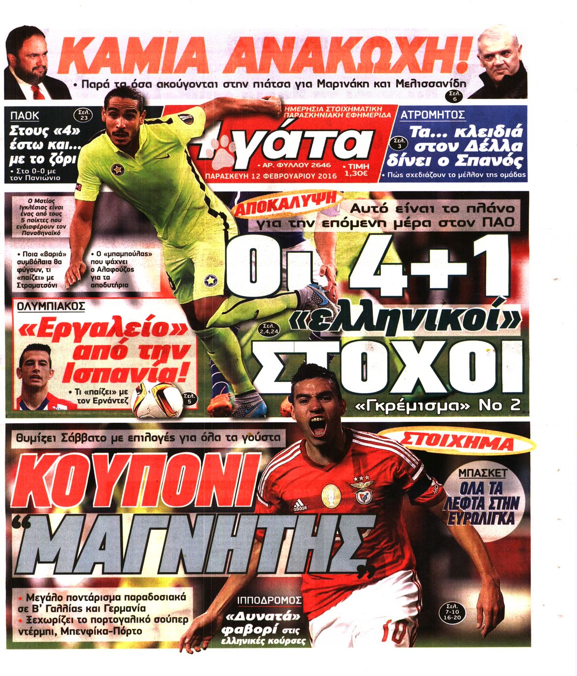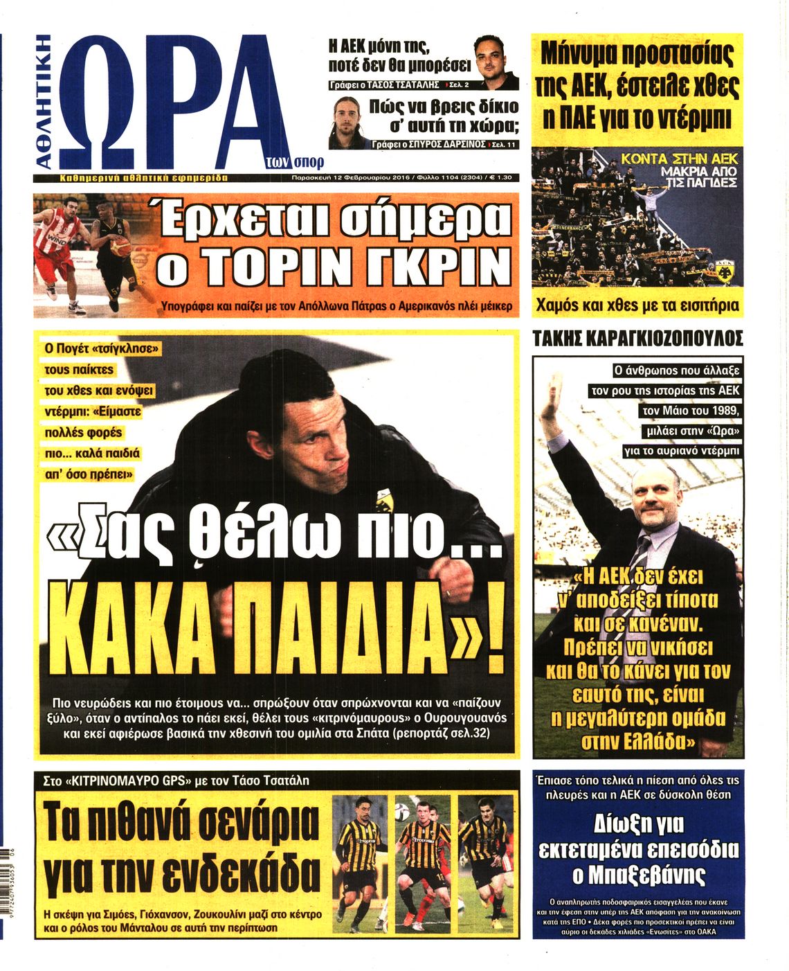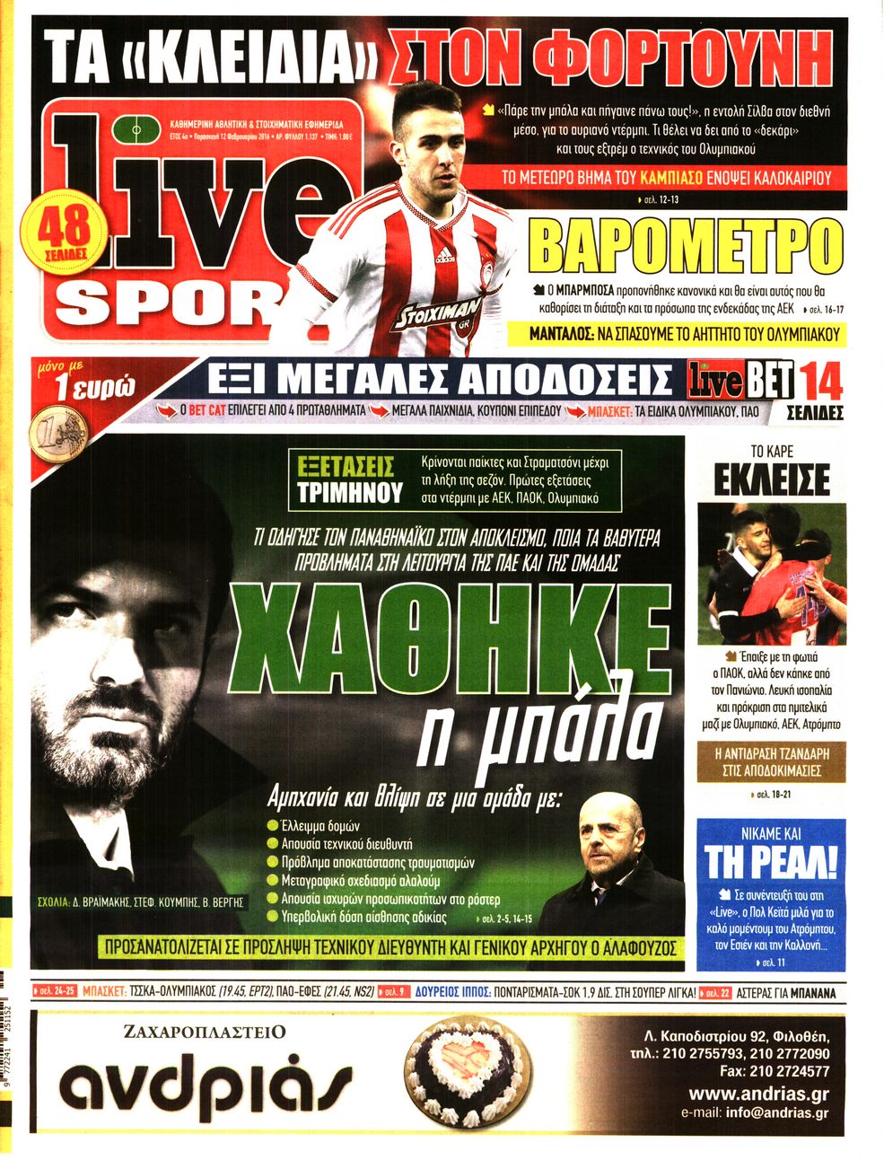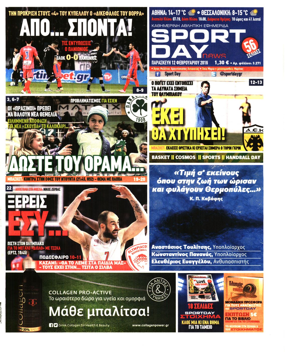 Οι αθλητικές εφημερίδες 12/2/2016 Enikos Newsroom 05:47, Παρασκευή 12 Φεβρουαρίου 2016 Media Διαβάστε τα σημερινά πρωτοσέλιδα των αθλητικών εφημερίδων: ΑΘΛΗΤΙΚΕΣ ΕΦΗΜΕΡΙΔΕΣ ΠΡΩΤΟΣΕΛΙΔΑ Μοιράσου το: σχολίασε κι εσύ (0 σχόλια) Ακολουθήστε το enikos.gr στο Google News και μάθετε πρώτοι όλες τις ειδήσεις Δείτε όλες τις τελευταίες ειδήσεις από την Ελλάδα και τον Κόσμο στο enikos.gr Ειδήσεις Ροή Ειδήσεων 44 λεπτά πριν ΑΑΔΕ: Στον Εισαγγελέα οι πρώτες 50 μαζικές διαγραφές αγρών στο Ε9 – Εξετάζονται συνολικά 3.000 περιπτώσεις 4 ώρες πριν Καιρός: Νέο έκτακτο δελτίο επιδείνωσης από την ΕΜΥ – Ποιες περιοχές θα «χτυπήσει» η κακοκαιρία τα Χριστούγεννα 37 λεπτά πριν Ζελένσκι: Πέρασε στην αντεπίθεση με το σχέδιο ειρήνης – Ζητεί συνάντηση με Τραμπ για το εδαφικό 5 ώρες πριν Live – Έξοδος Χριστουγέννων: Αυξημένη η κίνηση στις Εθνικές Οδούς – Εικόνα αποσυμφόρησης με νέες λωρίδες κυκλοφορίας στα αγροτικά μπλόκα 5 ώρες πριν Αεροπορικό δυστύχημα στην Τουρκία: Στο μικροσκόπιο ο καταγραφέας ήχου και το μαύρο κουτί – Η αεροσυνοδός Maria Pappa ανάμεσα στα θύματα 28 λεπτά πριν Τα 5 ζώδια που έχουν μεγάλες πιθανότητες να πλουτίσουν το 2026 – «Οι οικονομικές δυσκολίες ανήκουν στο παρελθόν» 1 ώρα πριν Επιστήμονες ανακάλυψαν κάτι συγκλονιστικό – Η μάζα μπορεί να προέρχεται από αόρατες διαστάσεις 5 ώρες πριν Γυναίκα που έχασε 30 κιλά αποκαλύπτει τα μυστικά της επιτυχίας της – «Οι υδατάνθρακες είναι καύσιμο του οργανισμού, όχι εχθρός» 4 ώρες πριν Οι άνθρωποι που αποφεύγουν να γιορτάσουν τα Χριστούγεννα με την οικογένειά τους, συνήθως είχαν αυτές τις 8 εμπειρίες στην παιδική ηλικία 1 λεπτό πριν Φωτιά σε αυτοκίνητο στην Αττική Οδό – Πού υπάρχουν καθυστερήσεις – ΦΩΤΟ αναγνώστη 8 λεπτά πριν Τουρκία: Συζητήσεις Φιντάν με αξιωματούχους της Χαμάς για τη δεύτερη φάση της συμφωνίας εκεχειρίας στη Γάζα 15 λεπτά πριν ALPHA: Παραμονή Χριστουγέννων με τον Κωνσταντίνο Αργυρό 22 λεπτά πριν Κίμπερλι Γκίλφοϊλ: «Ο Θεός να ευλογεί την Ελλάδα και τις ΗΠΑ» – Οι ευχές της για τα Χριστούγεννα 28 λεπτά πριν Τα 5 ζώδια που έχουν μεγάλες πιθανότητες να πλουτίσουν το 2026 – «Οι οικονομικές δυσκολίες ανήκουν στο παρελθόν» ENIKOS NETWORK New Year’s Resolutions: Μικρές αποφάσεις για μια καλή χρονιά 14χρονη βγήκε να πει τα κάλαντα και βρέθηκε τραυματισμένη στο δρόμο-Νοσηλεύεται στο Παίδων «Αγία Σοφία» Αλλάζουν οι διατάξεις του Κτιριοδομικού του Κτιριοδομικού Κανονισμού – Τι είπε ο Ταγαράς Επίδομα θέρμανσης: Πότε θα δοθεί η επόμενη δόση Ο Google Assistant θα παραμείνει λίγο περισσότερο για ορισμένους χρήστες Android Τεστ προσωπικότητας: Το βάζο που θα επιλέξετε αποκαλύπτει πώς λύνετε προβλήματα στη ζωή σας περισσότερα 16:12 , Τετάρτη 24 Δεκεμβρίου 2025 ALPHA: Παραμονή Χριστουγέννων με τον Κωνσταντίνο Αργυρό Ο Alpha παρουσιάζει απόψε σε πρώτη τηλεοπτική μετάδοση τη συναρπαστική και sold out εμφάνιση ... 15:51 , Τετάρτη 24 Δεκεμβρίου 2025 ‘Αγιος Έρωτας: Ο σεισμός που έκοψε την ανάσα – Δείτε τις συγκλονιστικές σκηνές Με έναν συγκλονιστικό τρόπο έκλεισε χθες βράδυ το τελευταίο επεισόδιο του 2025 της σειράς R... 13:27 , Τετάρτη 24 Δεκεμβρίου 2025 Ο Χριστουγεννιάτικος Τηλεμαραθώνιος του ΑΝΤ1 ένωσε τους πολιτικούς αρχηγούς – Τα εγκωμιαστικά σχόλια για τον Θοδωρή Κυριακού Σπάνια ομοφωνία: Όλοι οι πολιτικοί αρχηγοί αποθεώνουν τον Θοδωρή Κυριακού Ο Χριστουγεννιάτικος... 12:05 , Τετάρτη 24 Δεκεμβρίου 2025 Έξοδος εκδρομέων για τα Χριστούγεννα: Στείλε βίντεο ή φωτογραφίες στο enikos.gr – Αποθήκευσε τον αριθμό 6944 05 05 