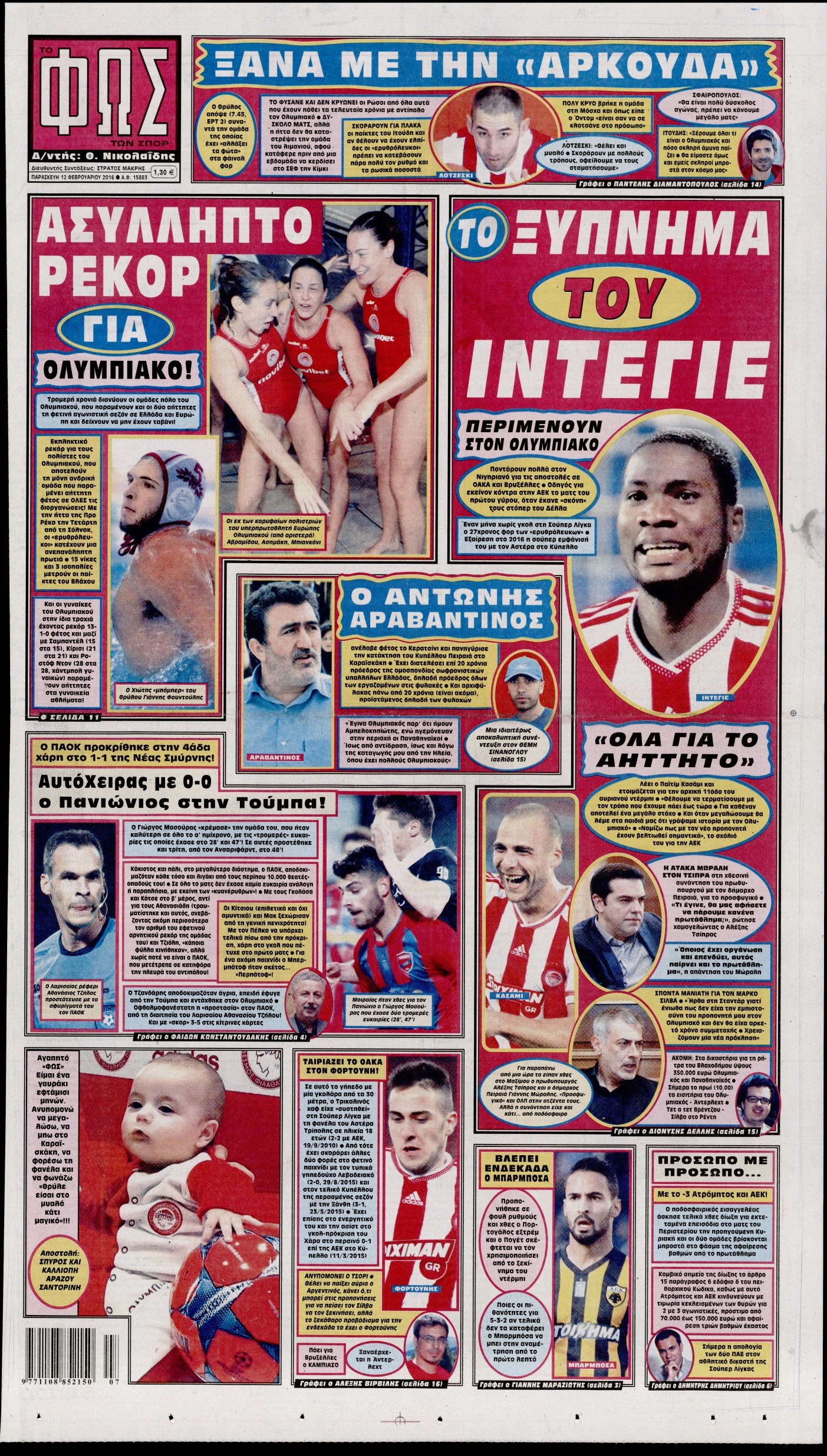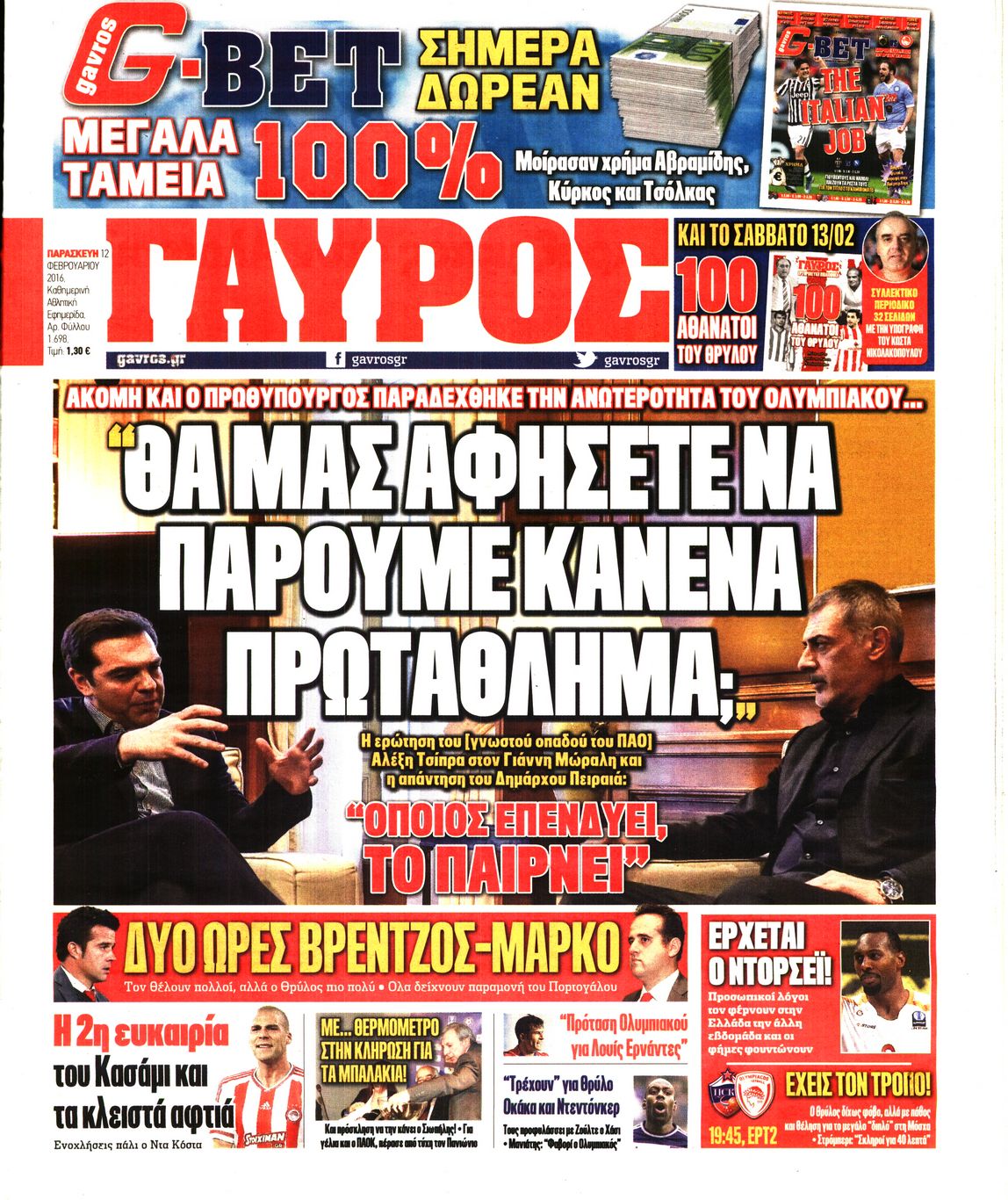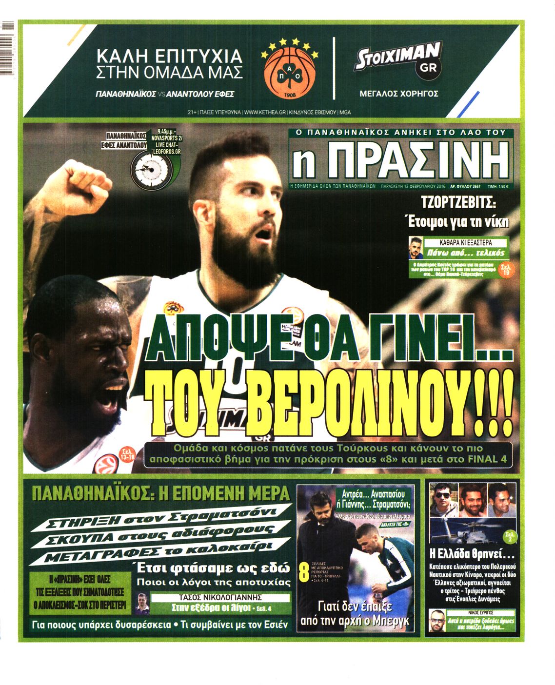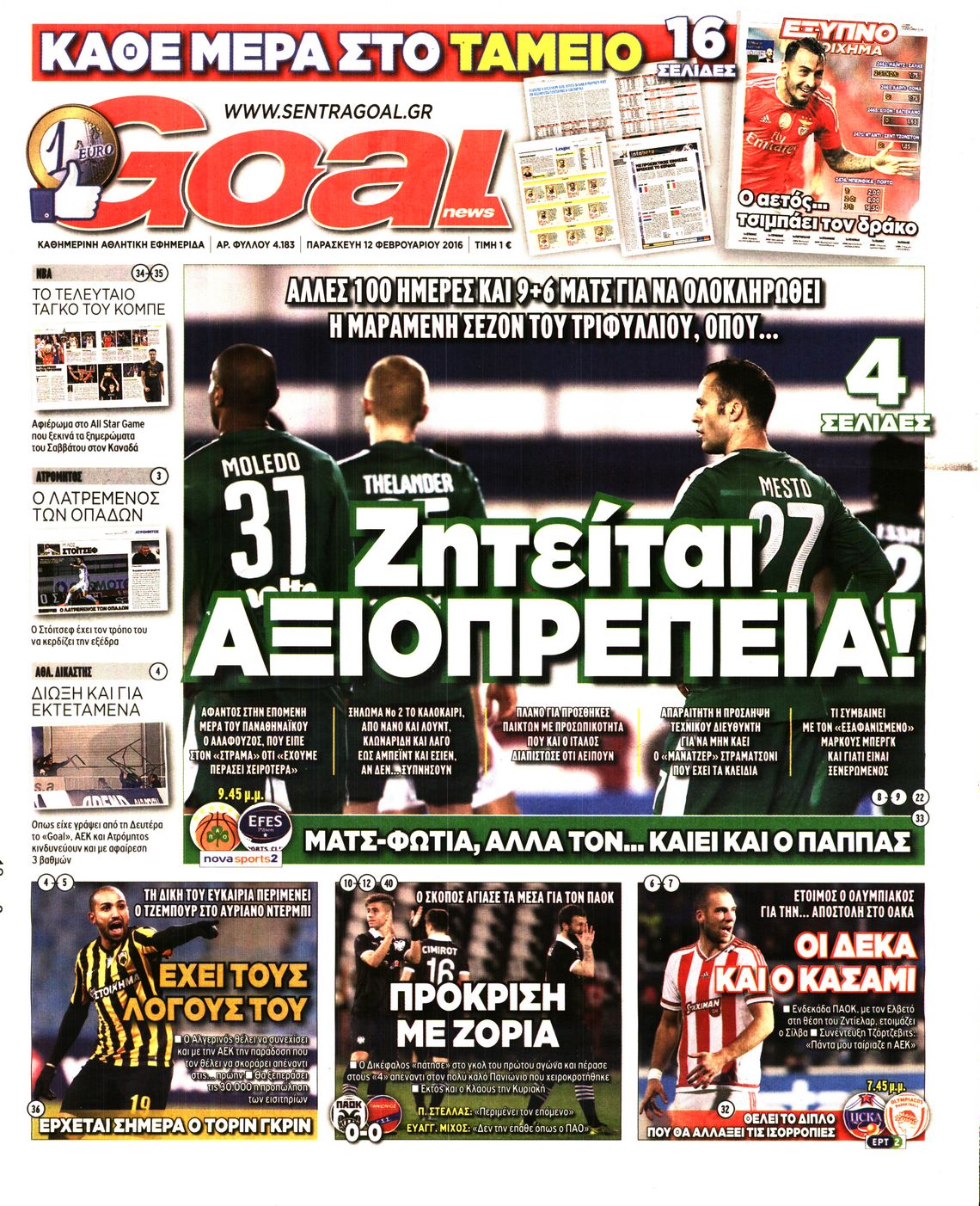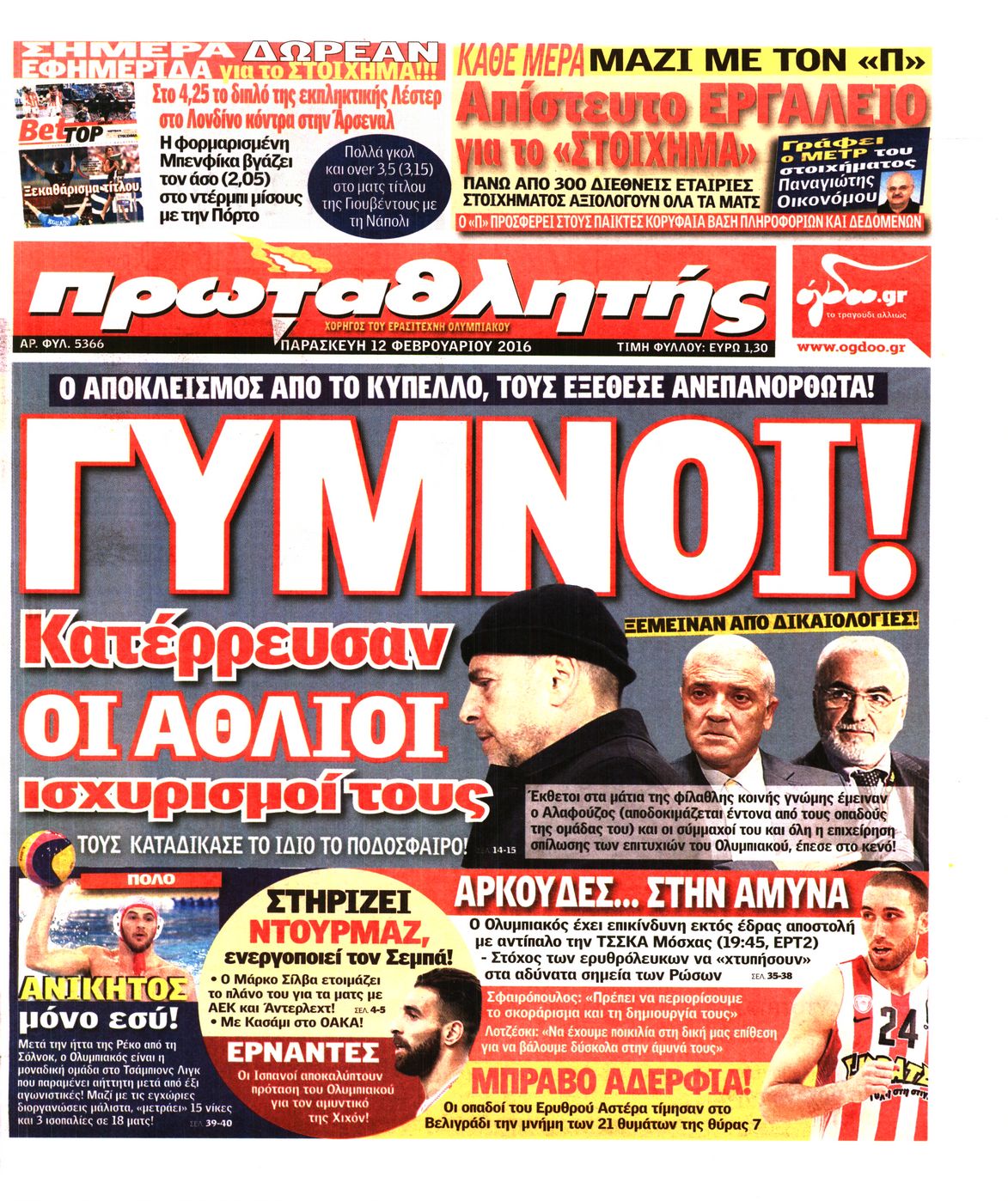 Οι αθλητικές εφημερίδες 12/2/2016 Enikos Newsroom 05:47, Παρασκευή 12 Φεβρουαρίου 2016 Media Διαβάστε τα σημερινά πρωτοσέλιδα των αθλητικών εφημερίδων: ΑΘΛΗΤΙΚΕΣ ΕΦΗΜΕΡΙΔΕΣ ΠΡΩΤΟΣΕΛΙΔΑ Μοιράσου το: σχολίασε κι εσύ (0 σχόλια) Ακολουθήστε το enikos.gr στο Google News και μάθετε πρώτοι όλες τις ειδήσεις Δείτε όλες τις τελευταίες ειδήσεις από την Ελλάδα και τον Κόσμο στο enikos.gr Ειδήσεις Ροή Ειδήσεων 44 λεπτά πριν ΑΑΔΕ: Στον Εισαγγελέα οι πρώτες 50 μαζικές διαγραφές αγρών στο Ε9 – Εξετάζονται συνολικά 3.000 περιπτώσεις 4 ώρες πριν Καιρός: Νέο έκτακτο δελτίο επιδείνωσης από την ΕΜΥ – Ποιες περιοχές θα «χτυπήσει» η κακοκαιρία τα Χριστούγεννα 37 λεπτά πριν Ζελένσκι: Πέρασε στην αντεπίθεση με το σχέδιο ειρήνης – Ζητεί συνάντηση με Τραμπ για το εδαφικό 5 ώρες πριν Live – Έξοδος Χριστουγέννων: Αυξημένη η κίνηση στις Εθνικές Οδούς – Εικόνα αποσυμφόρησης με νέες λωρίδες κυκλοφορίας στα αγροτικά μπλόκα 5 ώρες πριν Αεροπορικό δυστύχημα στην Τουρκία: Στο μικροσκόπιο ο καταγραφέας ήχου και το μαύρο κουτί – Η αεροσυνοδός Maria Pappa ανάμεσα στα θύματα 28 λεπτά πριν Τα 5 ζώδια που έχουν μεγάλες πιθανότητες να πλουτίσουν το 2026 – «Οι οικονομικές δυσκολίες ανήκουν στο παρελθόν» 1 ώρα πριν Επιστήμονες ανακάλυψαν κάτι συγκλονιστικό – Η μάζα μπορεί να προέρχεται από αόρατες διαστάσεις 5 ώρες πριν Γυναίκα που έχασε 30 κιλά αποκαλύπτει τα μυστικά της επιτυχίας της – «Οι υδατάνθρακες είναι καύσιμο του οργανισμού, όχι εχθρός» 4 ώρες πριν Οι άνθρωποι που αποφεύγουν να γιορτάσουν τα Χριστούγεννα με την οικογένειά τους, συνήθως είχαν αυτές τις 8 εμπειρίες στην παιδική ηλικία 1 λεπτό πριν Φωτιά σε αυτοκίνητο στην Αττική Οδό – Πού υπάρχουν καθυστερήσεις – ΦΩΤΟ αναγνώστη 8 λεπτά πριν Τουρκία: Συζητήσεις Φιντάν με αξιωματούχους της Χαμάς για τη δεύτερη φάση της συμφωνίας εκεχειρίας στη Γάζα 15 λεπτά πριν ALPHA: Παραμονή Χριστουγέννων με τον Κωνσταντίνο Αργυρό 22 λεπτά πριν Κίμπερλι Γκίλφοϊλ: «Ο Θεός να ευλογεί την Ελλάδα και τις ΗΠΑ» – Οι ευχές της για τα Χριστούγεννα 28 λεπτά πριν Τα 5 ζώδια που έχουν μεγάλες πιθανότητες να πλουτίσουν το 2026 – «Οι οικονομικές δυσκολίες ανήκουν στο παρελθόν» ENIKOS NETWORK New Year’s Resolutions: Μικρές αποφάσεις για μια καλή χρονιά 14χρονη βγήκε να πει τα κάλαντα και βρέθηκε τραυματισμένη στο δρόμο-Νοσηλεύεται στο Παίδων «Αγία Σοφία» Αλλάζουν οι διατάξεις του Κτιριοδομικού του Κτιριοδομικού Κανονισμού – Τι είπε ο Ταγαράς Επίδομα θέρμανσης: Πότε θα δοθεί η επόμενη δόση Ο Google Assistant θα παραμείνει λίγο περισσότερο για ορισμένους χρήστες Android Τεστ προσωπικότητας: Το βάζο που θα επιλέξετε αποκαλύπτει πώς λύνετε προβλήματα στη ζωή σας περισσότερα 16:12 , Τετάρτη 24 Δεκεμβρίου 2025 ALPHA: Παραμονή Χριστουγέννων με τον Κωνσταντίνο Αργυρό Ο Alpha παρουσιάζει απόψε σε πρώτη τηλεοπτική μετάδοση τη συναρπαστική και sold out εμφάνιση ... 15:51 , Τετάρτη 24 Δεκεμβρίου 2025 ‘Αγιος Έρωτας: Ο σεισμός που έκοψε την ανάσα – Δείτε τις συγκλονιστικές σκηνές Με έναν συγκλονιστικό τρόπο έκλεισε χθες βράδυ το τελευταίο επεισόδιο του 2025 της σειράς R... 13:27 , Τετάρτη 24 Δεκεμβρίου 2025 Ο Χριστουγεννιάτικος Τηλεμαραθώνιος του ΑΝΤ1 ένωσε τους πολιτικούς αρχηγούς – Τα εγκωμιαστικά σχόλια για τον Θοδωρή Κυριακού Σπάνια ομοφωνία: Όλοι οι πολιτικοί αρχηγοί αποθεώνουν τον Θοδωρή Κυριακού Ο Χριστουγεννιάτικος... 12:05 , Τετάρτη 24 Δεκεμβρίου 2025 Έξοδος εκδρομέων για τα Χριστούγεννα: Στείλε βίντεο ή φωτογραφίες στο enikos.gr – Αποθήκευσε τον αριθμό 6944 05 05 
