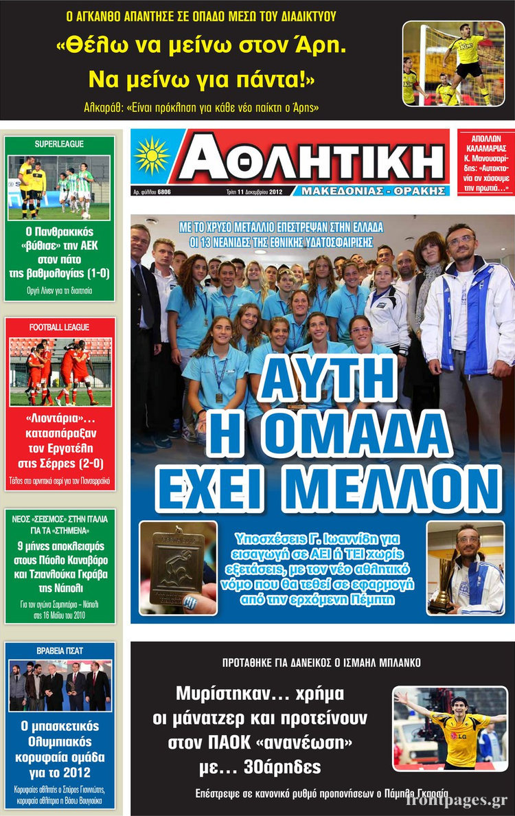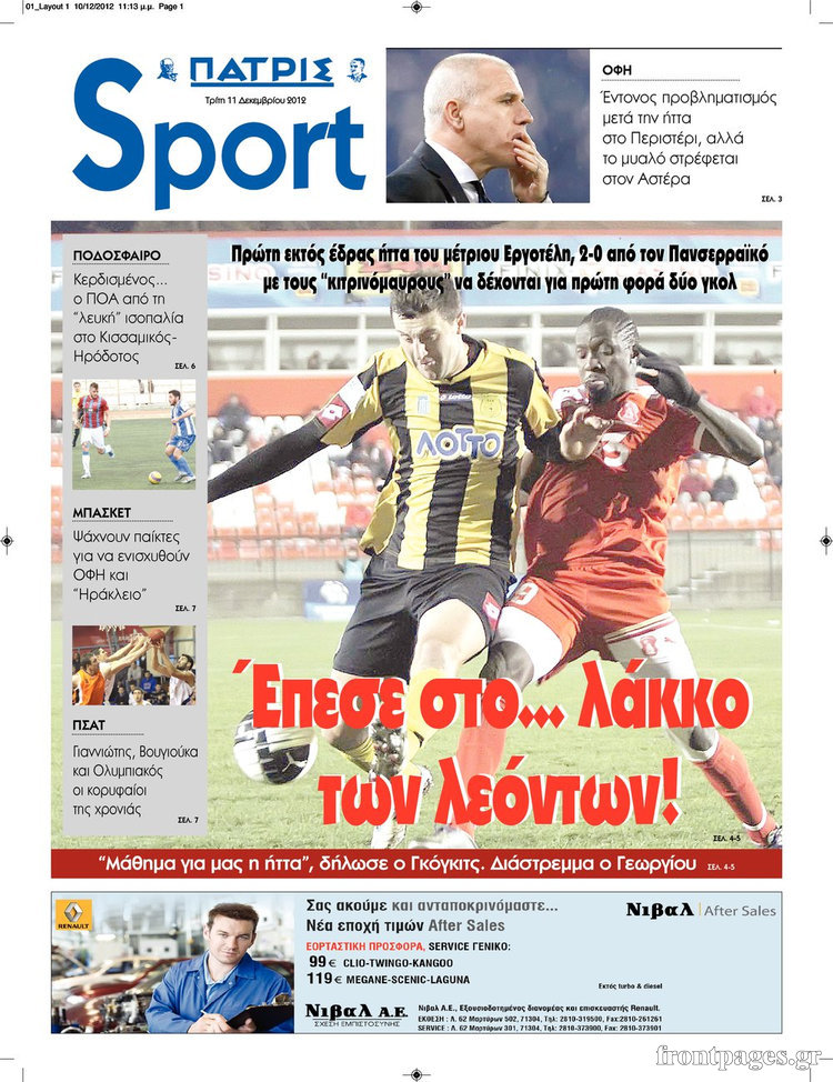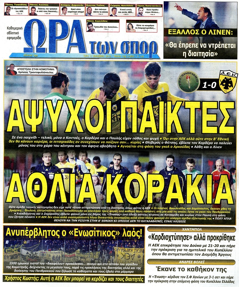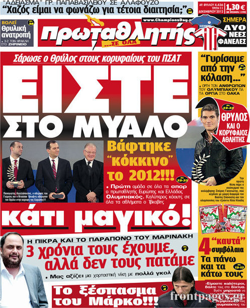 Οι αθλητικές εφημερίδες Enikos Newsroom 09:21, Τρίτη 11 Δεκεμβρίου 2012 Media Οι αθλητικές εφημερίδες Τα πρωτοσέλιδα των αθλητικών εφημερίδων. ΑΘΛΗΤΙΚΑ ΕΦΗΜΕΡΙΔΕΣ ΠΡΩΤΟΣΕΛΙΔΑ Μοιράσου το: σχολίασε κι εσύ (0 σχόλια) Ακολουθήστε το enikos.gr στο Google News και μάθετε πρώτοι όλες τις ειδήσεις Δείτε όλες τις τελευταίες ειδήσεις από την Ελλάδα και τον Κόσμο στο enikos.gr Ειδήσεις Ροή Ειδήσεων 3 ώρες πριν Εκτός ευρωομάδας ΣΥΡΙΖΑ ο Νίκος Παππάς μετά την επίθεση στον δημοσιογράφο Νίκο Γιαννόπουλο – Η μήνυση και οι νέες δηλώσεις 4 ώρες πριν «Αγριεύουν» οι αγρότες: «Δεν συντρέχει λόγος συνάντησης με τον πρωθυπουργό» – Ώρα αποφάσεων στη σύσκεψη της Πέμπτης 4 ώρες πριν Κυψέλη: Χωρίς την οικογένειά της δίπλα της απολογήθηκε η 16χρονη – «Της είχε επιτεθεί κάποιος για να την βιάσει, φοβήθηκε και κυκλοφορούσε με μαχαίρι» 3 ώρες πριν Politico: Το πρόβλημα της Ευρώπης δεν είναι το Βέλγιο αλλά ο Ντόναλντ Τραμπ 5 ώρες πριν Αλεξανδρούπολη: Πολυοργανική ανεπάρκεια λόγω υποσιτισμού η αιτία θανάτου του 3χρονου αγοριού 3 ώρες πριν Μυστήριο με τεράστιες κυκλικές πέτρες 200 κιλών – Ανακαλύφθηκαν τυχαία κατά τη διάρκεια οδικών έργων και κανείς δεν ξέρει από πού προέρχονται 4 ώρες πριν Ύπνος: Ειδικός εξηγεί τον πραγματικό λόγο που ξυπνάτε στις 4 τα ξημερώματα – Ο ρόλος των ορμονών και του κιρκάδιου ρυθμού 5 ώρες πριν Αριθμολογία: Οι άνθρωποι που έχουν γεννηθεί αυτές τις 4 ημερομηνίες, είναι τρυφεροί και αγαπούν ανιδιοτελώς 17 ώρες πριν 20 χρόνια τα Χριστούγεννα ξεκινούν στα Public με μεγάλη ποικιλία σε δώρα! 11 λεπτά πριν Ρωσία: Ουκρανικές δυνάμεις έπληξαν πλοίο στο λιμάνι του Ροστόφ – Αναφορές για θύματα 27 λεπτά πριν Βρυξέλλες: Νυχτερινό… μπλόκο αγροτών μπροστά από το κτίριο της Ευρωπαϊκής Επιτροπής – Πάνω από 100 τρακτέρ απέκλεισαν την λεωφόρο 42 λεπτά πριν Euroleague: Απρόσμενη ήττα για την Μονακό του Βασίλη Σπανούλη – Η βαθμολογία μετά το τέλος της 16ης αγωνιστικής 58 λεπτά πριν Μουντιάλ 2026: Η νέα ταξιδιωτική απαγόρευση του Ντόναλντ Τραμπ πλήττει (και) τους οπαδούς Σενεγάλης – Ακτής Ελεφαντοστού 1 ώρα πριν Κυριάκος Μητσοτάκης: Στις Βρυξέλλες για την Σύνοδο Κορυφής ΕΕ και Δυτικών Βαλκανίων – Δείτε φωτογραφίες ENIKOS NETWORK Αϋπνία: Το κόλπο που θα σας βοηθήσει να κοιμηθείτε απόψε – Είναι απλό και έχει αποτέλεσμα 2,6 εκατομμύρια πολίτες έχουν ήδη εμβολιαστεί κατά της γρίπης ΕΛΣΤΑΤ: Τι δείχνουν τα νέα στοιχεία για τις ηλεκτρονικές παραγγελίες των επιχειρήσεων ΚΕΠΕ: Οι 3 διακριτές συμβολές των ΜμΕ και της μεταποίησης στην ελληνική οικονομία Χαρτογραφώντας το «σημείο χωρίς επιστροφή»: Για πρώτη φορά αποκαλύπτεται με λεπτομέρεια το ακανθώδες όριο της ατμόσφαιρας τ... Η Google καταργεί τη λειτουργία «dark web report» – Πώς θα μπορούν οι χρήστες να διαγράφουν τα δεδομένα τους περισσότερα 22:24 , Τετάρτη 17 Δεκεμβρίου 2025 Το Σπίτι Δίπλα Στο Ποτάμι: Σε κίνδυνο η υγεία του Απόστολου – Τι θα δούμε απόψε “Το Σπίτι Δίπλα στο Ποτάμι” ξετυλίγει το νήμα της ζωής των πέντε αδελφών με καταισ... 21:14 , Τετάρτη 17 Δεκεμβρίου 2025 Παιχνίδια Εκδίκησης: Θα καταφέρει ο Χρήστος να κλονίσει την εμπιστοσύνη της Μάγιας απέναντι στον Άγη; Τα «Παιχνίδια Εκδίκησης» έρχονται απόψε στις 22:30, στον Αντ1, με το τελευταίο επεισόδιο της χ... 20:57 , Τετάρτη 17 Δεκεμβρίου 2025 Άγιος Έρωτας: Η Χλόη καταθέτει εναντίον του πατέρα της και ο Χάρης αποκαλύπτει στον Κλεάνθη ότι δεν είναι ο βιολογικός του πατέρας. Γεμάτο αποκαλύψεις είναι το νέο επεισόδιο της σειράς “Άγιος Έρωτας” 