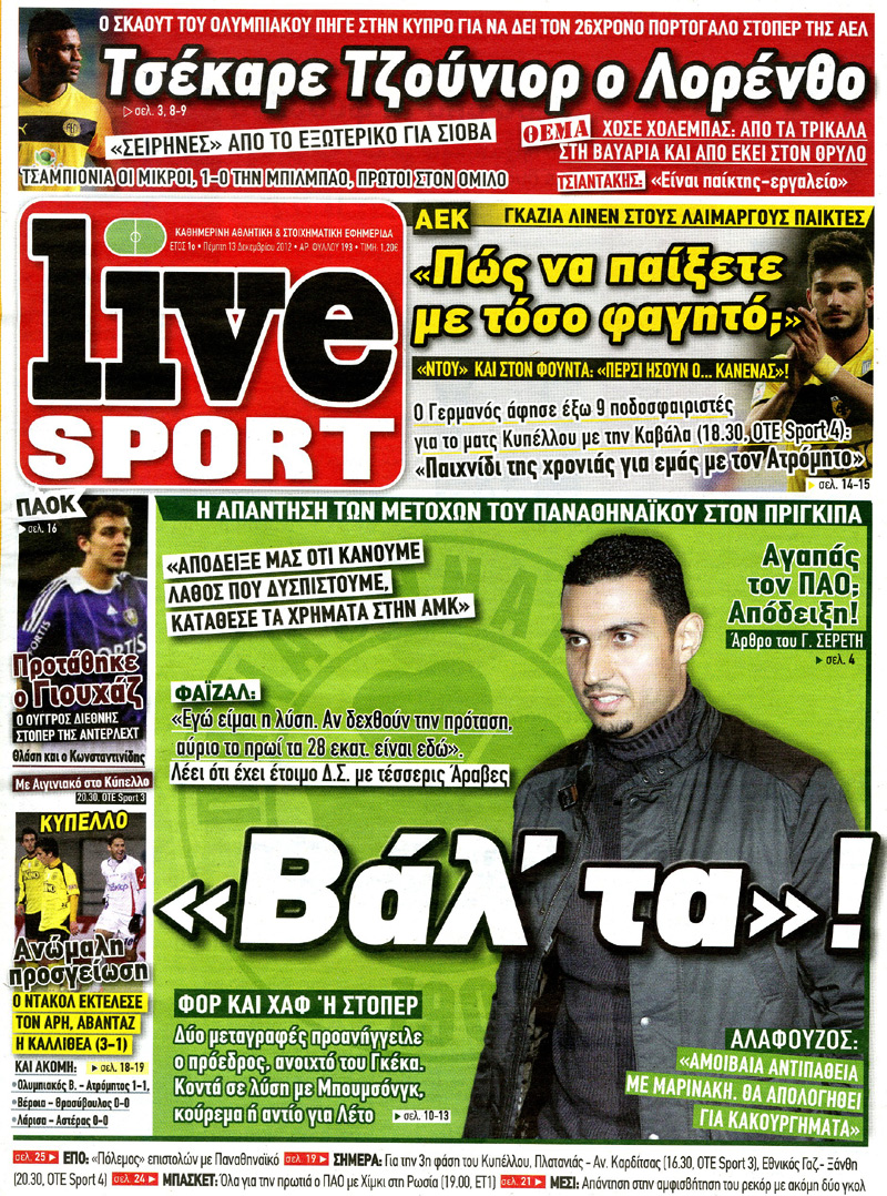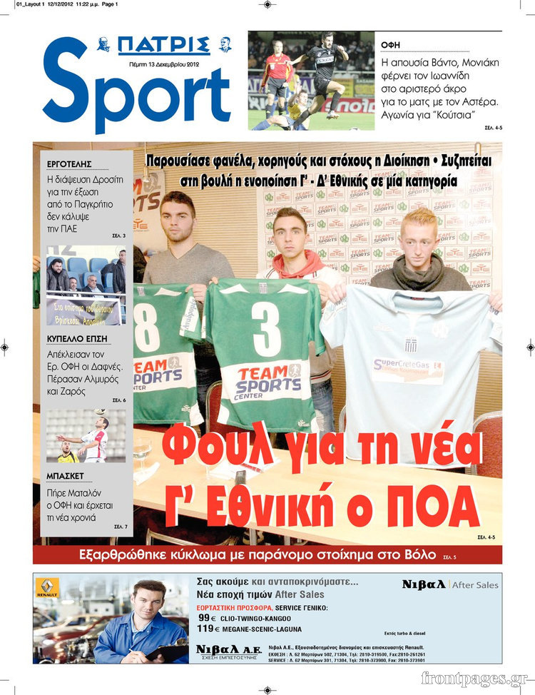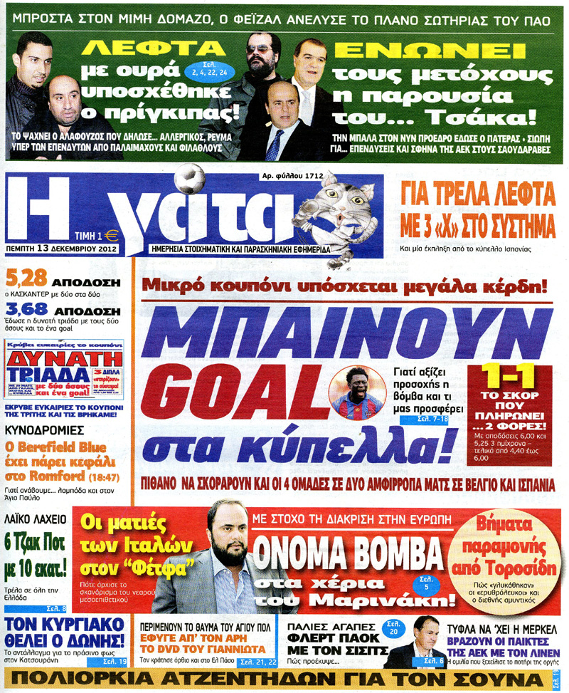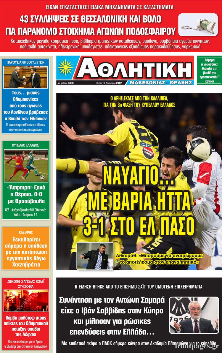 Οι αθλητικές εφημερίδες Enikos Newsroom 09:08, Πέμπτη 13 Δεκεμβρίου 2012 Media Οι αθλητικές εφημερίδες ΑΘΛΗΤΙΚΕΣ ΕΦΗΜΕΡΙΔΕΣ ΕΦΗΜΕΡΙΔΕΣ ΠΡΩΤΟΣΕΛΙΔΑ Μοιράσου το: σχολίασε κι εσύ (0 σχόλια) Ακολουθήστε το enikos.gr στο Google News και μάθετε πρώτοι όλες τις ειδήσεις Δείτε όλες τις τελευταίες ειδήσεις από την Ελλάδα και τον Κόσμο στο enikos.gr Ειδήσεις Ροή Ειδήσεων 1 ώρα πριν Δημοσκόπηση Alco: Στο 23,6% η ΝΔ, στο 11,6% το ΠΑΣΟΚ – Η άποψη των πολιτών για αγρότες, εκλογές και Τσίπρα 5 ώρες πριν Κυψέλη: Για πρώτη ημέρα βρισκόταν στο σχολείο η 16χρονη που επιτέθηκε με μαχαίρι στην 14χρονη – Τι αναφέρουν μαρτυρίες μαθητών για το επεισόδιο 2 ώρες πριν Φοινικούντα: Αρνούνται τις κατηγορίες οι 2 συλληφθέντες – «Θέλω να συμβάλλω στην αποκάλυψη της αλήθειας» λέει ο ανιψιός του θύματος 3 ώρες πριν Κρήτη: Εντοπίστηκε στίγμα του 33χρονου γιατρού που έχει εξαφανιστεί μέσω νέας τεχνολογίας που εφαρμόζεται για πρώτη φορά στην Ελλάδα 4 ώρες πριν Ρομπ και Μισέλ Ράινερ: Συνελήφθη ο γιος τους ως ύποπτος για την δολοφονία τους 6 ώρες πριν Τα 3 ζώδια που θα έχουν τύχη «βουνό» έως τις 21 Δεκεμβρίου – «Η ανατροπή που περιμένετε πλησιάζει» 3 ώρες πριν Γάμος: Αν ένας άνδρας νιώθει βαθιά μοναξιά, θα αρχίσει να κάνει αυτά τα 11 πράγματα μέσα στο σπίτι 2 ώρες πριν Πώς να μην μαραίνονται γρήγορα τα κομμένα λουλούδια: Το λάθος στην τοποθέτηση του βάζου που πρέπει να αποφεύγετε 7 ώρες πριν Επιστήμονες του CERN έλυσαν ένα μυστήριο δεκαετιών της σωματιδιακής φυσικής – Τι ανακάλυψαν 6 λεπτά πριν Βάσω Λασκαράκη: «Χρόνια πολλά, αγάπη μου σε ευχαριστώ που κάνεις την ζωή μου πιο ωραία» – Οι ευχές στον Λευτέρη Σουλτάτο για την γιορτή του 11 λεπτά πριν Μερτς: Οι συνομιλίες για την Ουκρανία είναι «ίσως η μεγαλύτερη διπλωματική δυναμική» – Ζελένσκι: «Επώδυνο το εδαφικό» 16 λεπτά πριν Κόντρα Θεοδωρικάκου – Φάμελλου στη Βουλή – Τα «πυρά» της Κωνσταντοπούλου 21 λεπτά πριν Πιερρακάκης: Σύντομα η Ελλάδα θα έχει περάσει στην πρώτη πεντάδα της Ευρώπης στην ψηφιακή πολιτική – Έχουμε πετύχει έναν άθλο 26 λεπτά πριν Νέα σύλληψη στο «Ελ. Βενιζέλος» για ναρκωτικά – Χειροπέδες σε 23χρονο που είχε 18,5 κιλά κάνναβης στη βαλίτσα του ENIKOS NETWORK Πότε το χρόνιο ροχαλητό να αποτελέσει ένδειξη κινδύνου για την καρδιά; Τι λένε οι ειδικοί Μάριος Θεμιστοκλέους: Το ΕΣΥ ενισχύεται, εκσυγχρονίζεται, αλλάζει ΟΠΕΚΑ: Ποιο επίδομα αυξάνεται από τον επόμενο μήνα και γιατί Ευλογιά αιγοπροβάτων: Έως το τέλος του έτους η οικονομική στήριξη 187 εκατ. ευρώ σε κτηνοτρόφους – Όλα όσα είπε ο Πρωτοψάλτ... Σύγχρονος Νοστράδαμος: Προειδοποιεί για «μεγάλο γεγονός» τους επόμενους μήνες που θα συγκλονίσει τη Βρετανία και τον κόσμο Τεστ παρατηρητικότητας: Μπορείτε να βρείτε τις 3 διαφορές στις εικόνες με έναν πιγκουίνο σε 14 δευτερόλεπτα περισσότερα 19:46 , Δευτέρα 15 Δεκεμβρίου 2025 Άγιος έρωτας: Η Χριστίνα λέει την αλήθεια στον Αντρέα Ο Βασίλης δέχεται επίθεση από τους συμμαθητές του, η Αναστασία είναι συντετριμμένη με την απώλ... 18:45 , Δευτέρα 15 Δεκεμβρίου 2025 Συνέδριο «Ελληνικός Τουρισμός 2025, Μια εθνική υπόθεση!» – «Ο Θαλάσσιος Πυλώνας ως Ενιαία Στρατηγική: Συνέργειες σε Λιμάνια, Μαρίνες, Ακτοπλοΐα, Κρουαζιέρα και Yachting» Στο πλαίσιο της τέταρτης και τελευταίας ενότητας του 7ου συνεδρίου «Ελληνικός Τουρισμός 2025, ... 18:13 , Δευτέρα 15 Δεκεμβρίου 2025 Συνέδριο «Ελληνικός Τουρισμός 2025, Μια εθνική υπόθεση!» – Κικίλιας: «Μεγάλα asset της Ελλάδας η ναυτιλία και ο τουρισμός» Στον θαλάσσιο οικονομικό 