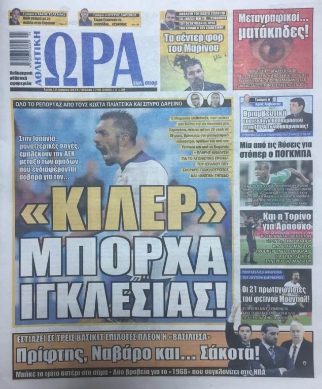 Οι αθλητικές εφημερίδες 12/6/2018 Κώστας Τεό 06:35, Τρίτη 12 Ιουνίου 2018 Media Διαβάστε τα σημερινά πρωτοσέλιδα των αθλητικών εφημερίδων: ΑΘΛΗΤΙΚΕΣ ΕΦΗΜΕΡΙΔΕΣ ΠΡΩΤΟΣΕΛΙΔΑ Μοιράσου το: σχολίασε κι εσύ (0 σχόλια) Ακολουθήστε το enikos.gr στο Google News και μάθετε πρώτοι όλες τις ειδήσεις Δείτε όλες τις τελευταίες ειδήσεις από την Ελλάδα και τον Κόσμο στο enikos.gr Ειδήσεις Ροή Ειδήσεων 13 λεπτά πριν Η Ουκρανία χτύπησε τάνκερ του σκιώδους στόλου της Ρωσίας στη Μεσόγειο – Έπλεε νότια της Κρήτης 2 ώρες πριν Πούτιν: Η Ουκρανία δεν είναι έτοιμη για ειρηνευτικές συνομιλίες – ο ρωσικός στρατός προελαύνει σε όλα τα μέτωπα 3 ώρες πριν Νίκος Παππάς: Ζητώ συγγνώμη για αυτό το επεισόδιο – Δεν τον γρονθοκόπησα 56 λεπτά πριν Θεσσαλονίκη: Άφησαν τα ανήλικα παιδιά τους να κοιμούνται στην αυλή – Κάτοικος ειδοποίησε το «Χαμόγελο του Παιδιού» 17 λεπτά πριν Βουλή: Υπερψηφίστηκε το νομοσχέδιο για την ένταξη του ΟΠΕΚΕΠΕ στην ΑΑΔΕ 4 ώρες πριν Αλλαγή σελίδας για 3 ζώδια – «Μία δύσκολη περίοδος φτάνει στο τέλος της» 2 ημέρες πριν 20 χρόνια τα Χριστούγεννα ξεκινούν στα Public με μεγάλη ποικιλία σε δώρα! 3 ώρες πριν Γεμάτος νεροχύτης; 5 σοβαρές ευθύνες που «φοβίζουν» όσους αφήνουν άπλυτα πιάτα 2 ώρες πριν Ειδικός μοιράζεται 6 κόλπα για να διατηρείστε σε φόρμα με πάνω από 40 ώρες εργασίας την εβδομάδα: «Προπονηθείτε πριν από τη δουλειά, όχι μετά» 5 λεπτά πριν Οι αγρότες έκλεισαν και τα δύο ρεύματα κυκλοφορίας στα διόδια των Μαλγάρων 10 λεπτά πριν Ανδρουλάκης για ΕΛΤΑ: Το σκάνδαλο αυτό είναι η ωμή εκδοχή του κράτους-λάφυρου 13 λεπτά πριν Η Ουκρανία χτύπησε τάνκερ του σκιώδους στόλου της Ρωσίας στη Μεσόγειο – Έπλεε νότια της Κρήτης 15 λεπτά πριν Βουλή: Εγκρίθηκε ο διορισμός της νέας διοικήτριας της Ανεξάρτητης Αρχής Ελέγχου της Αγοράς και Προστασίας του Καταναλωτή 17 λεπτά πριν Βουλή: Υπερψηφίστηκε το νομοσχέδιο για την ένταξη του ΟΠΕΚΕΠΕ στην ΑΑΔΕ ENIKOS NETWORK Τάξη στις ιατρικές διαφημίσεις για την προστασία των πολιτών βάζει ο ΙΣΑ Μακροζωία: Τι παίζει πιο σημαντικό ρόλο ακόμα και από την διατροφή και την άσκηση, σύμφωνα με μελέτη e-ΕΦΚΑ: Νέα παράταση της προθεσμίας υποβολής για τις ΑΠΔ – Ποιες επιχειρήσεις αφορά Αγορά πολυτελών κατοικιών: Αυτές είναι οι προτεραιότητες των αγοραστών – Σε ποιες περιοχές στρέφονται και τι επιλέγουν Χαρτογραφώντας το «σημείο χωρίς επιστροφή»: Για πρώτη φορά αποκαλύπτεται με λεπτομέρεια το ακανθώδες όριο της ατμόσφαιρας τ... Η Google καταργεί τη λειτουργία «dark web report» – Πώς θα μπορούν οι χρήστες να διαγράφουν τα δεδομένα τους περισσότερα 08:00 , Παρασκευή 19 Δεκεμβρίου 2025 Την Κυριακή με τη Realnews: Δωροεπιταγή 10€ Δωροεπιταγή αξίας 10€ για αγορές άνω των 60€ από τα πολυκαταστήματα FactoryOutlet H προσφορά ι... 05:48 , Παρασκευή 19 Δεκεμβρίου 2025 Οι οικονομικές εφημερίδες 19/12/2025 Διαβάστε τα πρωτοσέλιδα από τις οικονομικές εφημερίδες, σήμερα 19/12/2025. 05:43 , Παρασκευή 19 Δεκεμβρίου 2025 Οι αθλητικές εφημερίδες 19/12/2025 Διαβάστε τα πρωτοσέλιδα από τις αθλητικές εφημερίδες, σήμερα 19/12/2025. 05:38 , Παρασκευή 19 Δεκεμβρίου 2025 Οι πολιτικές εφημερίδες 19/12/2025 Διαβάστε τα πρωτοσέλιδα από τις πολιτικές εφημερίδες, σήμερα 19/12/2025. ΤΕΛΕΥΤΑΙΕΣ ΕΙΔΗΣΕΙΣ 5 λεπτά πριν Οι αγρότες έκλεισαν και τα δύο ρεύματα κυκλοφορίας... 10 λεπτά πριν Ανδρουλάκης για ΕΛΤΑ: Το σκάνδαλο αυτό είναι η ωμή... 13 λεπτά πριν Η Ουκρανία χτύπησε τάνκερ του σκιώδους στόλου της... 15 λεπτά πριν Βουλή: Εγκρίθηκε ο διορισμός της νέας διοικήτριας της... 17 λεπτά πριν Βου