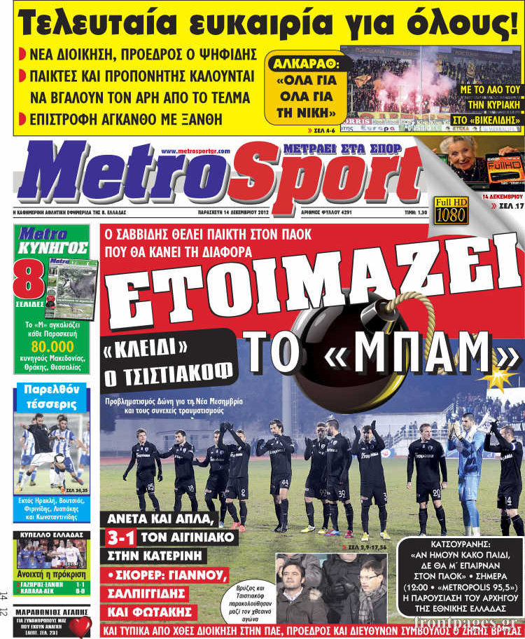 Οι αθλητικές εφημερίδες Enikos Newsroom 08:48, Παρασκευή 14 Δεκεμβρίου 2012 Media Οι αθλητικές εφημερίδες ΑΘΛΗΤΙΚΑ ΑΘΛΗΤΙΚΕΣ ΕΦΗΜΕΡΙΔΕΣ ΕΦΗΜΕΡΙΔΕΣ ΠΡΩΤΟΣΕΛΙΔΑ Μοιράσου το: σχολίασε κι εσύ (0 σχόλια) Ακολουθήστε το enikos.gr στο Google News και μάθετε πρώτοι όλες τις ειδήσεις Δείτε όλες τις τελευταίες ειδήσεις από την Ελλάδα και τον Κόσμο στο enikos.gr Ειδήσεις Ροή Ειδήσεων 3 ώρες πριν Ακίλα Σάλεχ: «Άκυρο» το τουρκολιβυκό μνημόνιο λέει ο πρόεδρος της λιβυκής Βουλής – Ανοίγει ο διάλογος με Ελλάδα, Αίγυπτο και Τουρκία 7 ώρες πριν Αγρότες: Την Τρίτη η απόφαση για διάλογο ή κλιμάκωση των κινητοποιήσεών τους – Πώς χαρακτηρίζουν τις ανακοινώσεις Τσιάρα και οι επόμενες κινήσεις 7 ώρες πριν Τραμπ για Ουκρανία: «Είμαστε πιο κοντά σε συμφωνία από ποτέ» – «Πολυεθνική δύναμη» προτείνουν οι Ευρωπαίοι 7 ώρες πριν Κυψέλη: Η 16χρονη που μαχαίρωσε την 14χρονη είχε συλληφθεί 3 φορές στο παρελθόν – Έβριζε καθηγητές, έβαζε φωτιές σε κάδους και εκβίαζε συμμαθητές της 6 ώρες πριν Τρομοκρατική επίθεση στο Σίδνεϊ: Θλίψη για τα 15 θύματα – Οργή στην εβραϊκή κοινότητα που προειδοποιούσε επί δύο χρόνια 7 ώρες πριν Επιστήμονες ίσως έλυσαν το μυστήριο γύρω από τα Χόμπιτ – Νέα έρευνα αποκαλύπτει πώς εξαφανίστηκαν 8 ώρες πριν Ύπνος: Η αρχαία μορφή άσκησης που αποδεικνύεται αποτελεσματική στην αντιμετώπιση της αϋπνίας, σύμφωνα με μελέτη 9 ώρες πριν Αριθμολογία: Ο τυχερός σας αριθμός, ανάλογα με τον μήνα γέννησής σας 10 ώρες πριν Πώς να μην μαραίνονται γρήγορα τα κομμένα λουλούδια: Το λάθος στην τοποθέτηση του βάζου που πρέπει να αποφεύγετε 2 λεπτά πριν Οι οικονομικές εφημερίδες 16/12/2025 7 λεπτά πριν Οι αθλητικές εφημερίδες 16/12/2025 12 λεπτά πριν Οι πολιτικές εφημερίδες 16/12/2025 20 λεπτά πριν Τα ζώδια σήμερα, Τρίτη 16 Δεκεμβρίου: Ιχθύες, δεν χρειάζεται να έχετε όλες τις απαντήσεις 28 λεπτά πριν Εφημερεύοντα φαρμακεία σε Αθήνα και Θεσσαλονίκη (16/12) ENIKOS NETWORK Πότε το χρόνιο ροχαλητό να αποτελέσει ένδειξη κινδύνου για την καρδιά; Τι λένε οι ειδικοί Μάριος Θεμιστοκλέους: Το ΕΣΥ ενισχύεται, εκσυγχρονίζεται, αλλάζει ΕΒΕΠ για αγροτικές κινητοποιήσεις: Κάθε επιπλέον εβδομάδα προσθέτει περίπου 200 εκατ. ευρώ ζημιά Τι προβλέπει το νομοσχέδιο του υπουργείου Εθνικής Άμυνας – Oι αλλαγές στους μισθούς Σύγχρονος Νοστράδαμος: Προειδοποιεί για «μεγάλο γεγονός» τους επόμενους μήνες που θα συγκλονίσει τη Βρετανία και τον κόσμο Τεστ παρατηρητικότητας: Μπορείτε να βρείτε τις 3 διαφορές στις εικόνες με έναν πιγκουίνο σε 14 δευτερόλεπτα περισσότερα 05:48 , Τρίτη 16 Δεκεμβρίου 2025 Οι οικονομικές εφημερίδες 16/12/2025 Διαβάστε τα πρωτοσέλιδα από τις οικονομικές εφημερίδες, σήμερα 16/12/2025. 05:43 , Τρίτη 16 Δεκεμβρίου 2025 Οι αθλητικές εφημερίδες 16/12/2025 Διαβάστε τα πρωτοσέλιδα από τις αθλητικές εφημερίδες, σήμερα 16/12/2025. 05:38 , Τρίτη 16 Δεκεμβρίου 2025 Οι πολιτικές εφημερίδες 16/12/2025 Διαβάστε τα πρωτοσέλιδα από τις πολιτικές εφημερίδες, σήμερα 16/12/2025. 21:35 , Δευτέρα 15 Δεκεμβρίου 2025 Το Σπίτι Δίπλα Στο Ποτάμι: Η Ιουλία και ο Φωκάς μετακομίζουν στη Ρόδο – Δύο νέοι χαρακτήρες μπαίνουν στη σειρά Δύο νέοι, κομβικοί χαρακτήρες κάνουν την εμφάνισή τους αυτή την εβδομάδα στην αγαπημένη σειρά ... ΤΕΛΕΥΤΑΙΕΣ ΕΙΔΗΣΕΙΣ 2 λεπτά πριν Οι οικονομικές εφημερίδες 16/12/2025 7 λεπτά πριν Οι αθλητικές εφημερίδες 16/12/2025 12 λεπτά πριν Οι πολιτικές εφημερίδες 16/12/2025 20 λεπτά πριν Τα ζώδια σήμερα, Τρίτη 16 Δεκεμβρίου: Ιχθύες, δεν... 28 λεπτά πριν Εφημερεύοντα φαρμακεία σε Αθήνα και Θεσσαλονίκη (16/12) 35