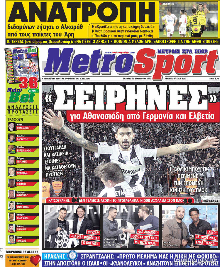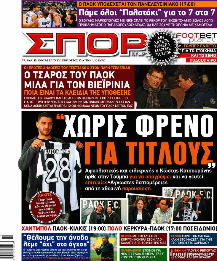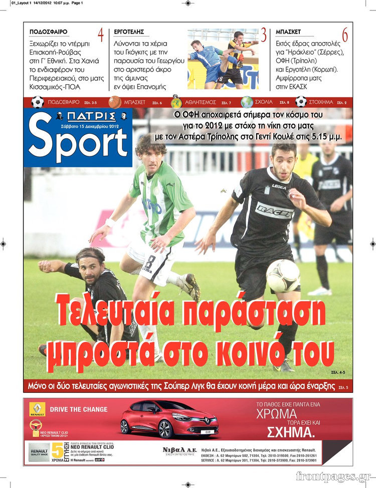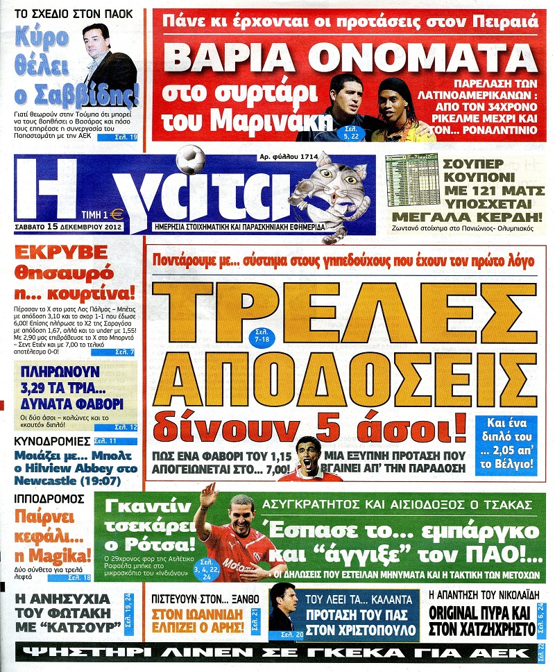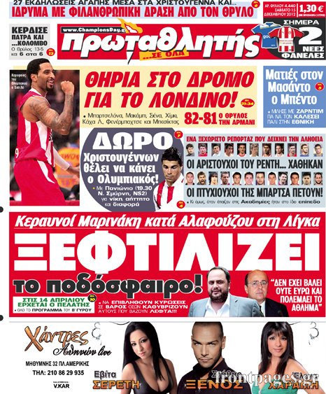 Οι αθλητικές εφημερίδες Enikos Newsroom 09:39, Σάββατο 15 Δεκεμβρίου 2012 Media Οι αθλητικές εφημερίδες Τα πρωτοσέλιδα των αθλητικών εφημερίδων. ΑΘΛΗΤΙΚΕΣ ΕΦΗΜΕΡΙΔΕΣ ΠΡΩΤΟΣΕΛΙΔΑ Μοιράσου το: σχολίασε κι εσύ (0 σχόλια) Ακολουθήστε το enikos.gr στο Google News και μάθετε πρώτοι όλες τις ειδήσεις Δείτε όλες τις τελευταίες ειδήσεις από την Ελλάδα και τον Κόσμο στο enikos.gr Ειδήσεις Ροή Ειδήσεων 1 ώρα πριν Δημοσκόπηση Alco: Στο 23,6% η ΝΔ, στο 11,6% το ΠΑΣΟΚ – Η άποψη των πολιτών για αγρότες, εκλογές και Τσίπρα 5 ώρες πριν Κυψέλη: Για πρώτη ημέρα βρισκόταν στο σχολείο η 16χρονη που επιτέθηκε με μαχαίρι στην 14χρονη – Τι αναφέρουν μαρτυρίες μαθητών για το επεισόδιο 2 ώρες πριν Φοινικούντα: Αρνούνται τις κατηγορίες οι 2 συλληφθέντες – «Θέλω να συμβάλλω στην αποκάλυψη της αλήθειας» λέει ο ανιψιός του θύματος 3 ώρες πριν Κρήτη: Εντοπίστηκε στίγμα του 33χρονου γιατρού που έχει εξαφανιστεί μέσω νέας τεχνολογίας που εφαρμόζεται για πρώτη φορά στην Ελλάδα 4 ώρες πριν Ρομπ και Μισέλ Ράινερ: Συνελήφθη ο γιος τους ως ύποπτος για την δολοφονία τους 6 ώρες πριν Τα 3 ζώδια που θα έχουν τύχη «βουνό» έως τις 21 Δεκεμβρίου – «Η ανατροπή που περιμένετε πλησιάζει» 3 ώρες πριν Γάμος: Αν ένας άνδρας νιώθει βαθιά μοναξιά, θα αρχίσει να κάνει αυτά τα 11 πράγματα μέσα στο σπίτι 2 ώρες πριν Πώς να μην μαραίνονται γρήγορα τα κομμένα λουλούδια: Το λάθος στην τοποθέτηση του βάζου που πρέπει να αποφεύγετε 7 ώρες πριν Επιστήμονες του CERN έλυσαν ένα μυστήριο δεκαετιών της σωματιδιακής φυσικής – Τι ανακάλυψαν 6 λεπτά πριν Βάσω Λασκαράκη: «Χρόνια πολλά, αγάπη μου σε ευχαριστώ που κάνεις την ζωή μου πιο ωραία» – Οι ευχές στον Λευτέρη Σουλτάτο για την γιορτή του 12 λεπτά πριν Μερτς: Οι συνομιλίες για την Ουκρανία είναι «ίσως η μεγαλύτερη διπλωματική δυναμική» – Ζελένσκι: «Επώδυνο το εδαφικό» 17 λεπτά πριν Κόντρα Θεοδωρικάκου – Φάμελλου στη Βουλή – Τα «πυρά» της Κωνσταντοπούλου 21 λεπτά πριν Πιερρακάκης: Σύντομα η Ελλάδα θα έχει περάσει στην πρώτη πεντάδα της Ευρώπης στην ψηφιακή πολιτική – Έχουμε πετύχει έναν άθλο 26 λεπτά πριν Νέα σύλληψη στο «Ελ. Βενιζέλος» για ναρκωτικά – Χειροπέδες σε 23χρονο που είχε 18,5 κιλά κάνναβης στη βαλίτσα του ENIKOS NETWORK Πότε το χρόνιο ροχαλητό να αποτελέσει ένδειξη κινδύνου για την καρδιά; Τι λένε οι ειδικοί Μάριος Θεμιστοκλέους: Το ΕΣΥ ενισχύεται, εκσυγχρονίζεται, αλλάζει ΟΠΕΚΑ: Ποιο επίδομα αυξάνεται από τον επόμενο μήνα και γιατί Ευλογιά αιγοπροβάτων: Έως το τέλος του έτους η οικονομική στήριξη 187 εκατ. ευρώ σε κτηνοτρόφους – Όλα όσα είπε ο Πρωτοψάλτ... Σύγχρονος Νοστράδαμος: Προειδοποιεί για «μεγάλο γεγονός» τους επόμενους μήνες που θα συγκλονίσει τη Βρετανία και τον κόσμο Τεστ παρατηρητικότητας: Μπορείτε να βρείτε τις 3 διαφορές στις εικόνες με έναν πιγκουίνο σε 14 δευτερόλεπτα περισσότερα 19:46 , Δευτέρα 15 Δεκεμβρίου 2025 Άγιος έρωτας: Η Χριστίνα λέει την αλήθεια στον Αντρέα Ο Βασίλης δέχεται επίθεση από τους συμμαθητές του, η Αναστασία είναι συντετριμμένη με την απώλ... 18:45 , Δευτέρα 15 Δεκεμβρίου 2025 Συνέδριο «Ελληνικός Τουρισμός 2025, Μια εθνική υπόθεση!» – «Ο Θαλάσσιος Πυλώνας ως Ενιαία Στρατηγική: Συνέργειες σε Λιμάνια, Μαρίνες, Ακτοπλοΐα, Κρουαζιέρα και Yachting» Στο πλαίσιο της τέταρτης και τελευταίας ενότητας του 7ου συνεδρίου «Ελληνικός Τουρισμός 2025, ... 18:13 , Δευτέρα 15 Δεκεμβρίου 2025 Συνέδριο «Ελληνικός Τουρισμός 2025, Μια εθνική υπόθεση!» – Κικίλιας: «Μεγάλα asset της Ελλάδας η ναυτιλία και ο τουρι