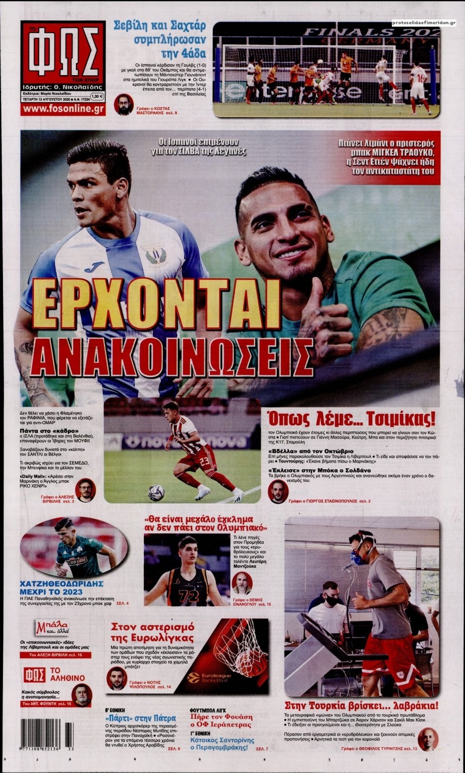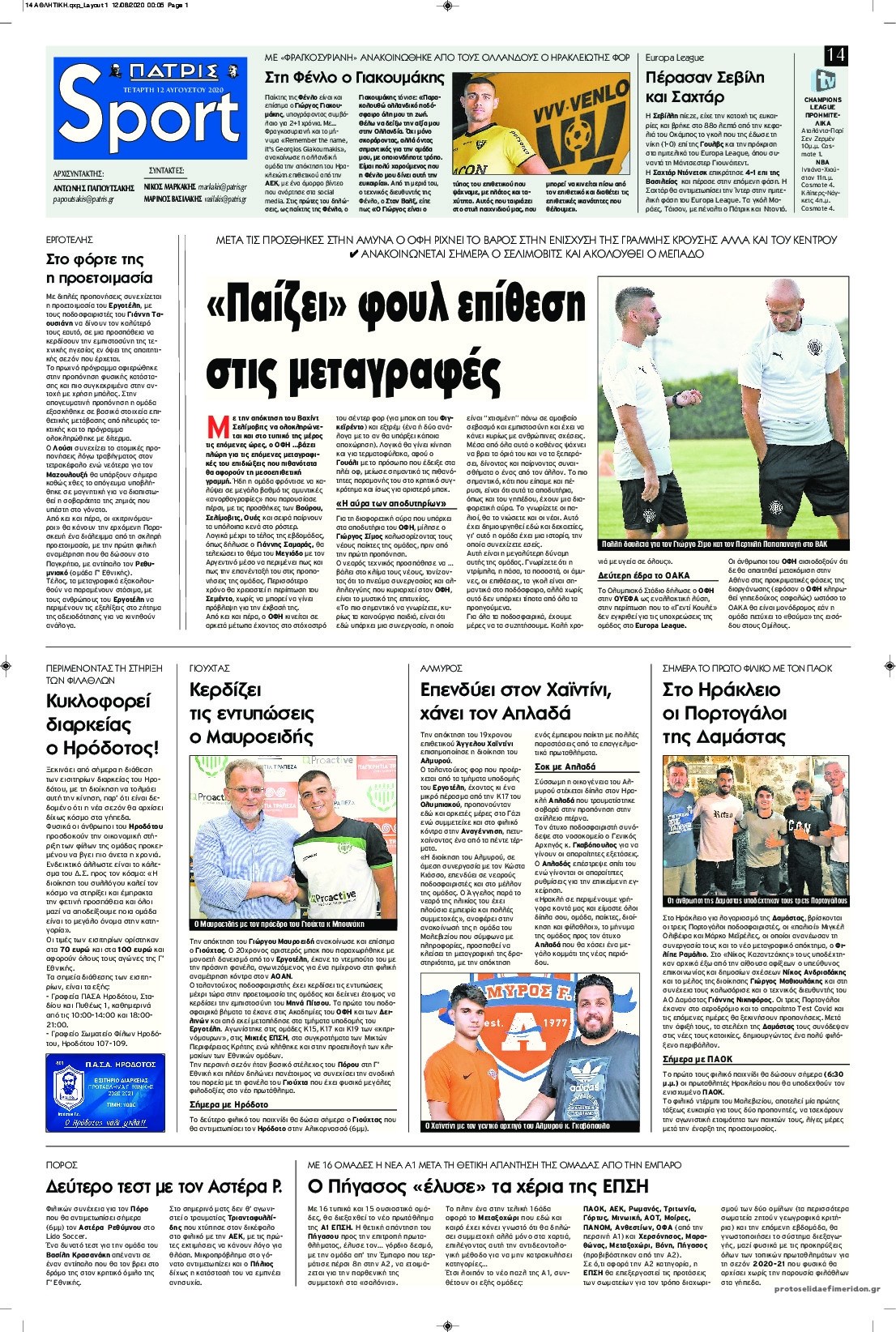 Οι αθλητικές εφημερίδες 12/8/2020 Σήφης Γαρυφαλάκης 06:27, Τετάρτη 12 Αυγούστου 2020 Media Διαβάστε τα πρωτοσέλιδα των αθλητικών εφημερίδων… ΑΘΛΗΤΙΚΕΣ ΕΦΗΜΕΡΙΔΕΣ ΕΦΗΜΕΡΙΔΕΣ ΠΡΩΤΟΣΕΛΙΔΑ ΠΡΩΤΟΣΕΛΙΔΑ ΕΦΗΜΕΡΙΔΩΝ Μοιράσου το: σχολίασε κι εσύ (0 σχόλια) Ακολουθήστε το enikos.gr στο Google News και μάθετε πρώτοι όλες τις ειδήσεις Δείτε όλες τις τελευταίες ειδήσεις από την Ελλάδα και τον Κόσμο στο enikos.gr Ειδήσεις Ροή Ειδήσεων 3 ώρες πριν Αυξάνουν την πίεση προς την κυβέρνηση οι αγρότες: Κλείνουν παρακαμπτήριους και ανοίγουν διόδια – Τι θα γίνει τις γιορτές 1 ώρα πριν ΟΠΕΚΕΠΕ: Προφυλακιστέος ο φερόμενος αρχηγός και ο λογιστής της εγκληματικής οργάνωσης 2 ώρες πριν Φοινικούντα: Το Σάββατο απολογείται ο 30χρονος γιος γνωστού επιχειρηματία της Πλάκας που παραδόθηκε – Όσα είπε στους αστυνομικούς και ο ρόλος του στο έγκλημα 2 ώρες πριν Μπορεί ο Μαδούρο να αντέξει τον αποκλεισμό του Τραμπ; Τι θα χρειαστεί η Ουάσινγκτον για να τον ανατρέψει 4 ώρες πριν Πρίγκιπας Ουίλιαμ – Κέιτ: Η νέα οικογενειακή φωτογραφία για τις Χριστουγεννιάτικες κάρτες του 2025 3 ώρες πριν Ύπνος: Η απλή βραδινή ρουτίνα για να προστατεύσετε τα μαλλιά σας από το κρύο κατά τη διάρκεια του χειμώνα 4 ώρες πριν Manifesting: Πώς να συναντήσετε τον σύντροφο της ζωής σας, ανάλογα με τον μήνα γέννησής σας 2 ημέρες πριν 20 χρόνια τα Χριστούγεννα ξεκινούν στα Public με μεγάλη ποικιλία σε δώρα! 2 ώρες πριν Αρχαιολόγοι ανακάλυψαν ρωμαϊκά τεχνουργήματα από μια πόλη που δεν υπήρξε ποτέ – Τα τρία εντυπωσιακά κτίρια και ο αμφορέας με τις… σαρδέλες 3 λεπτά πριν Νέος πρέσβης της Μεγάλης Βρετανίας στις ΗΠΑ ο Κρίστιαν Τέρνερ 7 λεπτά πριν Conference League: Με Νόα, Ντρίτα, Άλκμααρ ή Τσέλιε στους «16» η ΑΕΚ 15 λεπτά πριν Conference League: Απευθείας στους «16» η ΑΕΚ Λάρνακας και η Ρακόβ των Σβάρνα και Κωνσταντόπουλου – Τα αποτελέσματα και η βαθμολογία, 3η η ΑΕΚ 25 λεπτά πριν Σε ομάδες που συνδέονται με το ρωσικό κράτος αποδίδει η Δανία δύο κυβερνοεπιθέσεις που δέχθηκε 40 λεπτά πριν Βαθμολογία UEFA: Η Πολωνία προσπέρασε την Ελλάδα ENIKOS NETWORK Σε περίοδο αυξημένης δραστηριότητας η γρίπη στην Ελλάδα-Μέτρα προστασίας από τον ΕΟΔΥ Σκέφτεστε συνέχεια συζητήσεις που έχετε κάνει; Τι σημαίνει αυτό, σύμφωνα με ειδικό Στεγαστικό: Τι λέει η ΠΟΜΙΔΑ για τα νέα μέτρα που ανακοίνωσε ο Κυριάκος Μητσοτάκης Λαγκάρντ: Αισιόδοξη για την ανάπτυξη της Ευρωζώνης, αβέβαιη για τον πληθωρισμό Χαρτογραφώντας το «σημείο χωρίς επιστροφή»: Για πρώτη φορά αποκαλύπτεται με λεπτομέρεια το ακανθώδες όριο της ατμόσφαιρας τ... Η Google καταργεί τη λειτουργία «dark web report» – Πώς θα μπορούν οι χρήστες να διαγράφουν τα δεδομένα τους περισσότερα 17:45 , Πέμπτη 18 Δεκεμβρίου 2025 ROUK ZOUK: Εορταστικό επεισόδιο με καλεσμένους τους πρωταγωνιστές του «Γιατί ρε πατέρα» Το Σάββατο 20 Δεκεμβρίου στις 21:00, η Ζέτα Μακρυπούλια υποδέχεται εκλεκτούς ηθοποιούς που όλο... 17:20 , Πέμπτη 18 Δεκεμβρίου 2025 Άγιος έρωτας: Η Χριστίνα εξομολογείται στον πατέρα Νικόλαο, απόψε στις 21:00 στον Alpha Η Νότα αποφασίζει να εκδικηθεί τον Πέτρο και τον Στέφανο, για χάρη του Λούη, όμως τα πράγματα ... 16:50 , Πέμπτη 18 Δεκεμβρίου 2025 Να μ’ αγαπάς: Ζωή και Φωτεινή συμφιλιώνονται ως μάνα με κόρη, απόψε στις 20:00 Η ταυτότητα του Άγγελου αποκαλύπτεται στο νέο επεισόδιο της σειράς “Να μ’ αγαπάς... 15:52 , Πέμπτη 18 Δεκεμβρίου 2025 Το Σπίτι Δίπλα Στο Ποτάμι: Το καθηλωτικό τελευταίο επεισόδιο για το 2025 απόψε στις 22:30 Καθηλώνει το σημερινό επεισόδιο της σειράς “Το Σπίτι Δίπλα Στο