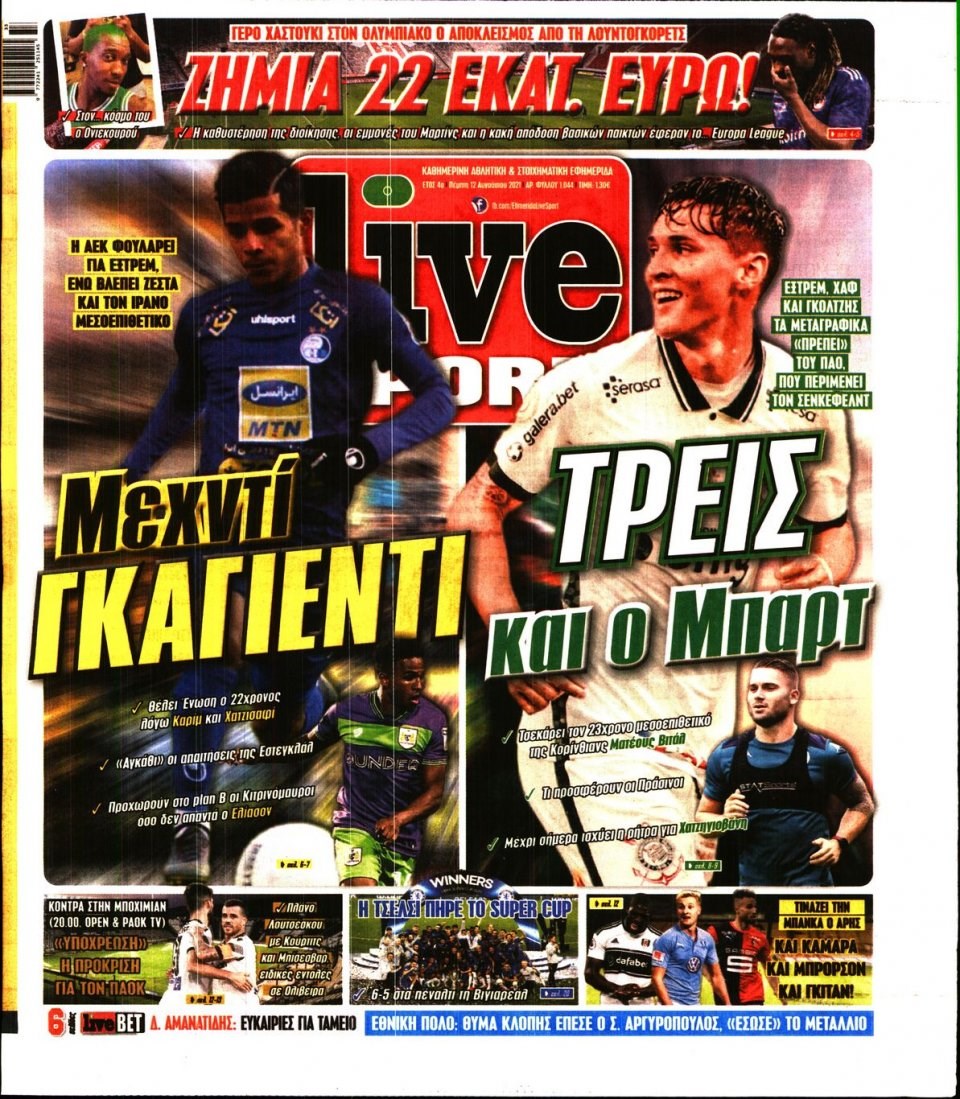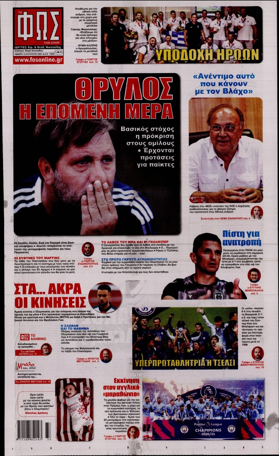 Οι αθλητικές εφημερίδες 12/8/2021 Σήφης Γαρυφαλάκης 06:23, Πέμπτη 12 Αυγούστου 2021 Media Διαβάστε τα πρωτοσέλιδα των αθλητικών εφημερίδων. ΑΘΛΗΤΙΚΕΣ ΕΦΗΜΕΡΙΔΕΣ ΕΦΗΜΕΡΙΔΕΣ ΠΡΩΤΟΣΕΛΙΔΑ ΠΡΩΤΟΣΕΛΙΔΑ ΕΦΗΜΕΡΙΔΩΝ Μοιράσου το: σχολίασε κι εσύ (0 σχόλια) Ακολουθήστε το enikos.gr στο Google News και μάθετε πρώτοι όλες τις ειδήσεις Δείτε όλες τις τελευταίες ειδήσεις από την Ελλάδα και τον Κόσμο στο enikos.gr Ειδήσεις Ροή Ειδήσεων 2 ώρες πριν Αυξάνουν την πίεση προς την κυβέρνηση οι αγρότες: Κλείνουν παρακαμπτήριους και ανοίγουν διόδια – Τι θα γίνει τις γιορτές 33 λεπτά πριν ΟΠΕΚΕΠΕ: Προφυλακιστέος ο φερόμενος αρχηγός και ο λογιστής της εγκληματικής οργάνωσης 2 ώρες πριν Φοινικούντα: Το Σάββατο απολογείται ο 30χρονος γιος γνωστού επιχειρηματία της Πλάκας που παραδόθηκε – Όσα είπε στους αστυνομικούς και ο ρόλος του στο έγκλημα 1 ώρα πριν Μπορεί ο Μαδούρο να αντέξει τον αποκλεισμό του Τραμπ; Τι θα χρειαστεί η Ουάσινγκτον για να τον ανατρέψει 3 ώρες πριν Πρίγκιπας Ουίλιαμ – Κέιτ: Η νέα οικογενειακή φωτογραφία για τις Χριστουγεννιάτικες κάρτες του 2025 2 ώρες πριν Ύπνος: Η απλή βραδινή ρουτίνα για να προστατεύσετε τα μαλλιά σας από το κρύο κατά τη διάρκεια του χειμώνα 3 ώρες πριν Manifesting: Πώς να συναντήσετε τον σύντροφο της ζωής σας, ανάλογα με τον μήνα γέννησής σας 2 ημέρες πριν 20 χρόνια τα Χριστούγεννα ξεκινούν στα Public με μεγάλη ποικιλία σε δώρα! 1 ώρα πριν Αρχαιολόγοι ανακάλυψαν ρωμαϊκά τεχνουργήματα από μια πόλη που δεν υπήρξε ποτέ – Τα τρία εντυπωσιακά κτίρια και ο αμφορέας με τις… σαρδέλες 12 λεπτά πριν ΑΕΚ – Κραϊόβα 3-2: Επική ανατροπή και πρόκριση στους «16» του Conference League η Ένωση 33 λεπτά πριν ΟΠΕΚΕΠΕ: Προφυλακιστέος ο φερόμενος αρχηγός και ο λογιστής της εγκληματικής οργάνωσης 43 λεπτά πριν Αθηνά Μαξίμου: Η τρυφερή ανάρτηση για τα γενέθλια του Αιμίλιου Χειλάκη – «Είναι η εκλεκτική συγγένειά μου, η επιλογή και η ευθύνη μου» 58 λεπτά πριν Παναθηναϊκός – Χάποελ Τελ Αβίβ 93-82: Με… φόρα από την Κωνσταντινούπολη 1 ώρα πριν Μπορεί ο Μαδούρο να αντέξει τον αποκλεισμό του Τραμπ; Τι θα χρειαστεί η Ουάσινγκτον για να τον ανατρέψει ENIKOS NETWORK Σε περίοδο αυξημένης δραστηριότητας η γρίπη στην Ελλάδα-Μέτρα προστασίας από τον ΕΟΔΥ Σκέφτεστε συνέχεια συζητήσεις που έχετε κάνει; Τι σημαίνει αυτό, σύμφωνα με ειδικό Στεγαστικό: Τι λέει η ΠΟΜΙΔΑ για τα νέα μέτρα που ανακοίνωσε ο Κυριάκος Μητσοτάκης Λαγκάρντ: Αισιόδοξη για την ανάπτυξη της Ευρωζώνης, αβέβαιη για τον πληθωρισμό Χαρτογραφώντας το «σημείο χωρίς επιστροφή»: Για πρώτη φορά αποκαλύπτεται με λεπτομέρεια το ακανθώδες όριο της ατμόσφαιρας τ... Η Google καταργεί τη λειτουργία «dark web report» – Πώς θα μπορούν οι χρήστες να διαγράφουν τα δεδομένα τους περισσότερα 17:45 , Πέμπτη 18 Δεκεμβρίου 2025 ROUK ZOUK: Εορταστικό επεισόδιο με καλεσμένους τους πρωταγωνιστές του «Γιατί ρε πατέρα» Το Σάββατο 20 Δεκεμβρίου στις 21:00, η Ζέτα Μακρυπούλια υποδέχεται εκλεκτούς ηθοποιούς που όλο... 17:20 , Πέμπτη 18 Δεκεμβρίου 2025 Άγιος έρωτας: Η Χριστίνα εξομολογείται στον πατέρα Νικόλαο, απόψε στις 21:00 στον Alpha Η Νότα αποφασίζει να εκδικηθεί τον Πέτρο και τον Στέφανο, για χάρη του Λούη, όμως τα πράγματα ... 16:50 , Πέμπτη 18 Δεκεμβρίου 2025 Να μ’ αγαπάς: Ζωή και Φωτεινή συμφιλιώνονται ως μάνα με κόρη, απόψε στις 20:00 Η ταυτότητα του Άγγελου αποκαλύπτεται στο νέο επεισόδιο της σειράς “Να μ’ αγαπάς... 15:52 , Πέμπτη 18 Δεκεμβρίου 2025 Το Σπίτι Δίπλα Στο Ποτάμι: Το καθηλωτικό τελευταίο επεισόδιο για το 2025 απ