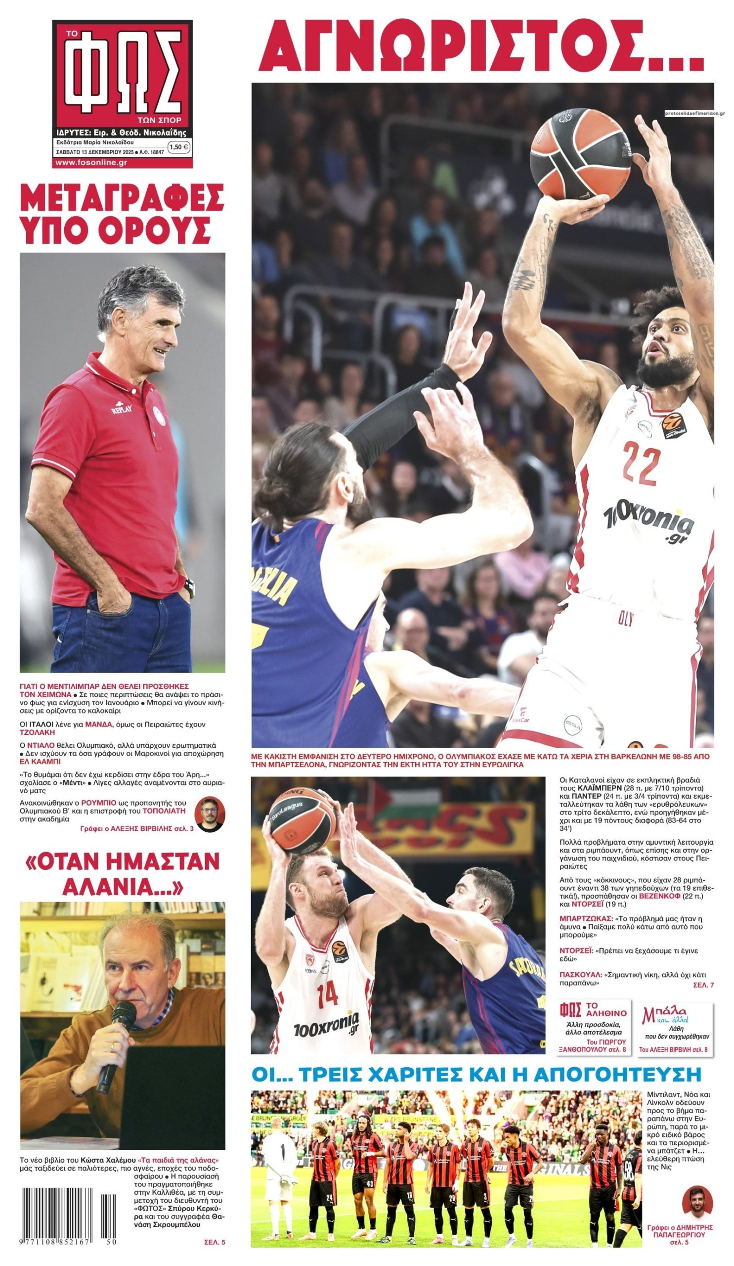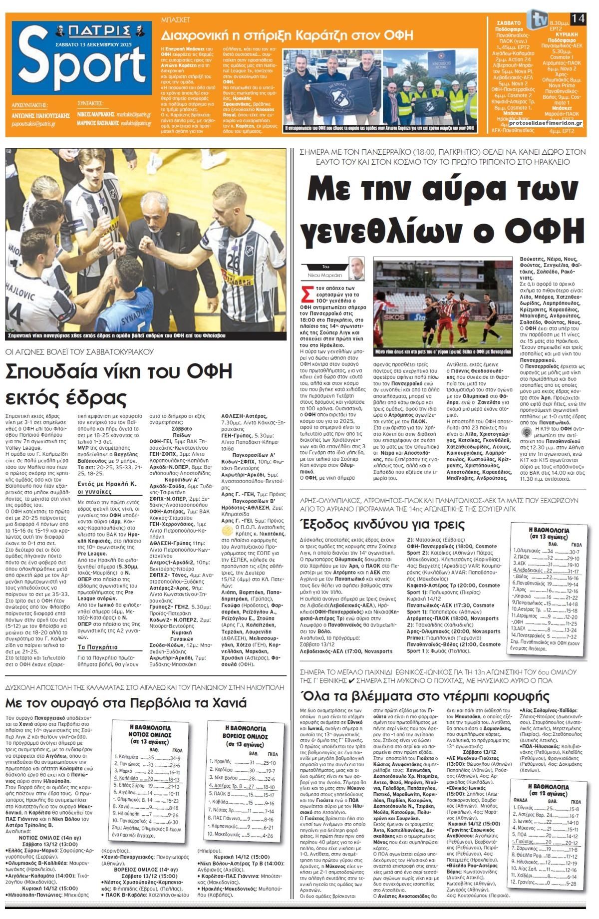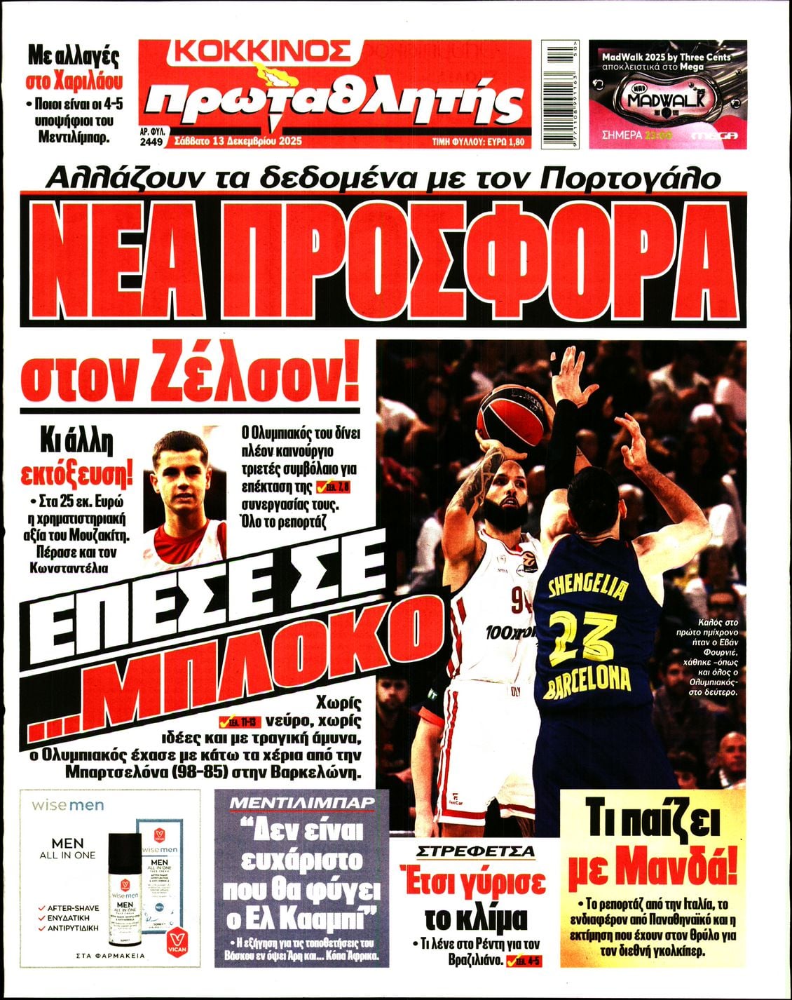 Διαβάστε τα πρωτοσέλιδα από τις αθλητικές εφημερίδες, σήμερα 13/12/2025.