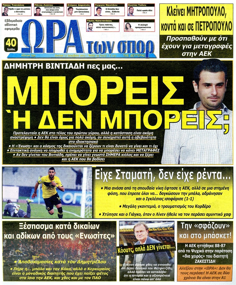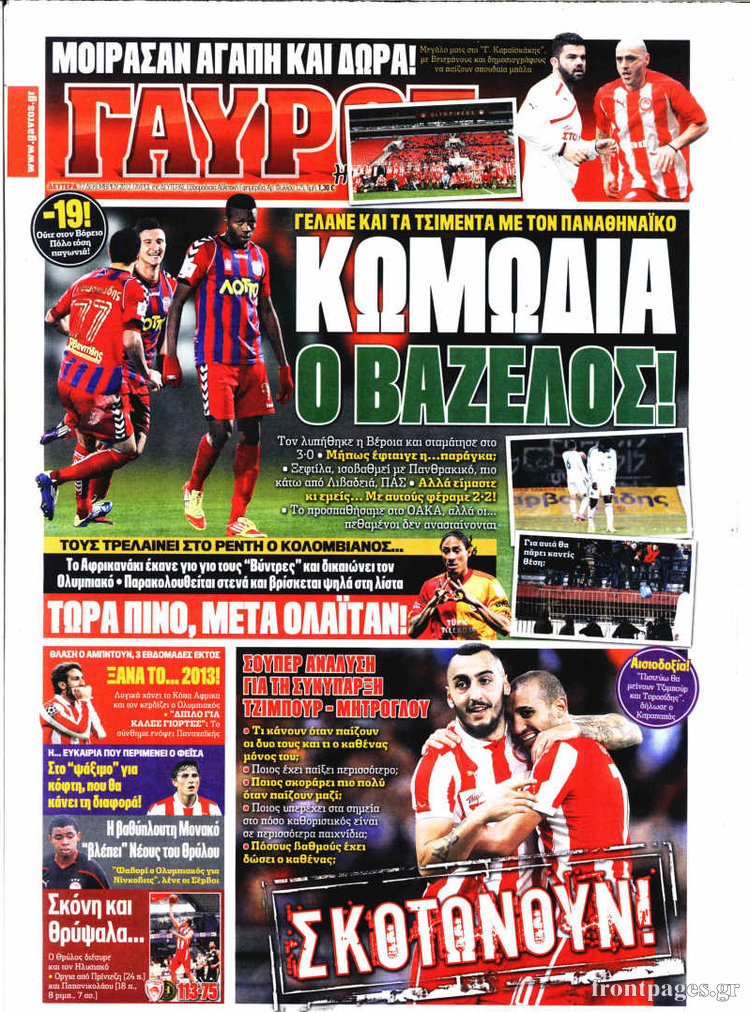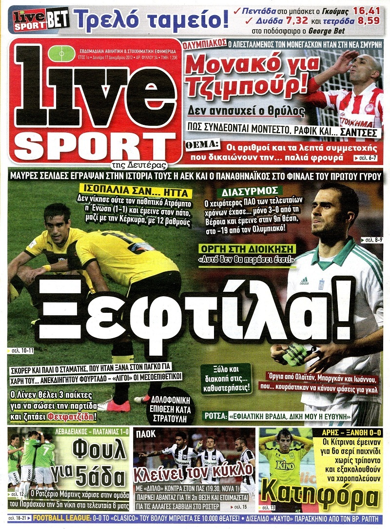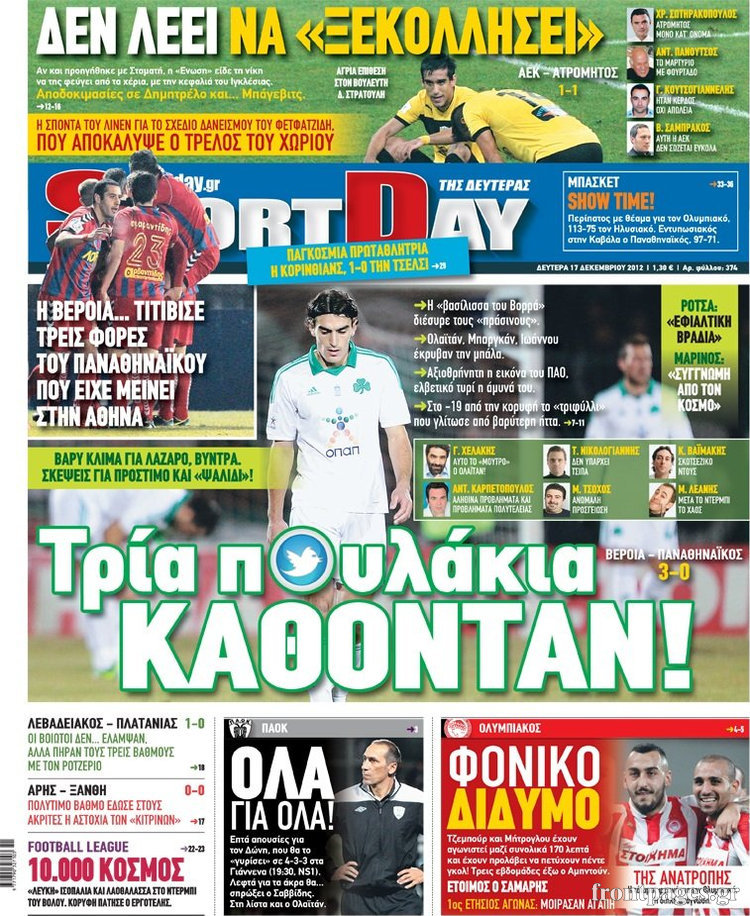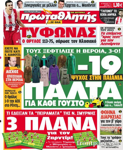 Οι αθλητικές εφημερίδες Enikos Newsroom 08:51, Δευτέρα 17 Δεκεμβρίου 2012 Media Οι αθλητικές εφημερίδες ΑΘΛΗΤΙΚΑ ΑΘΛΗΤΙΚΕΣ ΕΦΗΜΕΡΙΔΕΣ ΕΦΗΜΕΡΙΔΕΣ ΕΦΗΜΕΡΙΔΕΣ ΠΡΩΤΟΣΕΛΙΔΑ ΠΡΩΤΟΣΕΛΙΔΑ Μοιράσου το: σχολίασε κι εσύ (0 σχόλια) Ακολουθήστε το enikos.gr στο Google News και μάθετε πρώτοι όλες τις ειδήσεις Δείτε όλες τις τελευταίες ειδήσεις από την Ελλάδα και τον Κόσμο στο enikos.gr Ειδήσεις Ροή Ειδήσεων 1 ώρα πριν Σίδνεϊ: Τα ονόματα των θυμάτων από την τρομοκρατική επίθεση – Η 10χρονη Ματίλντα και ο επιζών του Ολοκαυτώματος που έσωσε τη γυναίκα του 2 ώρες πριν Η διαδρομή του σκάφους με την τεράστια ποσότητα κοκαΐνης που κατασχέθηκε στο λιμάνι του Πειραιά – Συνελήφθη και γνωστός «βαρώνος» 2 ώρες πριν Κυβέρνηση: Οι κόκκινες γραμμές στη διαπραγμάτευση με τους αγρότες – Τι ζητούν οι εκπρόσωποι των μπλόκων 4 ώρες πριν Σοκ στο Χόλιγουντ: Νεκροί από μαχαιριές ο σκηνοθέτης Ρομπ Ράινερ και η σύζυγός του – Αναφορές ότι τους σκότωσε ο γιος τους 2 ώρες πριν Δείτε LIVE το συνέδριο «Ελληνικός Τουρισμός, Μια Εθνική Υπόθεση!» 33 λεπτά πριν Μακροζωία: 55χρονος που ισχυρίζεται ότι βιολογικά είναι 20 ετών μοιράζεται μια απλή συμβουλή για υγιή εγκέφαλο 3 ώρες πριν Τα 3 ζώδια που μπαίνουν σε μια νέα δυναμική εποχή – «Είστε έτοιμοι για όλα» 2 ώρες πριν Οι 8 φράσεις που δίνουν αμέσως την εντύπωση πως είστε δύσκολος άνθρωπος 4 ώρες πριν Κληρονόμησε 2,8 εκατ. ευρώ και φοβάται ότι οι άνδρες θα την πλησιάζουν για τα λεφτά – «Μήπως καλύτερα να το κρατήσω μυστικό;» 4 λεπτά πριν ΑΠΕΥΘΕΙΑΣ – Η ενημέρωση από τον Κυβερνητικό Εκπρόσωπο (15/12/2025) 8 λεπτά πριν Συνέδριο «Ελληνικός Τουρισμός 2025, Μια εθνική υπόθεση!» – Όλγα Κεφαλογιάννη: Στα 23,5 δισ. ευρώ τα τουριστικά έσοδα για το 2025 8 λεπτά πριν Τουριστικά γραφεία Μακεδονίας – Θράκης: Ζητούν ελεύθερη διέλευση από τα αγροτικά μπλόκα 13 λεπτά πριν Θεσσαλονίκη: Ψήφισμα διαμαρτυρίας και τα αιτήματά τους έδωσε σε βουλευτές επιτροπή από το μπλόκο Δερβενίου 18 λεπτά πριν Λάμπρος Κωνσταντάρας: Νέα δήλωση «βόμβα» για την υπόθεση γνωστού τραγουδιστή – «Η καταγγελία είναι για παρενόχληση με πρόθεση σεξουαλικής συνεύρεσης» ENIKOS NETWORK Νέα φάρμακα για την παχυσαρκία: Υπάρχει κίνδυνος καρκίνου; Αρτηριακή πλάκα: Ειδικός στη μακροζωία εξηγεί πώς μπορεί να αντιστραφεί μέσα σε 12 μήνες Μετρό: Ποιοι σταθμοί θα κλείσουν σήμερα και αύριο νωρίτερα Συντάξεις Ιανουαρίου 2026: Ποια ταμεία πληρώνουν πρώτα Σύγχρονος Νοστράδαμος: Προειδοποιεί για «μεγάλο γεγονός» τους επόμενους μήνες που θα συγκλονίσει τη Βρετανία και τον κόσμο Τεστ παρατηρητικότητας: Μπορείτε να βρείτε τις 3 διαφορές στις εικόνες με έναν πιγκουίνο σε 14 δευτερόλεπτα περισσότερα 12:27 , Δευτέρα 15 Δεκεμβρίου 2025 Συνέδριο «Ελληνικός Τουρισμός 2025, Μια εθνική υπόθεση!» – Όλγα Κεφαλογιάννη: Στα 23,5 δισ. ευρώ τα τουριστικά έσοδα για το 2025 Τον πήχη στα 23,5 δισ. ευρώ σε ό,τι αφορά τις ταξιδιωτικές εισπράξεις για το 2025 έθεσε η υπου... 11:59 , Δευτέρα 15 Δεκεμβρίου 2025 Γιατί καθυστερεί η πρεμιέρα του «Survivor» – Το παρασκήνιο Μετατίθεται για αργότερα η πρεμιέρα του «Survivor» στην prime time του ΣΚΑΪ, κλείνοντας τη χρο... 11:58 , Δευτέρα 15 Δεκεμβρίου 2025 Συνέδριο «Ελληνικός Τουρισμός 2025, Μια εθνική υπόθεση!» – Χάρης Δούκας: «Η Αθήνα δεν είναι πια εποχικός προορισμός» – Στοίχημα η βιώσιμη διαχείριση του τουρισμού Στις προκλήσεις που δημιουργεί η ραγδαία αύξηση του τουρισμού σε τοπικό επίπεδο, αναφέρθηκε στ... 11:44 , Δευτέρα 15 Δεκεμβρίου 2025 Συνέδριο «Ελληνικός Τουρισμός 2025, Μ