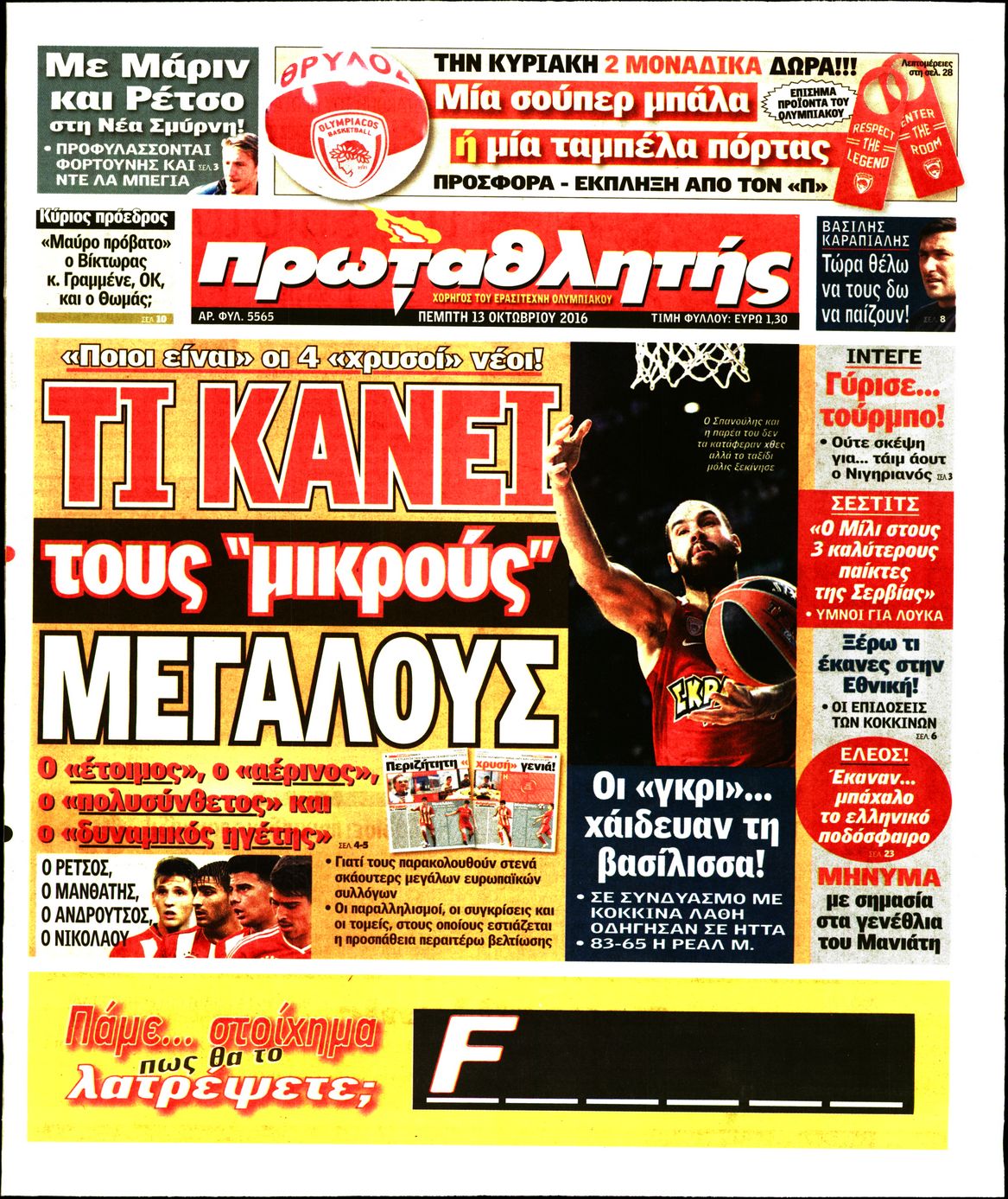 Οι αθλητικές εφημερίδες 13/10/2016 Enikos Newsroom 05:41, Πέμπτη 13 Οκτωβρίου 2016 Media Διαβάστε τα σημερινά πρωτοσέλιδα των αθλητικών εφημερίδων: ΑΘΛΗΤΙΚΕΣ ΕΦΗΜΕΡΙΔΕΣ ΠΡΩΤΟΣΕΛΙΔΑ Μοιράσου το: σχολίασε κι εσύ (0 σχόλια) Ακολουθήστε το enikos.gr στο Google News και μάθετε πρώτοι όλες τις ειδήσεις Δείτε όλες τις τελευταίες ειδήσεις από την Ελλάδα και τον Κόσμο στο enikos.gr Ειδήσεις Ροή Ειδήσεων 51 λεπτά πριν Πούτιν: «Ανοησίες» και «υστερίες» οι ισχυρισμοί της Ευρώπης για πιθανή σύγκρουση με τη Ρωσία – «Κάνουν πλύση εγκεφάλου» 5 ώρες πριν Έρευνα MRB: Η πρόθεση ψήφου και τα σημαντικότερα προβλήματα – Οι «λέξεις» που εκφράζουν τους πολίτες 2 ώρες πριν Αμοργός: «Θα προσπαθήσω να το κάνω κάθε μέρα» – Ποιος είναι ο αγρότης που έστησε μόνος του το πρώτο μπλόκο στο νησί 1 ώρα πριν Κυψέλη: Στον ανακριτή η 16χρονη που μαχαίρωσε την 14χρονη – «Είχα το μαχαίρι για προστασία – Έχω θέμα με τα νεύρα μου» 40 λεπτά πριν Συνάντηση Μητσοτάκη με την Κ.Ο. της ΝΔ: Οι αφίξεις των βουλευτών, τα γλυκά και τα «πηγαδάκια» 5 ώρες πριν Τα 4 ζώδια που ξαναβρίσκουν τον εαυτό τους – «Μπαίνετε επιτέλους στην ουσία των πραγμάτων» 6 ώρες πριν 20 χρόνια τα Χριστούγεννα ξεκινούν στα Public με μεγάλη ποικιλία σε δώρα! 4 ώρες πριν «Δεν είχα κλάψει από τότε που διαγνώστηκα με καρκίνο, ώσπου ένα τηλεφώνημα με έκανε να λυγίσω» – Η συγκλονιστική εξομολόγηση ενός άνδρα 3 ώρες πριν Τα 7 σπάνια χαρακτηριστικά που κάνουν κάποιους ανθρώπους ακαταμάχητους 6 λεπτά πριν Ο σπάνιος σεισμός που έλυσε τα χέρια των επιστημόνων – Αποκάλυψε ακριβώς όσα αναζητούσαν 10 λεπτά πριν Τζιτζικώστας από το Στρασβούργο: «Σανίδα σωτηρίας για την ευρωπαϊκή αυτοκινητοβιομηχανία η νέα δέσμη μέτρων που υιοθετήσαμε – Κινητήρες εσωτερικής καύσης και υβριδικά οχήματα και μετά το 2035» 13 λεπτά πριν Τροχαίο στην Αττική Οδό: Κλειστή η δεξιά λωρίδα μετά την έξοδο Μαραθώνος στο ρεύμα προς Αεροδρόμιο 15 λεπτά πριν Βόλος: Καθηγητής κλείδωσε μαθητές στην τάξη για να κάνει μάθημα – Οι καταγγελίες 20 λεπτά πριν Debate Καιρίδη – Γιαννούλη στον Realfm 97,8 για τη συζήτηση στη Βουλή, την ακρίβεια και τον πρωτογενή τομέα ENIKOS NETWORK 5 πράγματα που αποφεύγει γαστρεντερολόγος για να μειώσει τον κίνδυνο καρκίνου του εντέρου Ανησυχητική αύξηση της υπέρτασης στα παιδιά – Πώς θα τα προστατέψουμε; «IRIS Παντού»: Στην κορυφή της Ευρώπης η Ελλάδα με 120 εκατ. ευρώ συναλλαγές το 2025 – Η σύγκριση με τις άλλες χώρες της Ευ... Αδειοδωρόσημο Χριστουγέννων 2025: Πότε γίνεται η καταβολή του και σε ποιους Σύγχρονος Νοστράδαμος: Προειδοποιεί για «μεγάλο γεγονός» τους επόμενους μήνες που θα συγκλονίσει τη Βρετανία και τον κόσμο Τεστ παρατηρητικότητας: Μπορείτε να βρείτε τις 3 διαφορές στις εικόνες με έναν πιγκουίνο σε 14 δευτερόλεπτα περισσότερα 12:35 , Τετάρτη 17 Δεκεμβρίου 2025 Μίρκα Παπακωνσταντίνου: «Δεν ήμουν αισιόδοξη για τα νούμερα – Είμαι ρεαλίστρια» Στα γυρίσματα του εορταστικού επεισοδίου της αγαπημένης σειράς “Το Σόι Σου”, βρέθηκε η κάμερα ... 12:12 , Τετάρτη 17 Δεκεμβρίου 2025 Ακούστε την εκπομπή του Νίκου Χατζηνικολάου 17/12/2025 Ακούστε την εκπομπή του Νίκου Χατζηνικολάου στον ραδιοφωνικό σταθμό RealFm 97,8, την Τετάρτη 1... 11:35 , Τετάρτη 17 Δεκεμβρίου 2025 Home Alone: Το σπίτι της ταινίας θα ανακαινιστεί – Επιστροφή στην αισθητική της δεκαετίας του ’90 Οι νέοι ιδιοκτήτες του πραγματικού σπιτιού που παρουσιάζεται στην κλασική ταινία του 1990 «Hom... 11:25 , Τετάρτη 17 Δεκεμβρίου 2025 Grand Hotel: Απόψε το τελευταίο επεισόδιο της χρονι