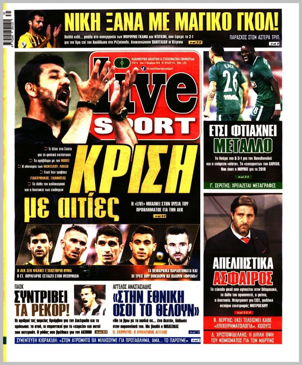 Οι αθλητικές εφημερίδες 13/11/18 Enikos Newsroom 06:22, Τρίτη 13 Νοεμβρίου 2018 Media Διαβάστε τα πρωτοσέλιδα: ΑΘΛΗΤΙΚΕΣ ΕΦΗΜΕΡΙΔΕΣ ΠΡΩΤΟΣΕΛΙΔΑ Μοιράσου το: σχολίασε κι εσύ (0 σχόλια) Ακολουθήστε το enikos.gr στο Google News και μάθετε πρώτοι όλες τις ειδήσεις Δείτε όλες τις τελευταίες ειδήσεις από την Ελλάδα και τον Κόσμο στο enikos.gr Ειδήσεις Ροή Ειδήσεων 3 ώρες πριν Από το Ορμένιο ως τα Μάλγαρα κι από τη Σιάτιστα μέχρι τη Νίκαια: Μπλόκα σε όλη την Ελλάδα – Το Σάββατο ανοίγουν τα διόδια οι αγρότες 1 ώρα πριν Εμπλοκή και αερομαχίες με οπλισμένα τουρκικά F-16 στο Αιγαίο 3 ώρες πριν Αττική: Θρίλερ με νεκρό βρέφος 5 μηνών – Κοιμόταν στο ίδιο κρεβάτι με τους γονείς του 56 λεπτά πριν Πούτιν: «Ναι, είμαι ερωτευμένος» – Βίντεο από τη σπάνια προσωπική παραδοχή του 3 ώρες πριν Μεσόγειος: Η διαδρομή του ρωσικού τάνκερ «Qendil» και η στοχευμένη επίθεση της Ουκρανίας με drone – Ο Πούτιν προειδοποίησε για αντίποινα 5 ώρες πριν Τα 5 ζώδια που ευνοούνται στην ερωτική ζωή τους την επόμενη εβδομάδα – «Η ενέργεια του Αιγόκερου φέρνει αγάπη και σταθερότητα» 6 ώρες πριν Αυτό το έξυπνο μαθηματικό κόλπο θα μπορούσε να αλλάξει τον τρόπο με τον οποίο οι επιστήμονες μελετούν τους σεισμούς 2 ώρες πριν Μήπως έχετε χάσει τον εαυτό σας στη σχέση σας; 7 «αθόρυβες» υποχωρήσεις που μάλλον κάνατε, χωρίς να το συνειδητοποιήσετε 4 ώρες πριν Κουίζ για την παλιά Αθήνα: Αναγνωρίζετε την περιοχή; Έχετε περάσει 100% από εκεί 3 λεπτά πριν Μπαράκ Ομπάμα: Τα βιβλία, οι ταινίες και τα τραγούδια που ξεχώρισε το 2025 – Πλήρης λίστα 7 λεπτά πριν Don’t Forget The Lyrics: Η Έλλη Κοκκίνου υποδέχεται 4 παίκτες που θα κάνουν τα πάντα για να μη χάσουν ούτε… μισή λέξη από τους στίχους 13 λεπτά πριν Πλεύρης στον ΑΝΤ1: Η βασική πολιτική που ψηφίστηκε από τους υπουργούς Μετανάστευσης είναι η δημιουργία κέντρων κράτησης μεταναστών στην Αφρική – ΒΙΝΤΕΟ 18 λεπτά πριν Η εξομολόγηση της Νίκης Σερέτη: «Δεν κρύβω ότι ήταν πάρα πολύ δύσκολο όλο αυτό που βίωσα» 23 λεπτά πριν Αγρότες: Κλειστό ξανά το ρεύμα εισόδου στα Μάλγαρα – Άνοιξαν τον κόμβο της Χαλκηδόνας ENIKOS NETWORK Έχετε πραγματικά μεγάλη καρδιά; 10 χαρακτηριστικά όσων έχουν καλοσύνη «Η σούπερ» γρίπη εξαπλώνεται στην Ευρώπη-Στοιχεία από το ECDC για την αποτελεσματικότητα του εμβολίου Επίδομα παιδιού: Πότε ανοίγει ξανά η πλατφόρμα για τις αιτήσεις Προκήρυξη ΑΣΕΠ για 397 μόνιμες προσλήψεις στο Δημόσιο: Βγήκαν τα προσωρινά αποτελέσματα – Πότε αρχίζει η υποβολή ενστάσεων Χαρτογραφώντας το «σημείο χωρίς επιστροφή»: Για πρώτη φορά αποκαλύπτεται με λεπτομέρεια το ακανθώδες όριο της ατμόσφαιρας τ... Η Google καταργεί τη λειτουργία «dark web report» – Πώς θα μπορούν οι χρήστες να διαγράφουν τα δεδομένα τους περισσότερα 20:37 , Παρασκευή 19 Δεκεμβρίου 2025 Don’t Forget The Lyrics: Η Έλλη Κοκκίνου υποδέχεται 4 παίκτες που θα κάνουν τα πάντα για να μη χάσουν ούτε… μισή λέξη από τους στίχους Το «Don’t Forget The Lyrics» επιστρέφει απόψε, Παρασκευή 19 Δεκεμβρίου, στις 21:00 με νέο επει... 19:31 , Παρασκευή 19 Δεκεμβρίου 2025 GNTM: Απόψε ο μεγάλος τελικός για τους 4 φιναλίστ Έπειτα από μήνες γεμάτους μόδα, δημιουργία και έντονες αναμετρήσεις, το GNTM 2025 κορυφώνεται,... 18:11 , Παρασκευή 19 Δεκεμβρίου 2025 Το σόι σου: Ο Άρης έρχεται στην Ελλάδα για τις γιορτές των Χριστουγέννων – Τι θα δούμε στο αποψινό εορταστικό επεισόδιο Ένα απολαυστικό, εορταστικό επεισόδιο της σειράς “Το σόι σου”, γεμάτο ευτράπελα αλ... 15:15 , Παρασκευή 19 Δεκεμβρίου 2025 Την Κυριακή με τη Realnews: Ό,τι και αν αγοράσεις, σ