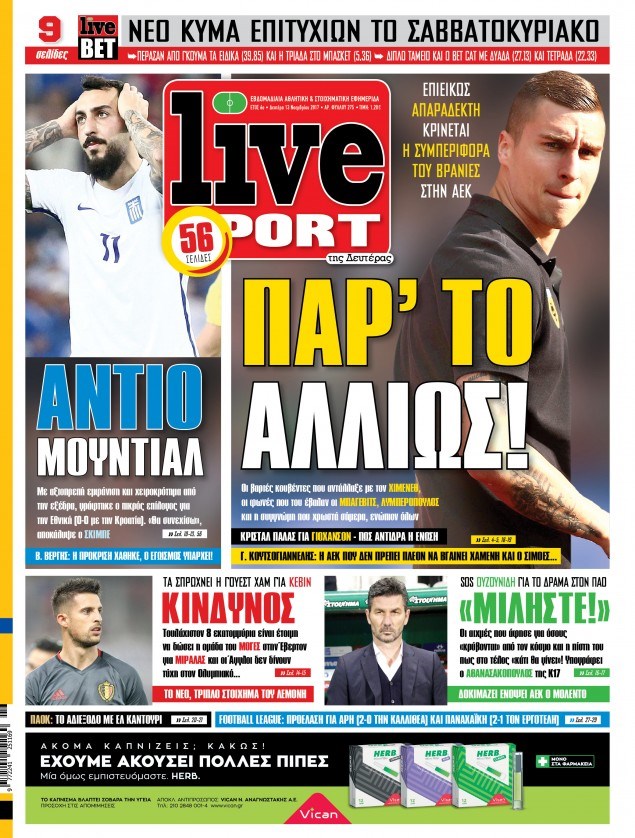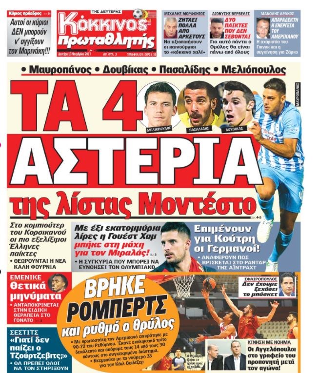 Οι αθλητικές εφημερίδες 13/11/2017 Κώστας Τεό 07:25, Δευτέρα 13 Νοεμβρίου 2017 Media Διαβάστε τα σημερινά πρωτοσέλιδα των αθλητικών εφημερίδων: ΑΘΛΗΤΙΚΕΣ ΕΦΗΜΕΡΙΔΕΣ ΠΡΩΤΟΣΕΛΙΔΑ Μοιράσου το: σχολίασε κι εσύ (0 σχόλια) Ακολουθήστε το enikos.gr στο Google News και μάθετε πρώτοι όλες τις ειδήσεις Δείτε όλες τις τελευταίες ειδήσεις από την Ελλάδα και τον Κόσμο στο enikos.gr Ειδήσεις Ροή Ειδήσεων 2 ώρες πριν Χριστούγεννα στα μπλόκα: Επιμένουν στις κινητοποιήσεις τους οι αγρότες – Ανοίγουν τα διόδια το Σαββατοκύριακο 3 ώρες πριν Ουκρανία: Η άνευ προηγουμένου επίθεση σε ρωσικό τάνκερ στη Μεσόγειο και το μήνυμα προς στον Πούτιν – Το «μακρύ χέρι» του Κιέβου 2 ώρες πριν Πούτιν: Τα μηνύματα σε Ευρώπη και ΝΑΤΟ από το μαραθώνιο «σόου» του – Η απαίτηση για «σεβασμό» και η ειρήνη «με τους όρους» της Μόσχας 3 ώρες πριν Τραμπ: Δεν αποκλείει την πιθανότητα ενός πολέμου στη Βενεζουέλα – «Ο Μαδούρο ξέρει καλύτερα από τον καθένα τι ακριβώς θέλω» 4 ώρες πριν Συνεχίζει να προκαλεί ο Μίτσκοσκι: «Για μένα το όνομα Μακεδονία είναι ιερό» 2 ώρες πριν Ανακαλύφθηκαν αρχαία χρυσά νομίσματα 2.200 ετών που απεικονίζουν τον θεό Απόλλωνα – Η άγνωστη σύνδεση με τον Φίλιππο Β΄ της Μακεδονίας 3 ώρες πριν Ύπνος: Μια κρυφή κατάσταση του εγκεφάλου πριν από τον ύπνο μπορεί να είναι το “κλειδί” για υψηλή ευφυΐα και δημιουργικότητα 4 ώρες πριν Αριθμολογία: Οι άνθρωποι που έχουν γεννηθεί αυτές τις 4 ημερομηνίες, συχνά παρεξηγούνται – «Η καλοσύνη τους κρύβει τεράστια δύναμη» 5 ώρες πριν Ξεχάστε το καθάρισμα το Σαββατοκύριακο: Ο «κανόνας των 20 λεπτών» που θα σας λύσει τα χέρια 6 λεπτά πριν Ουκρανία: Ολοκληρώθηκαν οι συνομιλίες με τους Αμερικανούς κι Ευρωπαίους διαπραγματευτές 21 λεπτά πριν Μπαρτσελόνα – Μπασκόνια 134-124: Οι «μπλαουγκράνα» πήραν το ματς της χρονιάς ύστερα από τρεις παρατάσεις 36 λεπτά πριν Φαίη Σκορδά: «Παλιότερα τα κομπλιμέντα τα προσπερνούσα, τώρα τα έχω ανάγκη» 52 λεπτά πριν Βασίλης Σπανούλης: Δεν εμφανίστηκε ούτε ένας δημοσιογράφος στην συνέντευξη Τύπου – «Καλησπέρα στον… κανέναν», δείτε βίντεο 1 ώρα πριν Πόλεμος στην Ουκρανία: Εφτά νεκροί από ρωσική πυραυλική επίθεση στο λιμάνι της Οδησσού ENIKOS NETWORK Το ΕΚΑΒ τιμήθηκε από την Ακαδημία Αθηνών για τα 40 χρόνια προσφοράς του Έχετε πραγματικά μεγάλη καρδιά; 10 χαρακτηριστικά όσων έχουν καλοσύνη Αναστολή μέτρων αναγκαστικής εκτέλεσης για κτηνοτρόφους που πλήττονται από την ευλογιά των αιγοπροβάτων Πλήρης επάρκεια προϊόντων στις λαϊκές της Αττικής, παρά τις αγροτικές κινητοποιήσεις – Τι απαντούν οι πωλητές Χαρτογραφώντας το «σημείο χωρίς επιστροφή»: Για πρώτη φορά αποκαλύπτεται με λεπτομέρεια το ακανθώδες όριο της ατμόσφαιρας τ... Η Google καταργεί τη λειτουργία «dark web report» – Πώς θα μπορούν οι χρήστες να διαγράφουν τα δεδομένα τους περισσότερα 22:42 , Παρασκευή 19 Δεκεμβρίου 2025 Γιώργος Γιαννόπουλος για “Το σόι σου”: “Είναι ευτυχία και ευλογία αυτή η σειρά” «Είναι ευτυχία και ευλογία η συγκυρία αυτής της σειράς», θα πει ο Γιώργος Γιαννόπουλος -ο αγαπ... 20:37 , Παρασκευή 19 Δεκεμβρίου 2025 Don’t Forget The Lyrics: Η Έλλη Κοκκίνου υποδέχεται 4 παίκτες που θα κάνουν τα πάντα για να μη χάσουν ούτε… μισή λέξη από τους στίχους Το «Don’t Forget The Lyrics» επιστρέφει απόψε, Παρασκευή 19 Δεκεμβρίου, στις 21:00 με νέο επει... 19:31 , Παρασκευή 19 Δεκεμβρίου 2025 GNTM: Απόψε ο μεγάλος τελικός για τους 4 φιναλίστ Έπειτα από μήνες γεμάτους μόδα, δημιουργία και έντονες αναμετρήσεις, το GNTM 2025 κορυφώνεται