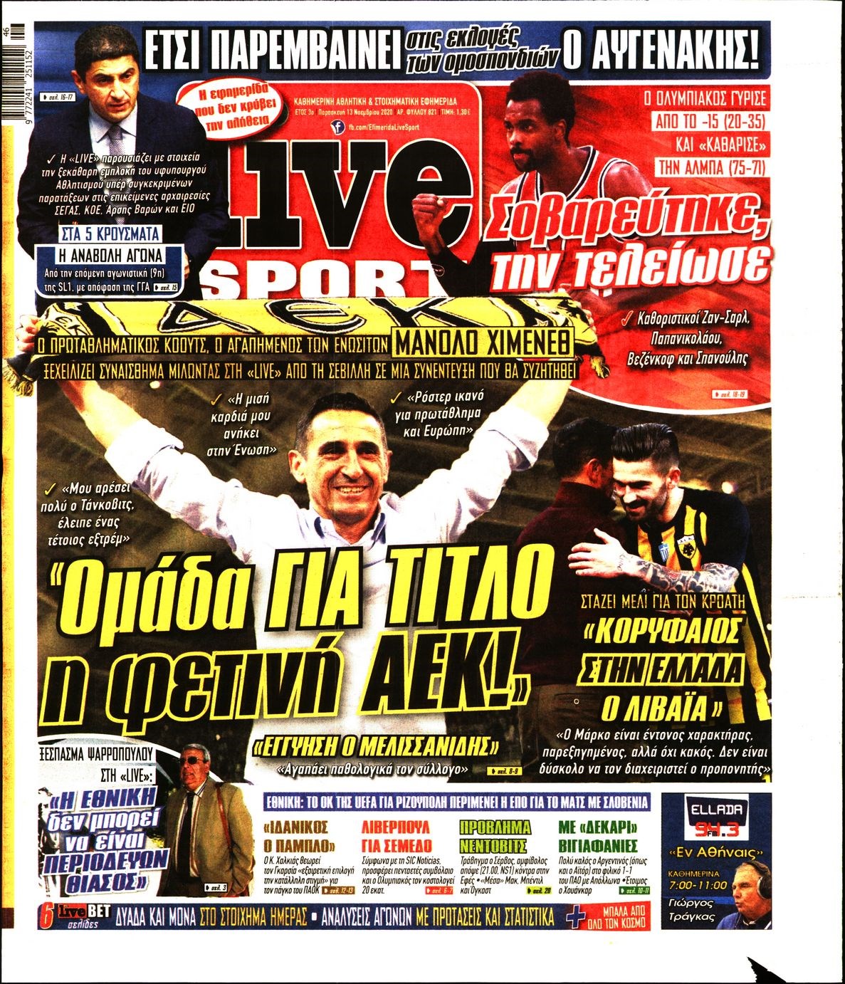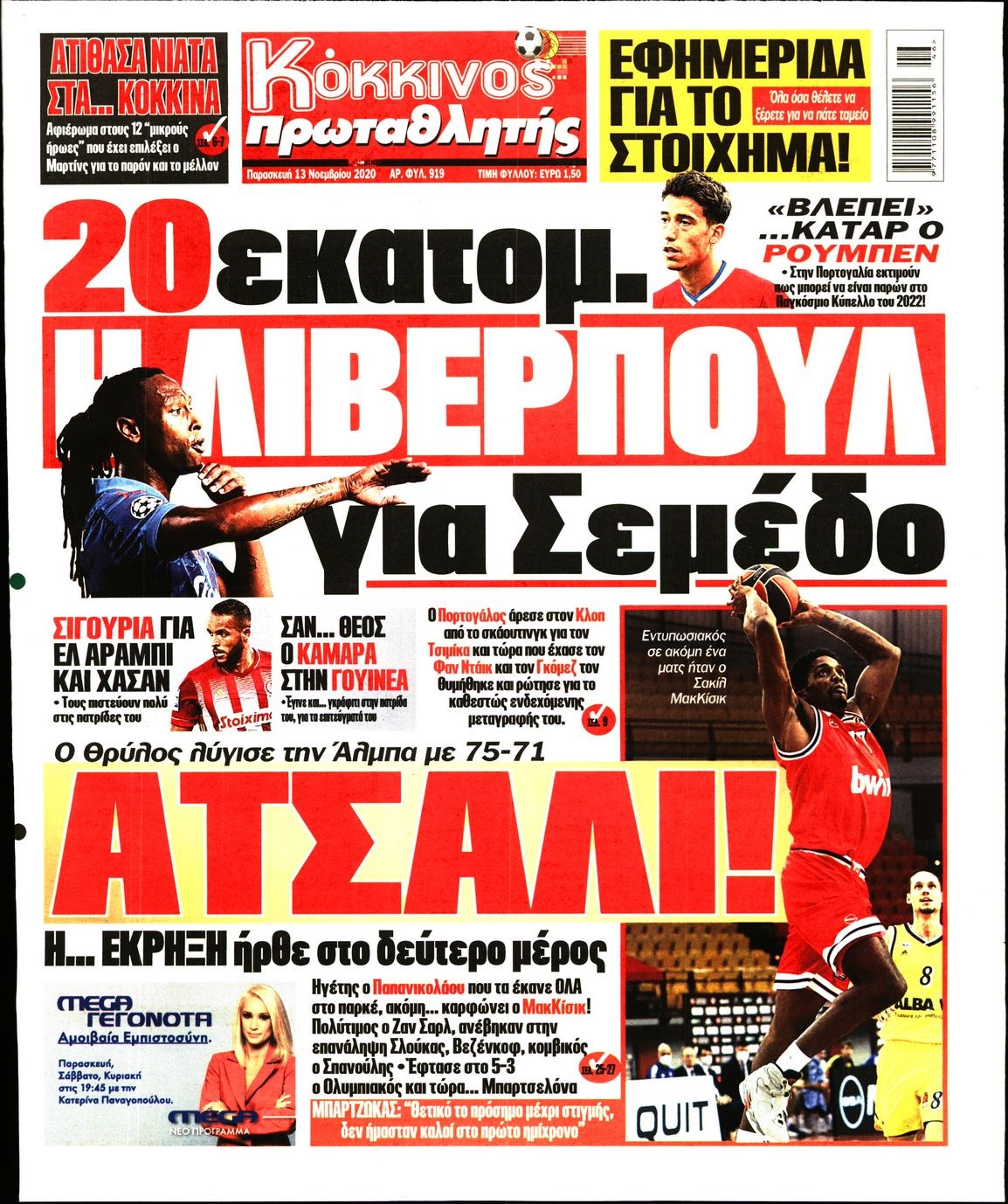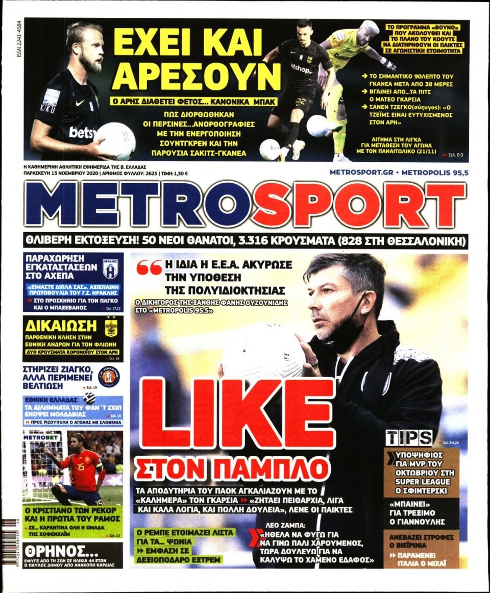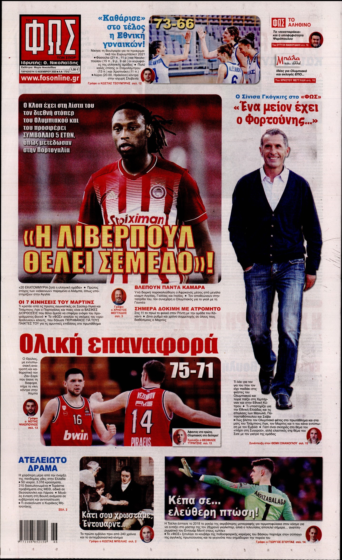 Οι αθλητικές εφημερίδες 13/11/2020 Διονύσης Νίκκας 06:52, Παρασκευή 13 Νοεμβρίου 2020 Media Διαβάστε τα πρωτοσέλιδα των αθλητικών εφημερίδων… ΑΘΛΗΤΙΚΕΣ ΕΦΗΜΕΡΙΔΕΣ Μοιράσου το: σχολίασε κι εσύ (0 σχόλια) Ακολουθήστε το enikos.gr στο Google News και μάθετε πρώτοι όλες τις ειδήσεις Δείτε όλες τις τελευταίες ειδήσεις από την Ελλάδα και τον Κόσμο στο enikos.gr Ειδήσεις Ροή Ειδήσεων 3 ώρες πριν Χριστούγεννα στα μπλόκα: Επιμένουν στις κινητοποιήσεις τους οι αγρότες – Ανοίγουν τα διόδια το Σαββατοκύριακο 3 ώρες πριν Ουκρανία: Η άνευ προηγουμένου επίθεση σε ρωσικό τάνκερ στη Μεσόγειο και το μήνυμα προς στον Πούτιν – Το «μακρύ χέρι» του Κιέβου 3 ώρες πριν Πούτιν: Τα μηνύματα σε Ευρώπη και ΝΑΤΟ από το μαραθώνιο «σόου» του – Η απαίτηση για «σεβασμό» και η ειρήνη «με τους όρους» της Μόσχας 3 ώρες πριν Τραμπ: Δεν αποκλείει την πιθανότητα ενός πολέμου στη Βενεζουέλα – «Ο Μαδούρο ξέρει καλύτερα από τον καθένα τι ακριβώς θέλω» 4 ώρες πριν Συνεχίζει να προκαλεί ο Μίτσκοσκι: «Για μένα το όνομα Μακεδονία είναι ιερό» 3 ώρες πριν Ανακαλύφθηκαν αρχαία χρυσά νομίσματα 2.200 ετών που απεικονίζουν τον θεό Απόλλωνα – Η άγνωστη σύνδεση με τον Φίλιππο Β΄ της Μακεδονίας 4 ώρες πριν Ύπνος: Μια κρυφή κατάσταση του εγκεφάλου πριν από τον ύπνο μπορεί να είναι το “κλειδί” για υψηλή ευφυΐα και δημιουργικότητα 5 ώρες πριν Αριθμολογία: Οι άνθρωποι που έχουν γεννηθεί αυτές τις 4 ημερομηνίες, συχνά παρεξηγούνται – «Η καλοσύνη τους κρύβει τεράστια δύναμη» 6 ώρες πριν Ξεχάστε το καθάρισμα το Σαββατοκύριακο: Ο «κανόνας των 20 λεπτών» που θα σας λύσει τα χέρια 14 λεπτά πριν Euroleague: Επέστρεψε στις νίκες ο Ολυμπιακός, πήρε την ματσάρα της χρονιάς η Μπάρτσα – Τα αποτελέσματα και η βαθμολογία 29 λεπτά πριν Συρία: Μαζικά πλήγματα των ΗΠΑ σε θέσεις του Ισλαμικού Κράτους – Χέγκσεθ: «Δεν είναι αρχή πολέμου, είναι μια δήλωση εκδίκησης» για το θάνατο των στρατιωτών μας 41 λεπτά πριν Ουκρανία: Ολοκληρώθηκαν οι συνομιλίες με τους Αμερικανούς κι Ευρωπαίους διαπραγματευτές 56 λεπτά πριν Μπαρτσελόνα – Μπασκόνια 134-124: Οι «μπλαουγκράνα» πήραν το ματς της χρονιάς ύστερα από τρεις παρατάσεις 1 ώρα πριν Φαίη Σκορδά: «Παλιότερα τα κομπλιμέντα τα προσπερνούσα, τώρα τα έχω ανάγκη» ENIKOS NETWORK Το ΕΚΑΒ τιμήθηκε από την Ακαδημία Αθηνών για τα 40 χρόνια προσφοράς του Έχετε πραγματικά μεγάλη καρδιά; 10 χαρακτηριστικά όσων έχουν καλοσύνη Αναστολή μέτρων αναγκαστικής εκτέλεσης για κτηνοτρόφους που πλήττονται από την ευλογιά των αιγοπροβάτων Πλήρης επάρκεια προϊόντων στις λαϊκές της Αττικής, παρά τις αγροτικές κινητοποιήσεις – Τι απαντούν οι πωλητές Χαρτογραφώντας το «σημείο χωρίς επιστροφή»: Για πρώτη φορά αποκαλύπτεται με λεπτομέρεια το ακανθώδες όριο της ατμόσφαιρας τ... Η Google καταργεί τη λειτουργία «dark web report» – Πώς θα μπορούν οι χρήστες να διαγράφουν τα δεδομένα τους περισσότερα 22:42 , Παρασκευή 19 Δεκεμβρίου 2025 Γιώργος Γιαννόπουλος για “Το σόι σου”: “Είναι ευτυχία και ευλογία αυτή η σειρά” «Είναι ευτυχία και ευλογία η συγκυρία αυτής της σειράς», θα πει ο Γιώργος Γιαννόπουλος -ο αγαπ... 20:37 , Παρασκευή 19 Δεκεμβρίου 2025 Don’t Forget The Lyrics: Η Έλλη Κοκκίνου υποδέχεται 4 παίκτες που θα κάνουν τα πάντα για να μη χάσουν ούτε… μισή λέξη από τους στίχους Το «Don’t Forget The Lyrics» επιστρέφει απόψε, Παρασκευή 19 Δεκεμβρίου, στις 21:00 με νέο επει... 19:31 , Παρασκευή 19 Δεκεμβρίου 2025 GNTM: Απόψε ο μεγάλος τελικός για τους 4 φιναλίστ Έπειτα από μήνες γεμάτους μόδα, δημιουρ