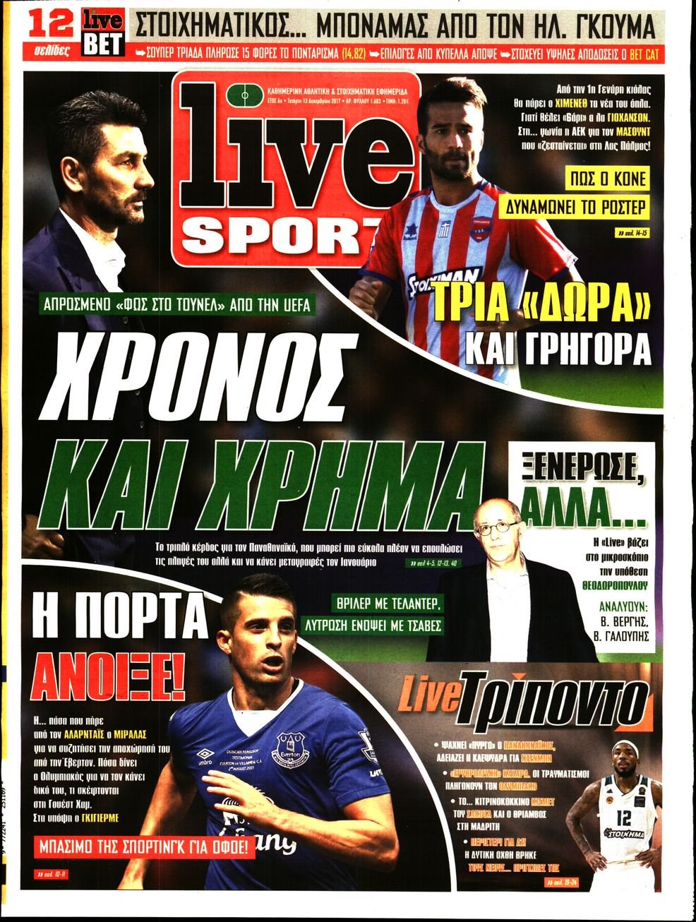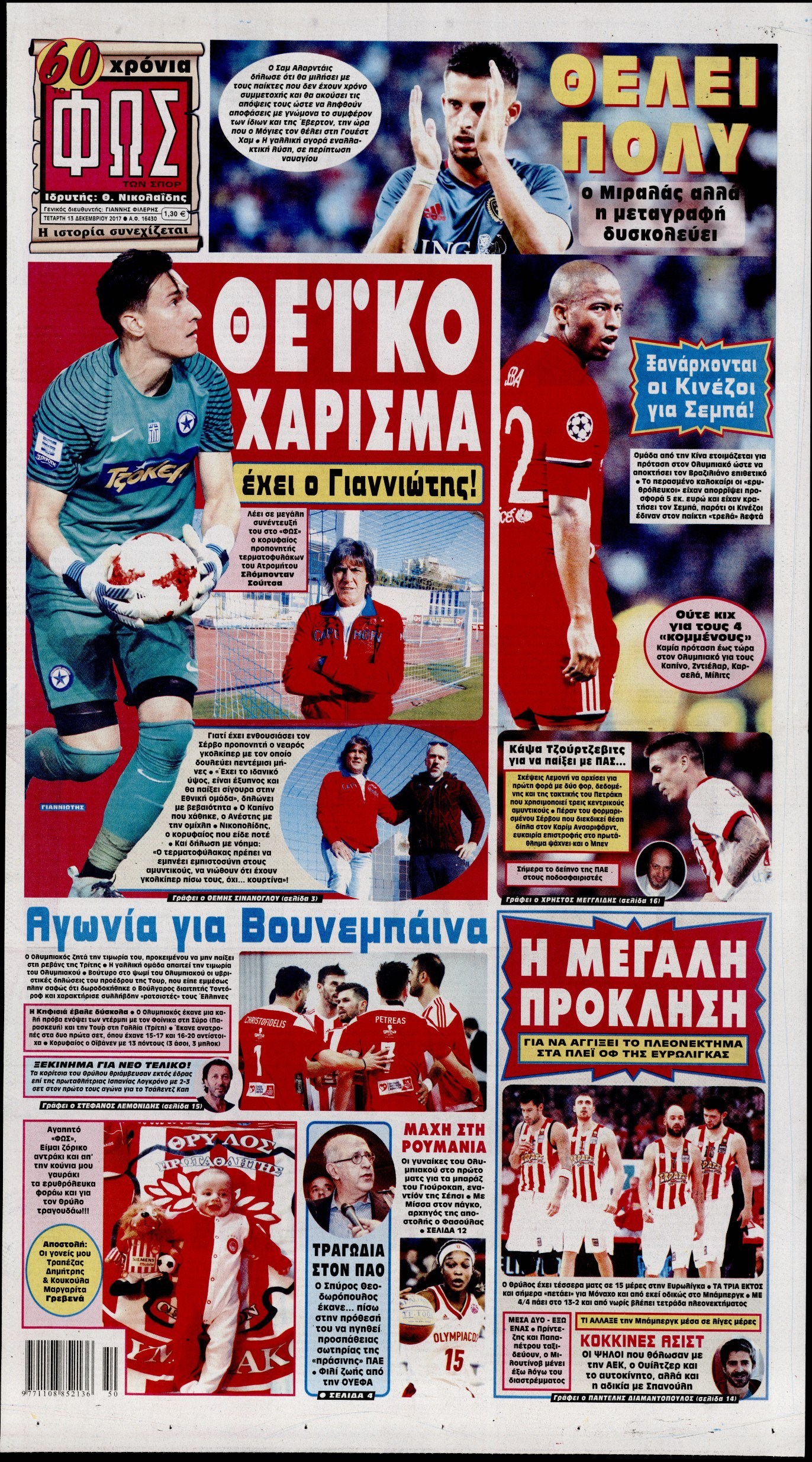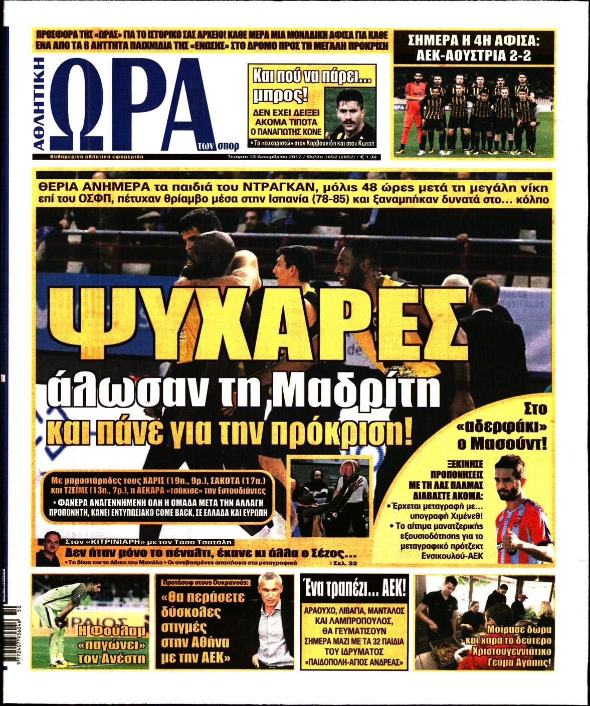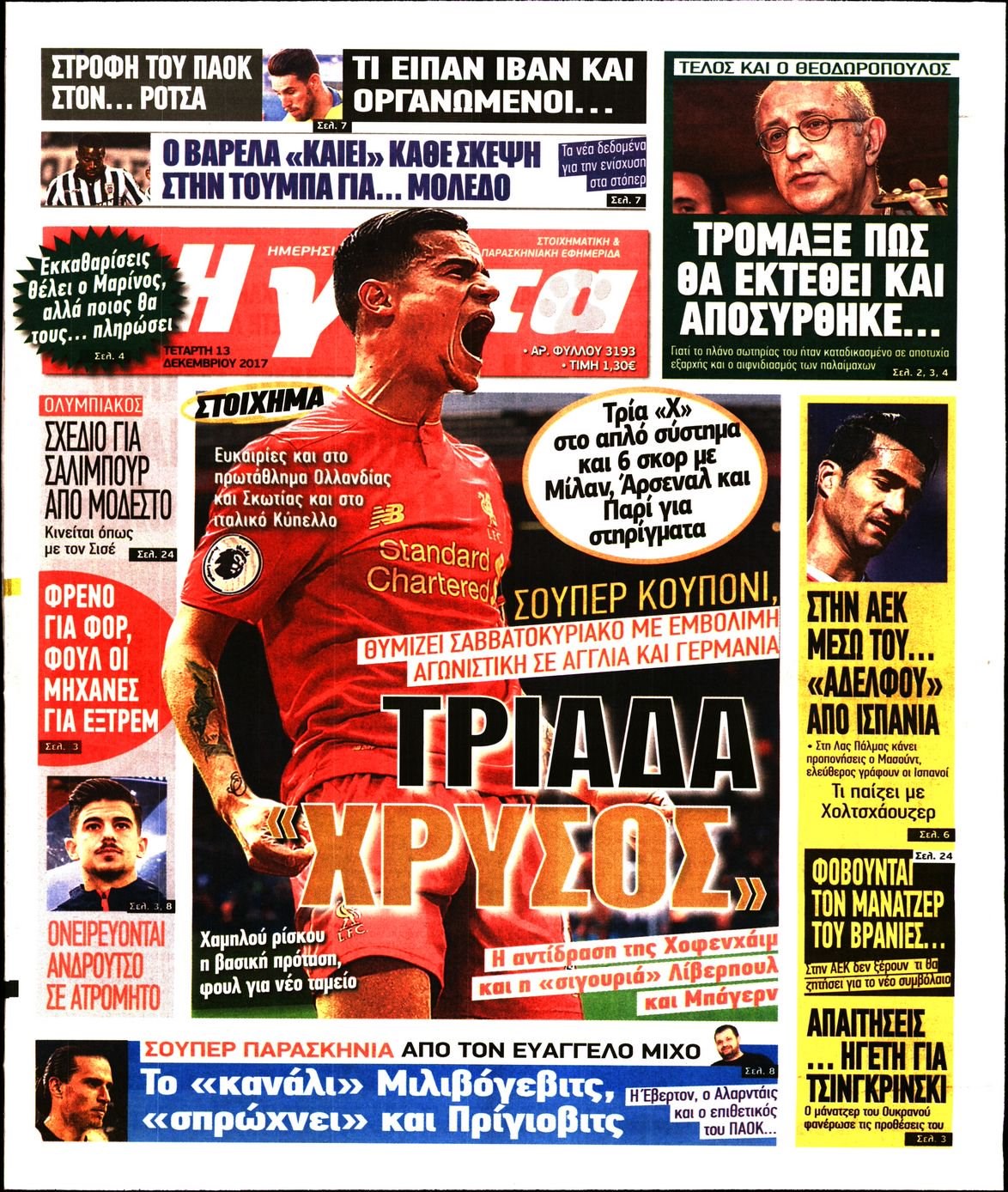 Οι αθλητικές εφημερίδες 13/12/2017 Enikos Newsroom 07:32, Τετάρτη 13 Δεκεμβρίου 2017 Media Διαβάστε τα σημερινά πρωτοσέλιδα των αθλητικών εφημερίδων: ΑΘΛΗΤΙΚΕΣ ΕΦΗΜΕΡΙΔΕΣ ΠΡΩΤΟΣΕΛΙΔΑ Μοιράσου το: σχολίασε κι εσύ (0 σχόλια) Ακολουθήστε το enikos.gr στο Google News και μάθετε πρώτοι όλες τις ειδήσεις Δείτε όλες τις τελευταίες ειδήσεις από την Ελλάδα και τον Κόσμο στο enikos.gr Ειδήσεις Ροή Ειδήσεων 38 λεπτά πριν Χριστούγεννα στα μπλόκα: Επιμένουν στις κινητοποιήσεις τους οι αγρότες – Ανοίγουν τα διόδια το Σαββατοκύριακο 1 ώρα πριν Ουκρανία: Η άνευ προηγουμένου επίθεση σε ρωσικό τάνκερ στη Μεσόγειο και το μήνυμα προς στον Πούτιν – Το «μακρύ χέρι» του Κιέβου 15 λεπτά πριν Πούτιν: Τα μηνύματα σε Ευρώπη και ΝΑΤΟ από το μαραθώνιο «σόου» του – Η απαίτηση για «σεβασμό» και η ειρήνη «με τους όρους» της Μόσχας 1 ώρα πριν Τραμπ: Δεν αποκλείει την πιθανότητα ενός πολέμου στη Βενεζουέλα – «Ο Μαδούρο ξέρει καλύτερα από τον καθένα τι ακριβώς θέλω» 2 ώρες πριν Συνεχίζει να προκαλεί ο Μίτσκοσκι: «Για μένα το όνομα Μακεδονία είναι ιερό» 3 ώρες πριν Πούτιν: «Ναι, είμαι ερωτευμένος» – Βίντεο από τη σπάνια προσωπική παραδοχή του 2 ώρες πριν Αριθμολογία: Οι άνθρωποι που έχουν γεννηθεί αυτές τις 4 ημερομηνίες, συχνά παρεξηγούνται – «Η καλοσύνη τους κρύβει τεράστια δύναμη» 1 ώρα πριν Ύπνος: Μια κρυφή κατάσταση του εγκεφάλου πριν από τον ύπνο μπορεί να είναι το “κλειδί” για υψηλή ευφυΐα και δημιουργικότητα 3 ώρες πριν Ξεχάστε το καθάρισμα το Σαββατοκύριακο: Ο «κανόνας των 20 λεπτών» που θα σας λύσει τα χέρια 16 λεπτά πριν Ανακαλύφθηκαν αρχαία χρυσά νομίσματα 2.200 ετών που απεικονίζουν τον θεό Απόλλωνα – Η άγνωστη σύνδεση με τον Φίλιππο Β΄ της Μακεδονίας 9 δευτερόλεπτα πριν Ολυμπιακός – Βιλερμπάν 107-84: Επιστροφή στις νίκες με… προπόνηση 6 λεπτά πριν Νέος Κόσμος: Συνελήφθη 41χρονος με ένταλμα από την Τουρκία για εμπόριο ναρκωτικών και ληστεία 15 λεπτά πριν Πούτιν: Τα μηνύματα σε Ευρώπη και ΝΑΤΟ από το μαραθώνιο «σόου» του – Η απαίτηση για «σεβασμό» και η ειρήνη «με τους όρους» της Μόσχας 16 λεπτά πριν Ανακαλύφθηκαν αρχαία χρυσά νομίσματα 2.200 ετών που απεικονίζουν τον θεό Απόλλωνα – Η άγνωστη σύνδεση με τον Φίλιππο Β΄ της Μακεδονίας 21 λεπτά πριν Νίκος Ξυλούρης: Συγκινεί η χήρα του σπουδαίου καλλιτέχνη – «Ευχαριστώ όλο τον κόσμο που τον κρατάει ζωντανό 45 χρόνια» ENIKOS NETWORK Το ΕΚΑΒ τιμήθηκε από την Ακαδημία Αθηνών για τα 40 χρόνια προσφοράς του Έχετε πραγματικά μεγάλη καρδιά; 10 χαρακτηριστικά όσων έχουν καλοσύνη Πλήρης επάρκεια προϊόντων στις λαϊκές της Αττικής, παρά τις αγροτικές κινητοποιήσεις – Τι απαντούν οι πωλητές ΑΑΔΕ: Νέες αναβαθμίσεις στο Ψηφιακό Πελατολόγιο και την εφαρμογή myDATAapp – Τι πρέπει να γνωρίζετε Χαρτογραφώντας το «σημείο χωρίς επιστροφή»: Για πρώτη φορά αποκαλύπτεται με λεπτομέρεια το ακανθώδες όριο της ατμόσφαιρας τ... Η Google καταργεί τη λειτουργία «dark web report» – Πώς θα μπορούν οι χρήστες να διαγράφουν τα δεδομένα τους περισσότερα 22:42 , Παρασκευή 19 Δεκεμβρίου 2025 Γιώργος Γιαννόπουλος για “Το σόι σου”: “Είναι ευτυχία και ευλογία αυτή η σειρά” «Είναι ευτυχία και ευλογία η συγκυρία αυτής της σειράς», θα πει ο Γιώργος Γιαννόπουλος -ο αγαπ... 20:37 , Παρασκευή 19 Δεκεμβρίου 2025 Don’t Forget The Lyrics: Η Έλλη Κοκκίνου υποδέχεται 4 παίκτες που θα κάνουν τα πάντα για να μη χάσουν ούτε… μισή λέξη από τους στίχους Το «Don’t Forget The Lyrics» επιστρέφει απόψε, Παρασκευή 19 Δεκεμβρίου, στις 21:00 με νέο επει... 19:31 , Παρασκευή 1