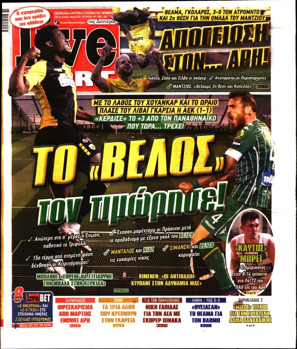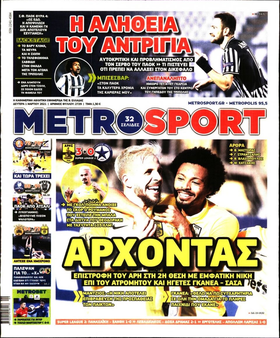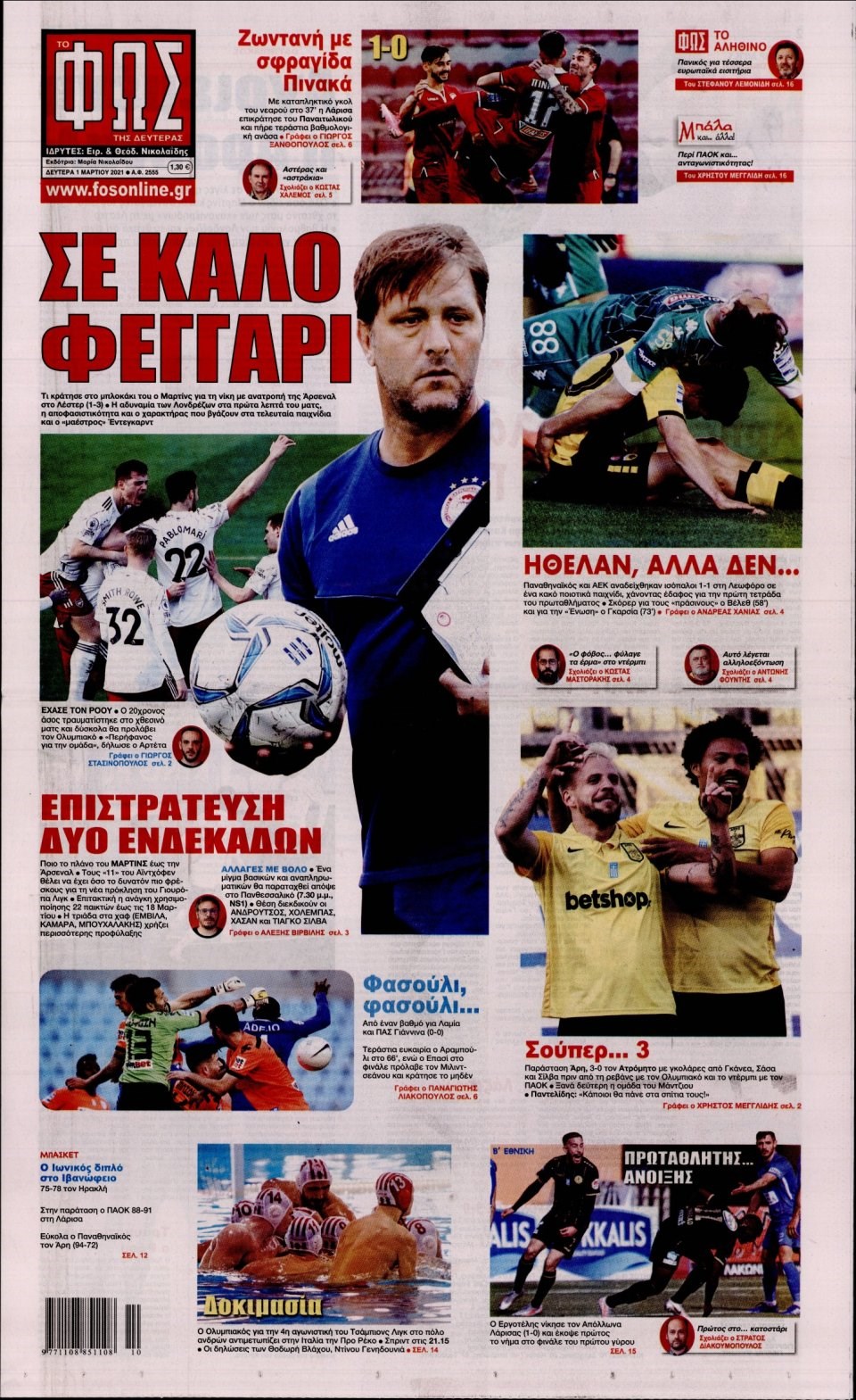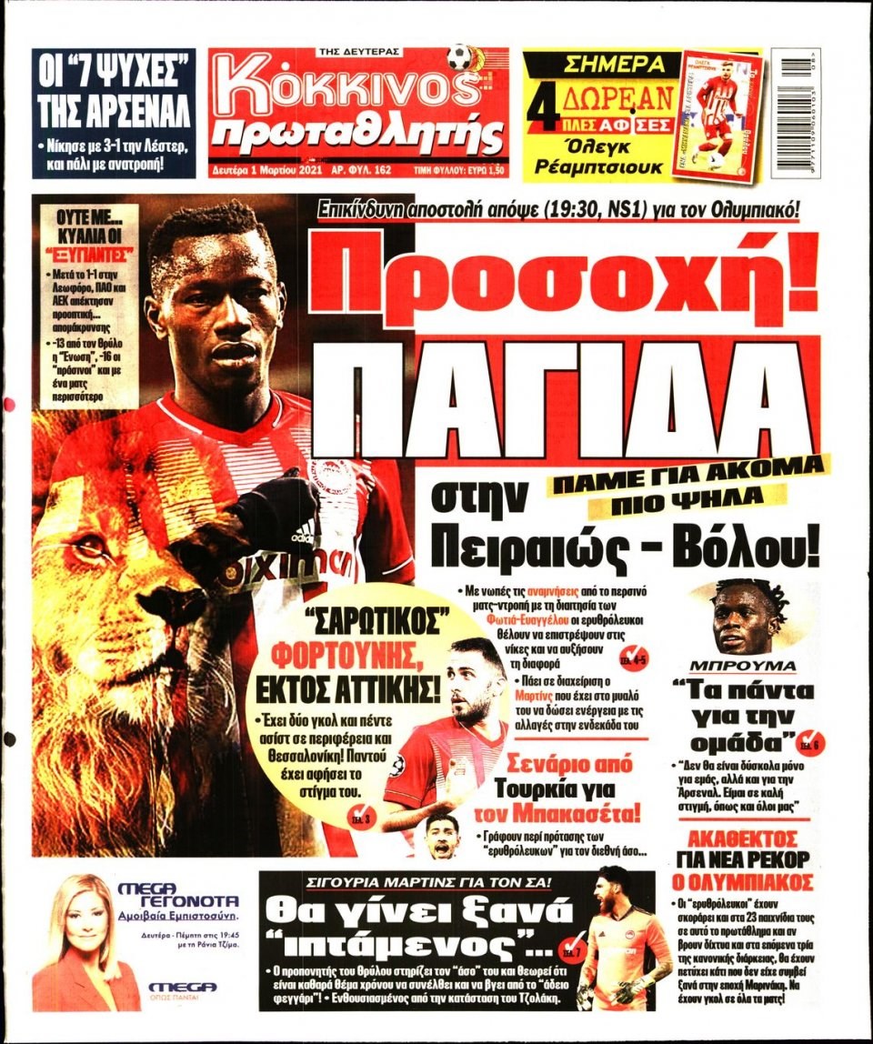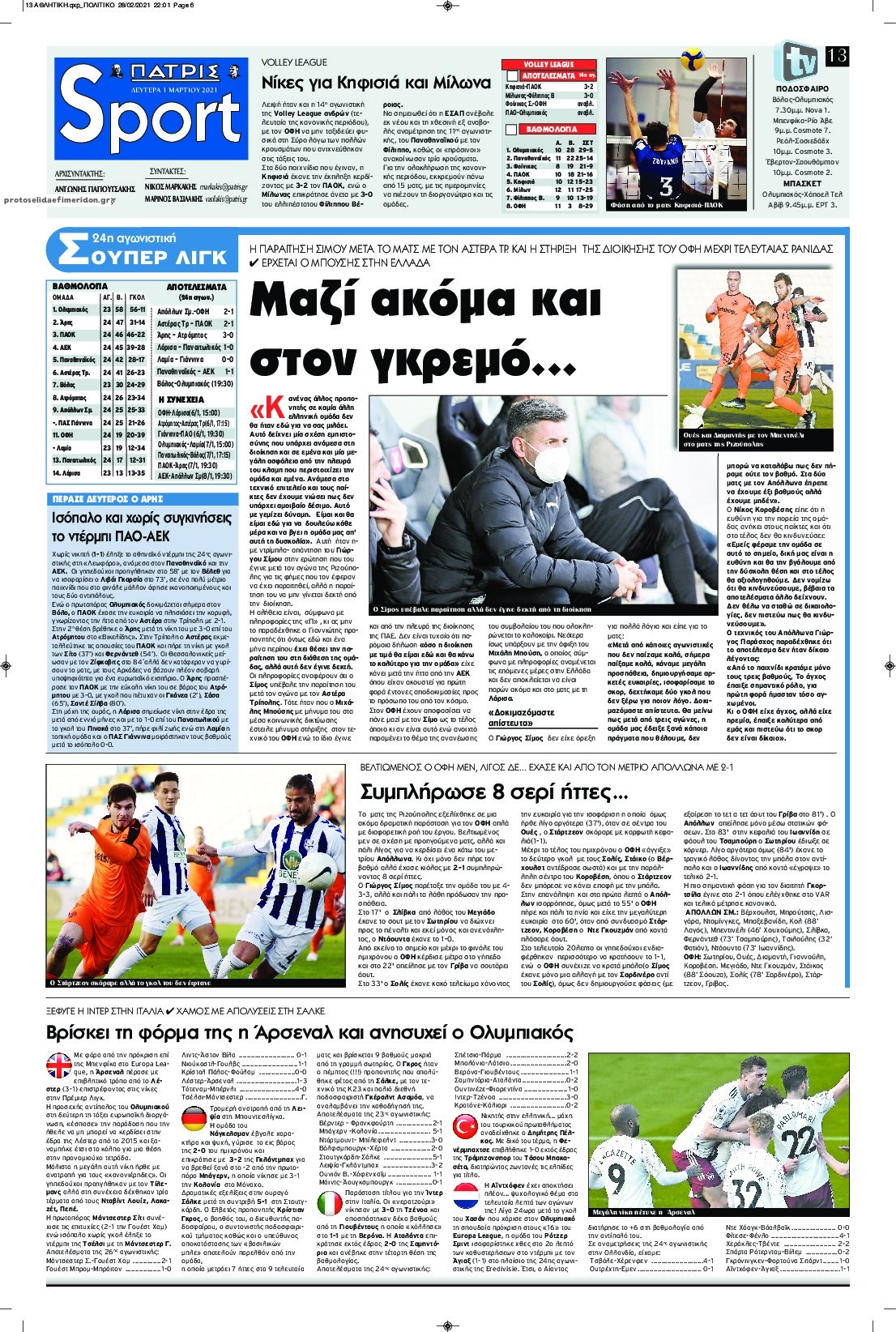 Οι αθλητικές εφημερίδες 1/3/2021 Σήφης Γαρυφαλάκης 06:21, Δευτέρα 01 Μαρτίου 2021 Media Διαβάστε τα πρωτοσέλιδα των αθλητικών εφημερίδων… ΑΘΛΗΤΙΚΕΣ ΕΦΗΜΕΡΙΔΕΣ ΕΦΗΜΕΡΙΔΕΣ ΠΡΩΤΟΣΕΛΙΔΑ ΠΡΩΤΟΣΕΛΙΔΑ ΕΦΗΜΕΡΙΔΩΝ Μοιράσου το: σχολίασε κι εσύ (0 σχόλια) Ακολουθήστε το enikos.gr στο Google News και μάθετε πρώτοι όλες τις ειδήσεις Δείτε όλες τις τελευταίες ειδήσεις από την Ελλάδα και τον Κόσμο στο enikos.gr Ειδήσεις Ροή Ειδήσεων 2 ώρες πριν Αυξάνουν την πίεση προς την κυβέρνηση οι αγρότες: Κλείνουν παρακαμπτήριους και ανοίγουν διόδια – Τι θα γίνει τις γιορτές 1 ώρα πριν ΟΠΕΚΕΠΕ: Προφυλακιστέος ο φερόμενος αρχηγός και ο λογιστής της εγκληματικής οργάνωσης 2 ώρες πριν Φοινικούντα: Το Σάββατο απολογείται ο 30χρονος γιος γνωστού επιχειρηματία της Πλάκας που παραδόθηκε – Όσα είπε στους αστυνομικούς και ο ρόλος του στο έγκλημα 2 ώρες πριν Μπορεί ο Μαδούρο να αντέξει τον αποκλεισμό του Τραμπ; Τι θα χρειαστεί η Ουάσινγκτον για να τον ανατρέψει 3 ώρες πριν Πρίγκιπας Ουίλιαμ – Κέιτ: Η νέα οικογενειακή φωτογραφία για τις Χριστουγεννιάτικες κάρτες του 2025 3 ώρες πριν Ύπνος: Η απλή βραδινή ρουτίνα για να προστατεύσετε τα μαλλιά σας από το κρύο κατά τη διάρκεια του χειμώνα 4 ώρες πριν Manifesting: Πώς να συναντήσετε τον σύντροφο της ζωής σας, ανάλογα με τον μήνα γέννησής σας 2 ημέρες πριν 20 χρόνια τα Χριστούγεννα ξεκινούν στα Public με μεγάλη ποικιλία σε δώρα! 2 ώρες πριν Αρχαιολόγοι ανακάλυψαν ρωμαϊκά τεχνουργήματα από μια πόλη που δεν υπήρξε ποτέ – Τα τρία εντυπωσιακά κτίρια και ο αμφορέας με τις… σαρδέλες 46 δευτερόλεπτα πριν Conference League: Με Νόα, Ντρίτα, Άλκμααρ ή Τσέλιε στους «16» η ΑΕΚ 9 λεπτά πριν Conference League: Απευθείας στους «16» η ΑΕΚ Λάρνακας και η Ρακόβ των Σβάρνα και Κωνσταντόπουλου – Τα αποτελέσματα και η βαθμολογία, 3η η ΑΕΚ 19 λεπτά πριν Σε ομάδες που συνδέονται με το ρωσικό κράτος αποδίδει η Δανία δύο κυβερνοεπιθέσεις που δέχθηκε 34 λεπτά πριν Βαθμολογία UEFA: Η Πολωνία προσπέρασε την Ελλάδα 50 λεπτά πριν Conference League: Οι ομάδες που προκρίθηκαν στους «16» και τα «ζευγαρώματα» στα νοκ άουτ ENIKOS NETWORK Σε περίοδο αυξημένης δραστηριότητας η γρίπη στην Ελλάδα-Μέτρα προστασίας από τον ΕΟΔΥ Σκέφτεστε συνέχεια συζητήσεις που έχετε κάνει; Τι σημαίνει αυτό, σύμφωνα με ειδικό Στεγαστικό: Τι λέει η ΠΟΜΙΔΑ για τα νέα μέτρα που ανακοίνωσε ο Κυριάκος Μητσοτάκης Λαγκάρντ: Αισιόδοξη για την ανάπτυξη της Ευρωζώνης, αβέβαιη για τον πληθωρισμό Χαρτογραφώντας το «σημείο χωρίς επιστροφή»: Για πρώτη φορά αποκαλύπτεται με λεπτομέρεια το ακανθώδες όριο της ατμόσφαιρας τ... Η Google καταργεί τη λειτουργία «dark web report» – Πώς θα μπορούν οι χρήστες να διαγράφουν τα δεδομένα τους περισσότερα 17:45 , Πέμπτη 18 Δεκεμβρίου 2025 ROUK ZOUK: Εορταστικό επεισόδιο με καλεσμένους τους πρωταγωνιστές του «Γιατί ρε πατέρα» Το Σάββατο 20 Δεκεμβρίου στις 21:00, η Ζέτα Μακρυπούλια υποδέχεται εκλεκτούς ηθοποιούς που όλο... 17:20 , Πέμπτη 18 Δεκεμβρίου 2025 Άγιος έρωτας: Η Χριστίνα εξομολογείται στον πατέρα Νικόλαο, απόψε στις 21:00 στον Alpha Η Νότα αποφασίζει να εκδικηθεί τον Πέτρο και τον Στέφανο, για χάρη του Λούη, όμως τα πράγματα ... 16:50 , Πέμπτη 18 Δεκεμβρίου 2025 Να μ’ αγαπάς: Ζωή και Φωτεινή συμφιλιώνονται ως μάνα με κόρη, απόψε στις 20:00 Η ταυτότητα του Άγγελου αποκαλύπτεται στο νέο επεισόδιο της σειράς “Να μ’ αγαπάς... 15:52 , Πέμπτη 18 Δεκεμβρίου 2025 Το Σπίτι Δίπλα Στο Ποτάμι: Το καθηλωτικό τελευταίο επεισόδιο για το 2025 απόψε στις 22:30 Καθηλώνει το σημερινό επεισόδιο της σει