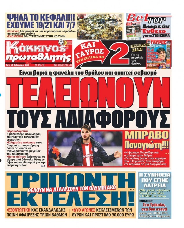 Οι αθλητικές εφημερίδες 13/2/2018 Κώστας Τεό 06:16, Τρίτη 13 Φεβρουαρίου 2018 Media Διαβάστε τα σημερινά πρωτοσέλιδα των αθλητικών εφημερίδων: ΑΘΛΗΤΙΚΕΣ ΕΦΗΜΕΡΙΔΕΣ ΠΡΩΤΟΣΕΛΙΔΑ Μοιράσου το: σχολίασε κι εσύ (0 σχόλια) Ακολουθήστε το enikos.gr στο Google News και μάθετε πρώτοι όλες τις ειδήσεις Δείτε όλες τις τελευταίες ειδήσεις από την Ελλάδα και τον Κόσμο στο enikos.gr Ειδήσεις Ροή Ειδήσεων 3 ώρες πριν Αγρότες: Πολύωροι αποκλεισμοί στα τελωνεία Προμαχώνα, Εξοχής, Ευζώνων και Νίκης – Κλείνουν τον κόμβο Φιλώτα οι παραγωγοί στη Δυτική Μακεδονία 3 ώρες πριν Νίκος Παππάς: Ζητώ συγγνώμη για αυτό το επεισόδιο – Δεν τον γρονθοκόπησα 2 ώρες πριν Πούτιν: Η Ουκρανία δεν είναι έτοιμη για ειρηνευτικές συνομιλίες – ο ρωσικός στρατός προελαύνει σε όλα τα μέτωπα 10 λεπτά πριν Θεσσαλονίκη: Άφησαν τα ανήλικα παιδιά τους να κοιμούνται στην αυλή – Κάτοικος ειδοποίησε το «Χαμόγελο του Παιδιού» 3 ώρες πριν Τρομακτικό βίντεο: Η στιγμή της έκρηξης στο τζετ που μετέφερε τον οδηγό του NASCAR, Γκρεγκ Μπιφλ και την οικογένειά του 3 ώρες πριν Αλλαγή σελίδας για 3 ζώδια – «Μία δύσκολη περίοδος φτάνει στο τέλος της» 2 ημέρες πριν 20 χρόνια τα Χριστούγεννα ξεκινούν στα Public με μεγάλη ποικιλία σε δώρα! 2 ώρες πριν Γεμάτος νεροχύτης; 5 σοβαρές ευθύνες που «φοβίζουν» όσους αφήνουν άπλυτα πιάτα 1 ώρα πριν Ειδικός μοιράζεται 6 κόλπα για να διατηρείστε σε φόρμα με πάνω από 40 ώρες εργασίας την εβδομάδα: «Προπονηθείτε πριν από τη δουλειά, όχι μετά» 4 λεπτά πριν Γιώργος Γιαννόπουλος: Πάντα έχω σχέση – Ψάχνω αγάπη και χιούμορ 9 λεπτά πριν Μεσολόγγι: Συνελήφθησαν δύο ανήλικοι για bullying σε 14χρονο – Τον ανάγκασαν να γονατίσει και τραβούσαν βίντεο 10 λεπτά πριν Θεσσαλονίκη: Άφησαν τα ανήλικα παιδιά τους να κοιμούνται στην αυλή – Κάτοικος ειδοποίησε το «Χαμόγελο του Παιδιού» 14 λεπτά πριν Μετρό και λεωφορεία του ΟΑΣΘ: Σε 24ωρη λειτουργία για τα Σάββατα των εορτών 19 λεπτά πριν Γιώργος Καπουτζίδης: Το «Παρά Πέντε» ήταν η παρέα που δεν είχα στη μοναχική εφηβεία μου – Όσα αποκάλυψε για το Reunion ENIKOS NETWORK Κίνδυνος παραπλάνησης από διαφημίσεις οδοντικών εμφυτευμάτων Καρκίνος του πνεύμονα: Έως 8.000 ζωές μπορούν να σωθούν με την έγκαιρη διάγνωση e-ΕΦΚΑ: Νέα παράταση της προθεσμίας υποβολής για τις ΑΠΔ – Ποιες επιχειρήσεις αφορά Αγορά πολυτελών κατοικιών: Αυτές είναι οι προτεραιότητες των αγοραστών – Σε ποιες περιοχές στρέφονται και τι επιλέγουν Χαρτογραφώντας το «σημείο χωρίς επιστροφή»: Για πρώτη φορά αποκαλύπτεται με λεπτομέρεια το ακανθώδες όριο της ατμόσφαιρας τ... Η Google καταργεί τη λειτουργία «dark web report» – Πώς θα μπορούν οι χρήστες να διαγράφουν τα δεδομένα τους περισσότερα 08:00 , Παρασκευή 19 Δεκεμβρίου 2025 Την Κυριακή με τη Realnews: Δωροεπιταγή 10€ Δωροεπιταγή αξίας 10€ για αγορές άνω των 60€ από τα πολυκαταστήματα FactoryOutlet H προσφορά ι... 05:48 , Παρασκευή 19 Δεκεμβρίου 2025 Οι οικονομικές εφημερίδες 19/12/2025 Διαβάστε τα πρωτοσέλιδα από τις οικονομικές εφημερίδες, σήμερα 19/12/2025. 05:43 , Παρασκευή 19 Δεκεμβρίου 2025 Οι αθλητικές εφημερίδες 19/12/2025 Διαβάστε τα πρωτοσέλιδα από τις αθλητικές εφημερίδες, σήμερα 19/12/2025. 05:38 , Παρασκευή 19 Δεκεμβρίου 2025 Οι πολιτικές εφημερίδες 19/12/2025 Διαβάστε τα πρωτοσέλιδα από τις πολιτικές εφημερίδες, σήμερα 19/12/2025. ΤΕΛΕΥΤΑΙΕΣ ΕΙΔΗΣΕΙΣ 4 λεπτά πριν Γιώργος Γιαννόπουλος: Πάντα έχω σχέση – Ψάχνω αγάπη... 9 λεπτά πριν Μεσολόγγι: Συνελήφθησαν δύο ανήλικοι για bullying σε... 10 λεπτά πριν Θεσσαλονίκη: Άφησαν τα ανήλικα παιδιά τους ν